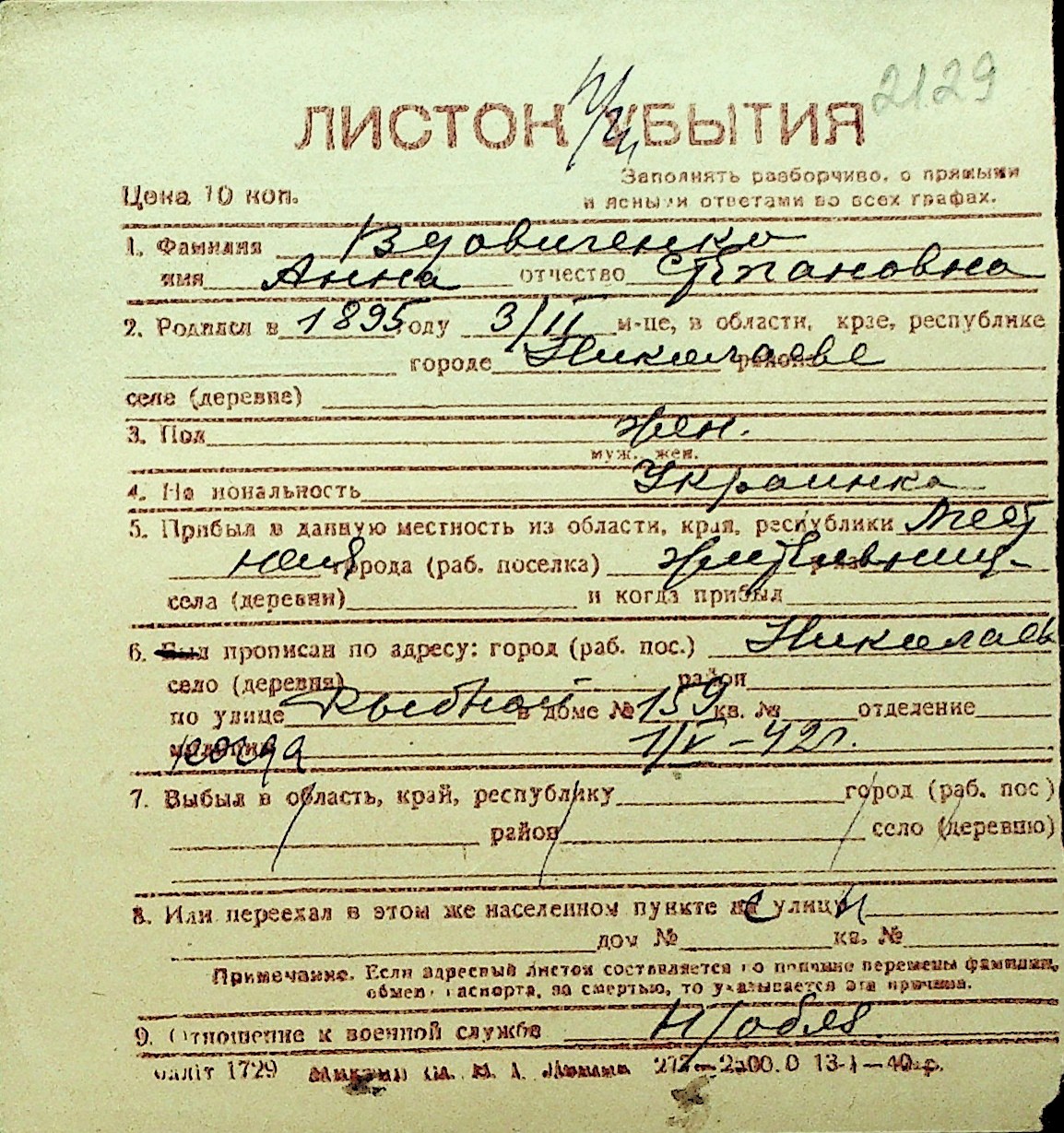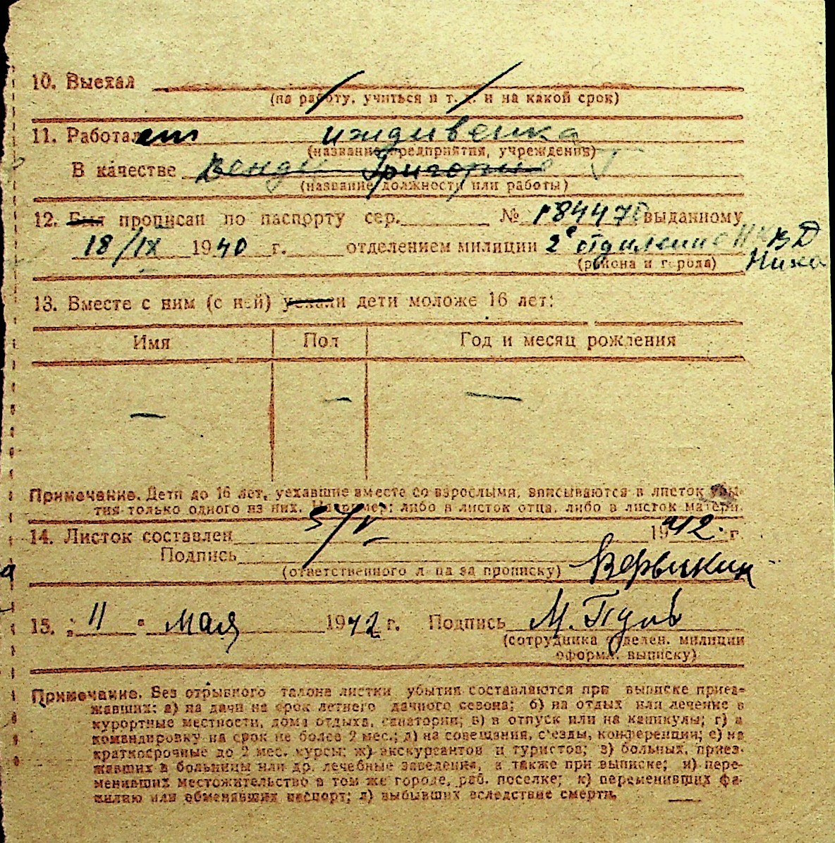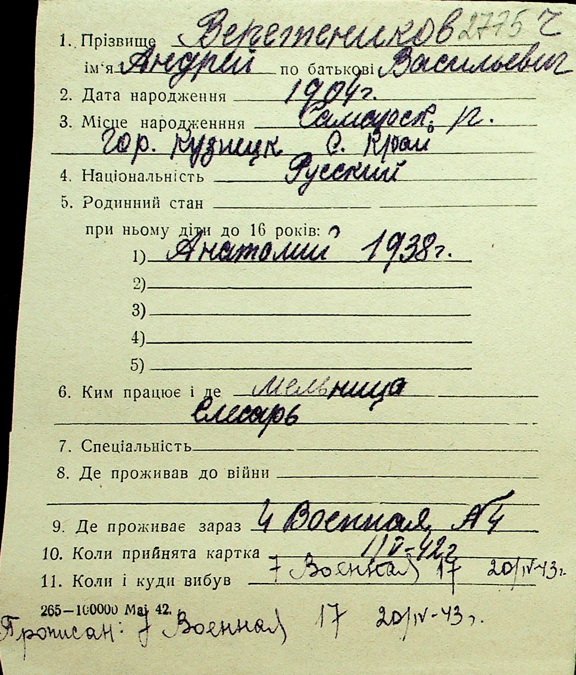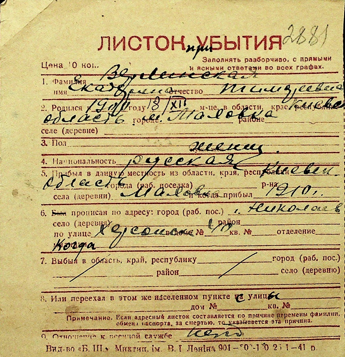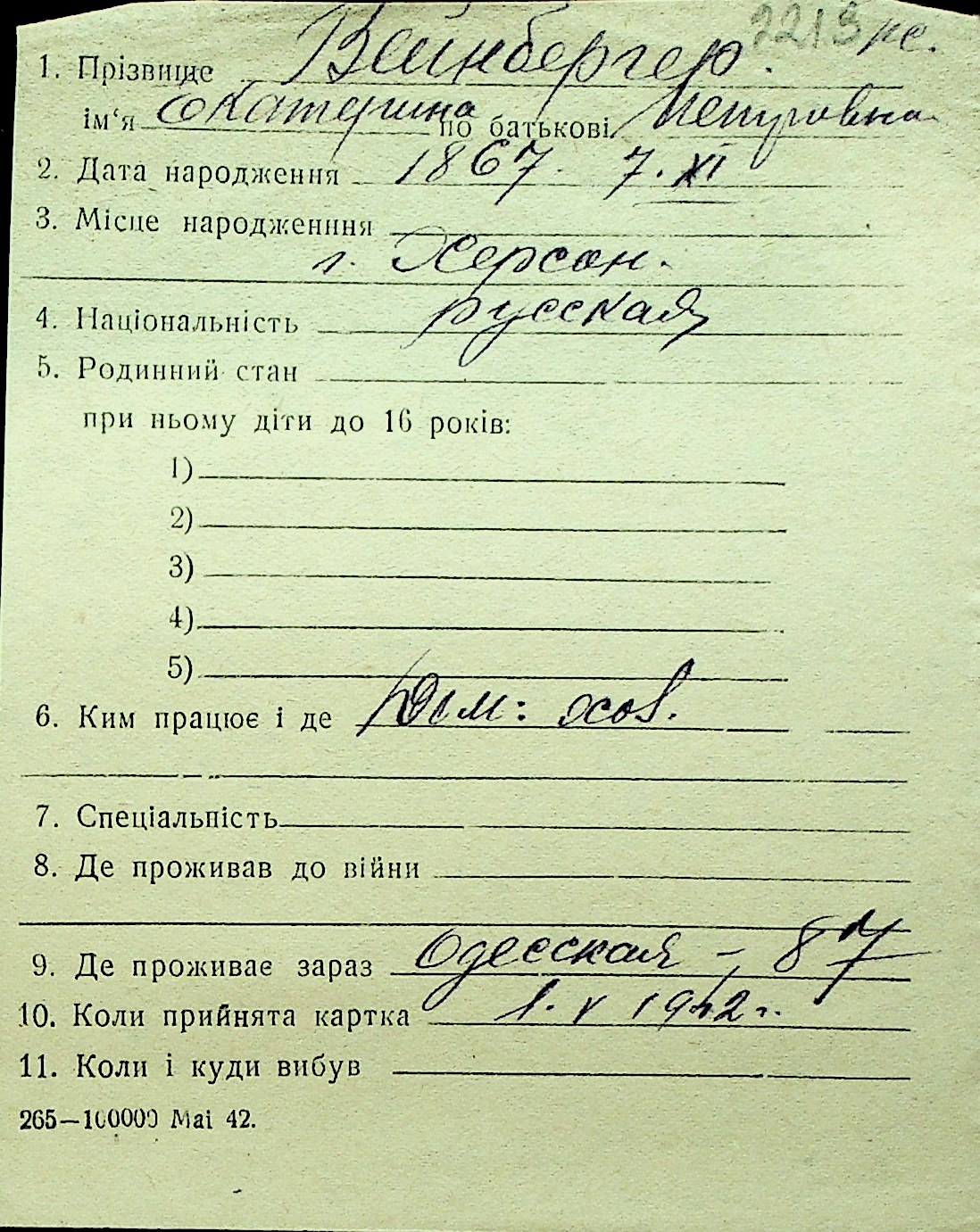 • • Перелік карток до фонду № Н-1016