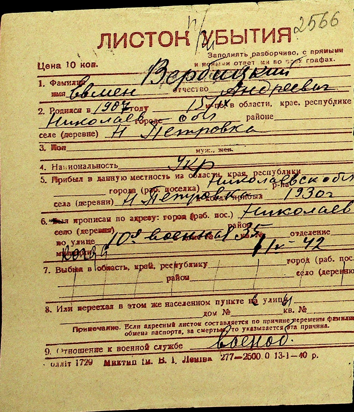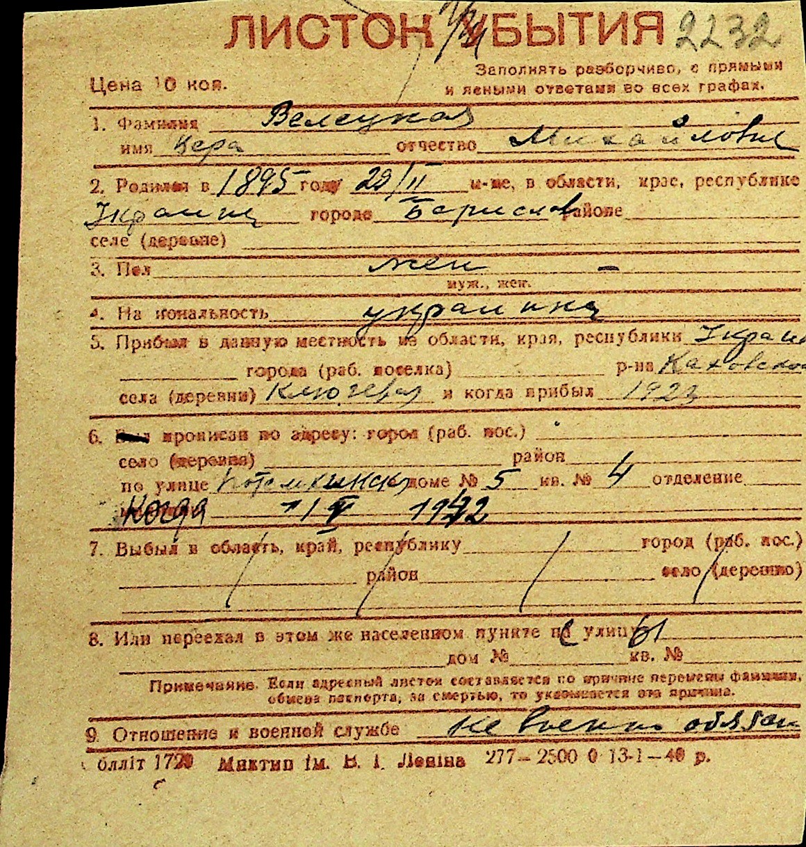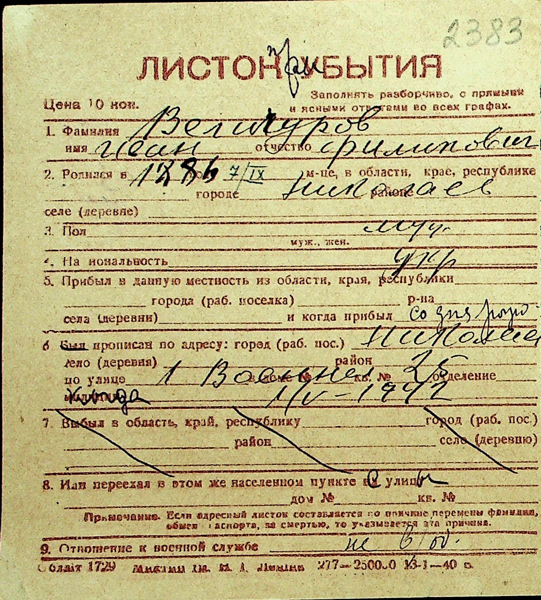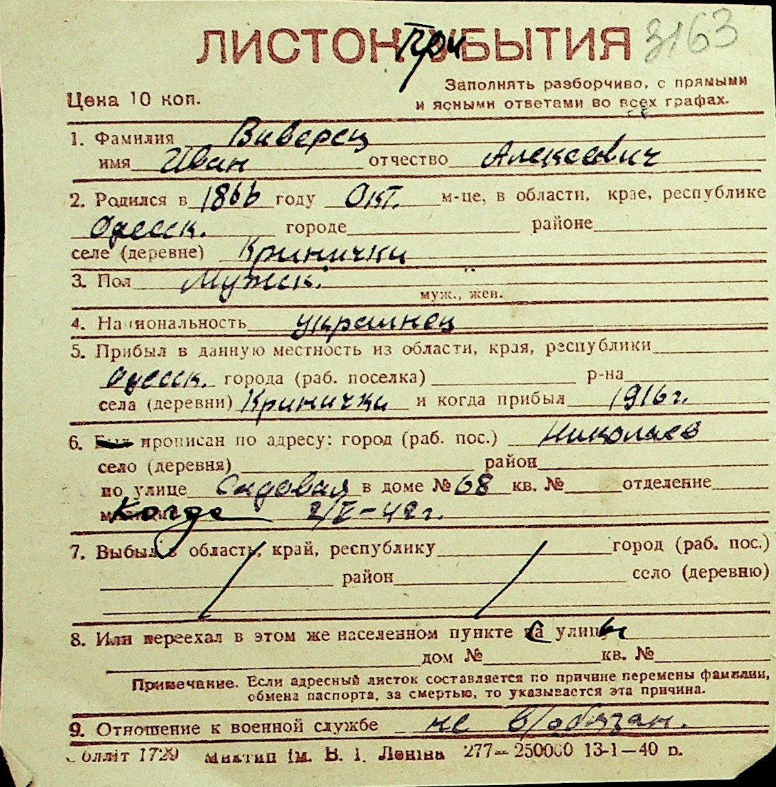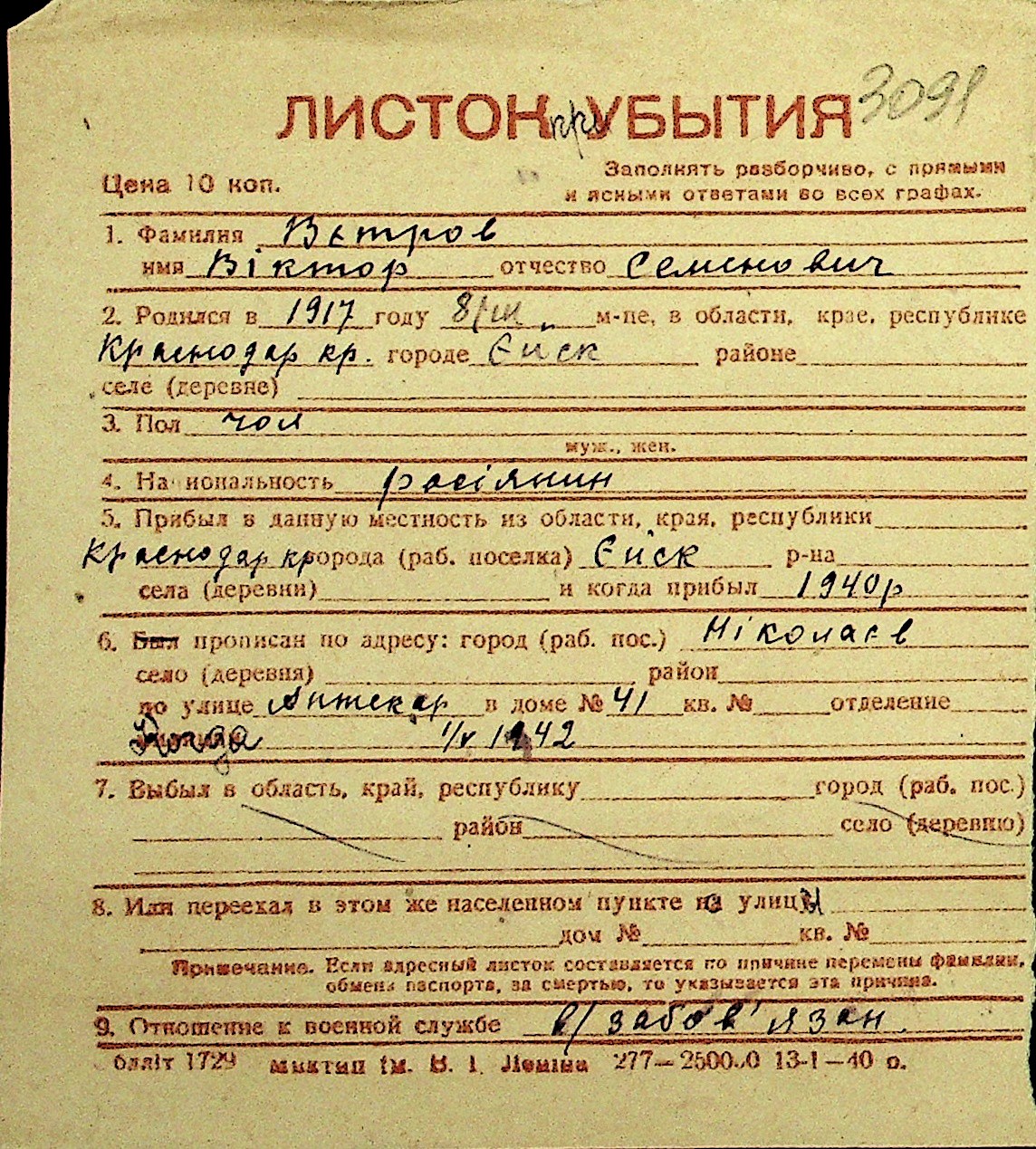 • • Перелік карток до фонду № Н-1016