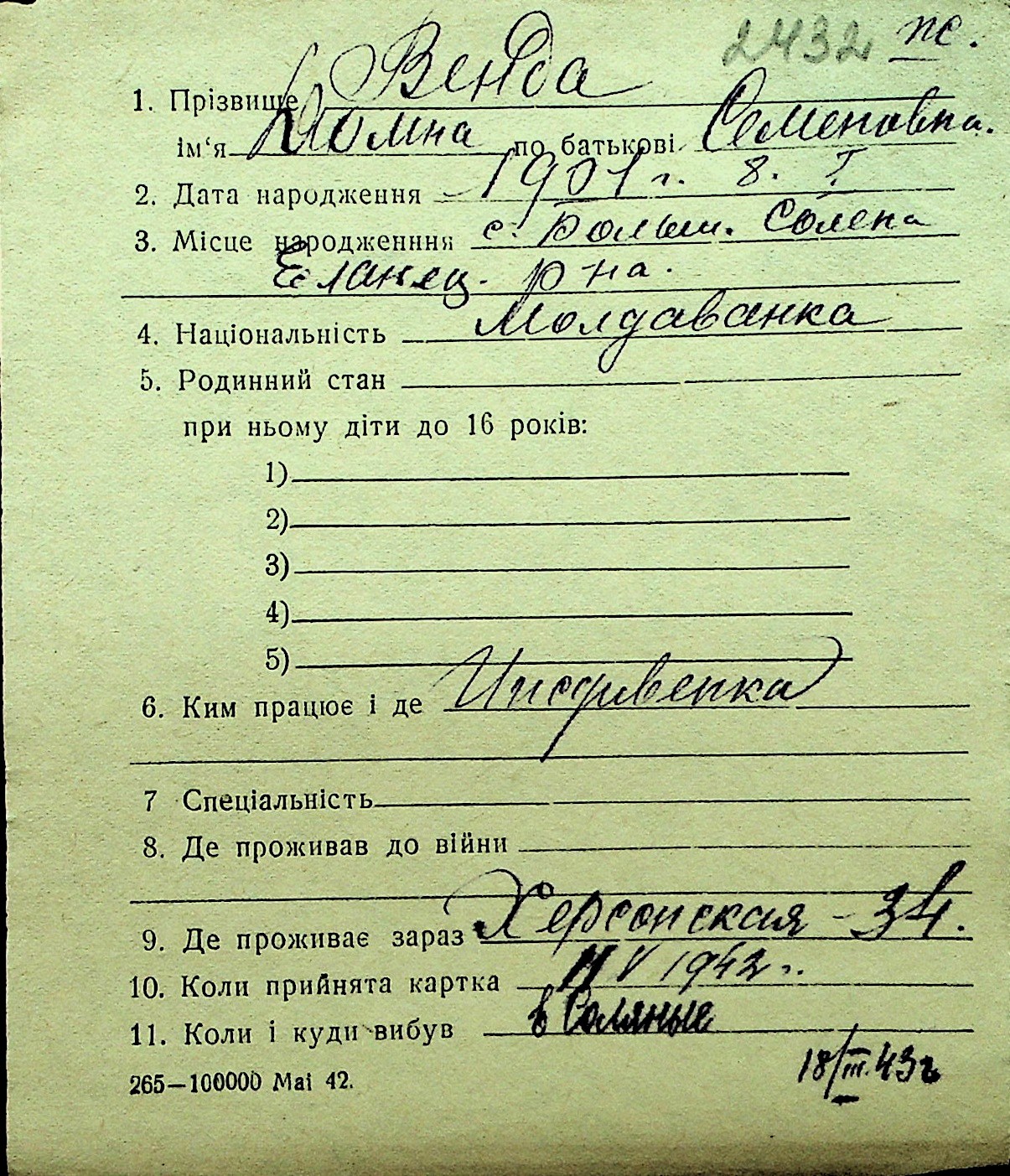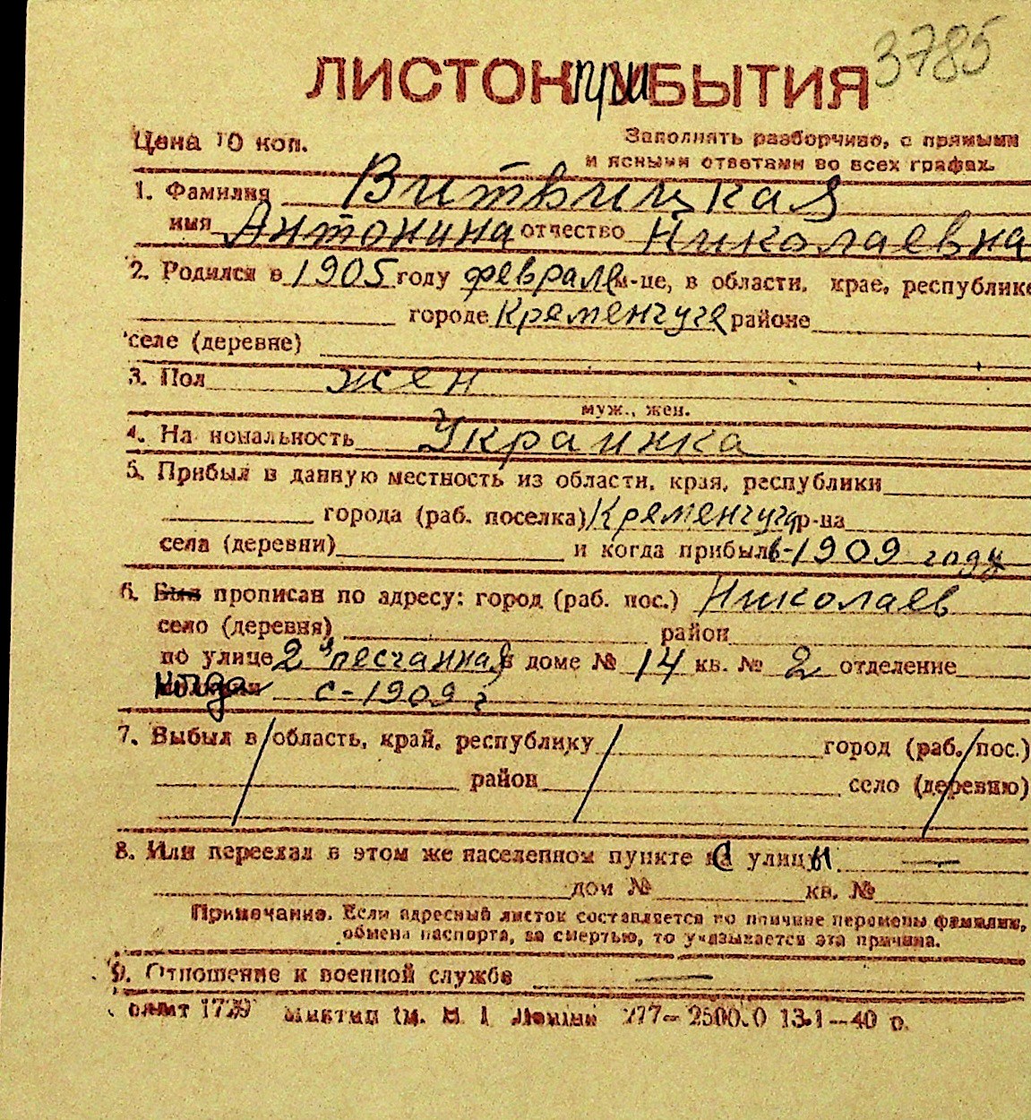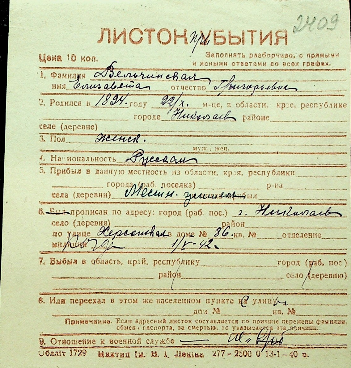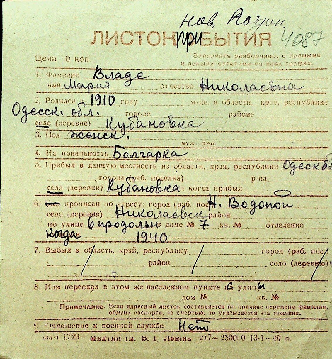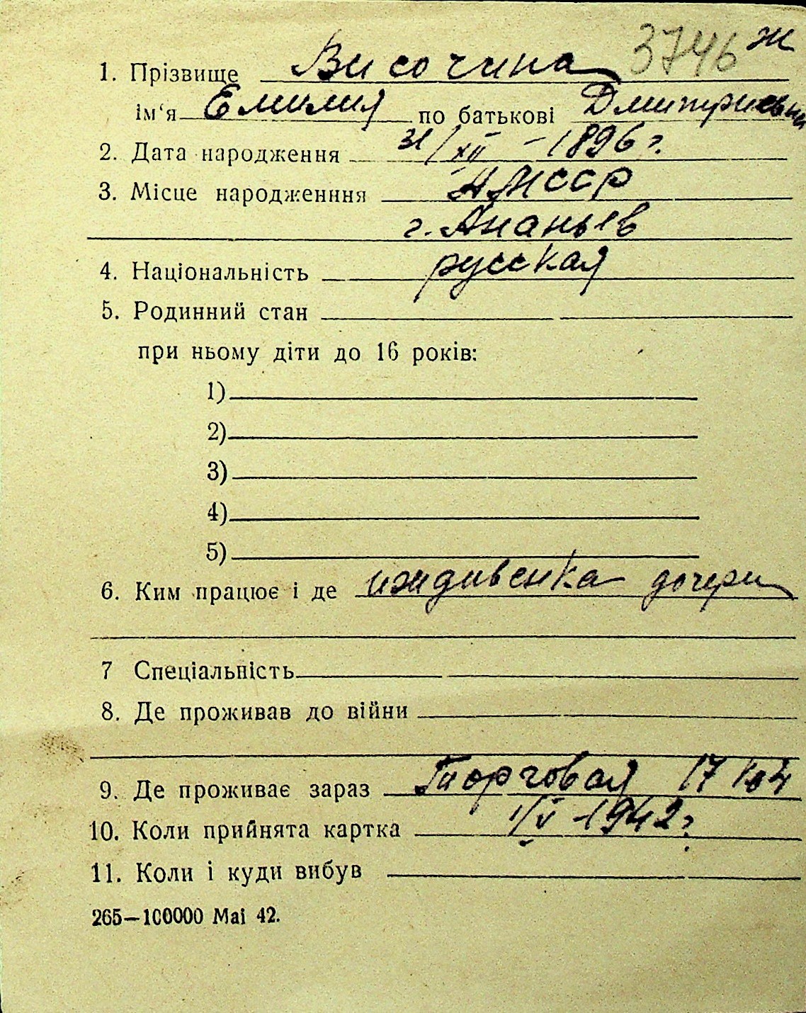 • • Перелік карток до фонду № Н-1016