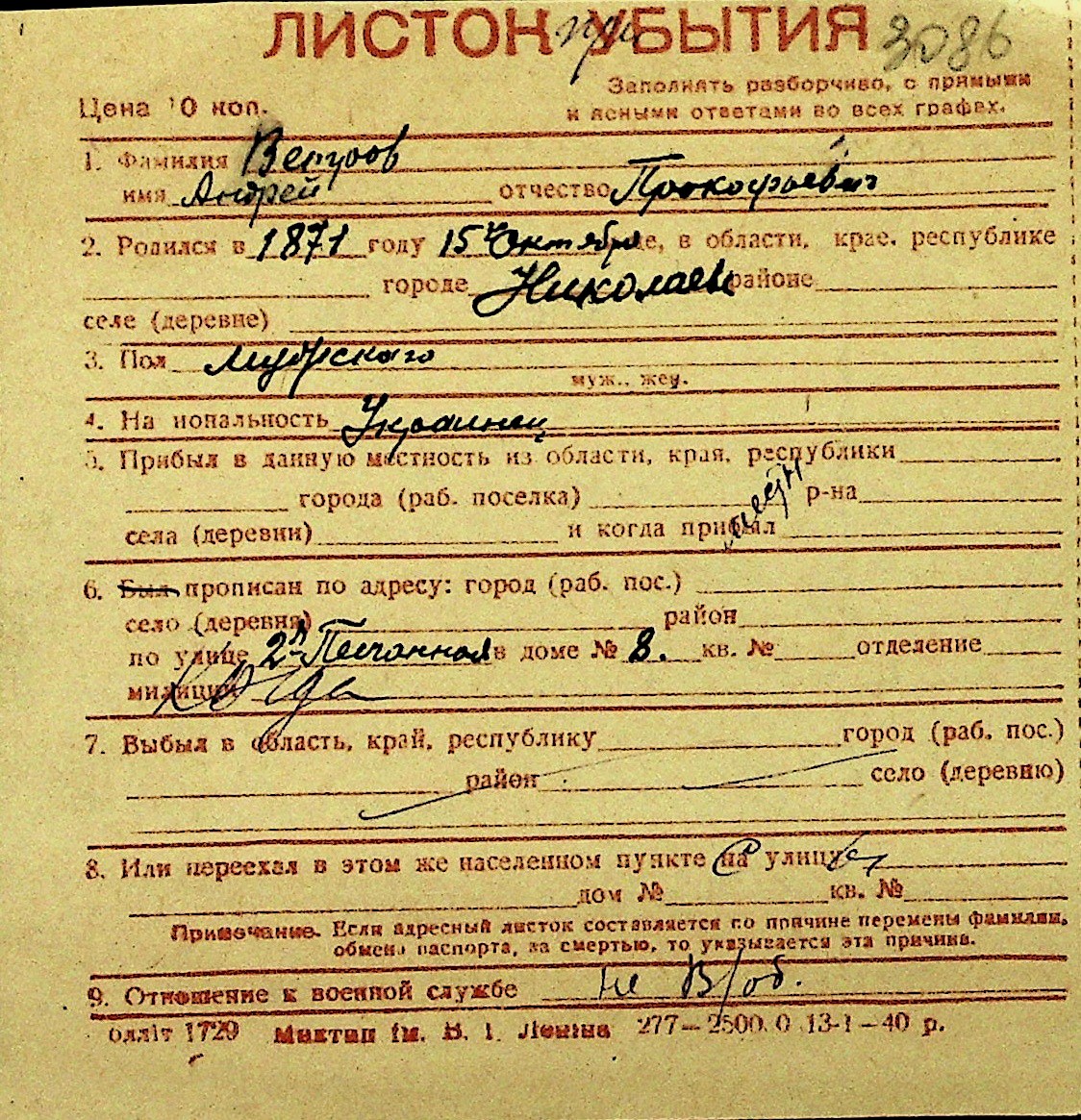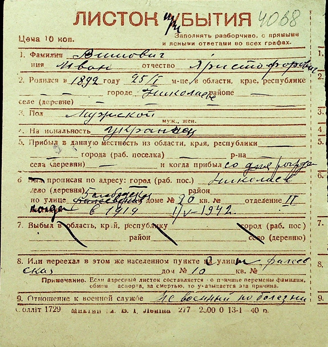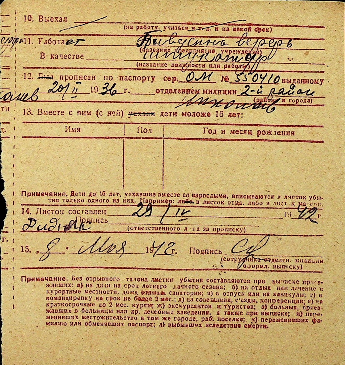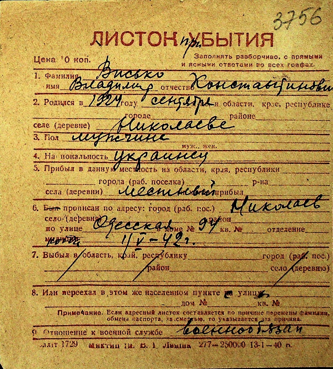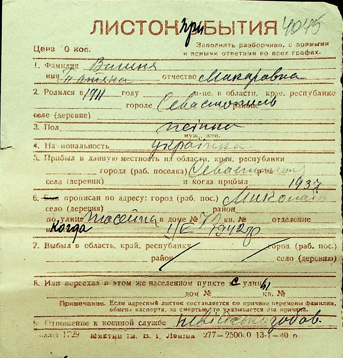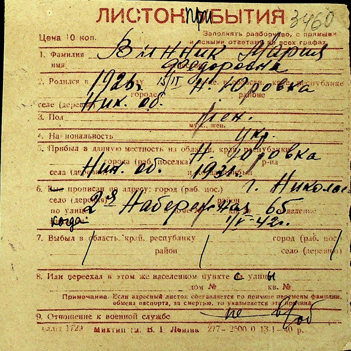 • • Перелік карток до фонду № Н-1016