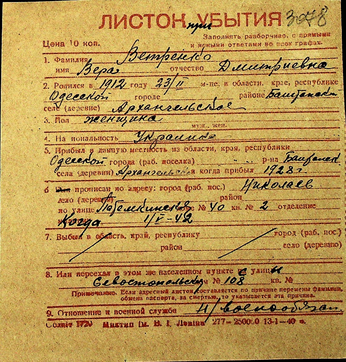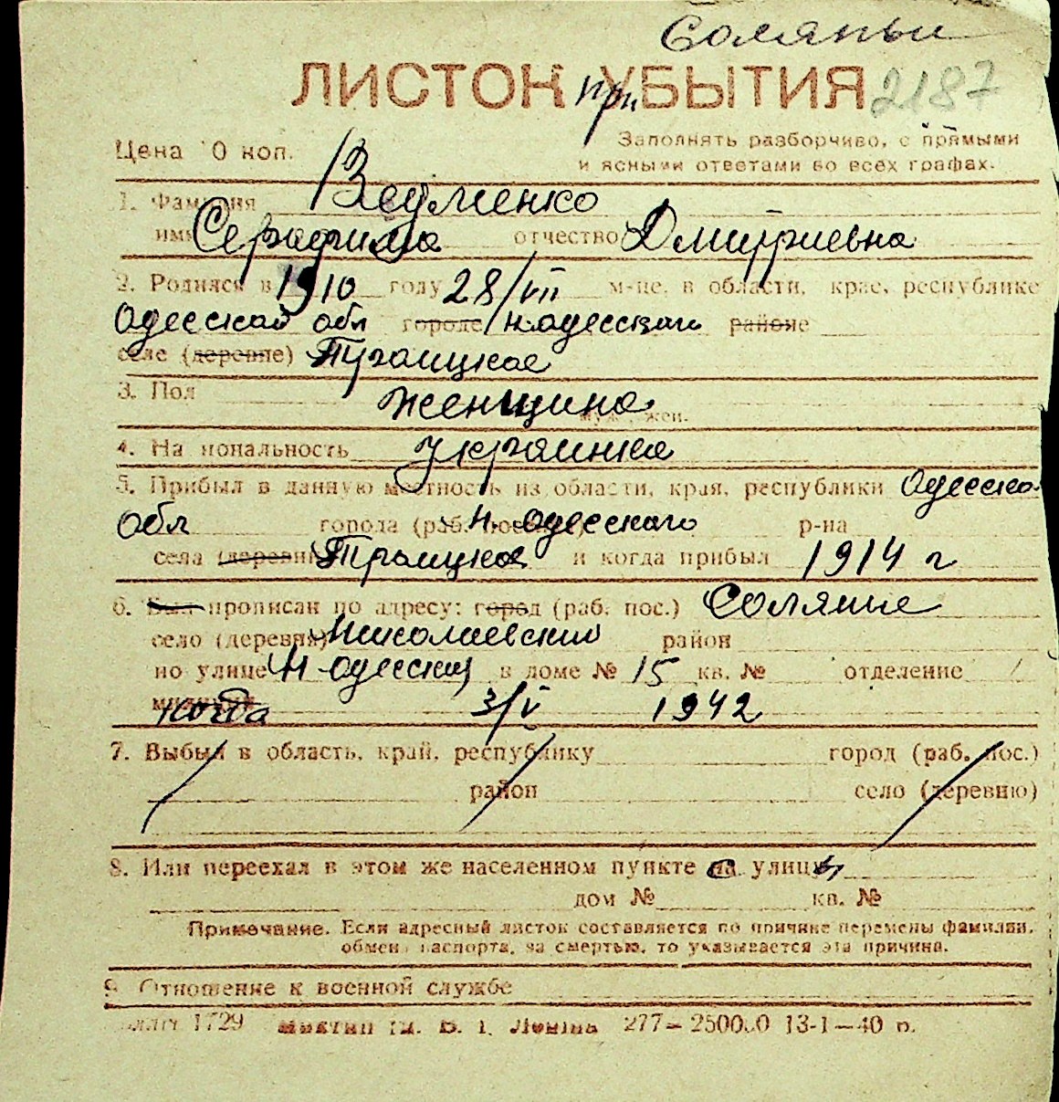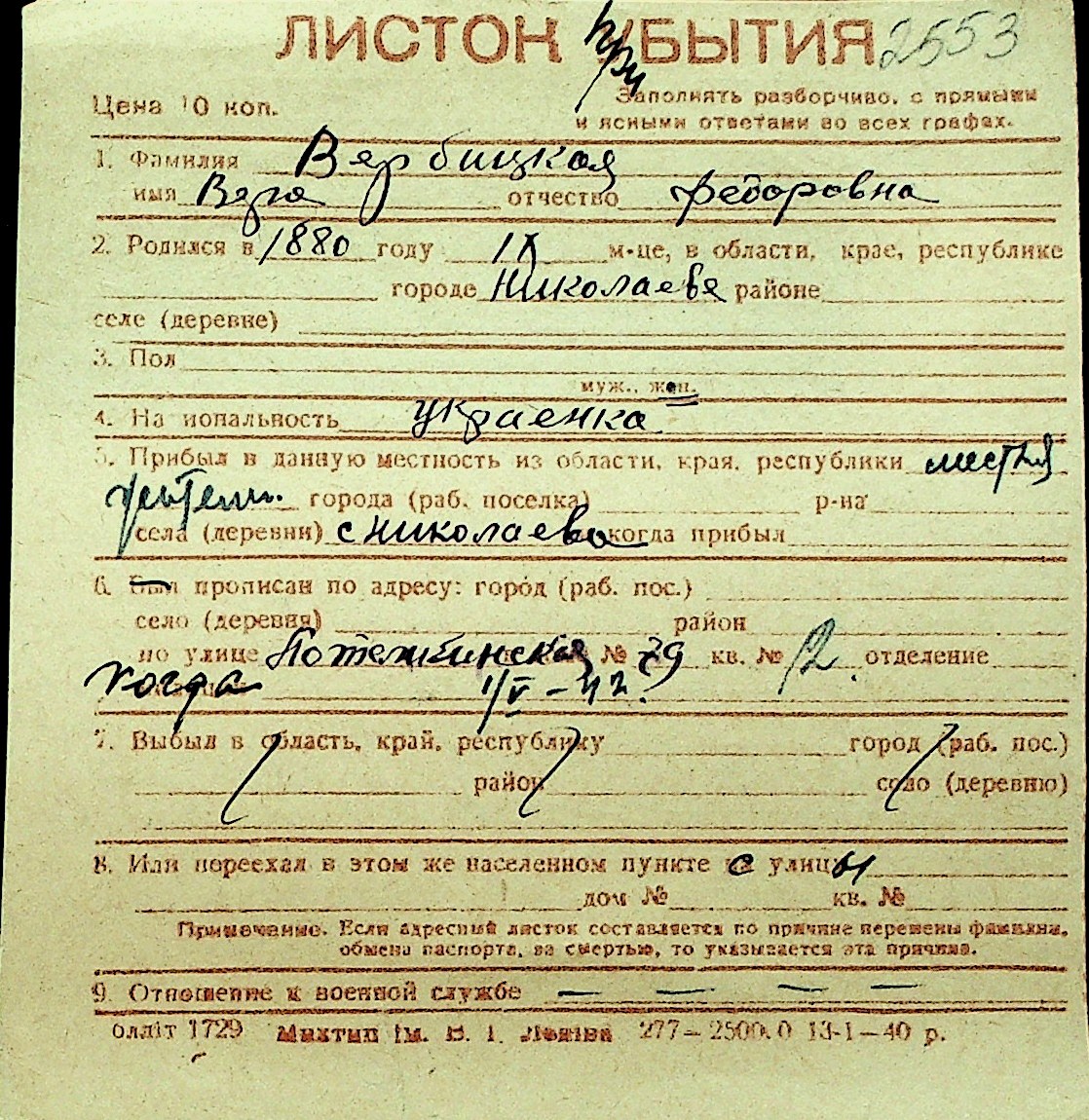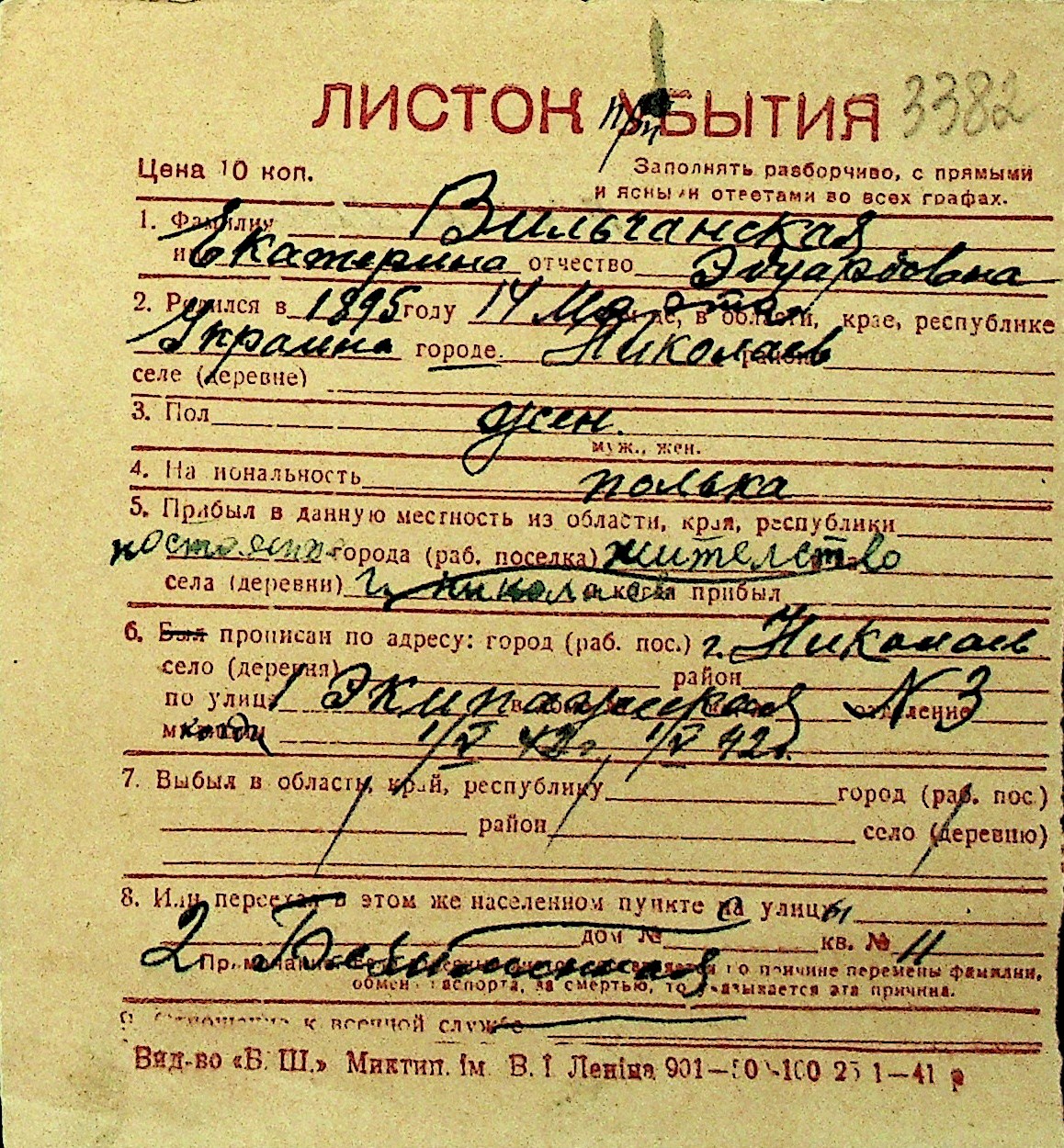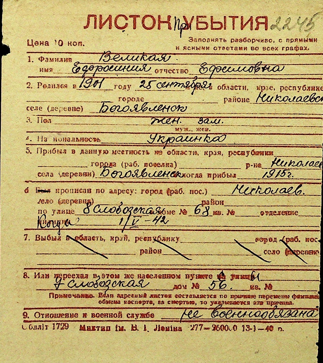• • Перелік карток до фонду № Н-1016