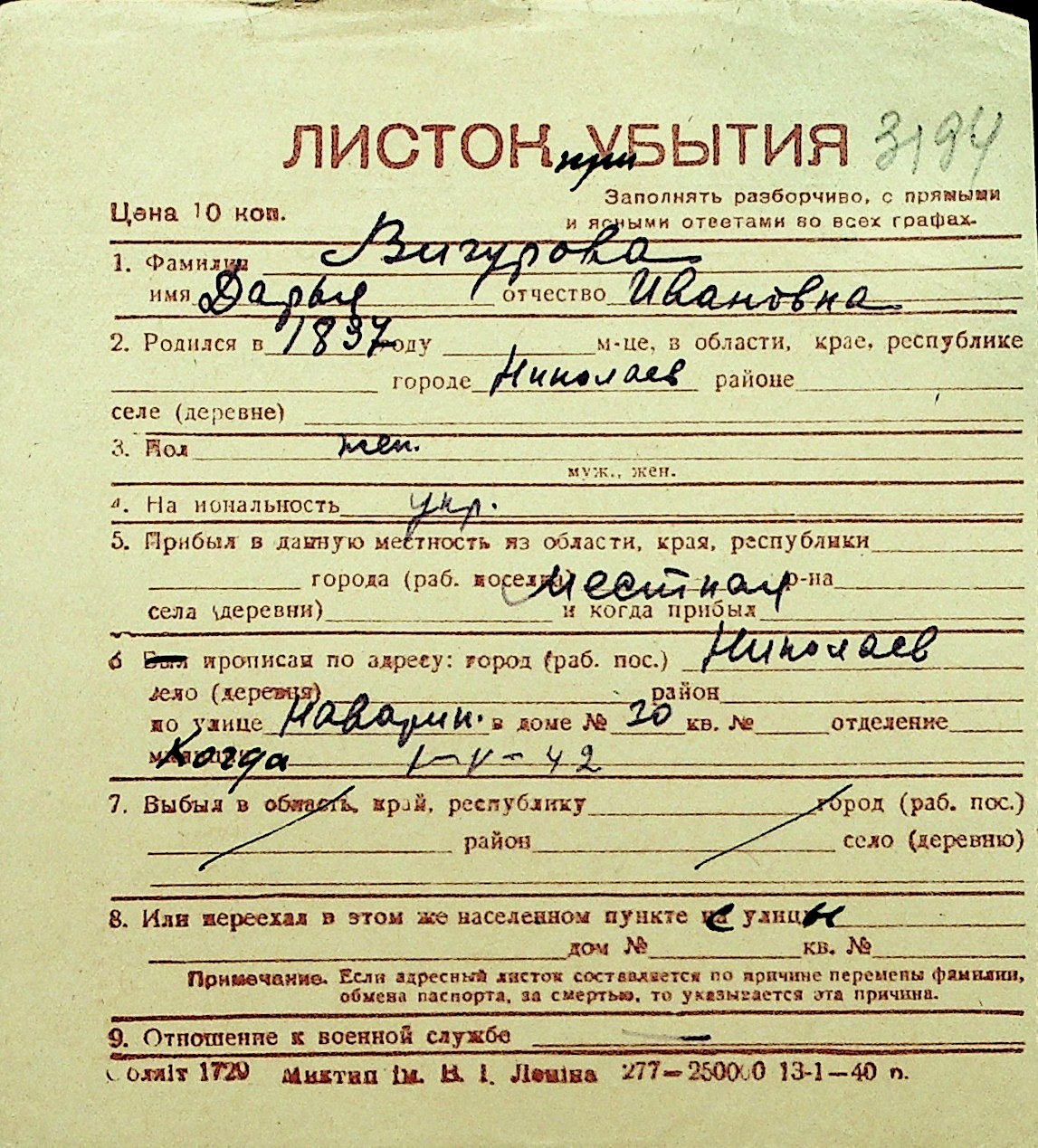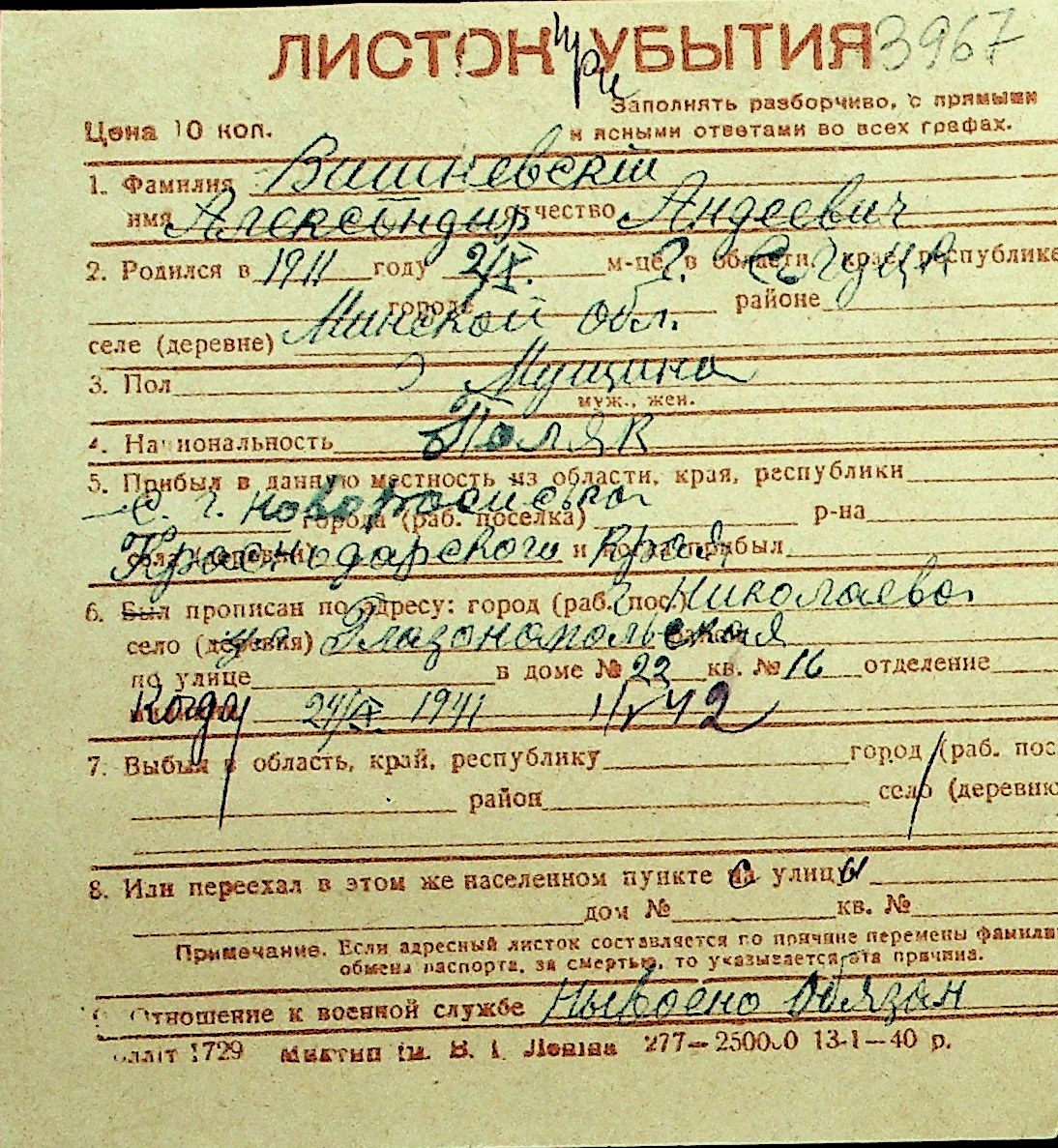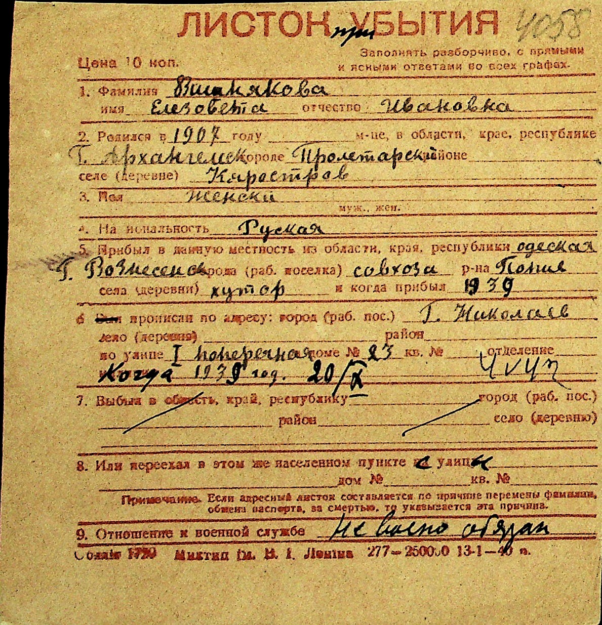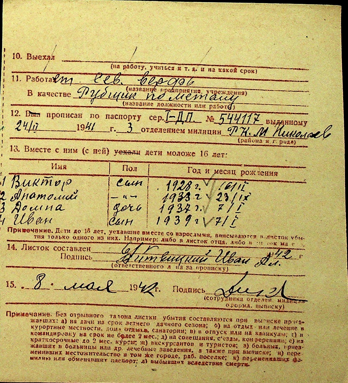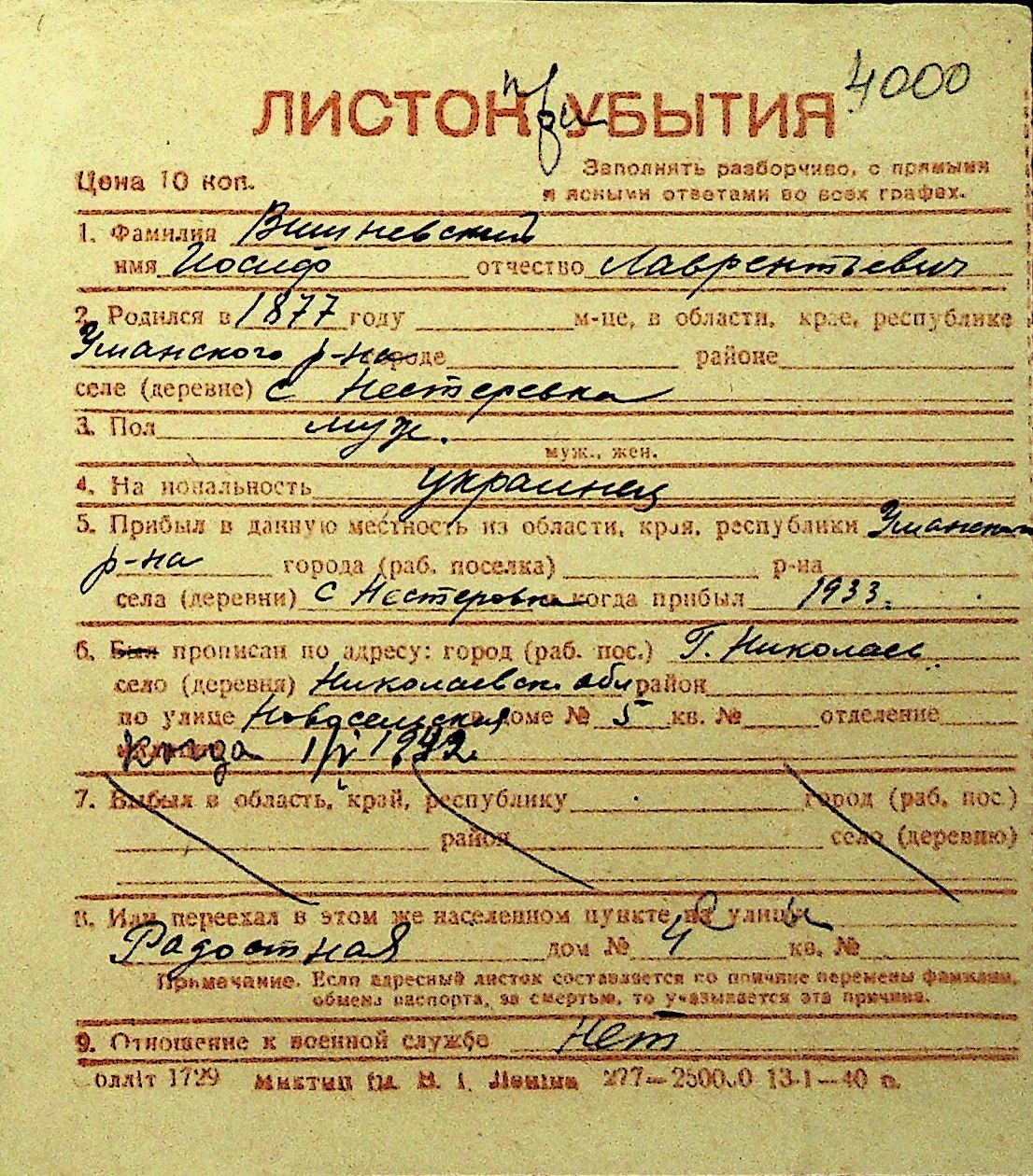 • • Перелік карток до фонду № Н-1016
