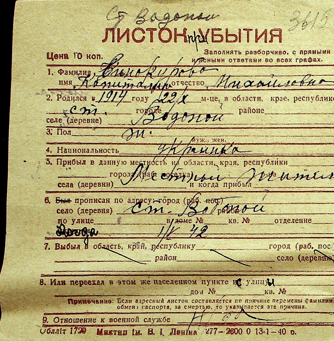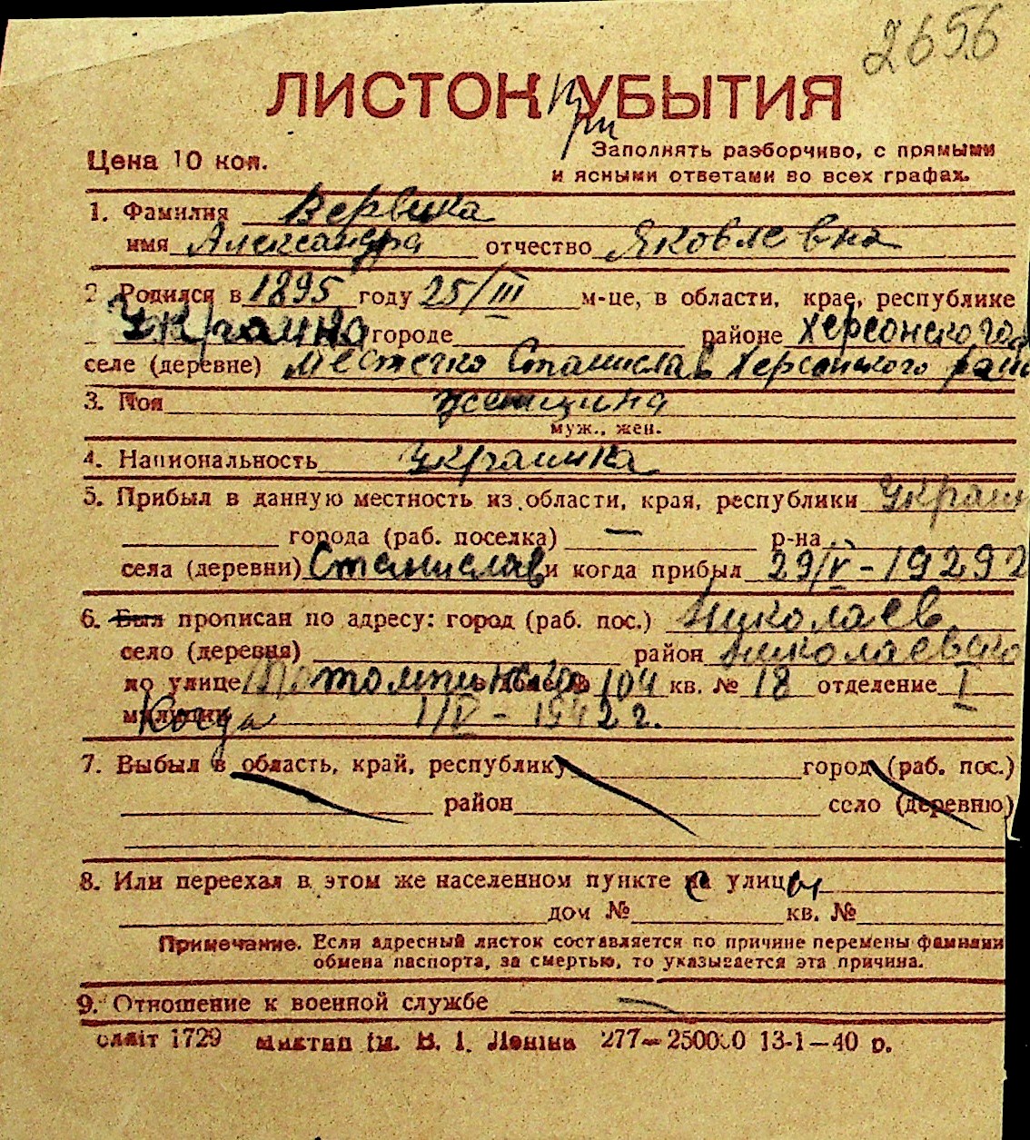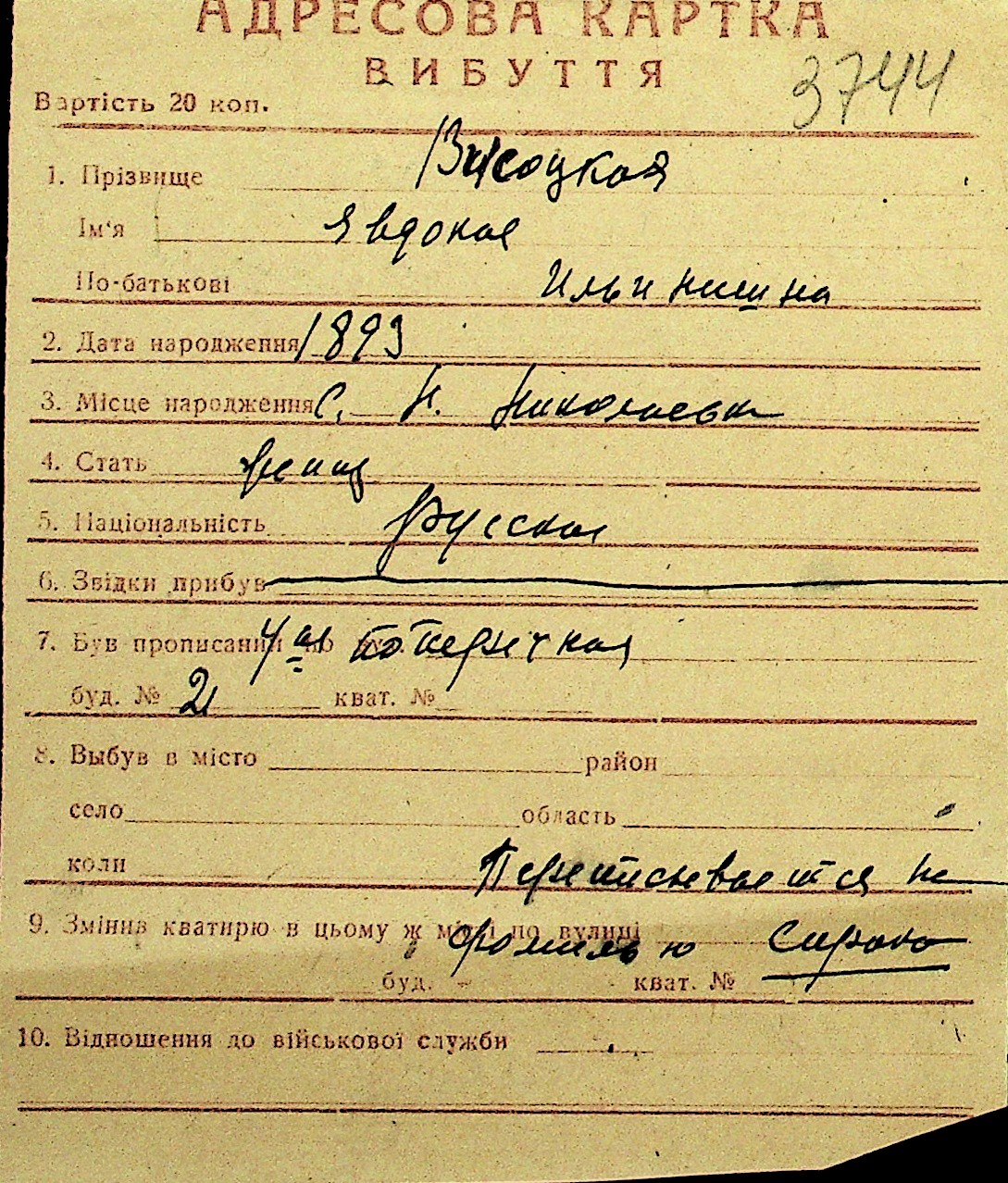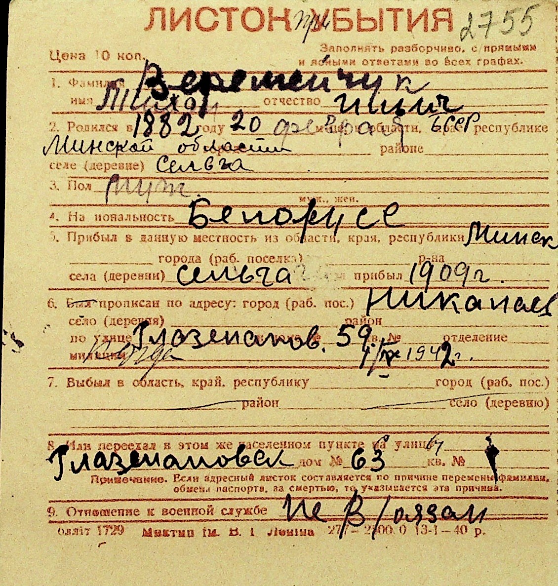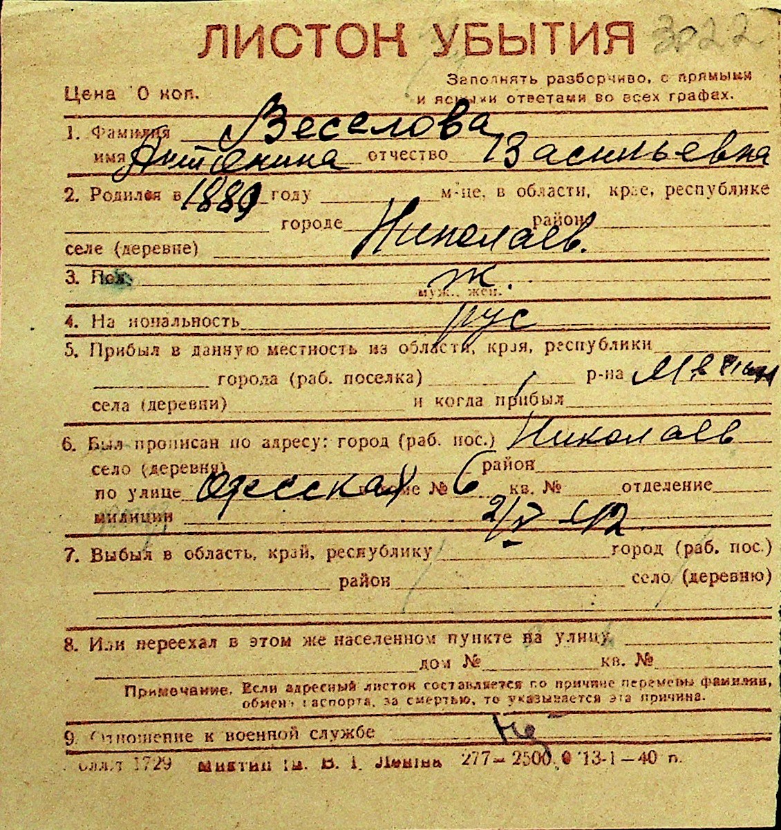 • • Перелік карток до фонду № Н-1016