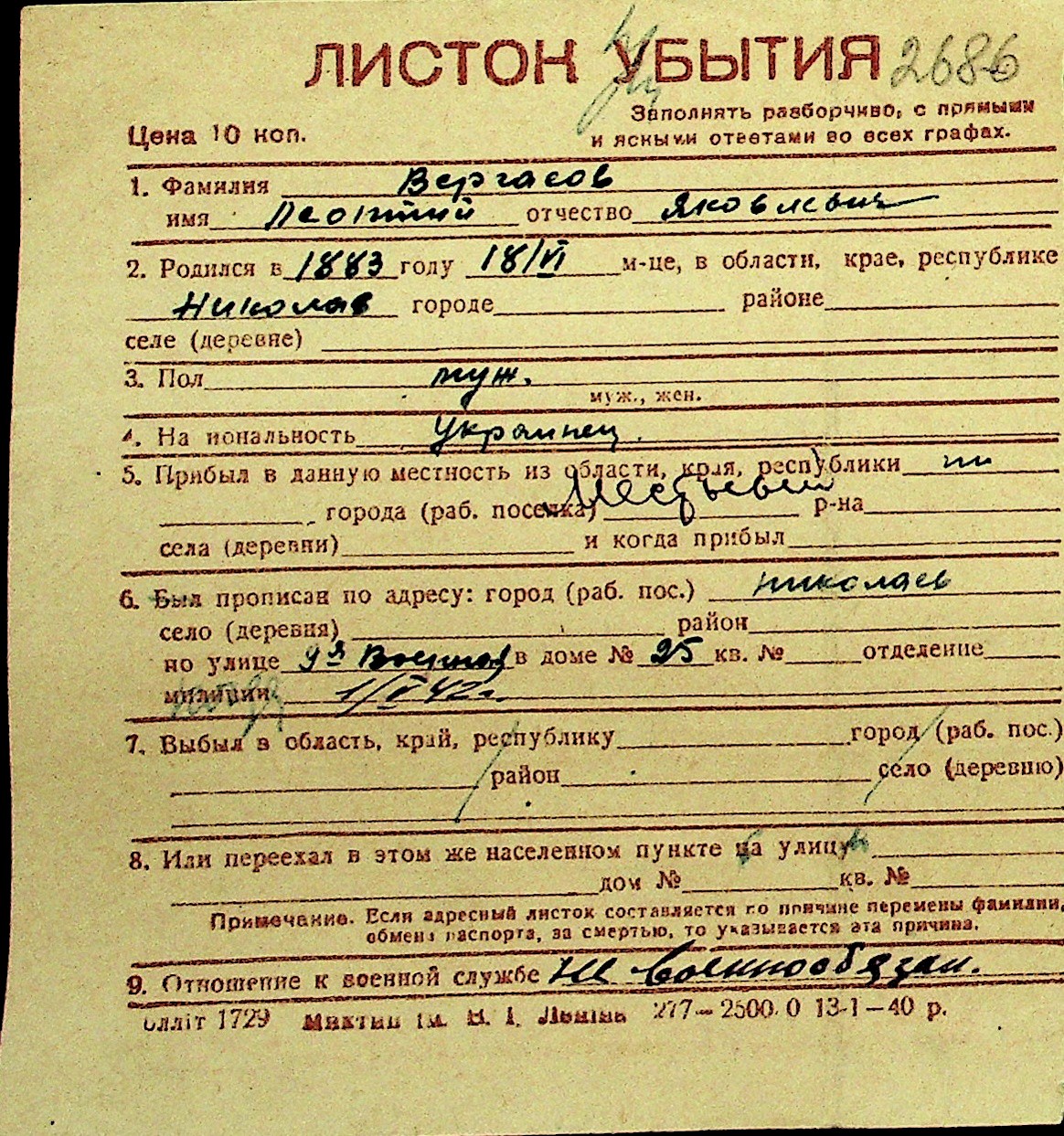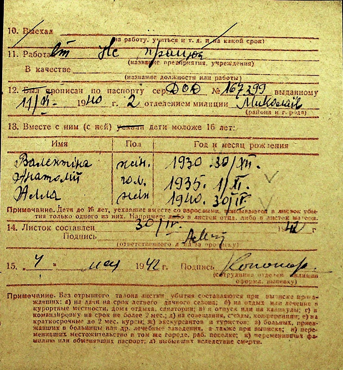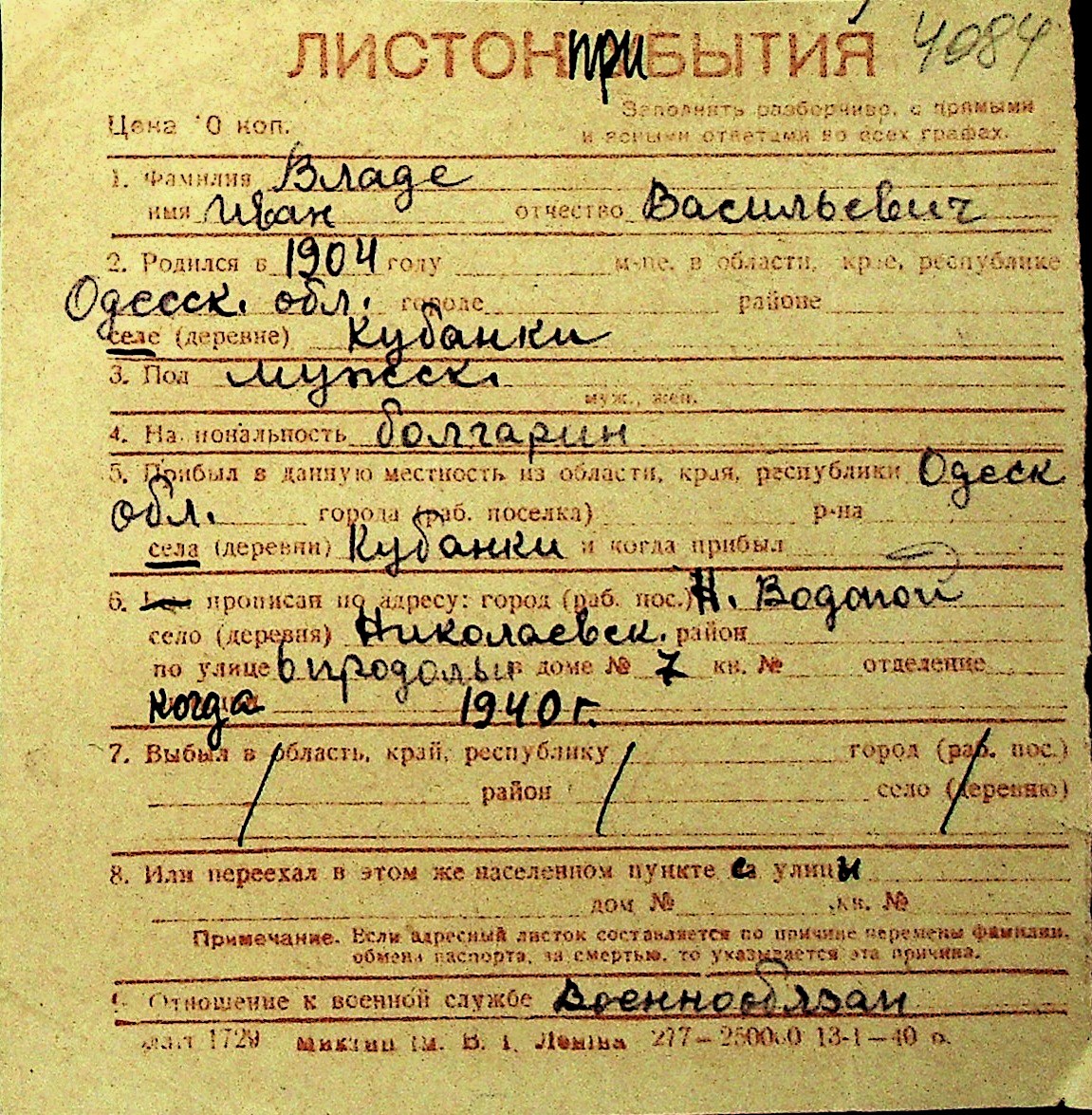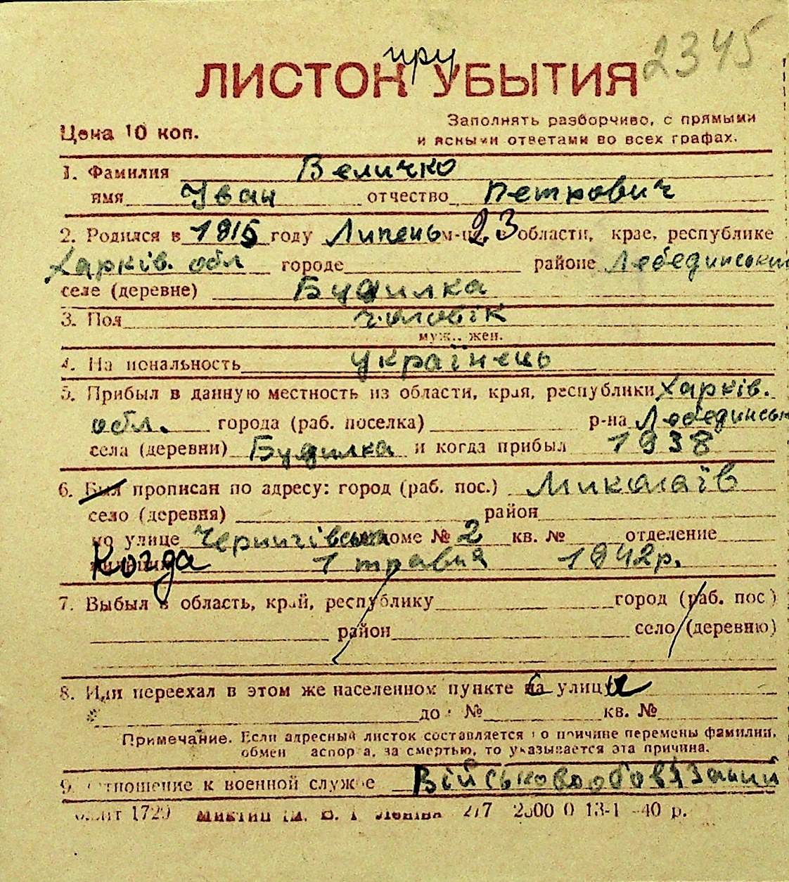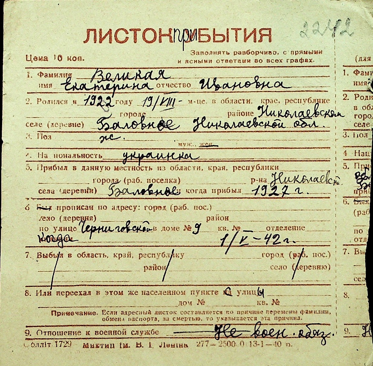 • • Перелік карток до фонду № Н-1016