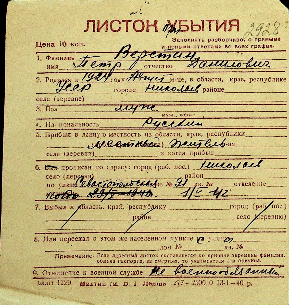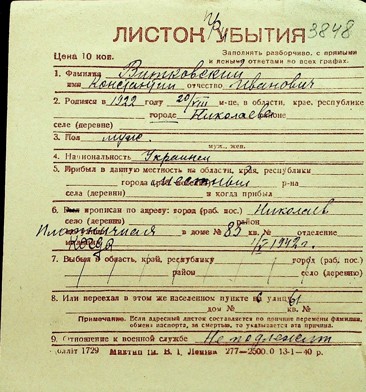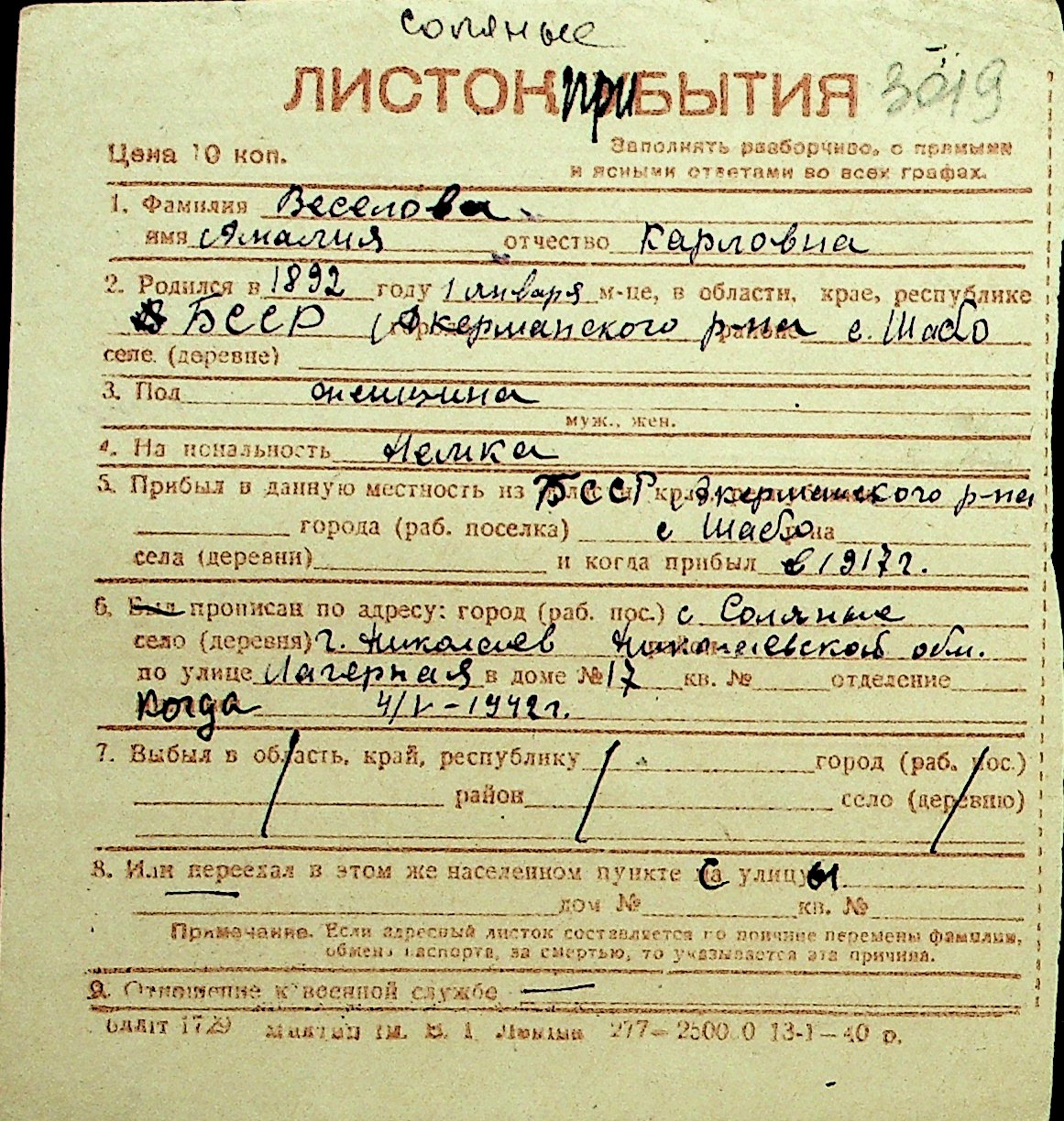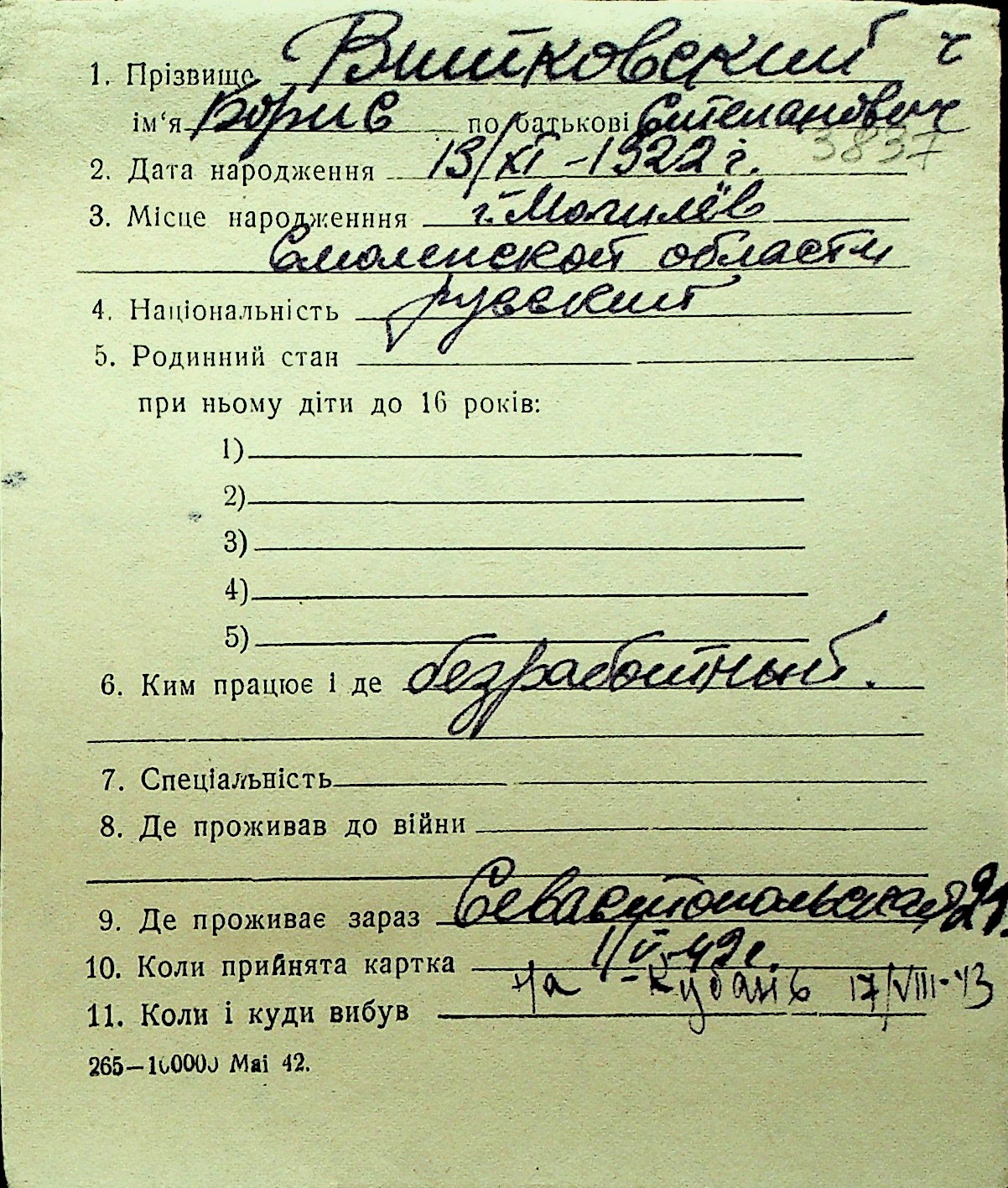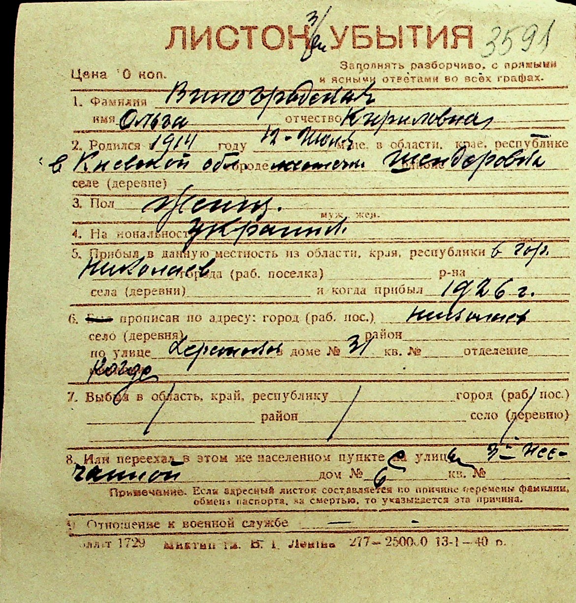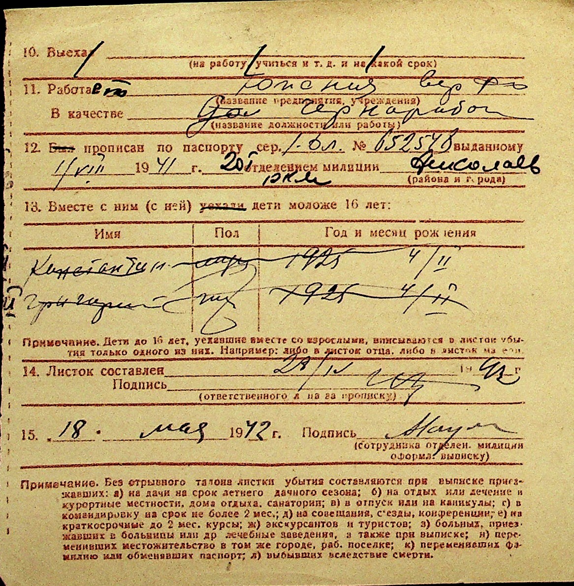 • • Перелік карток до фонду № Н-1016