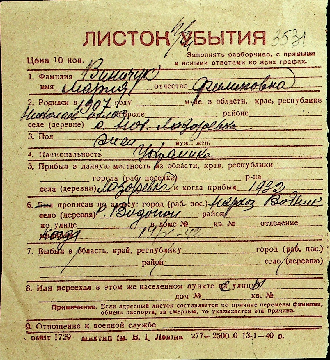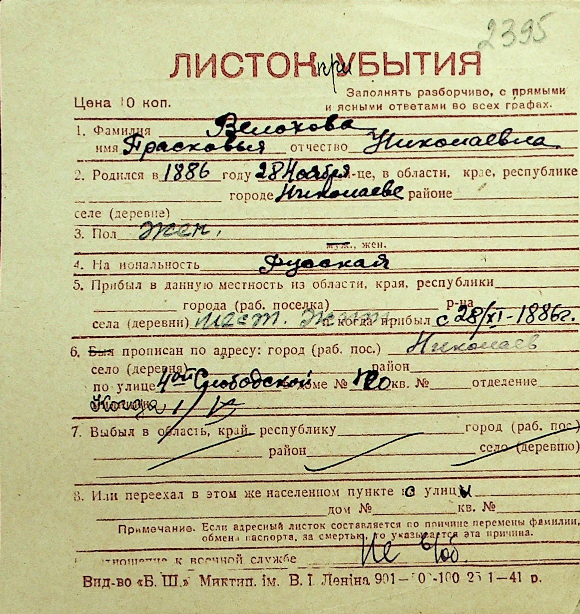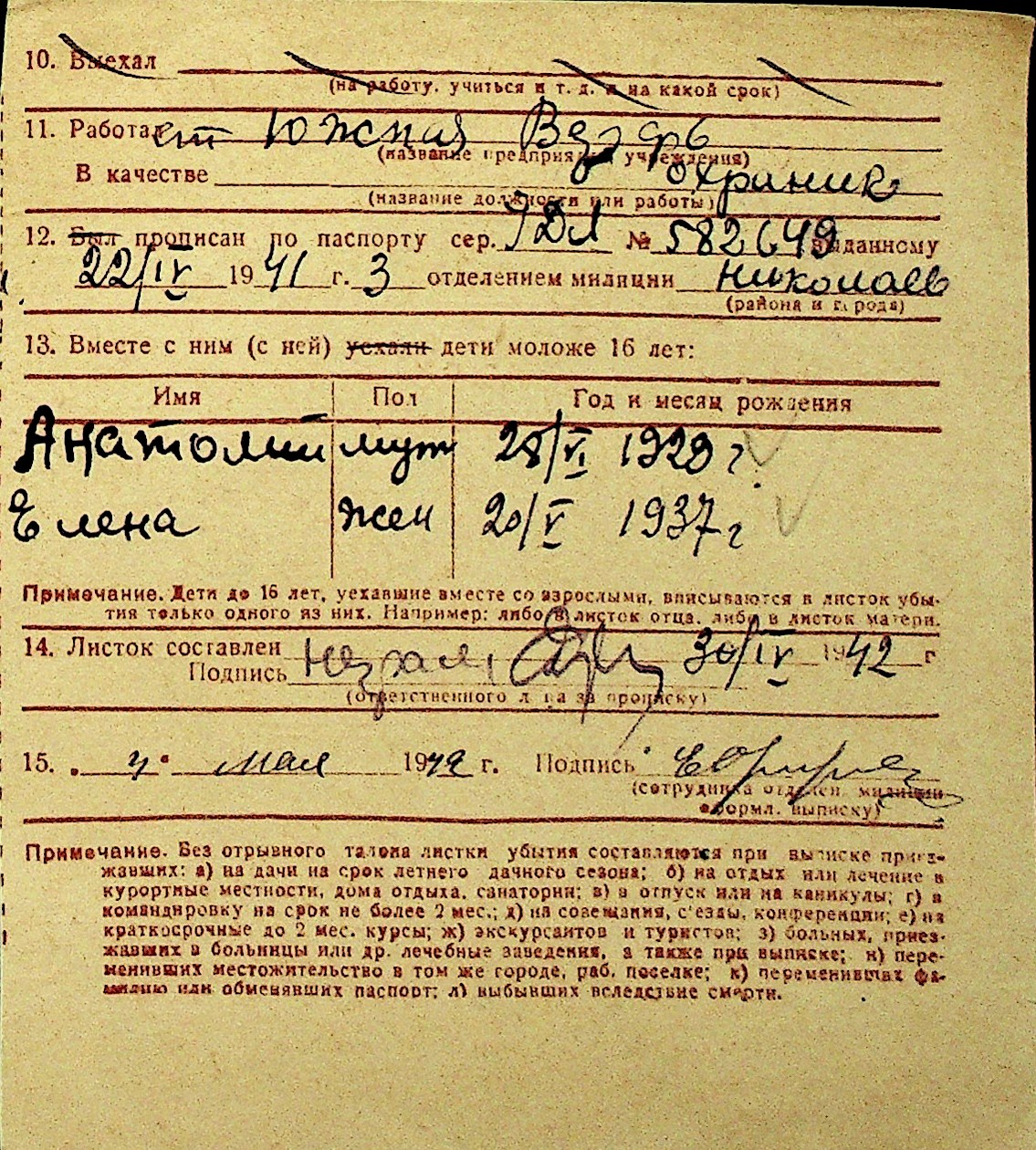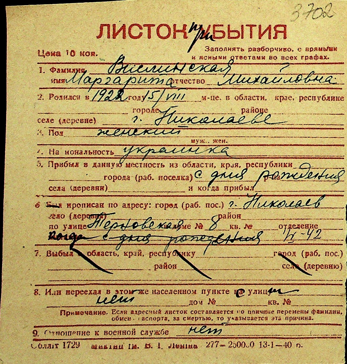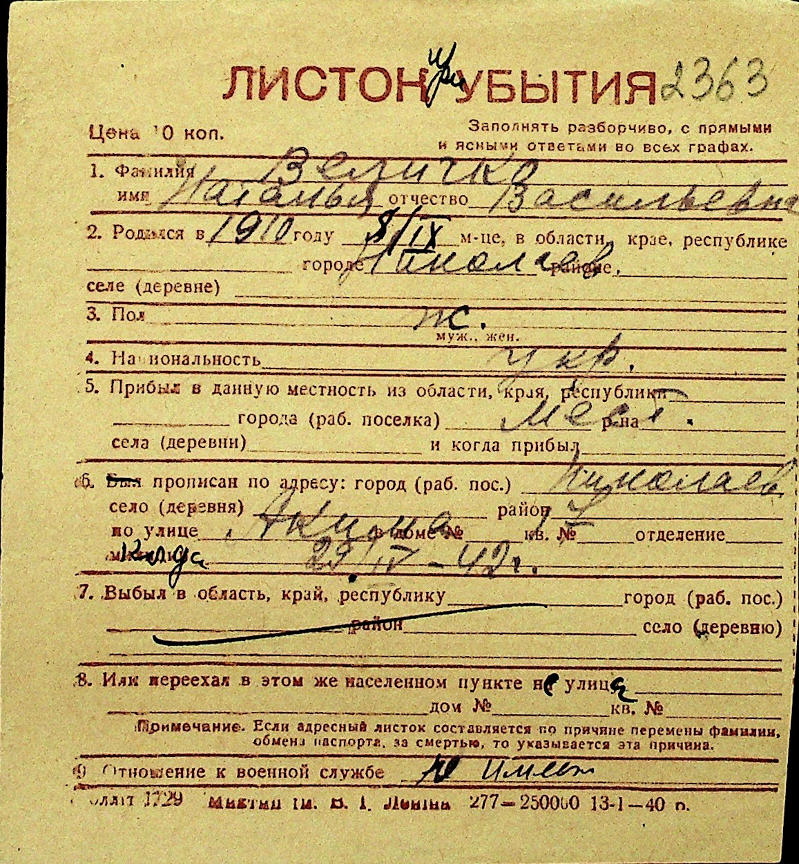 • • Перелік карток до фонду № Н-1016