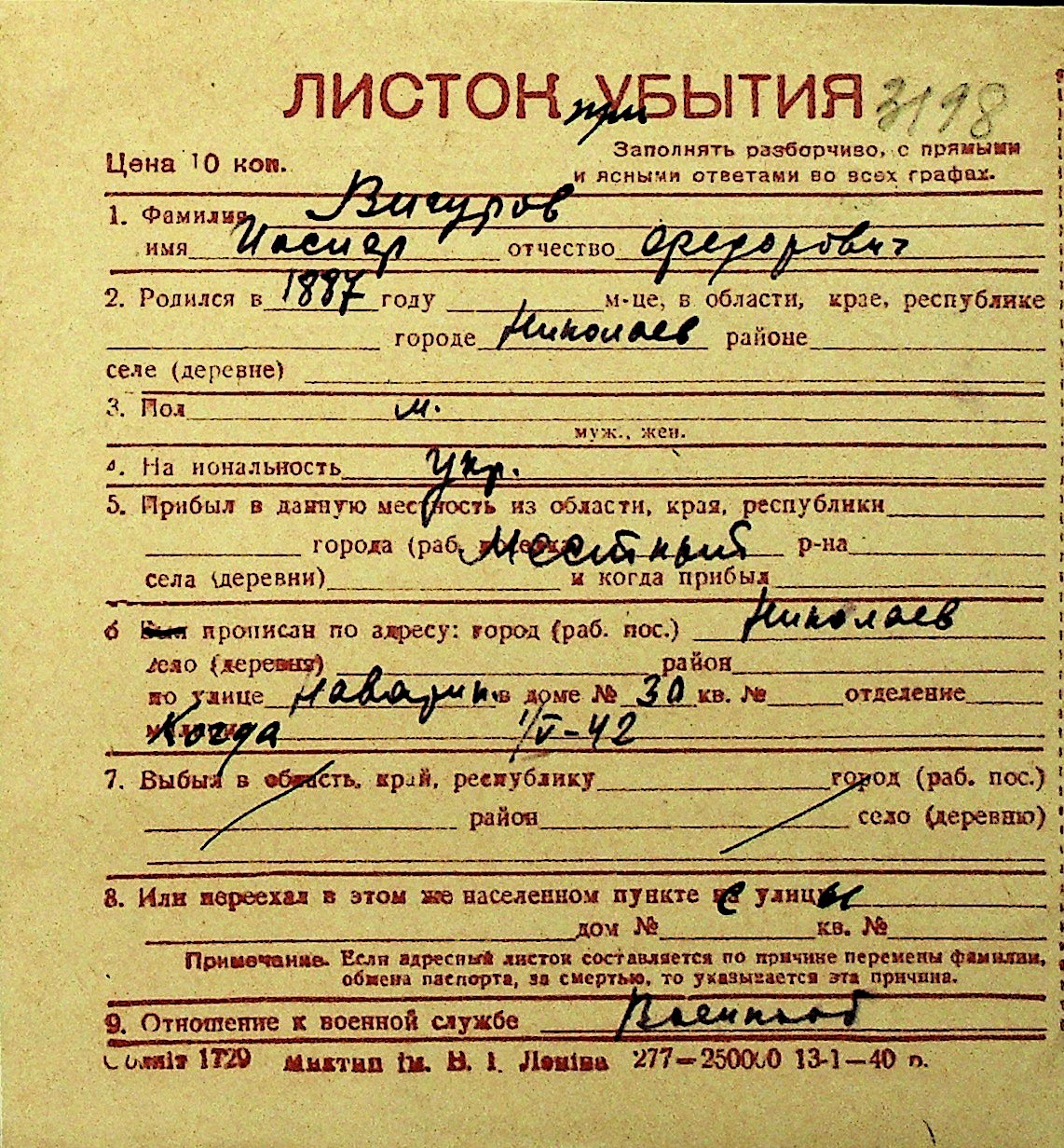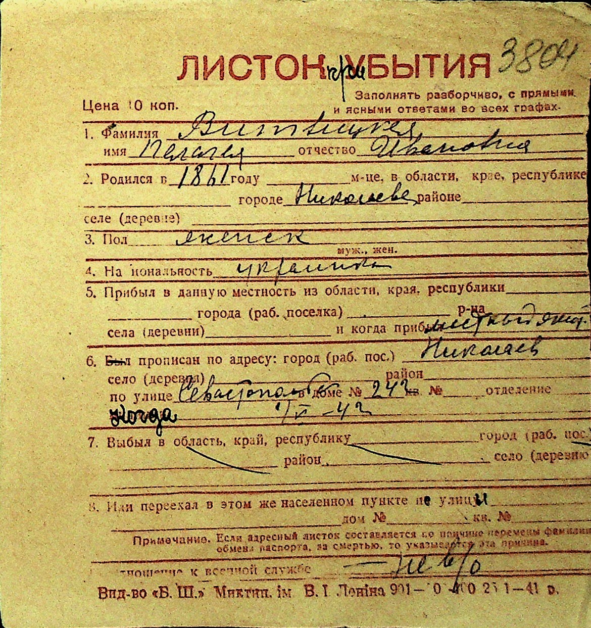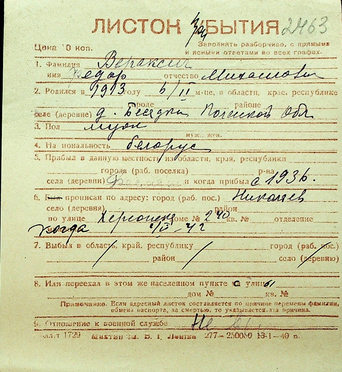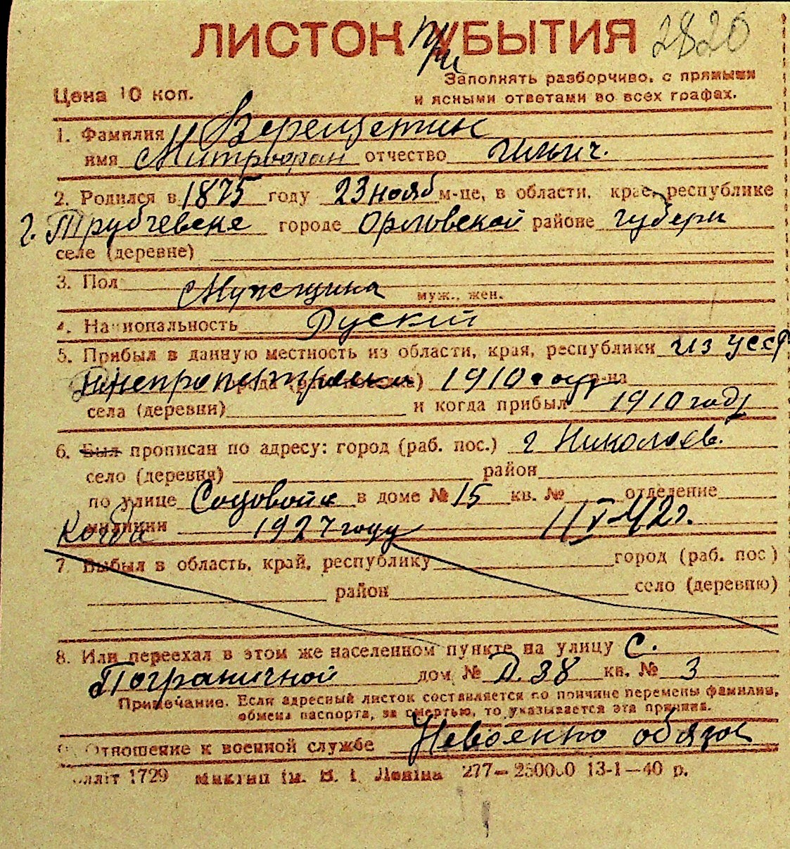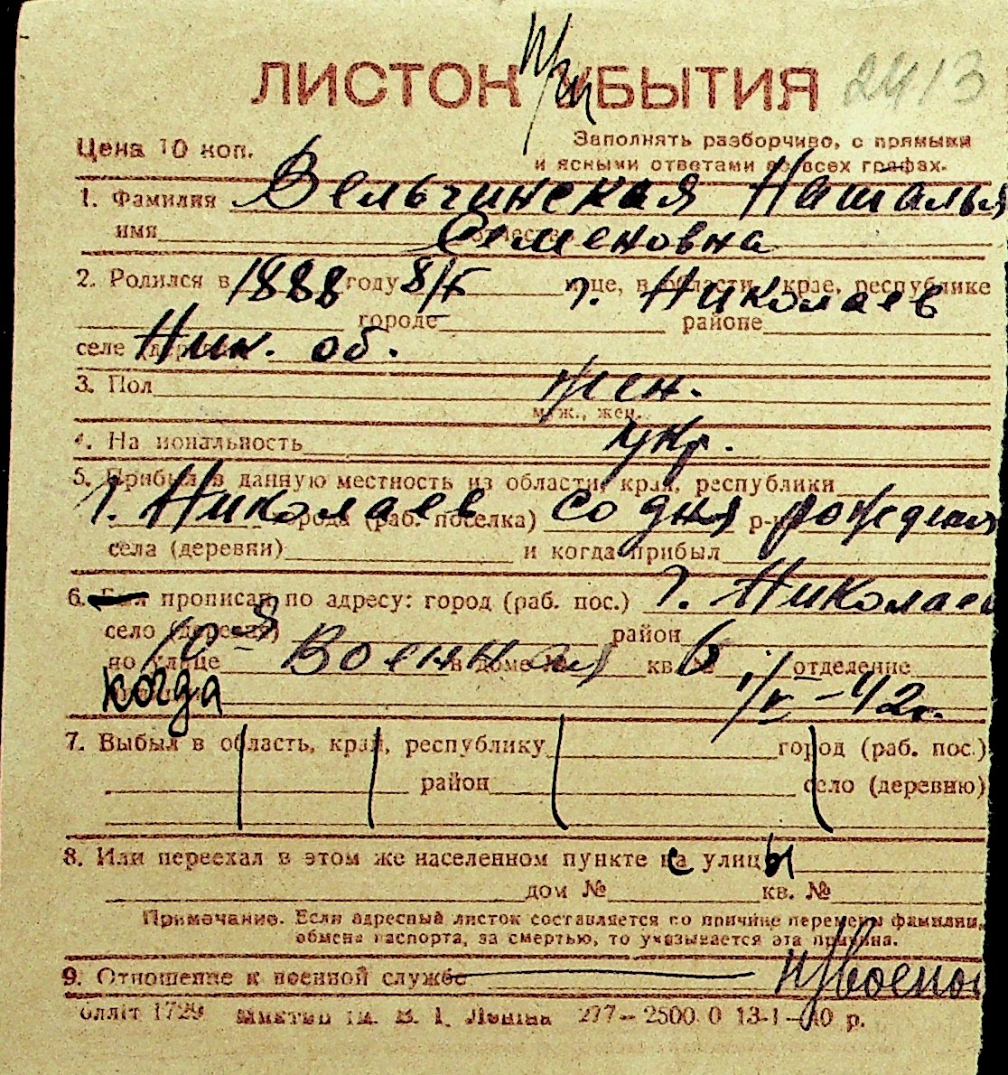 • • Перелік карток до фонду № Н-1016