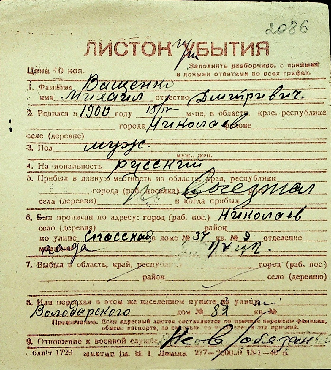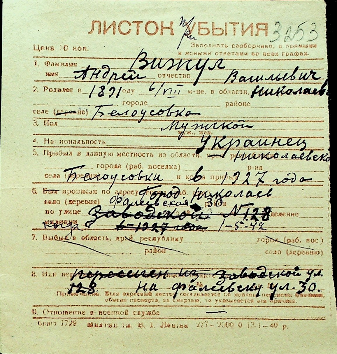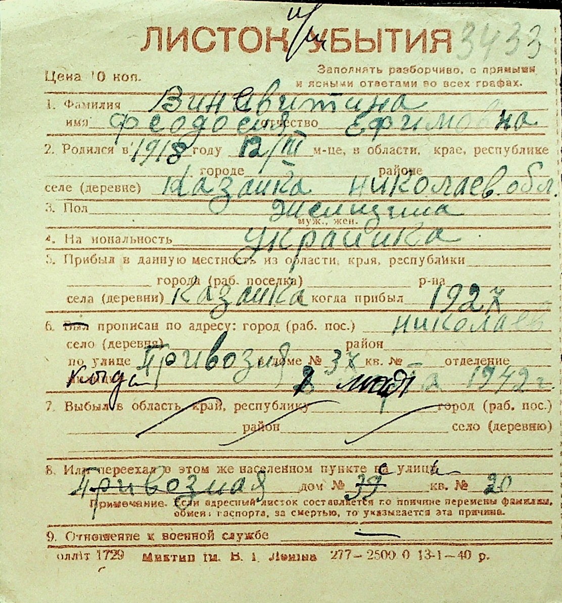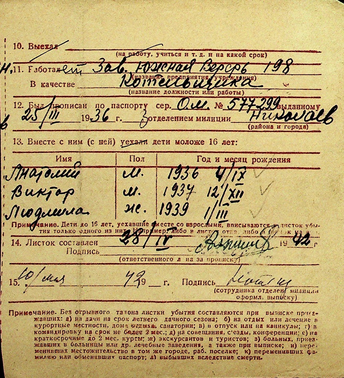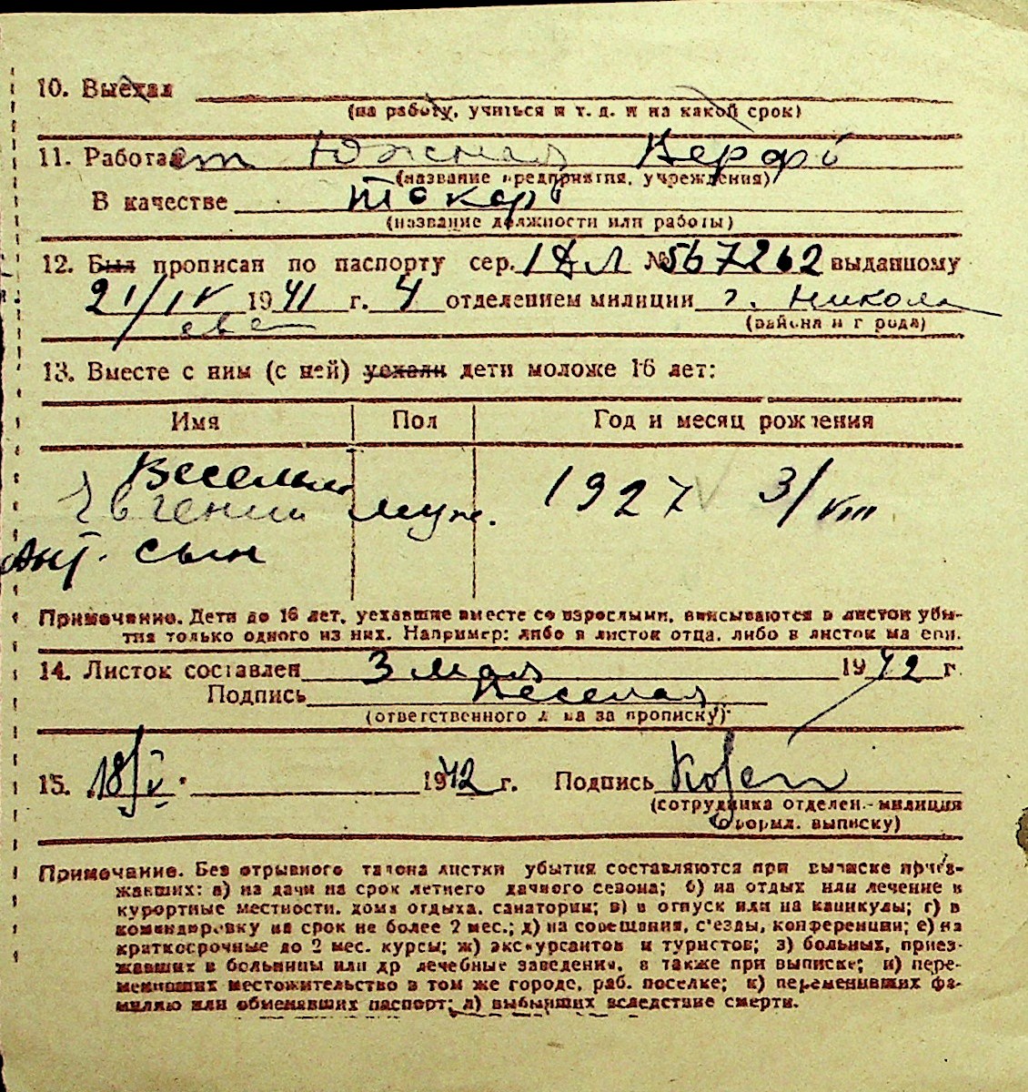 • • Перелік карток до фонду № Н-1016