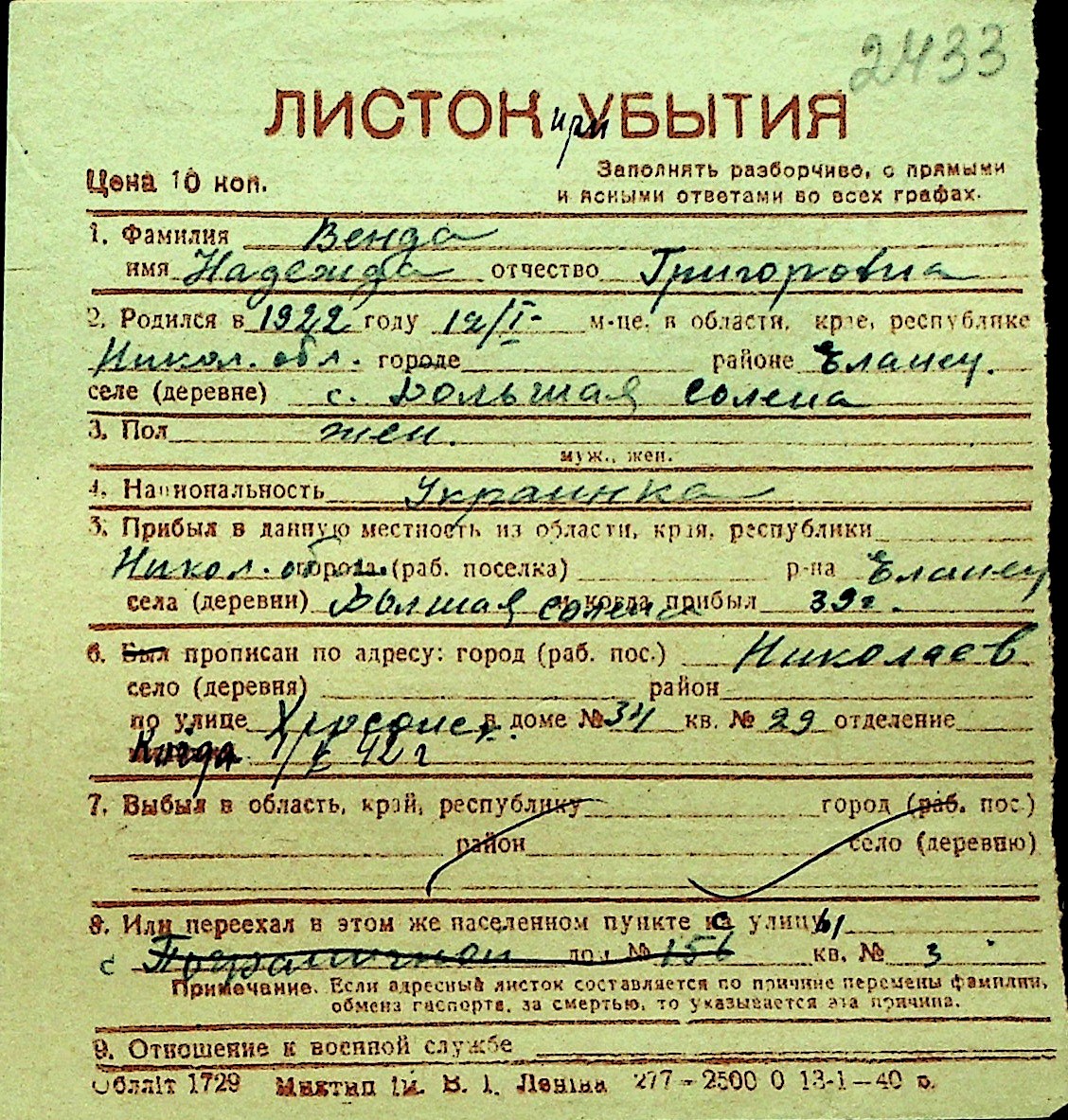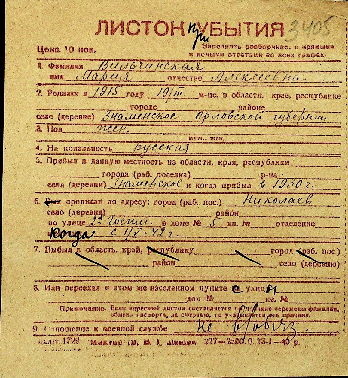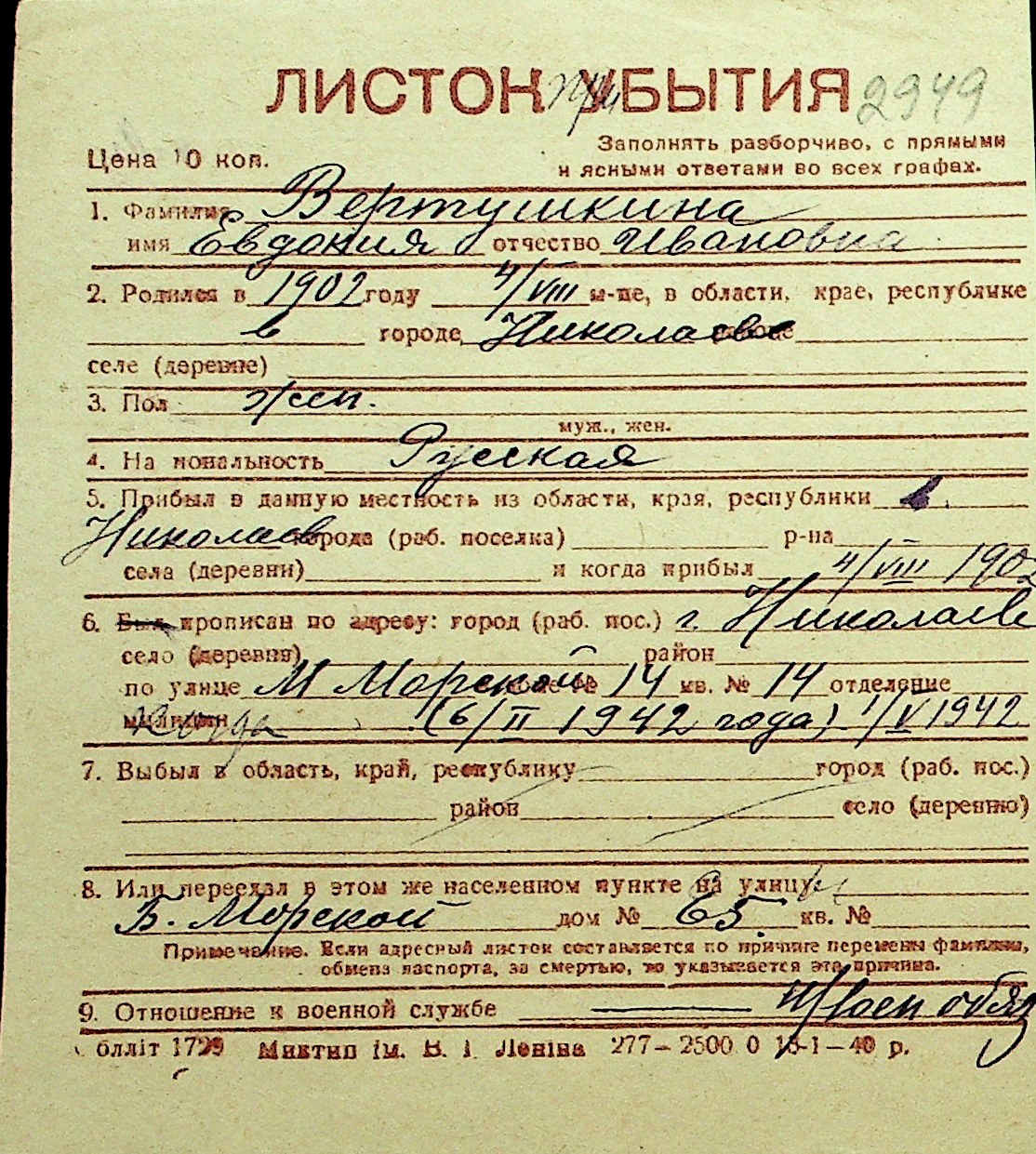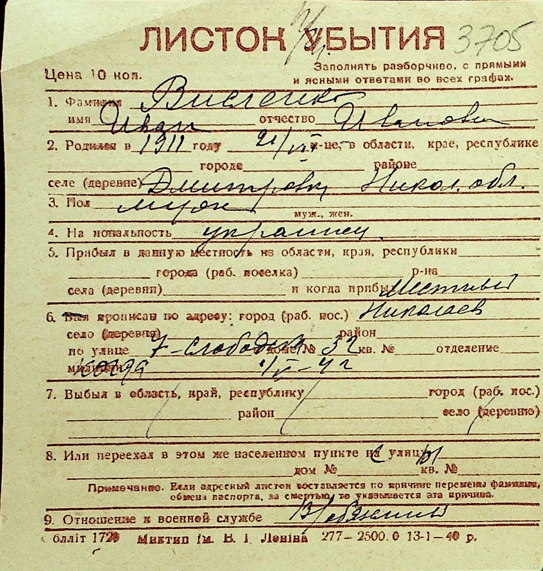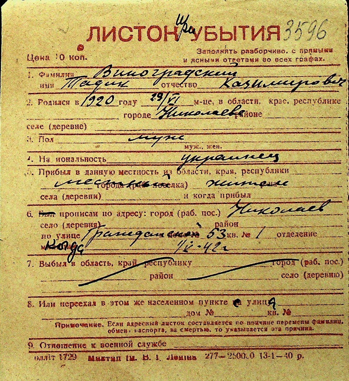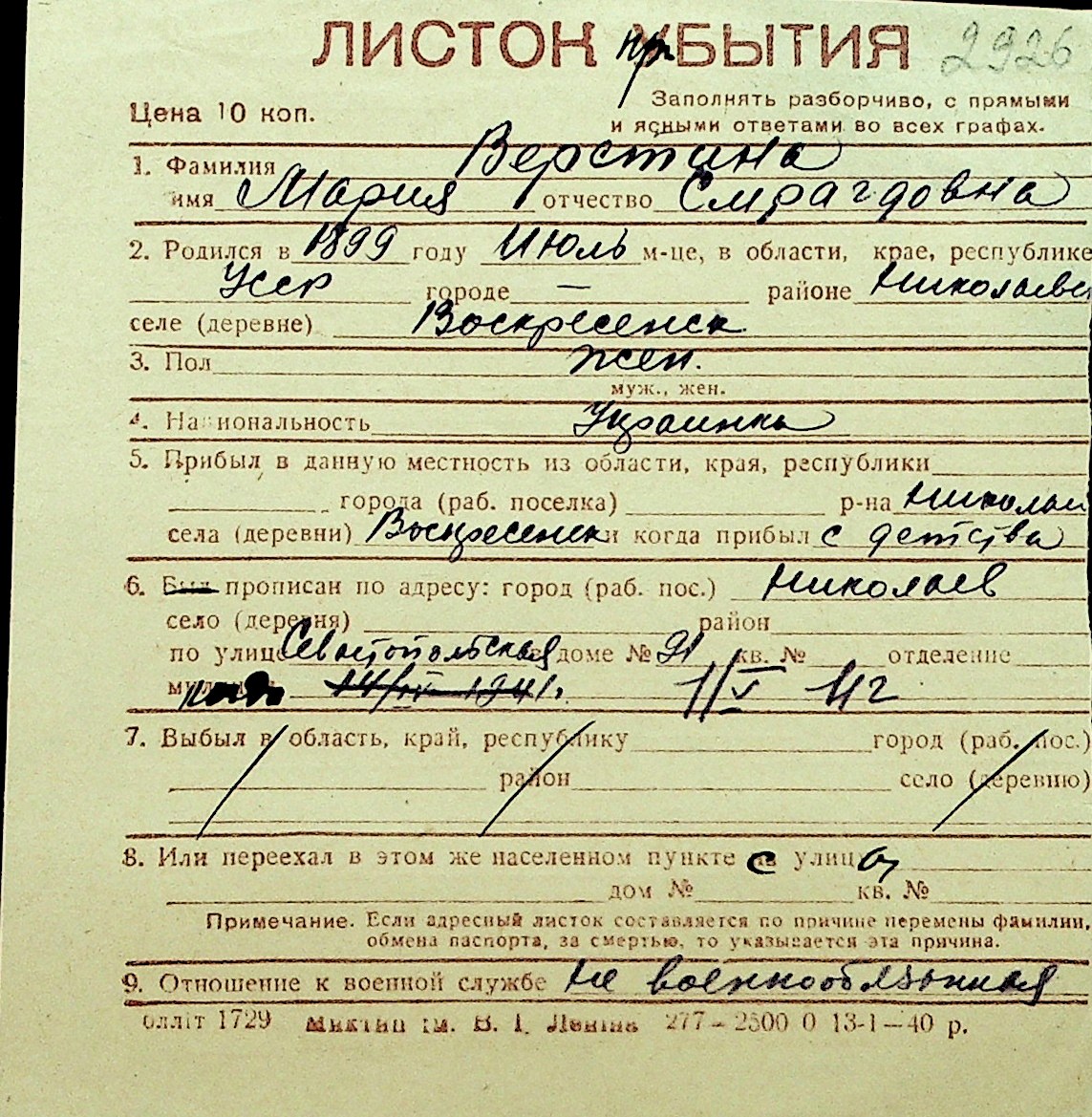 • • Перелік карток до фонду № Н-1016
