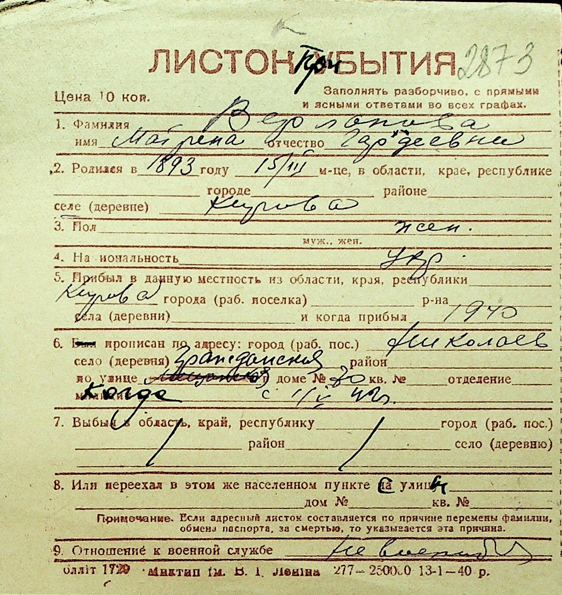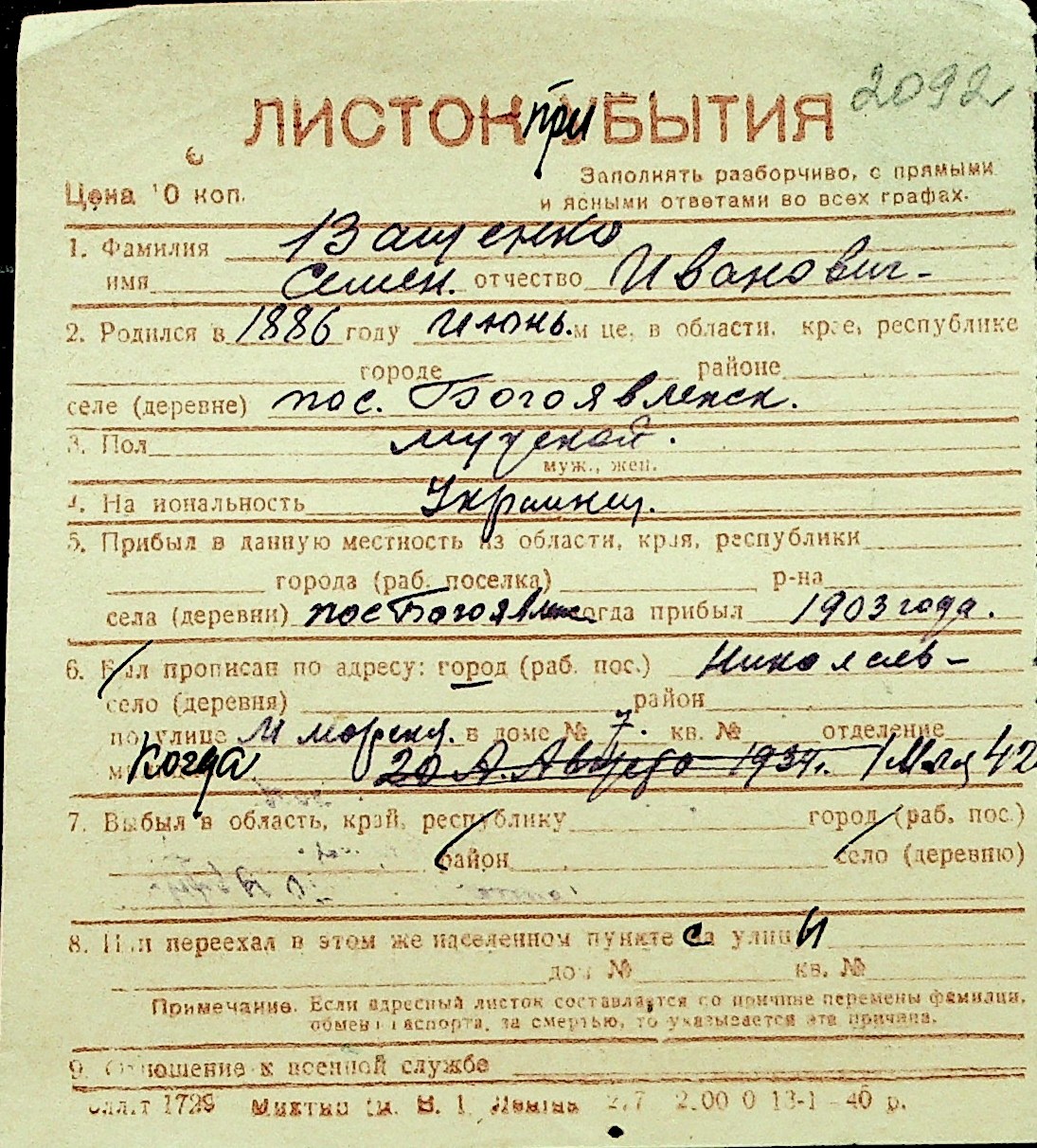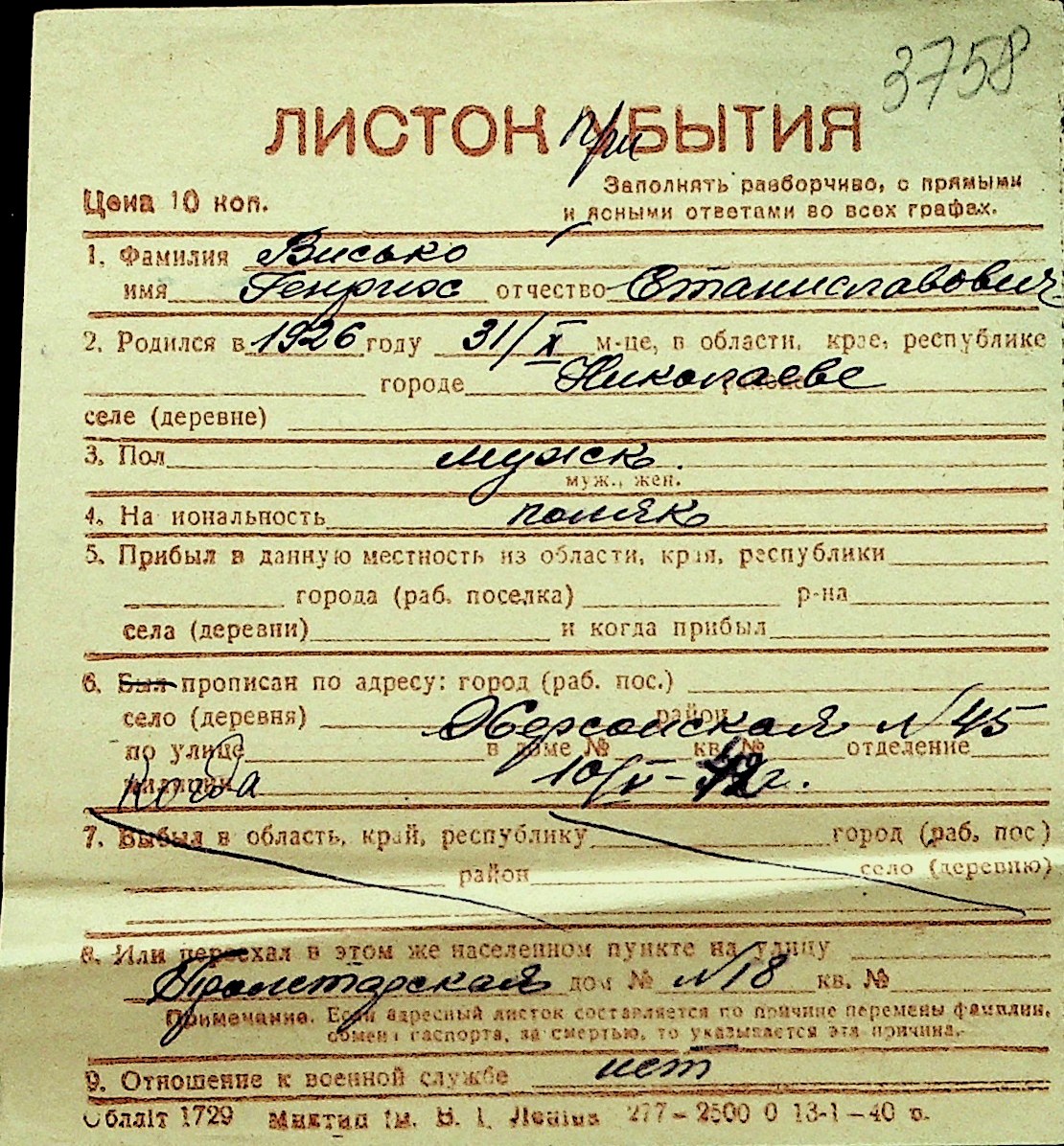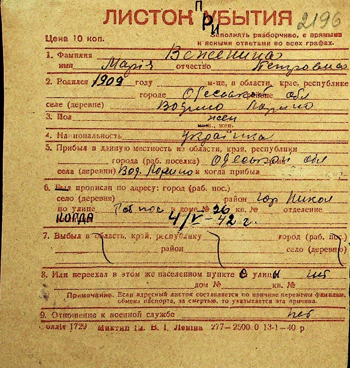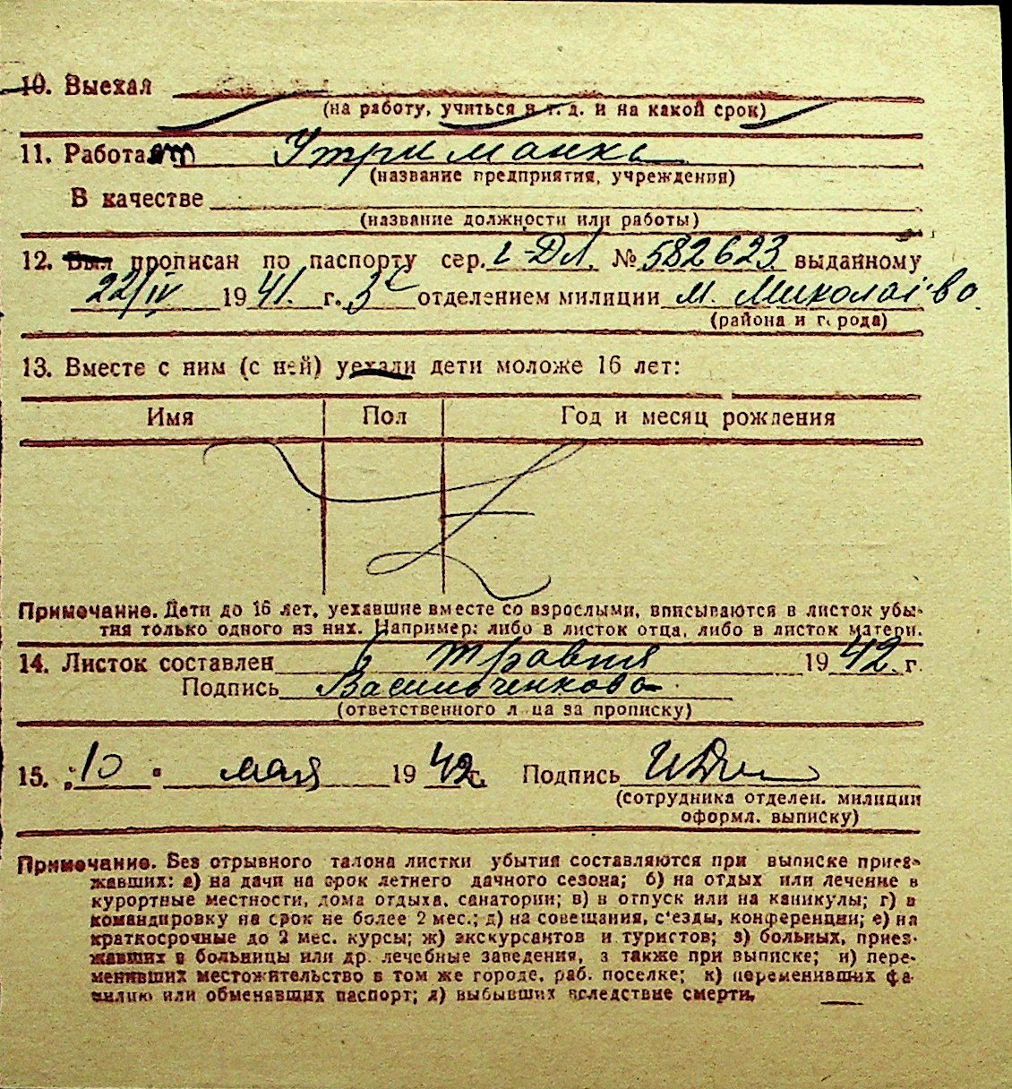 • • Перелік карток до фонду № Н-1016