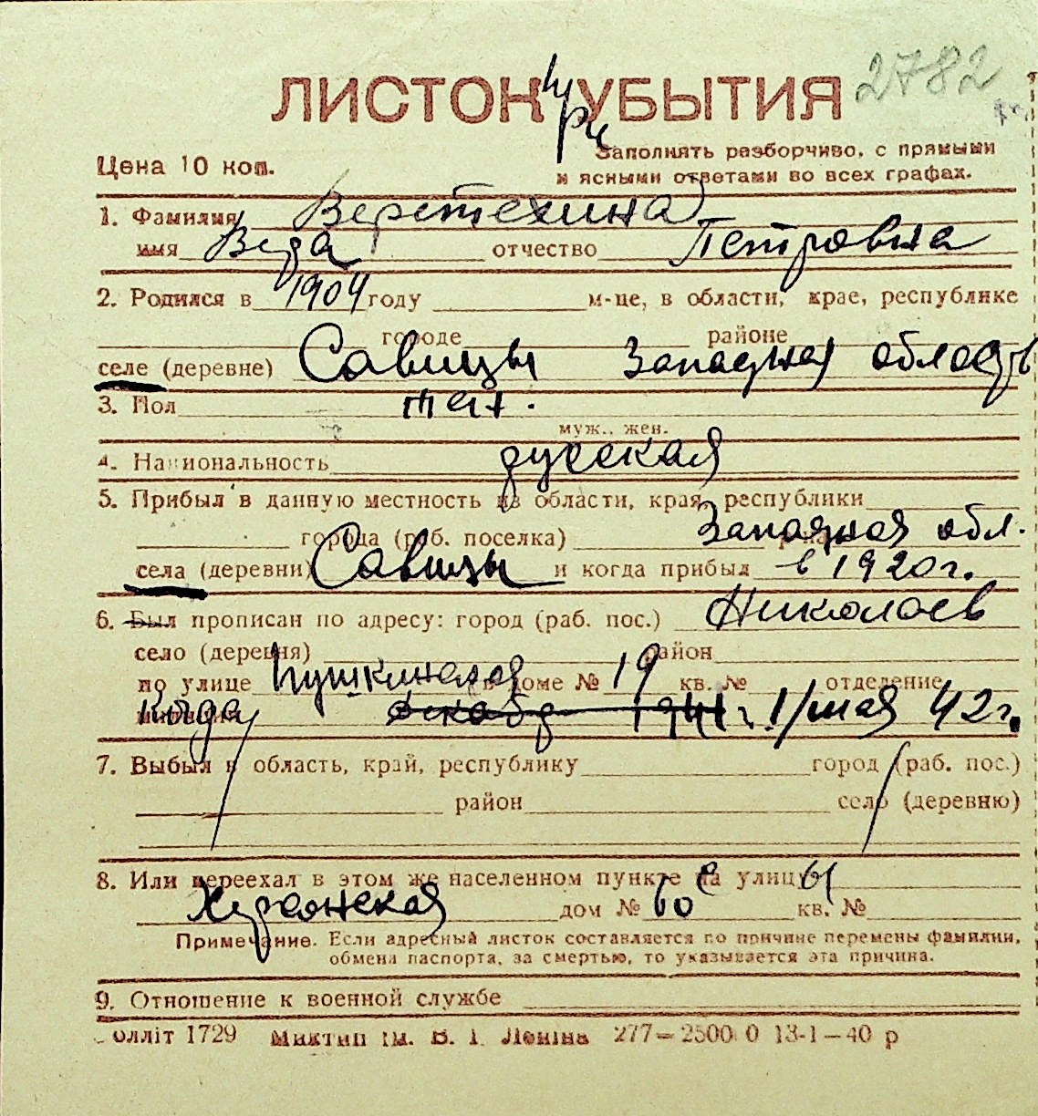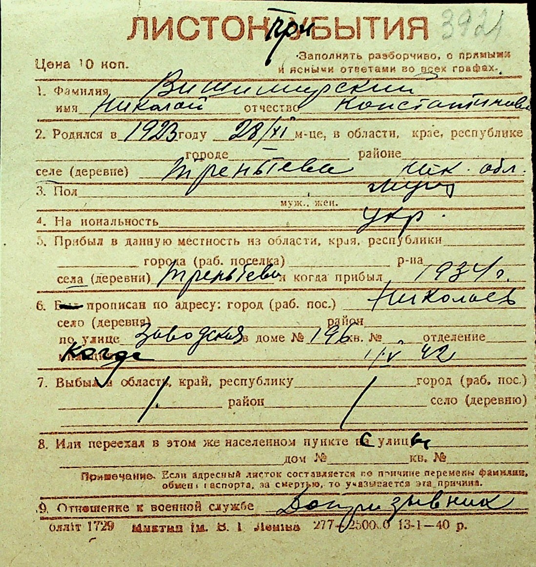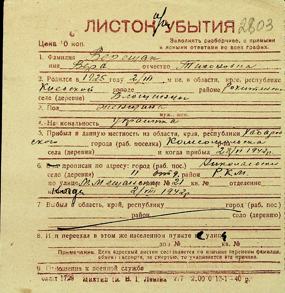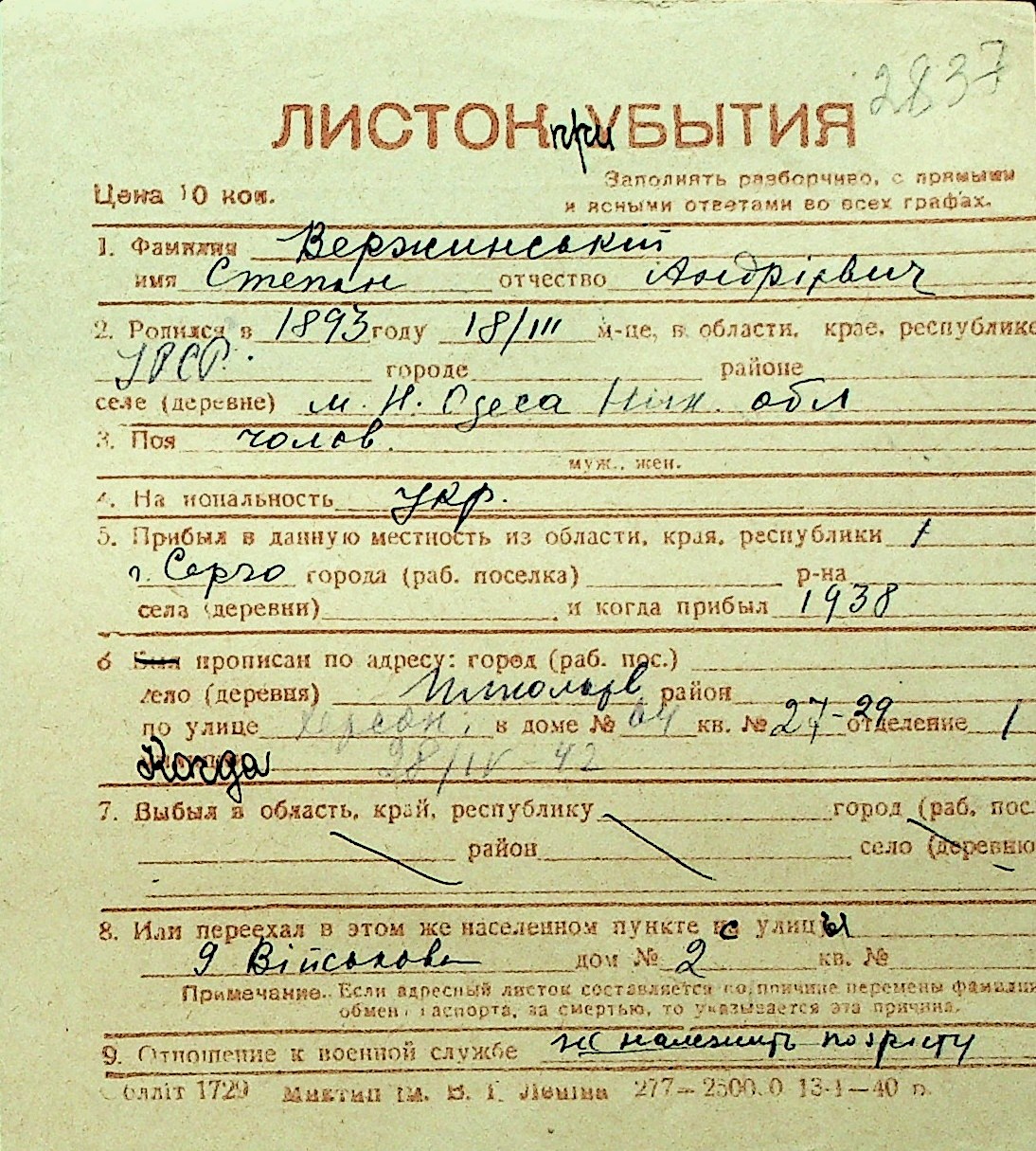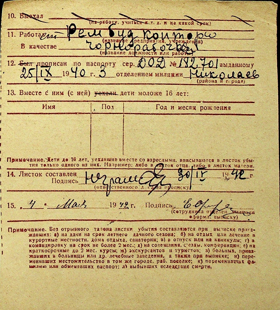 • • Перелік карток до фонду № Н-1016