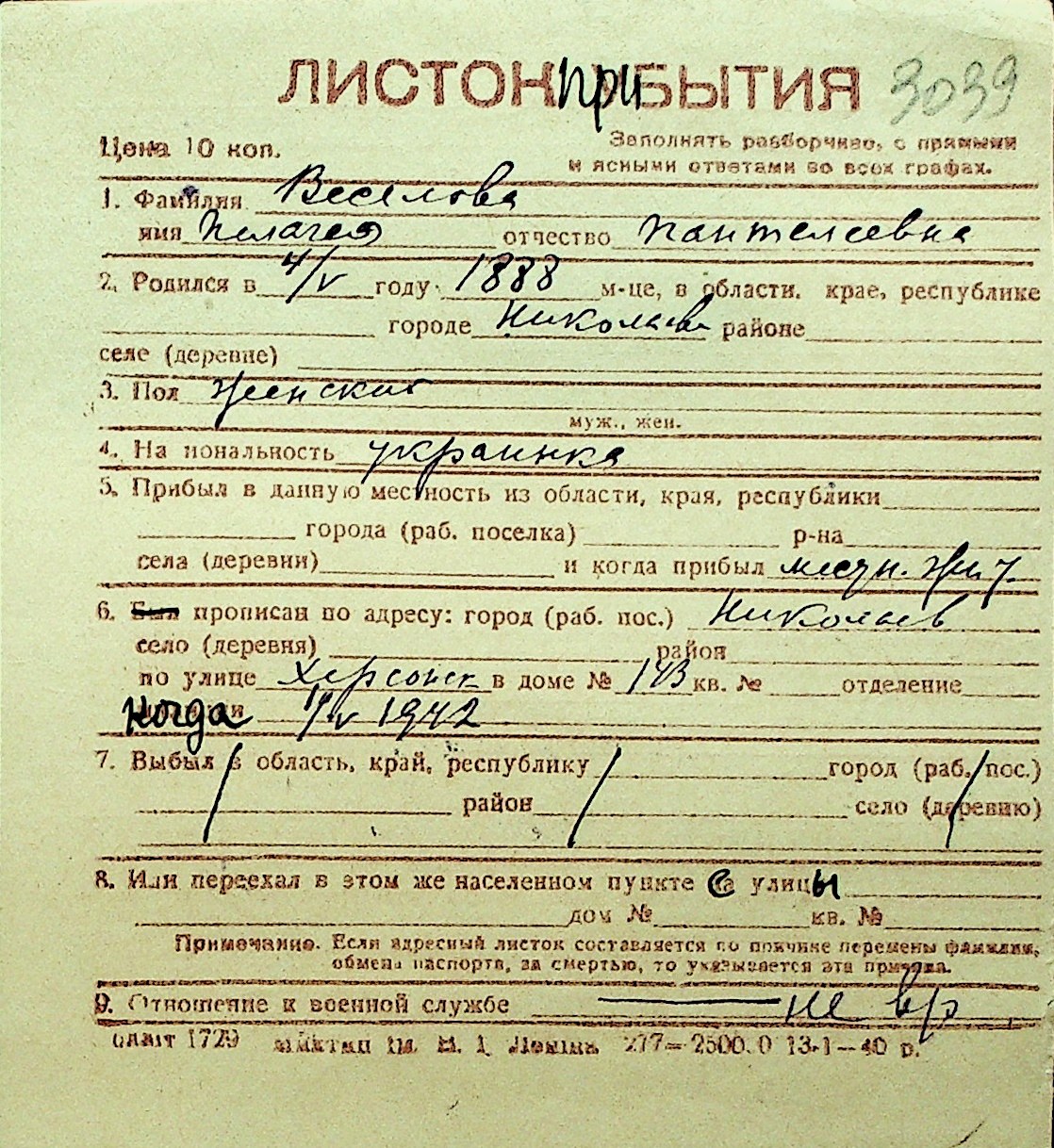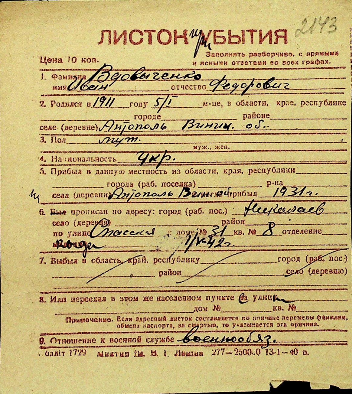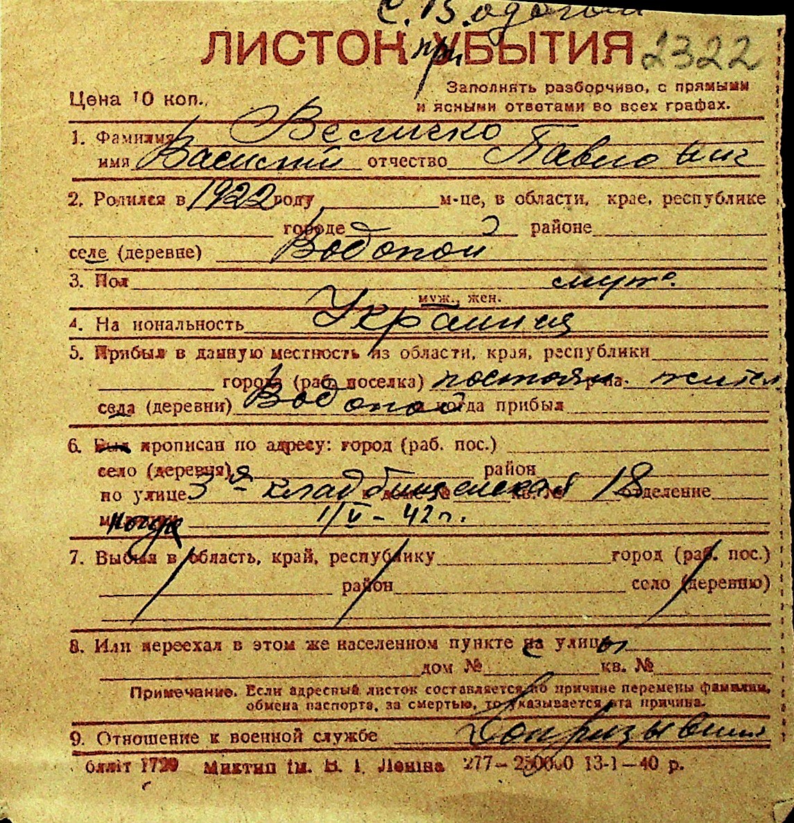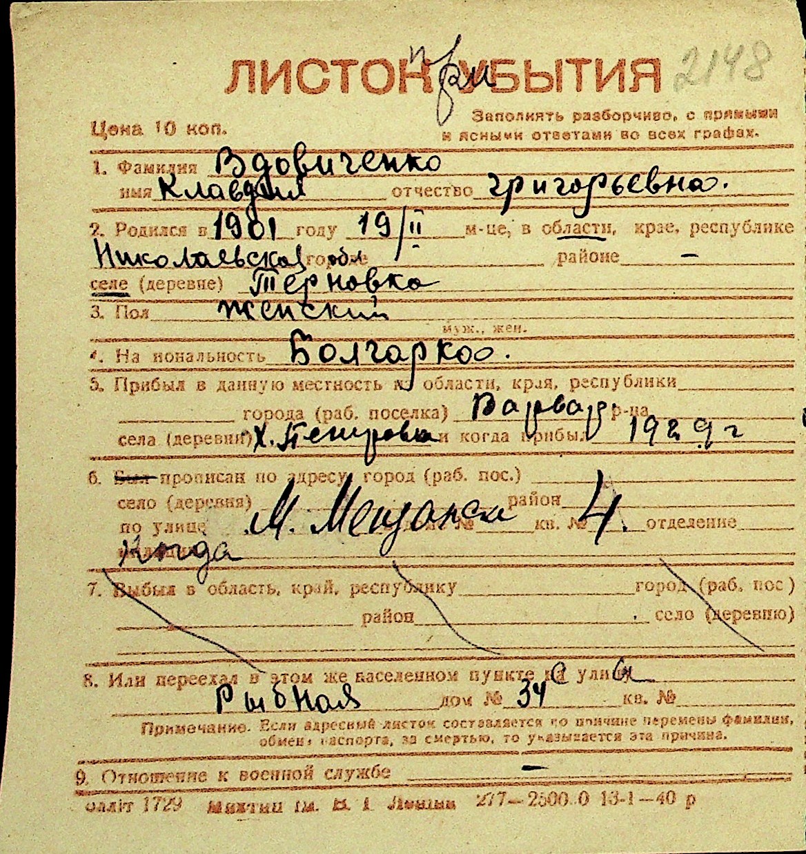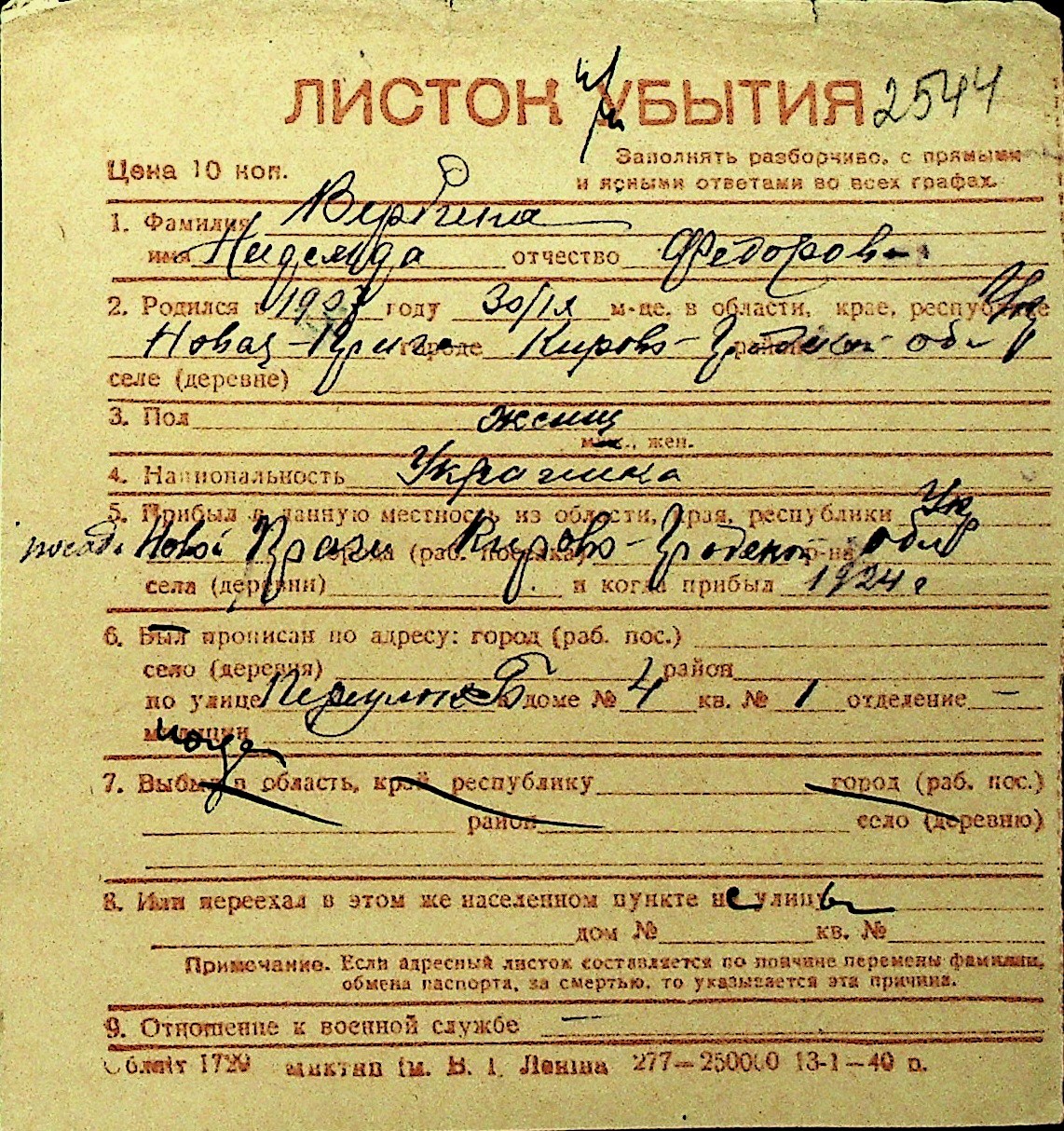 • • Перелік карток до фонду № Н-1016