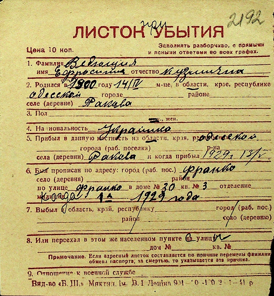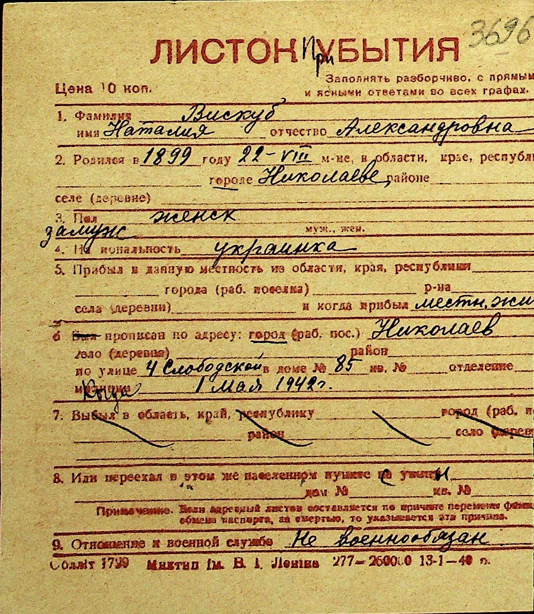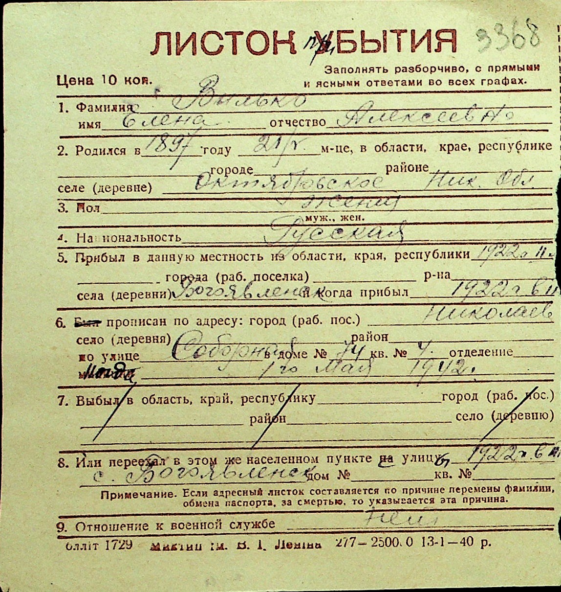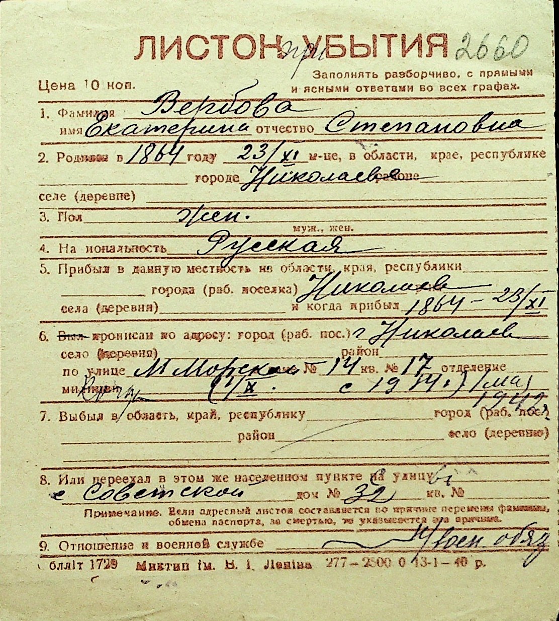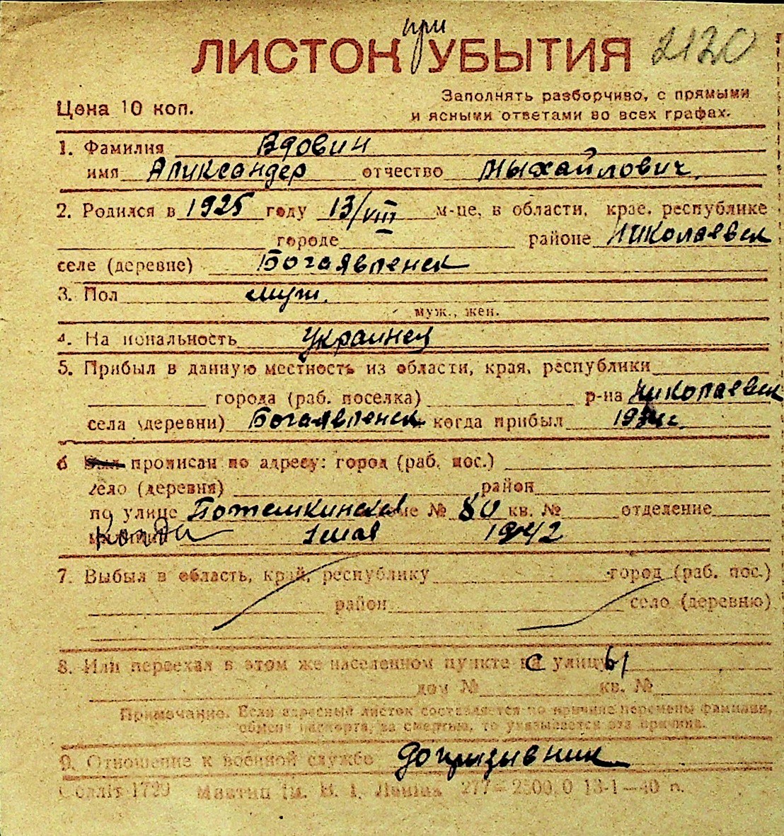 • • Перелік карток до фонду № Н-1016