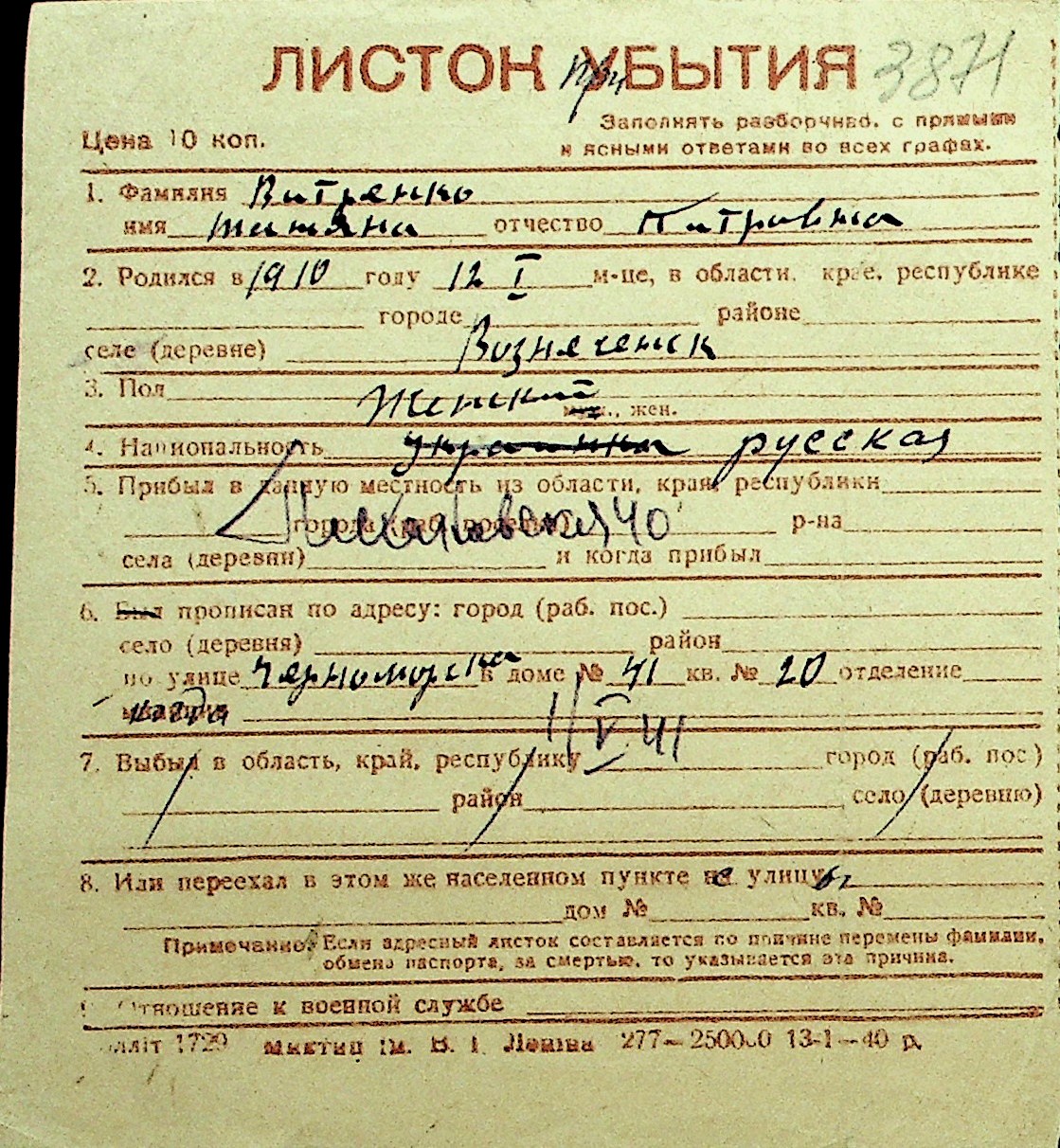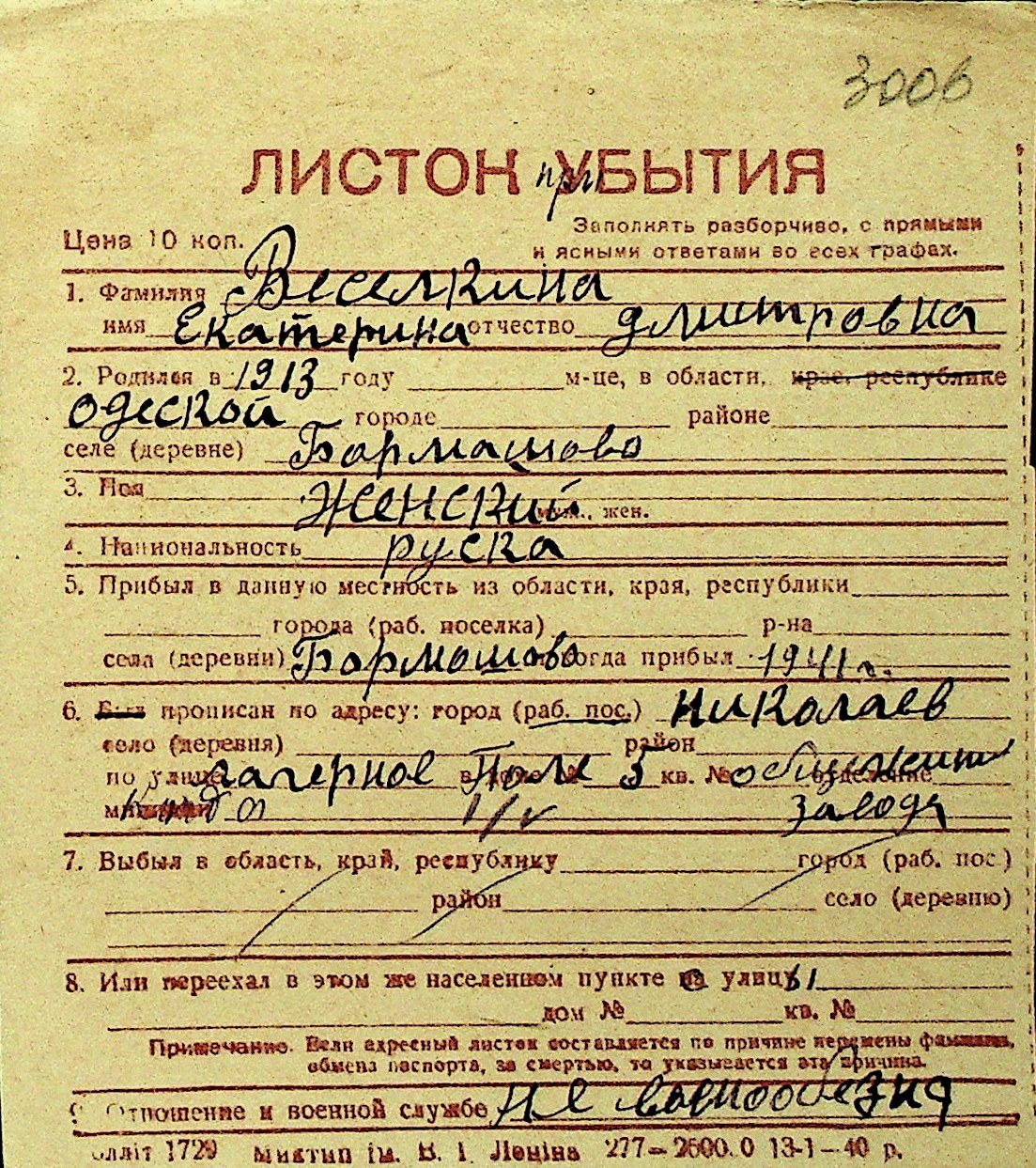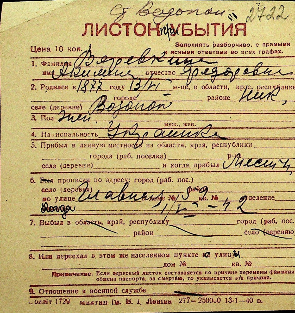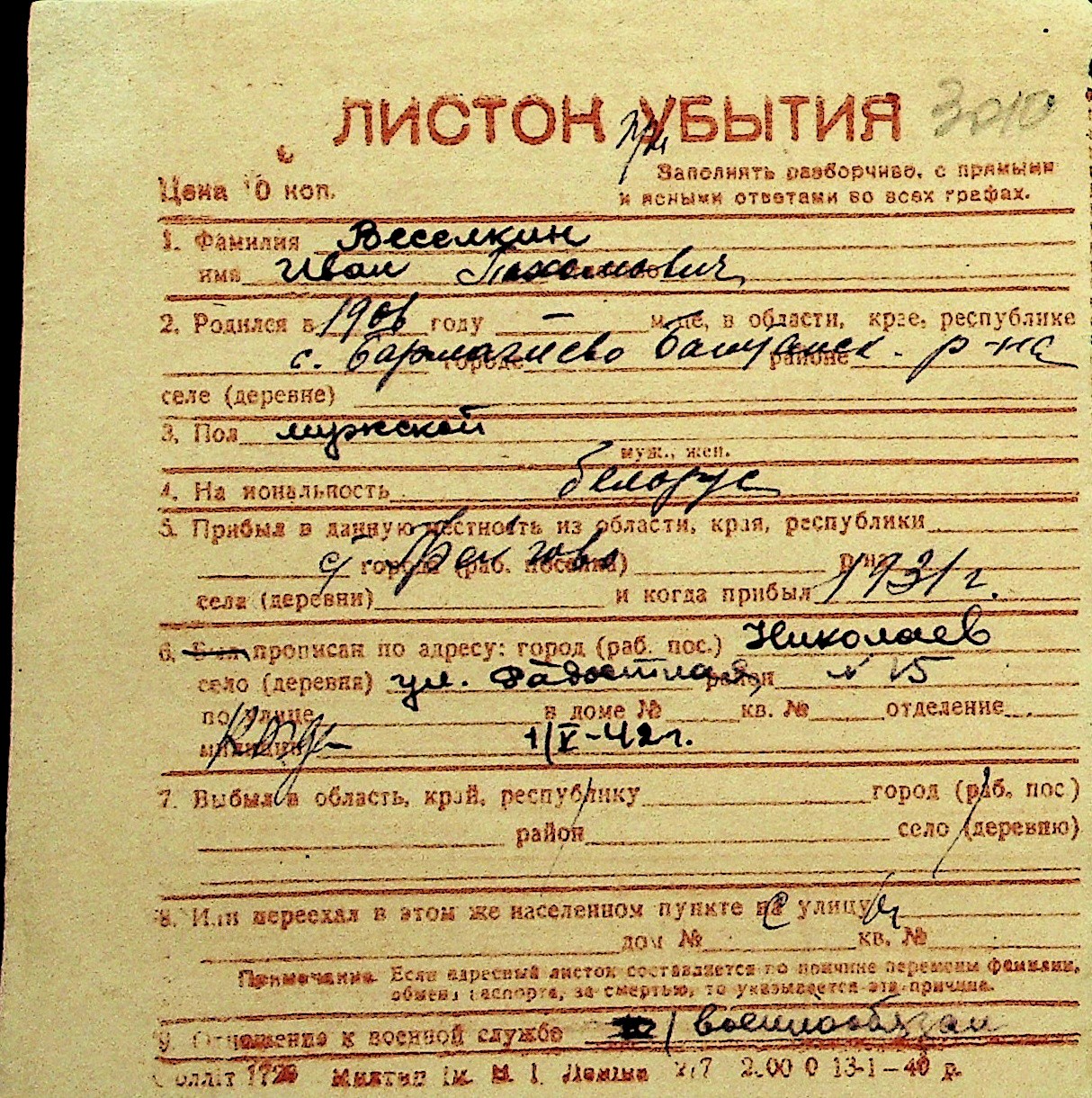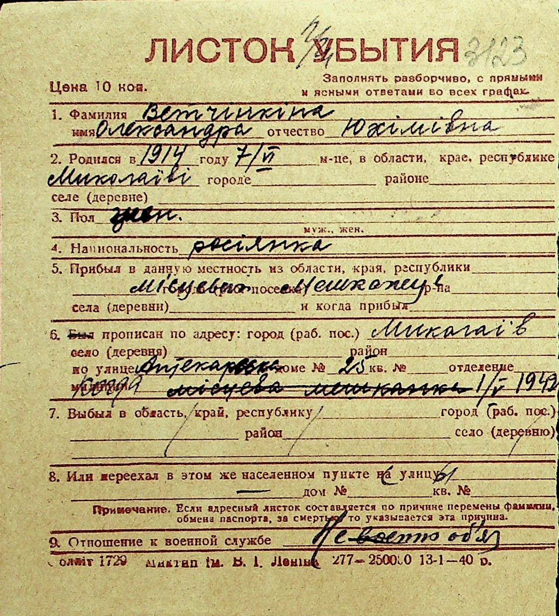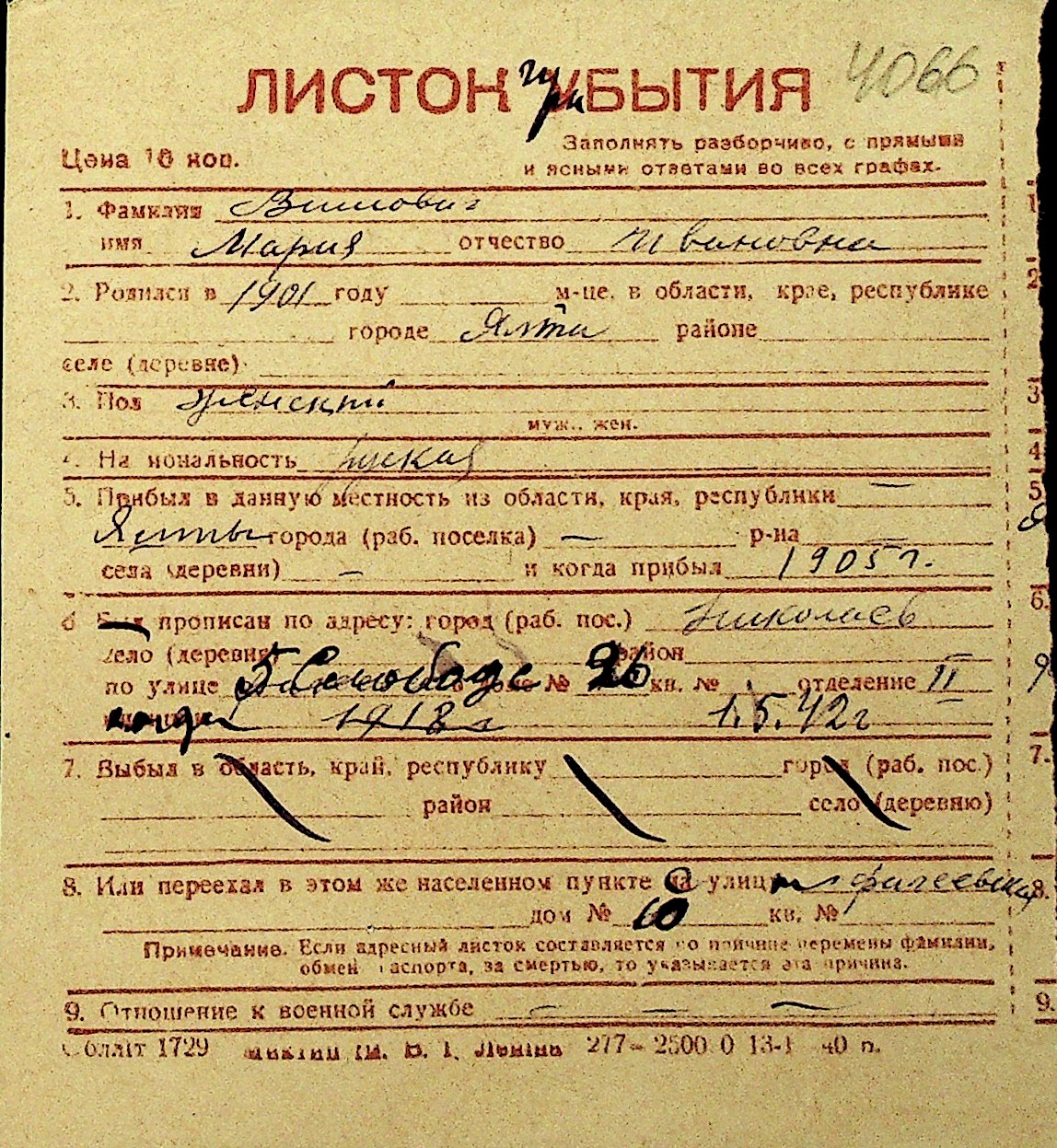 • • Перелік карток до фонду № Н-1016