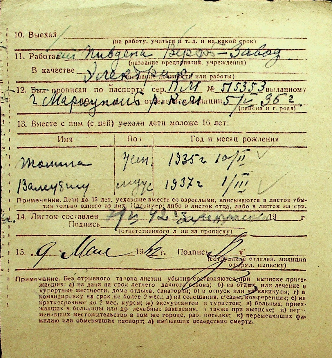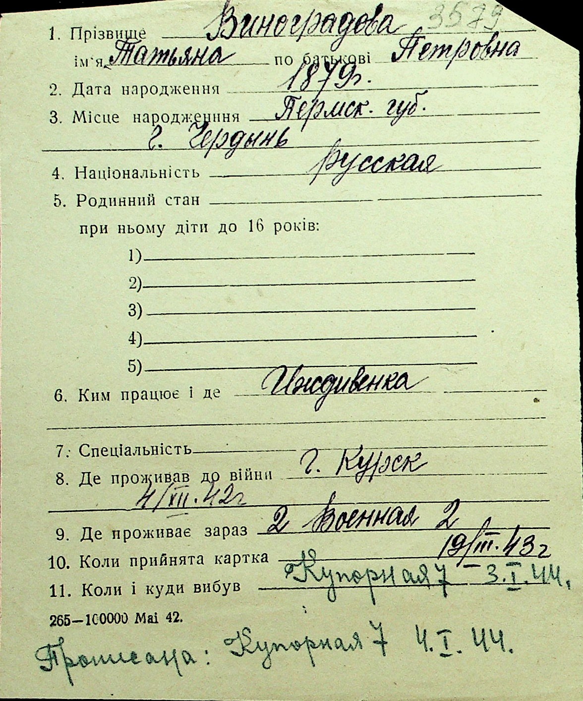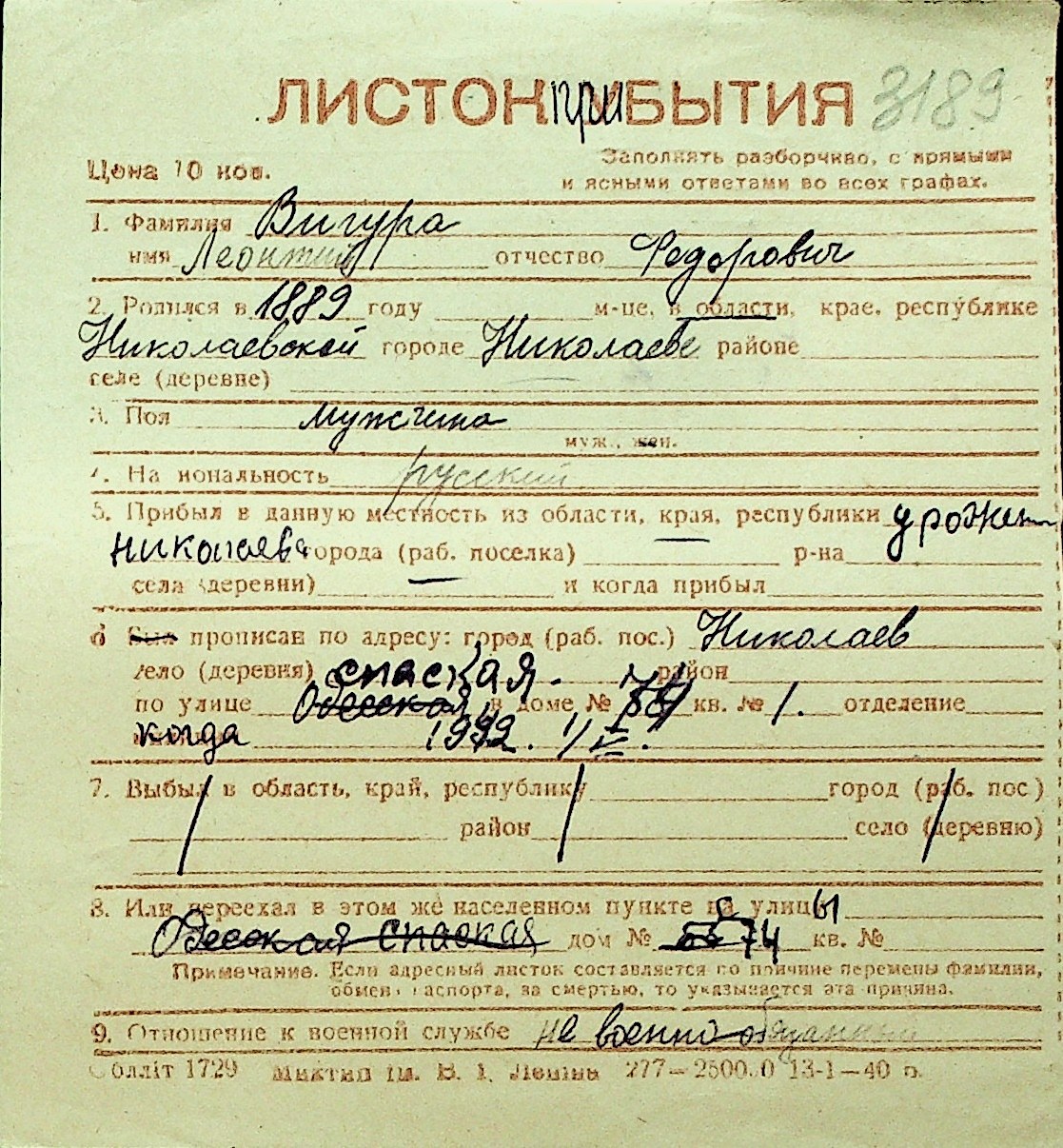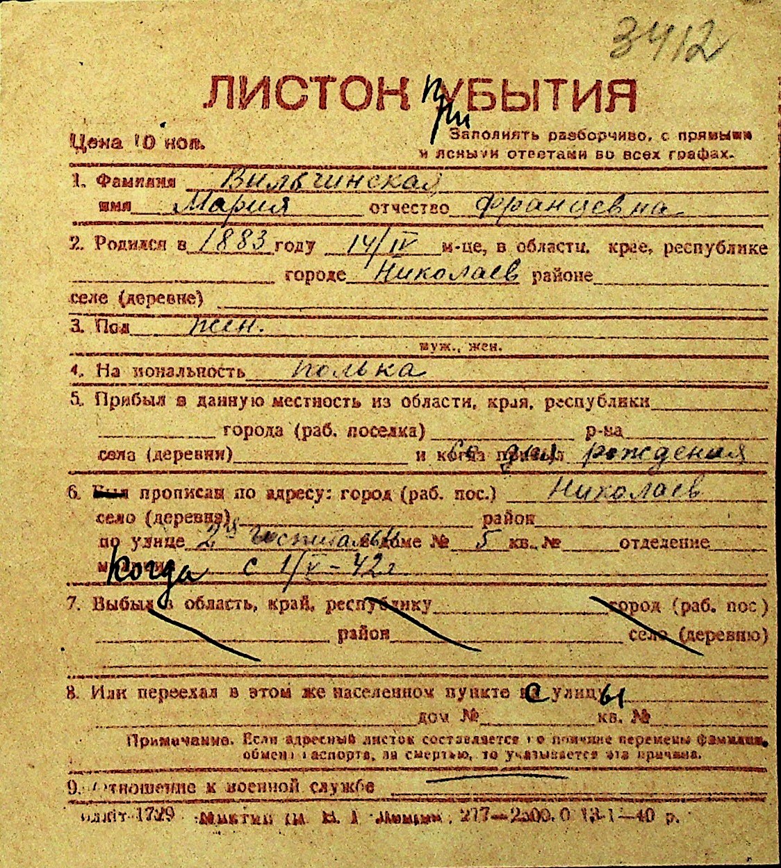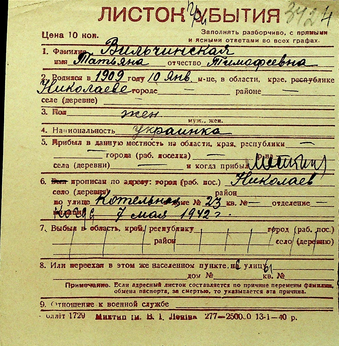 • • Перелік карток до фонду № Н-1016