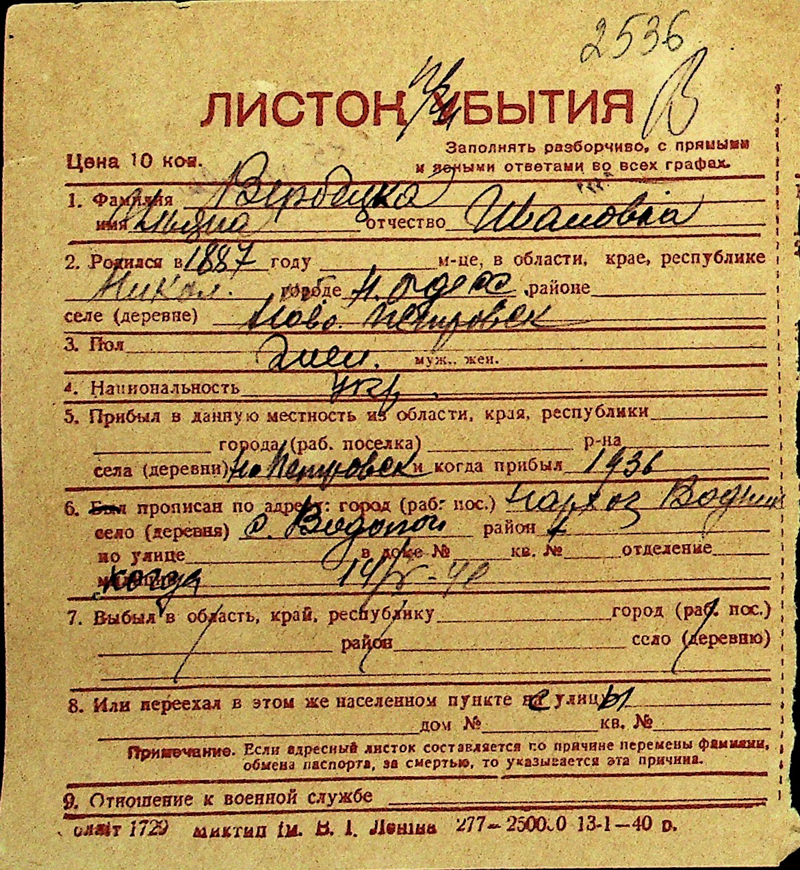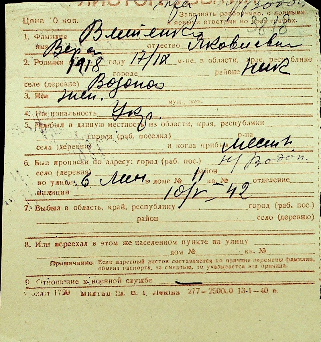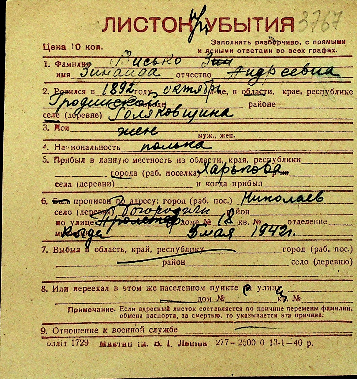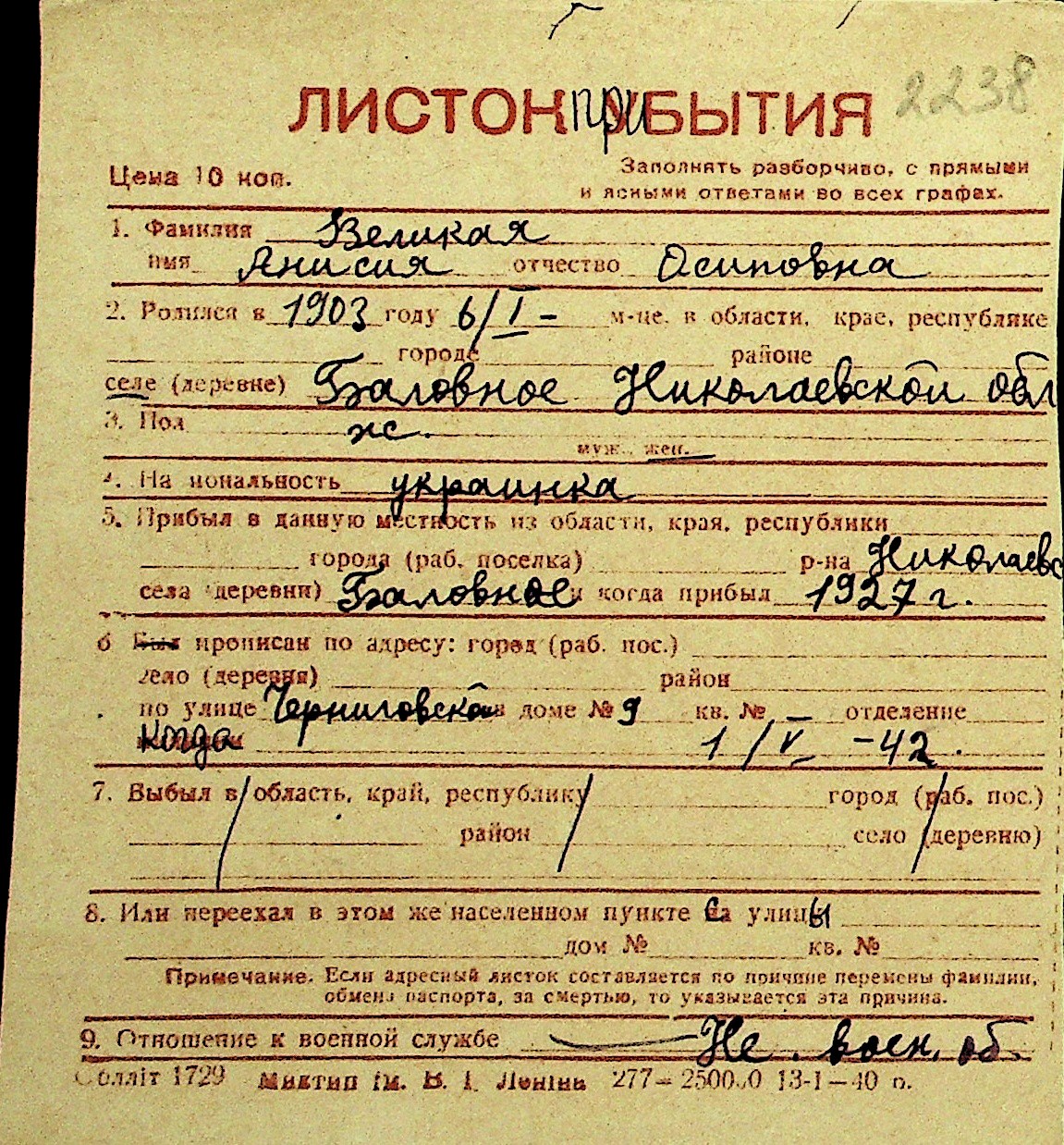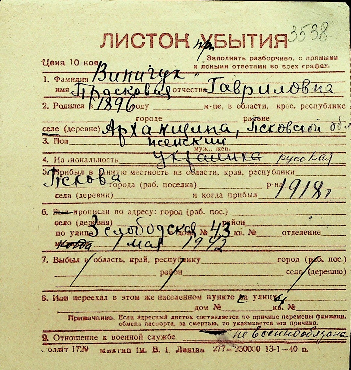 • • Перелік карток до фонду № Н-1016