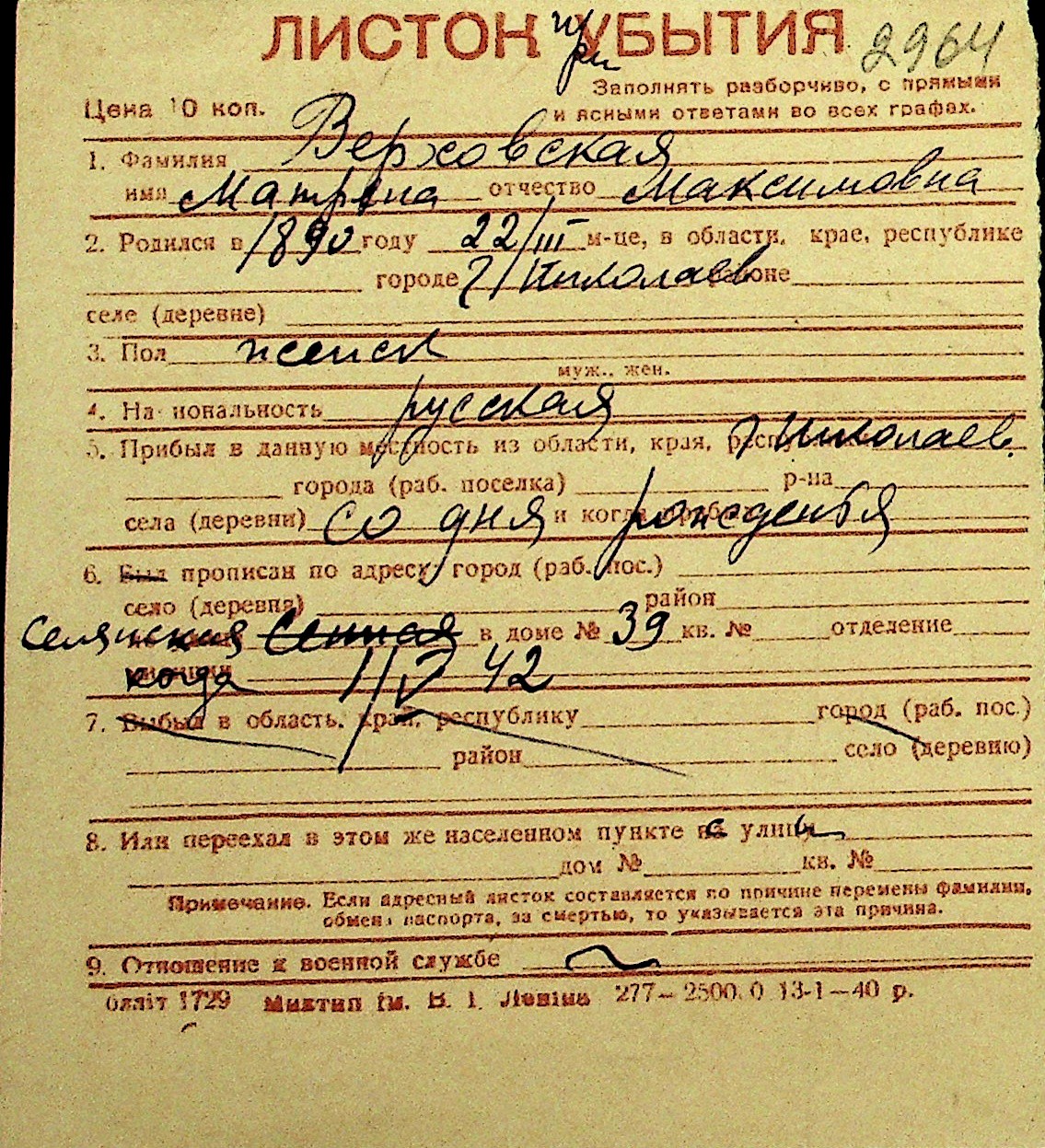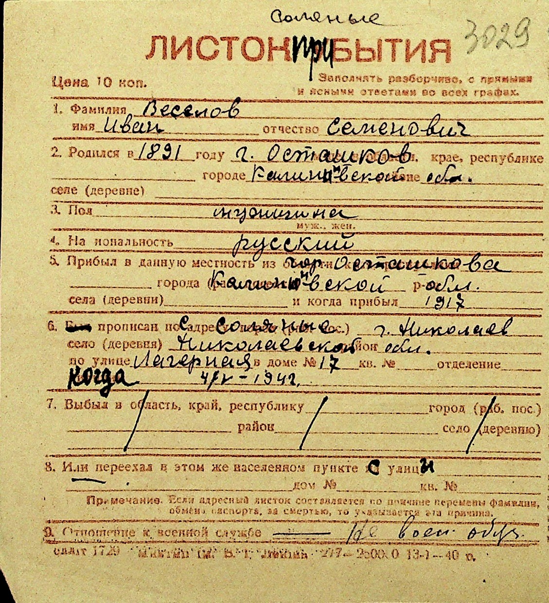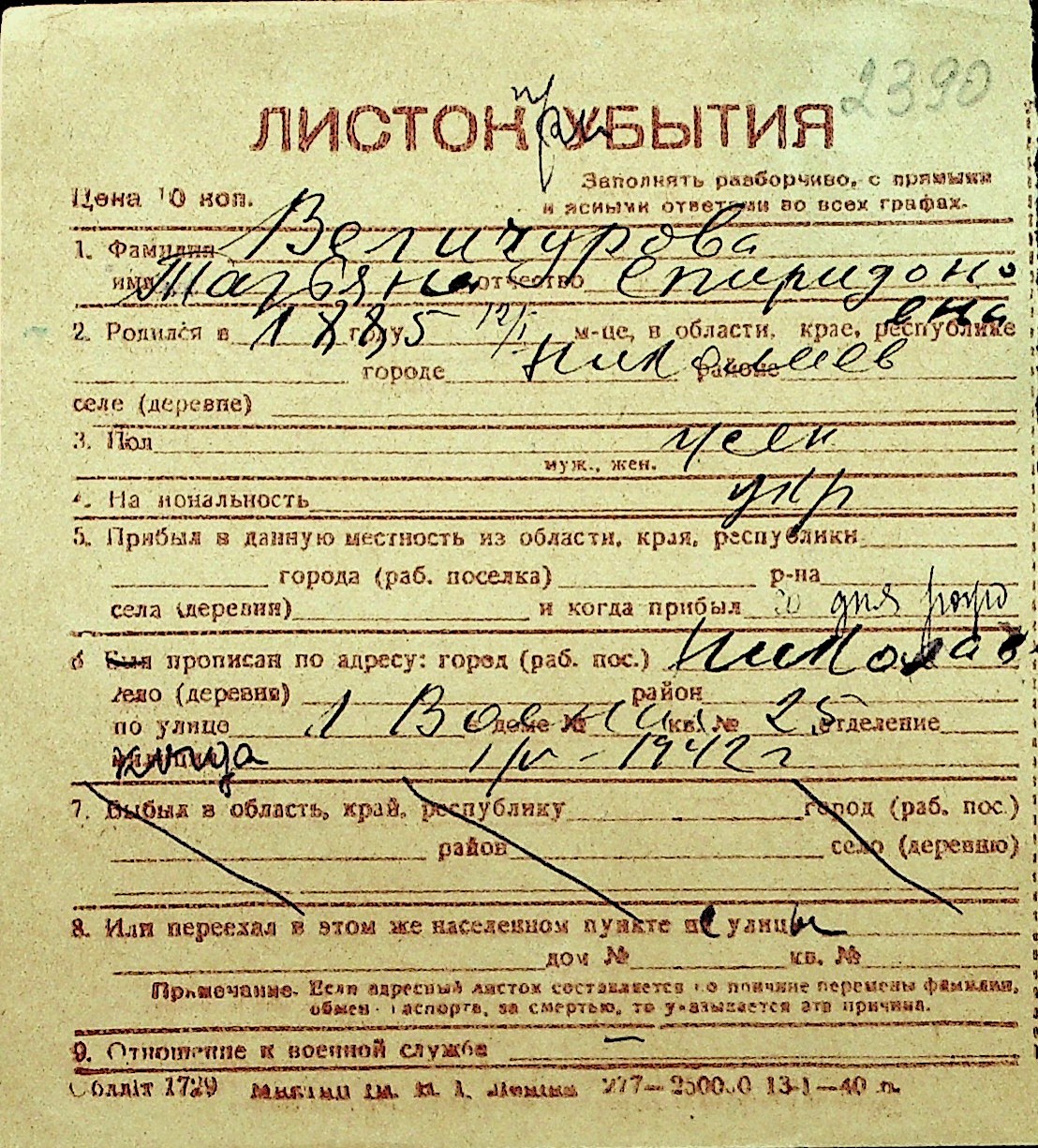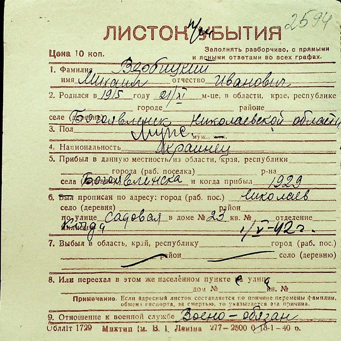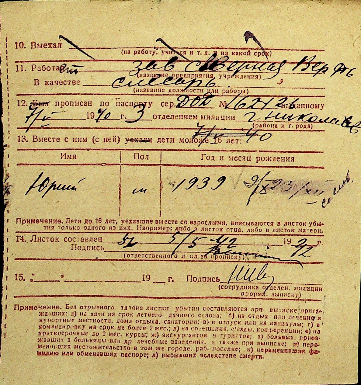 • • Перелік карток до фонду № Н-1016