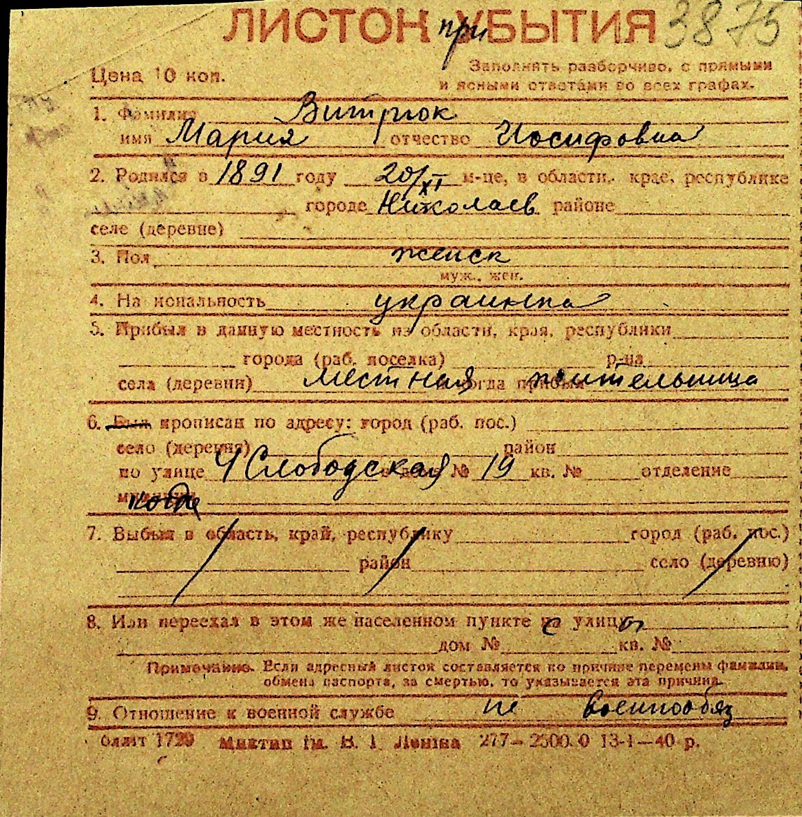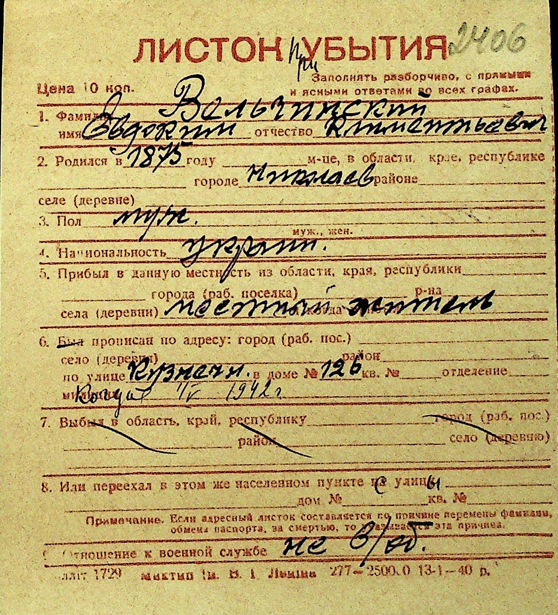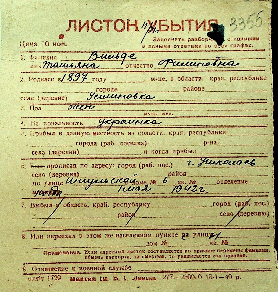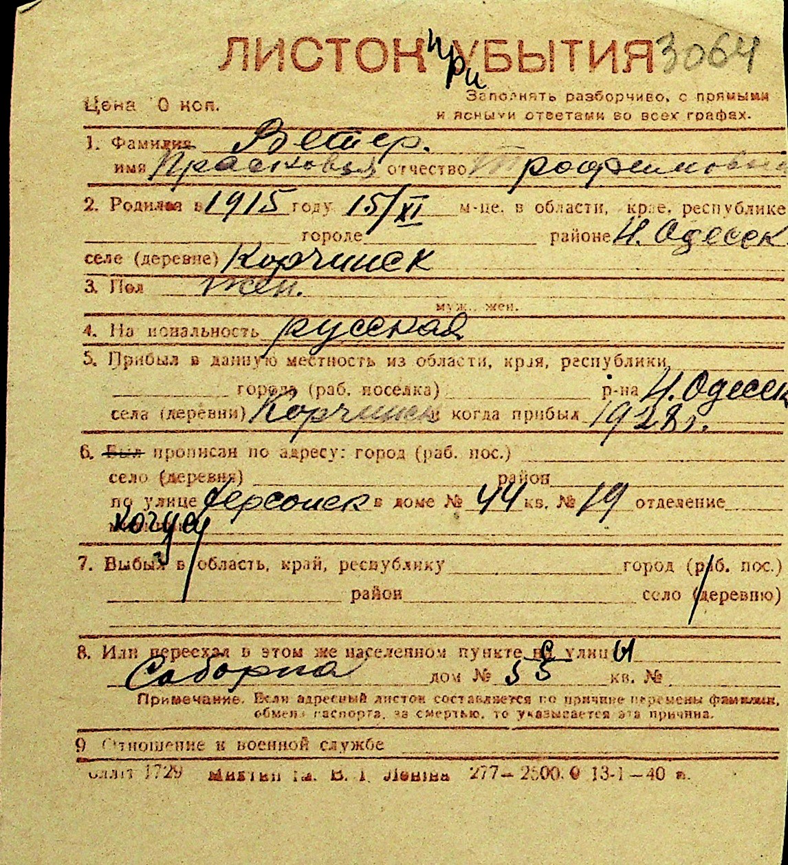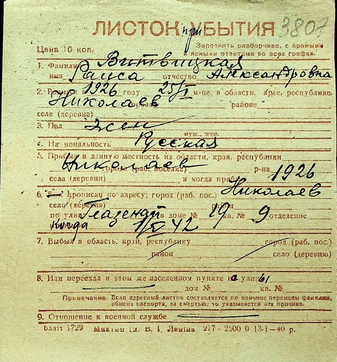 • • Перелік карток до фонду № Н-1016