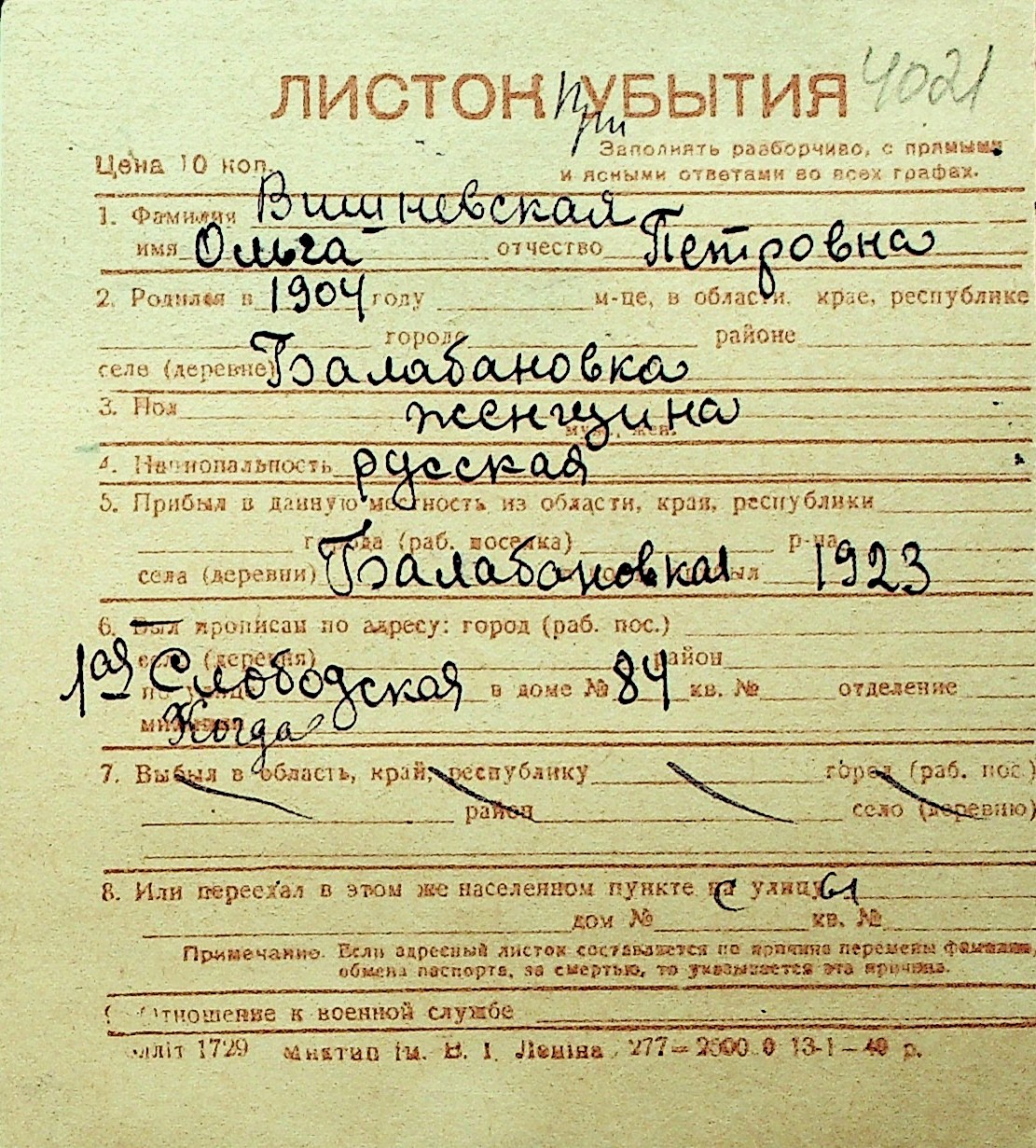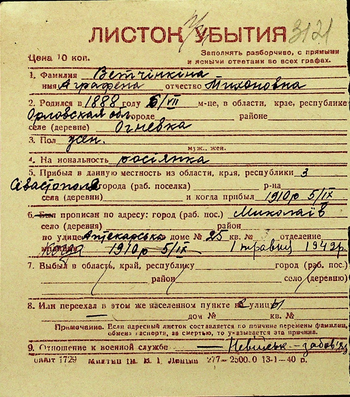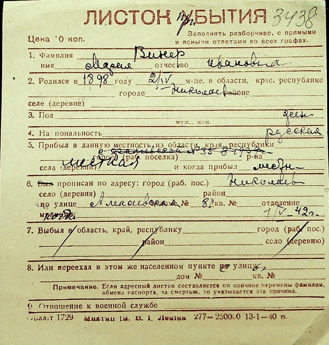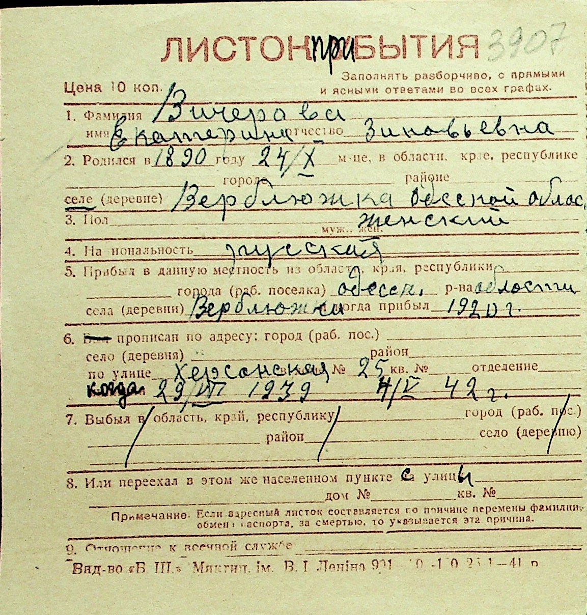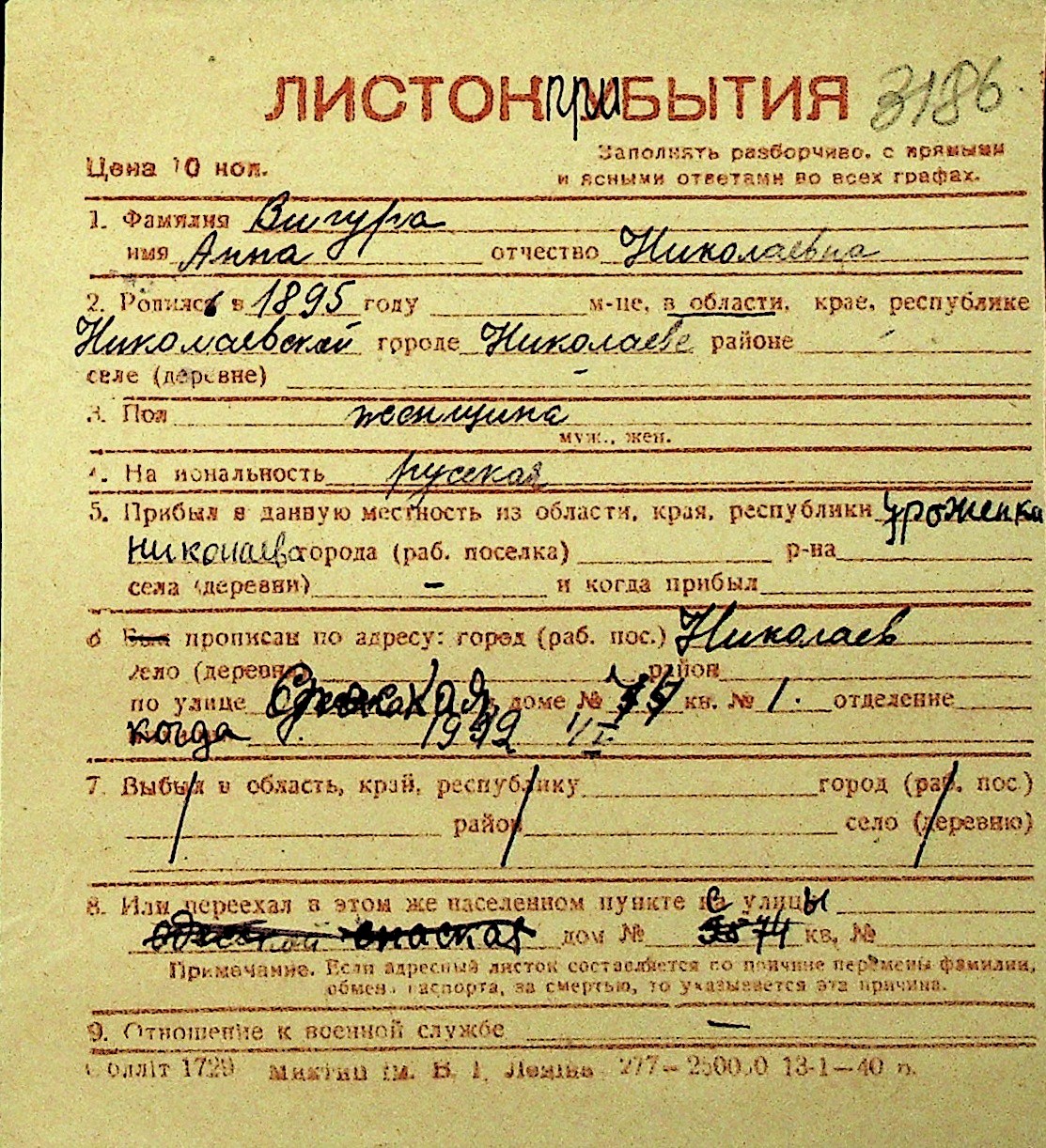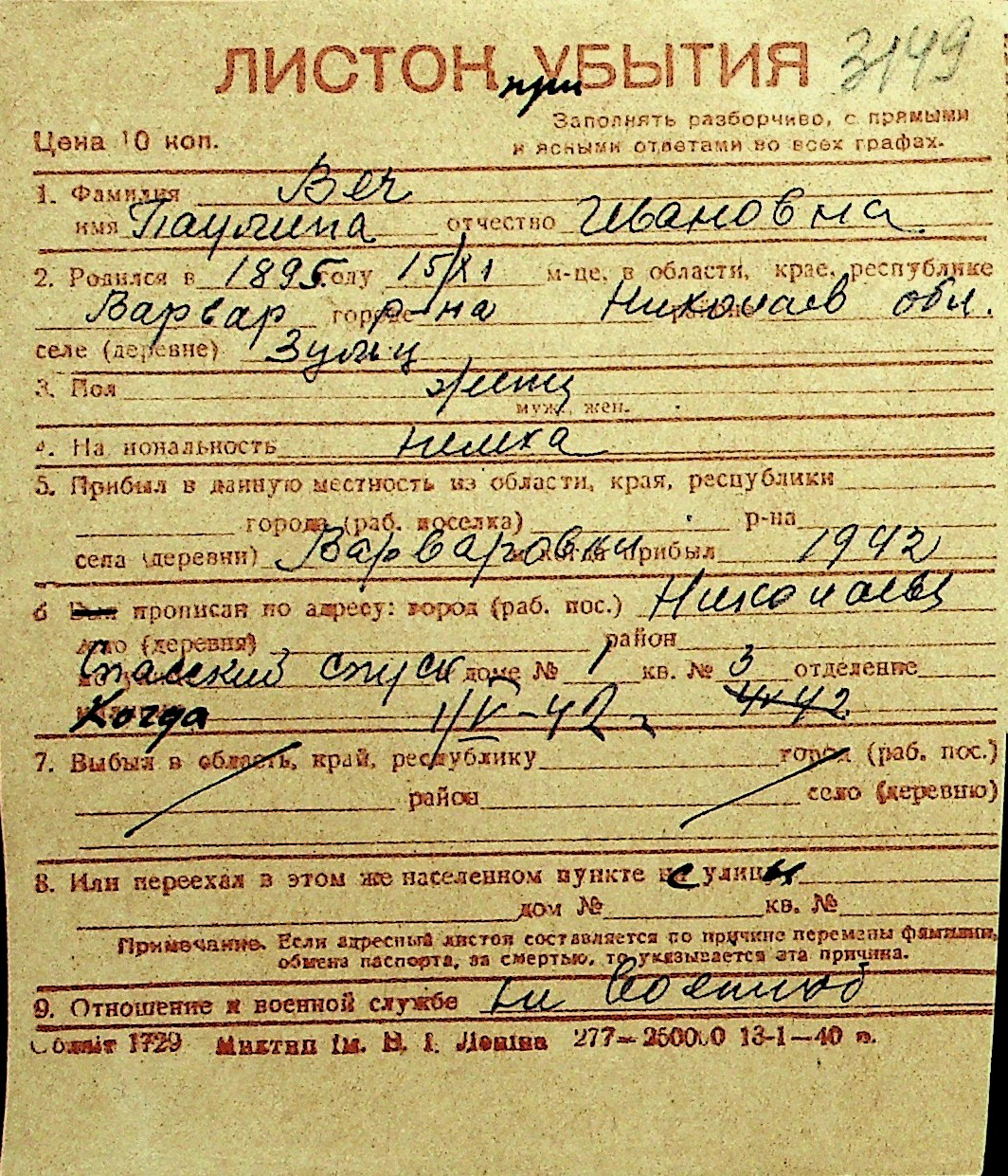 • • Перелік карток до фонду № Н-1016