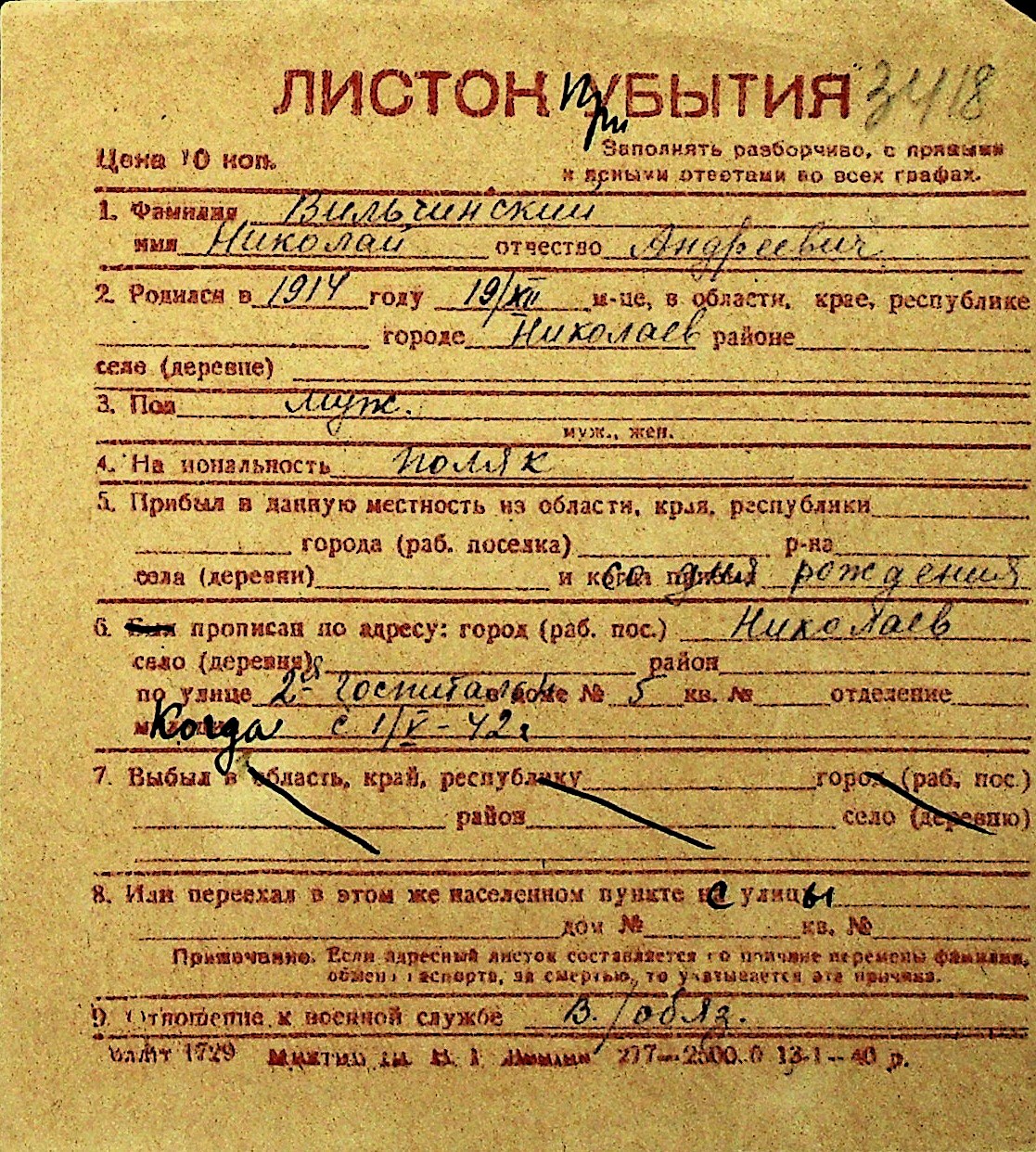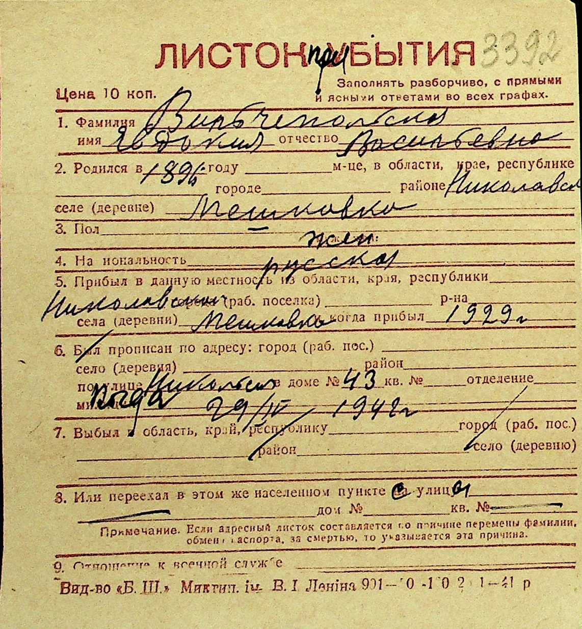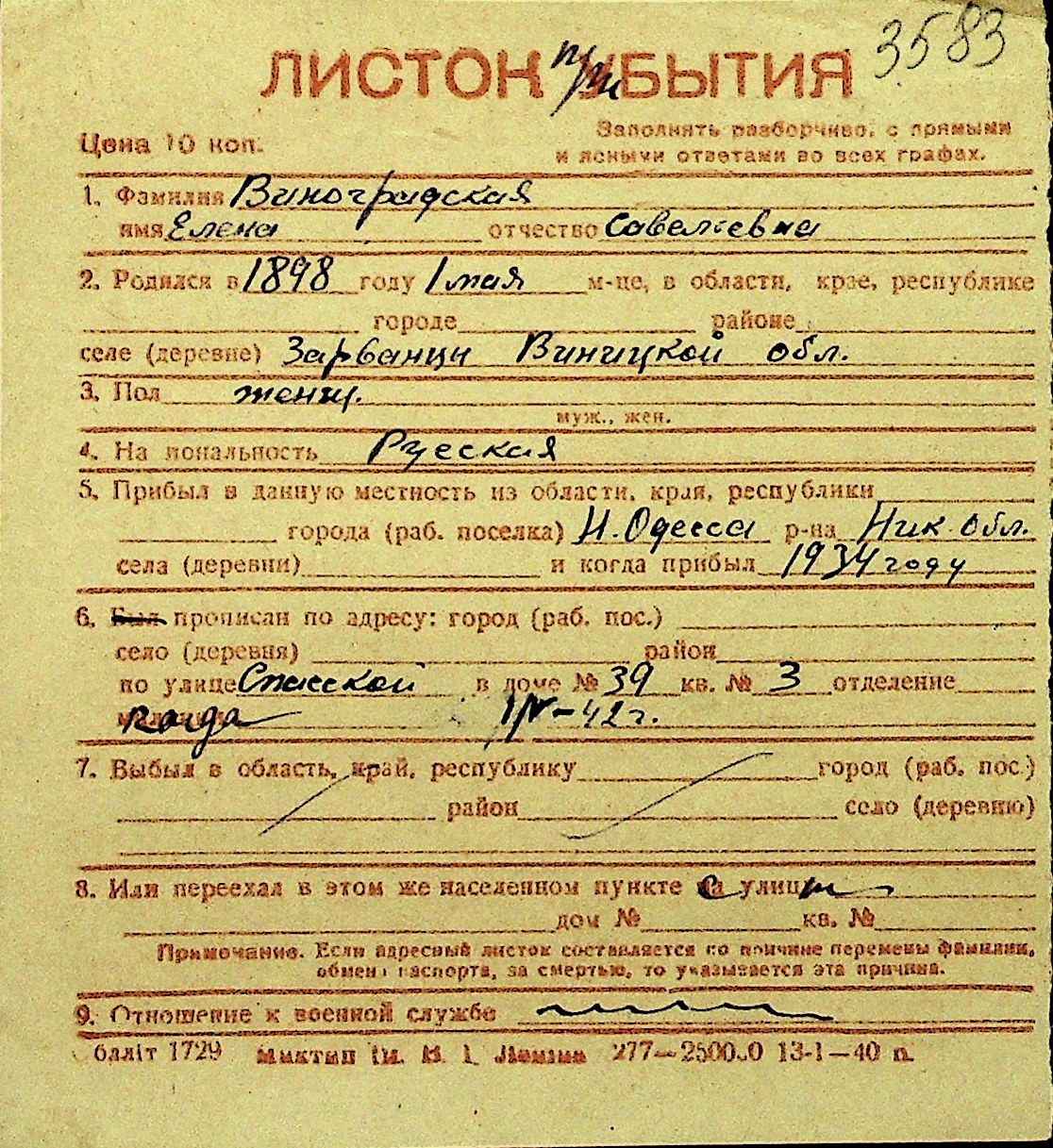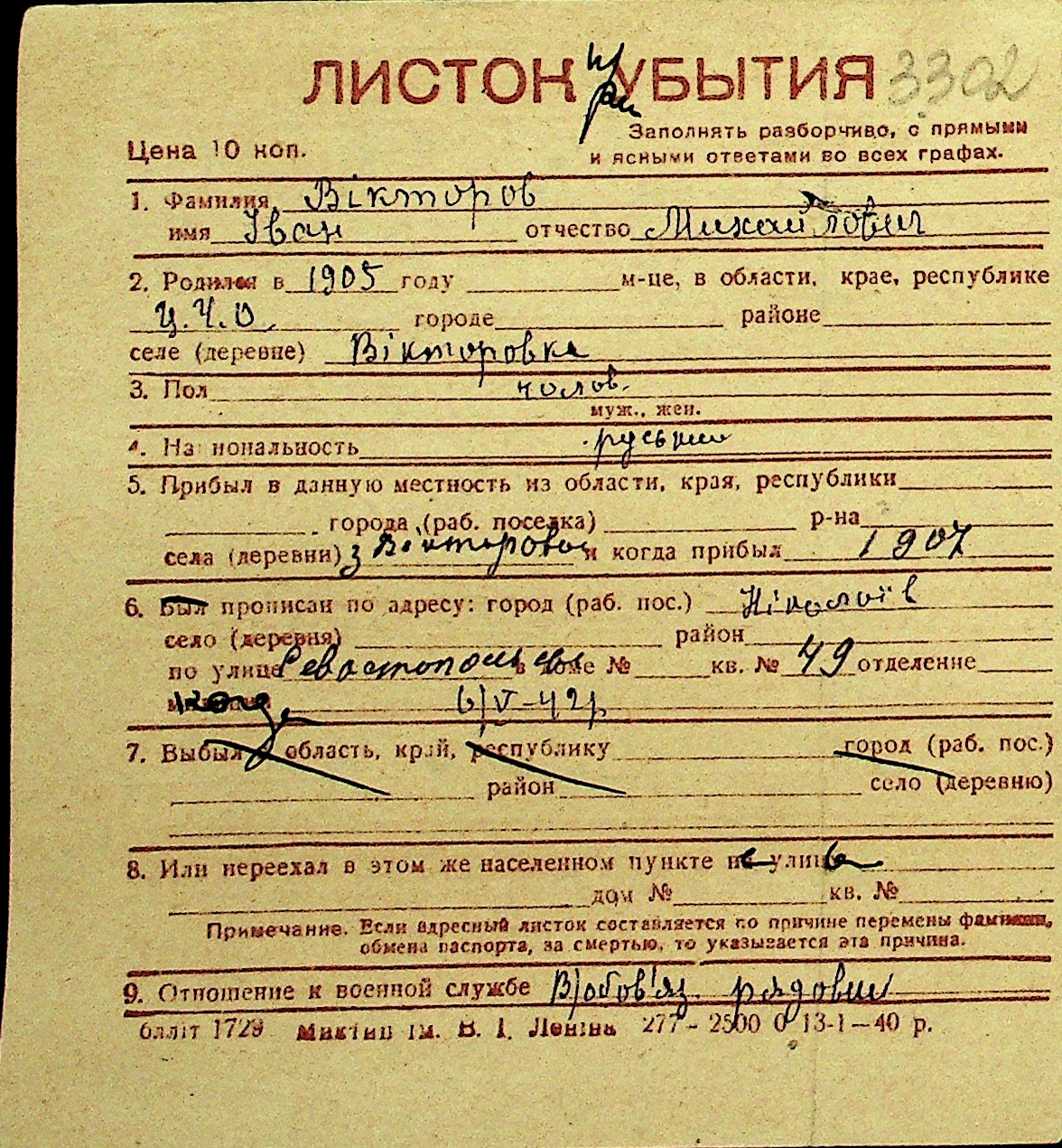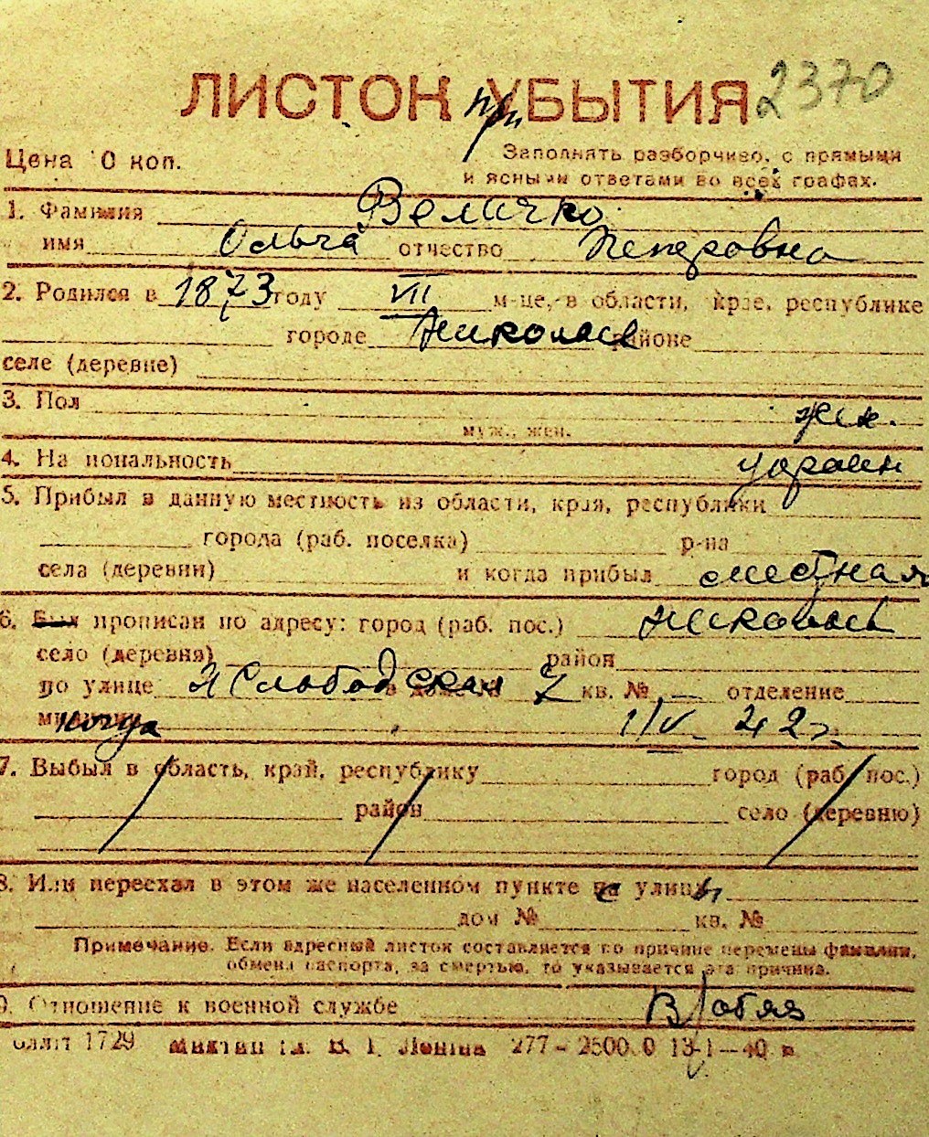 • • Перелік карток до фонду № Н-1016