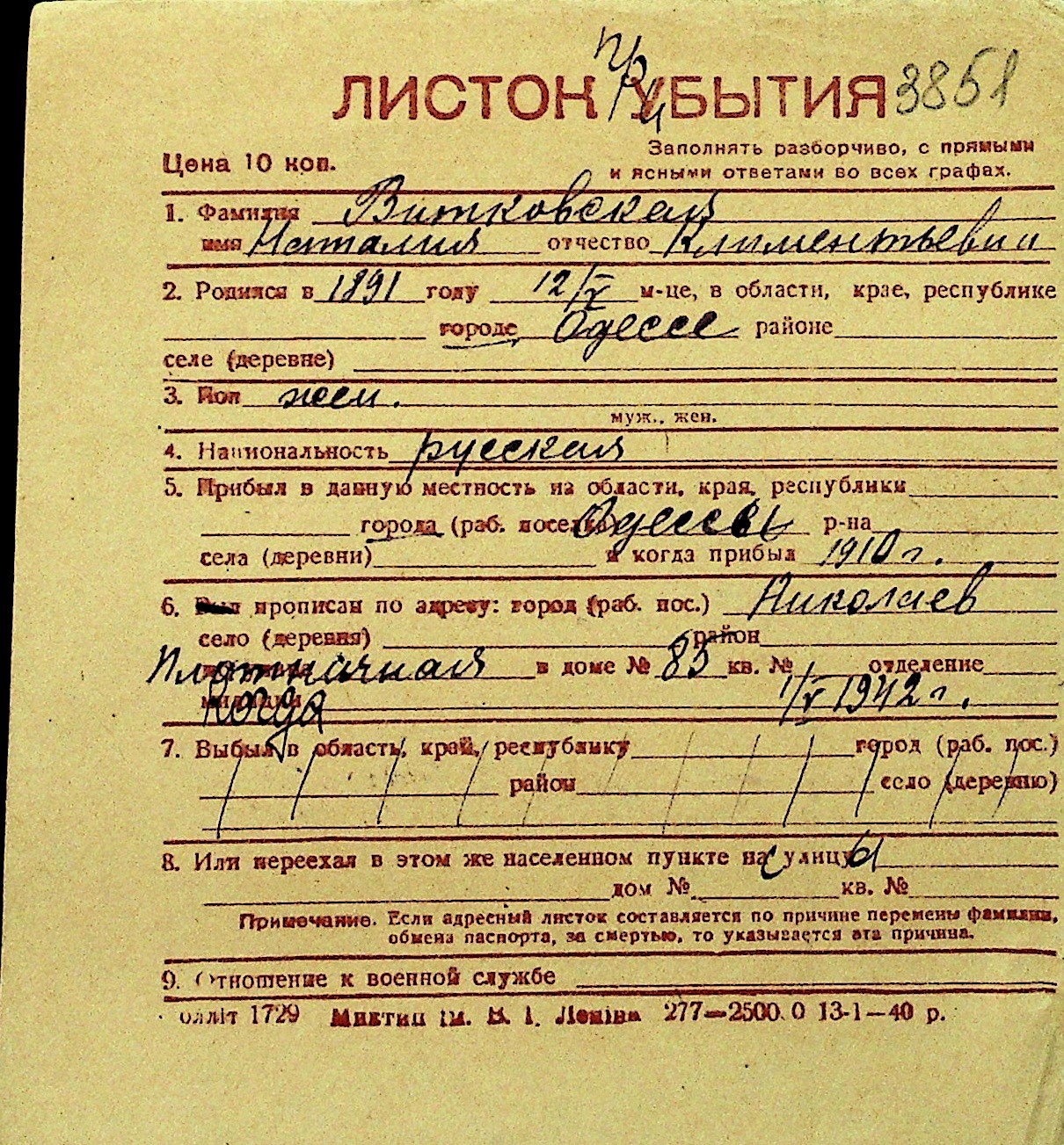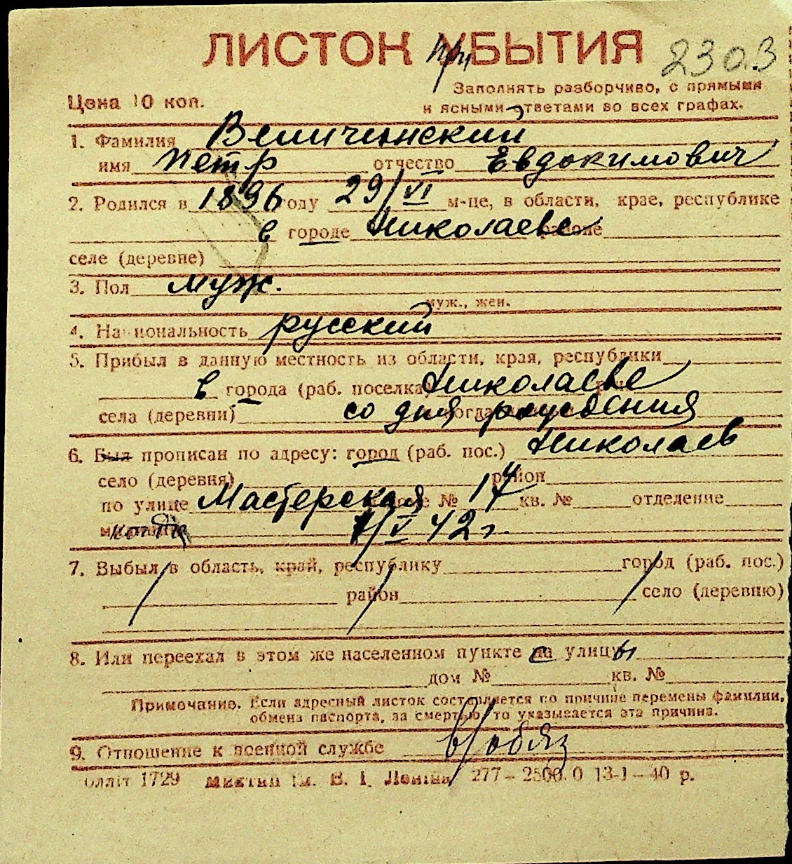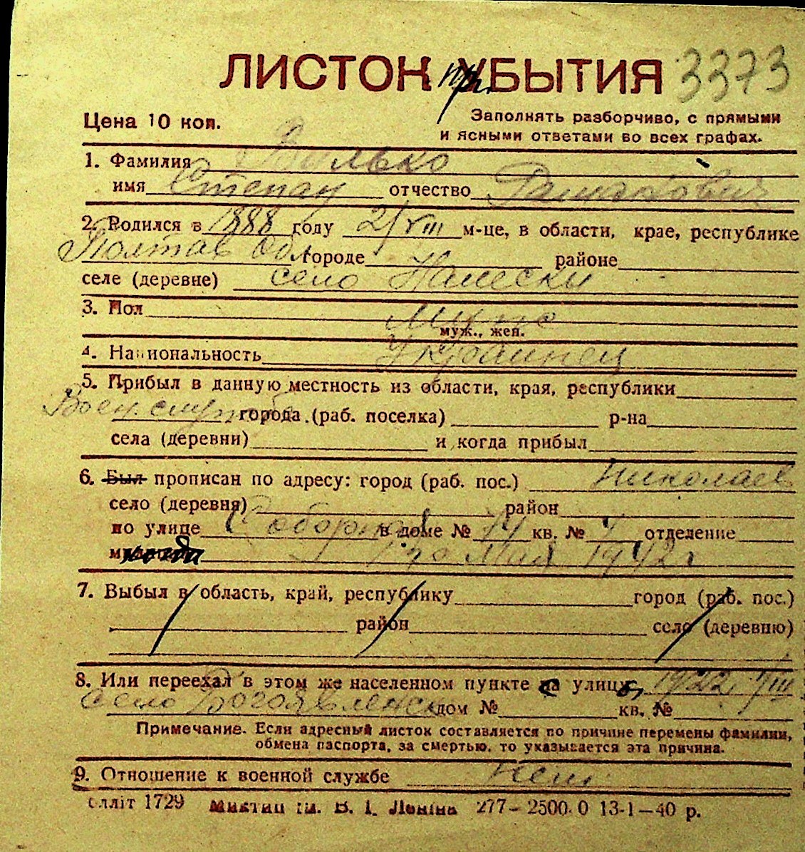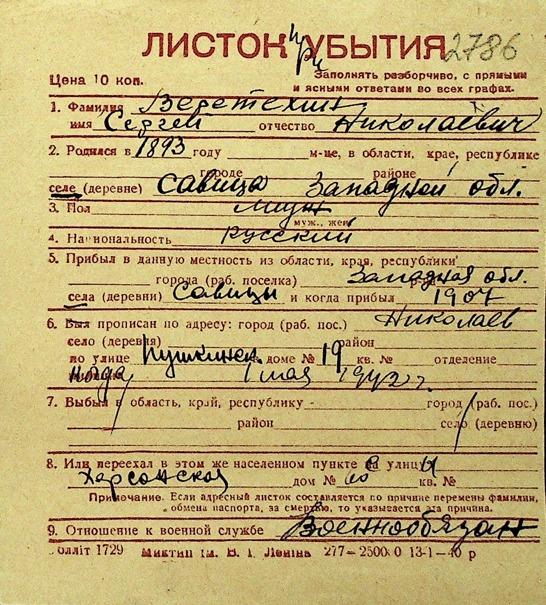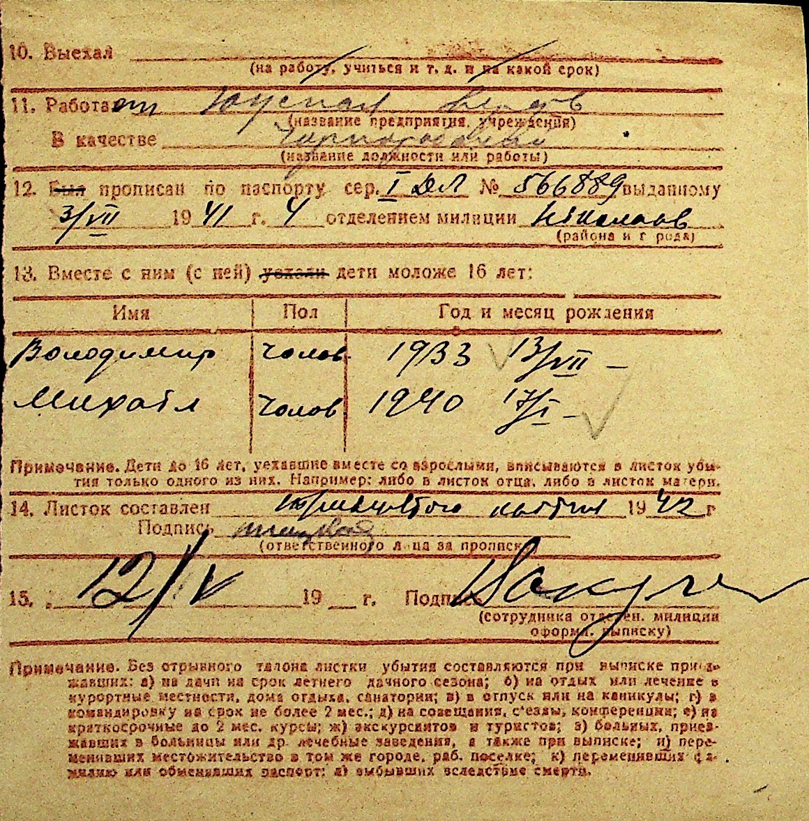 • • Перелік карток до фонду № Н-1016