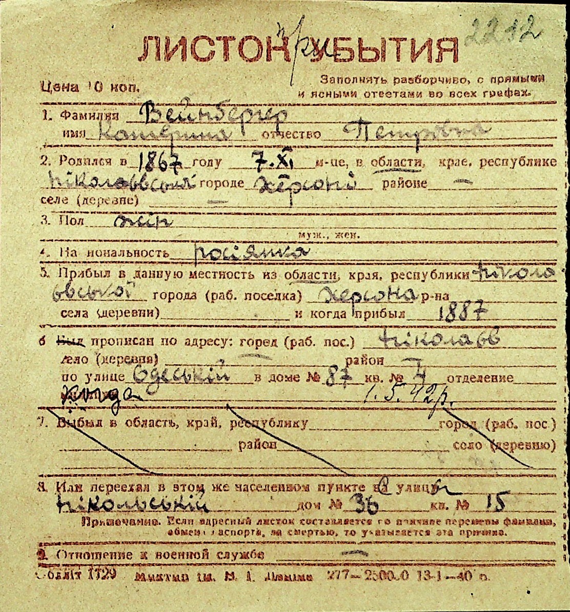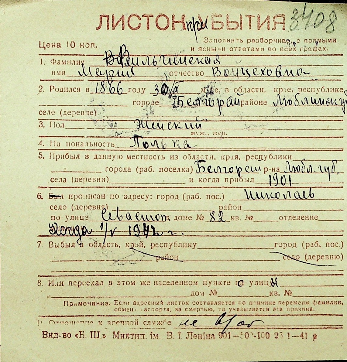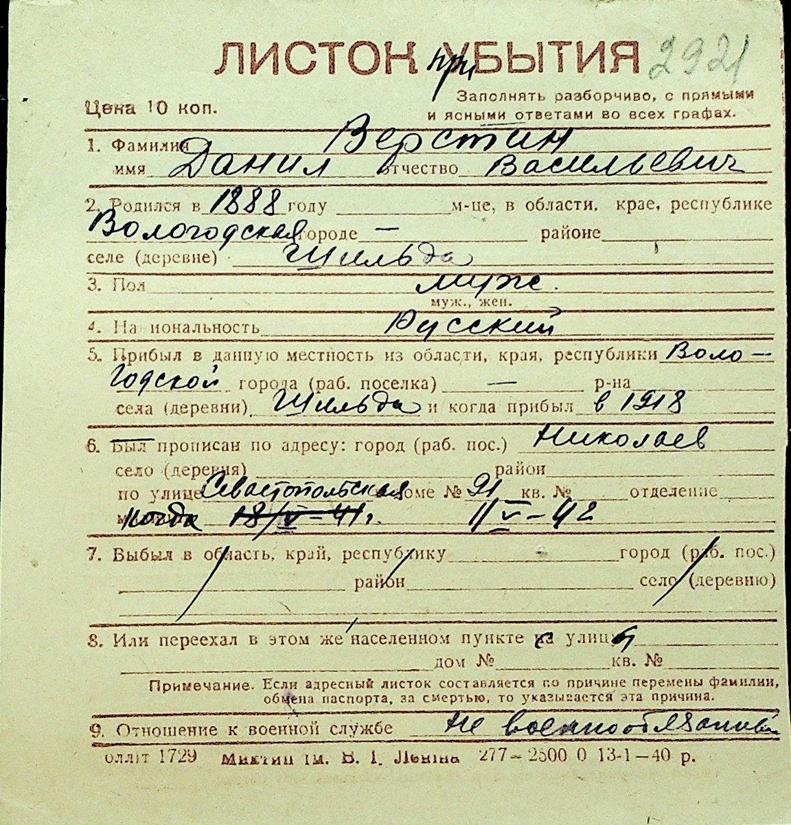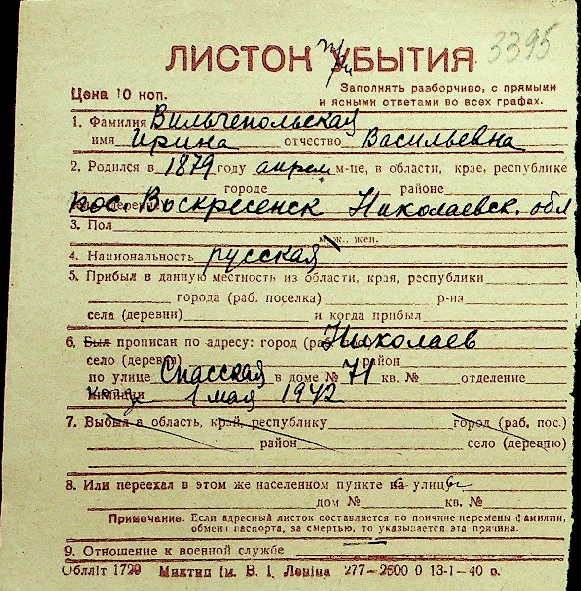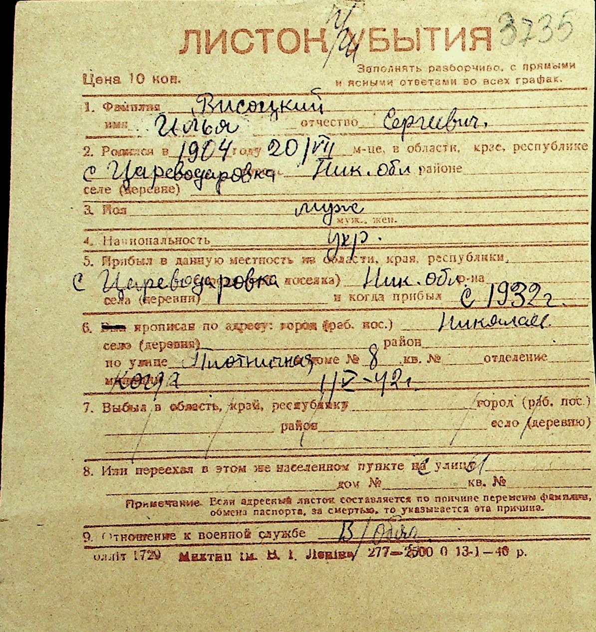 • • Перелік карток до фонду № Н-1016