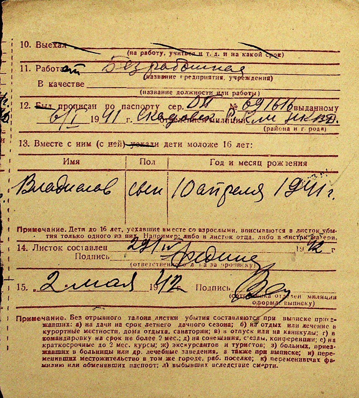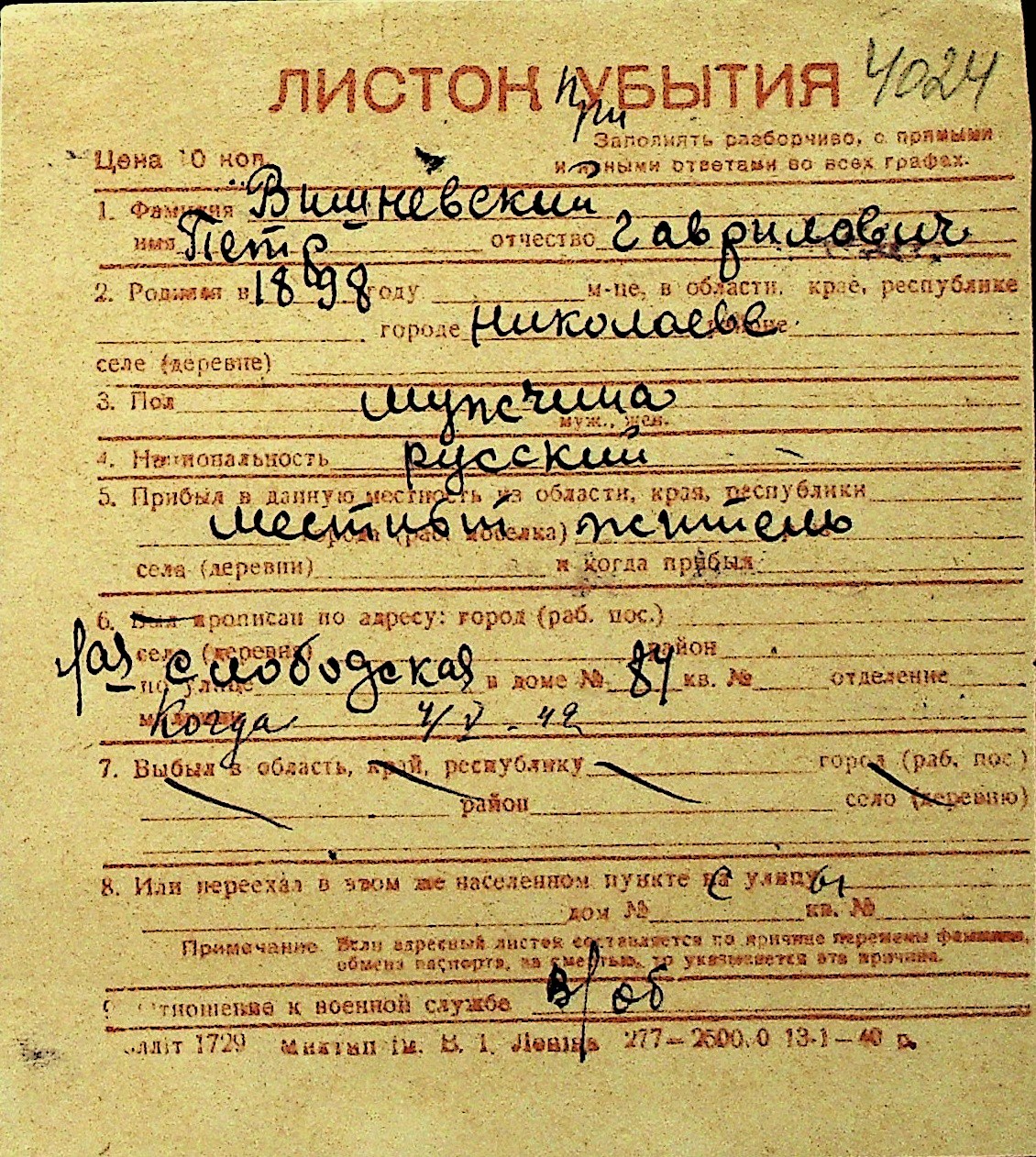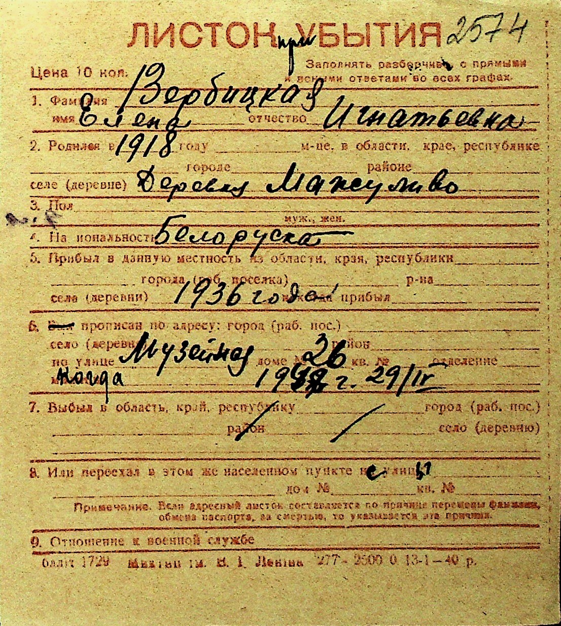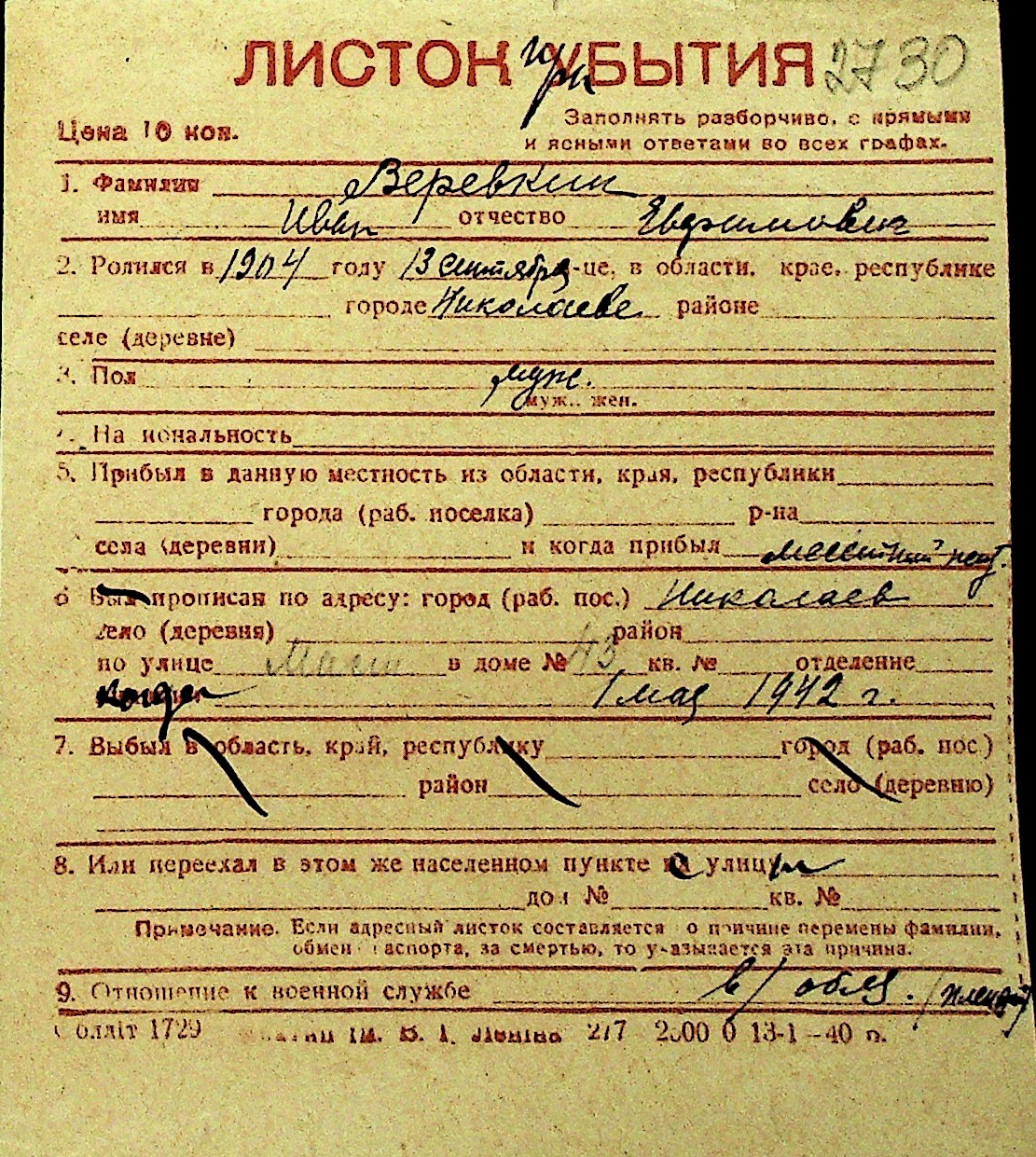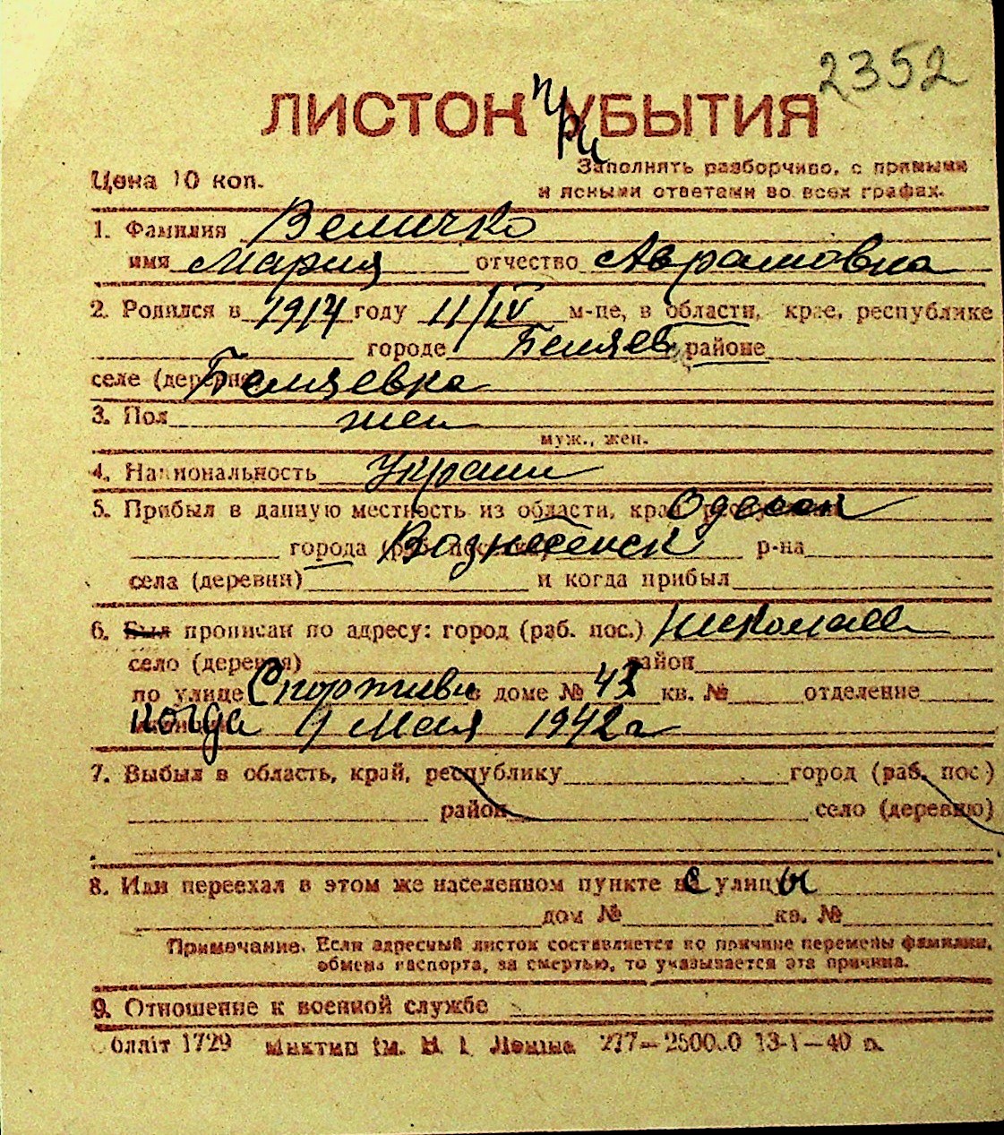 • • Перелік карток до фонду № Н-1016
