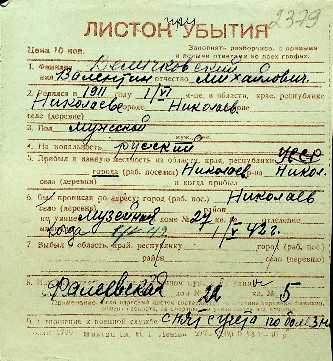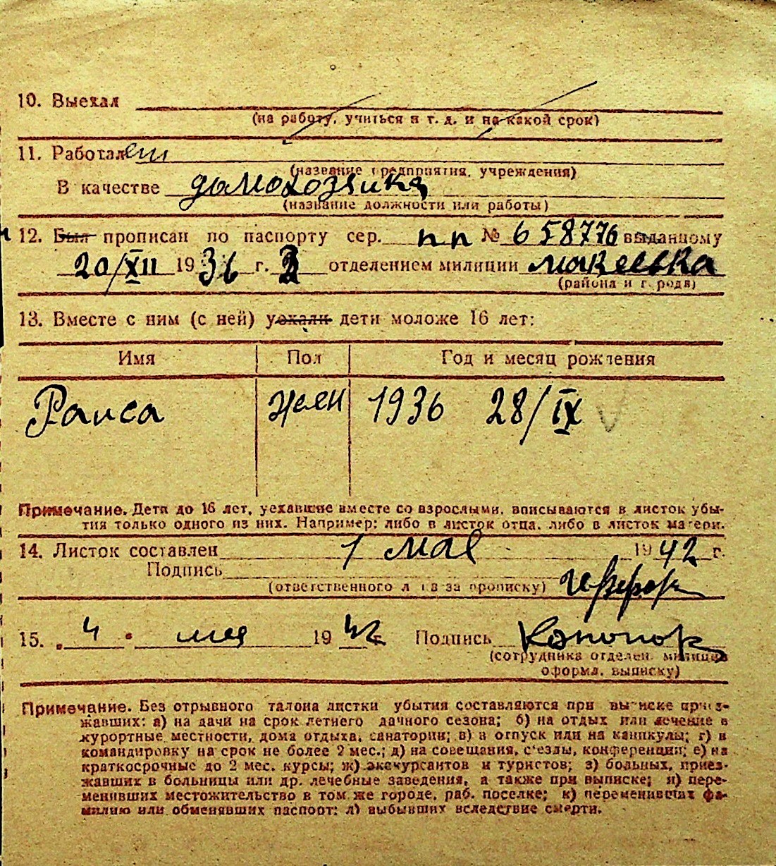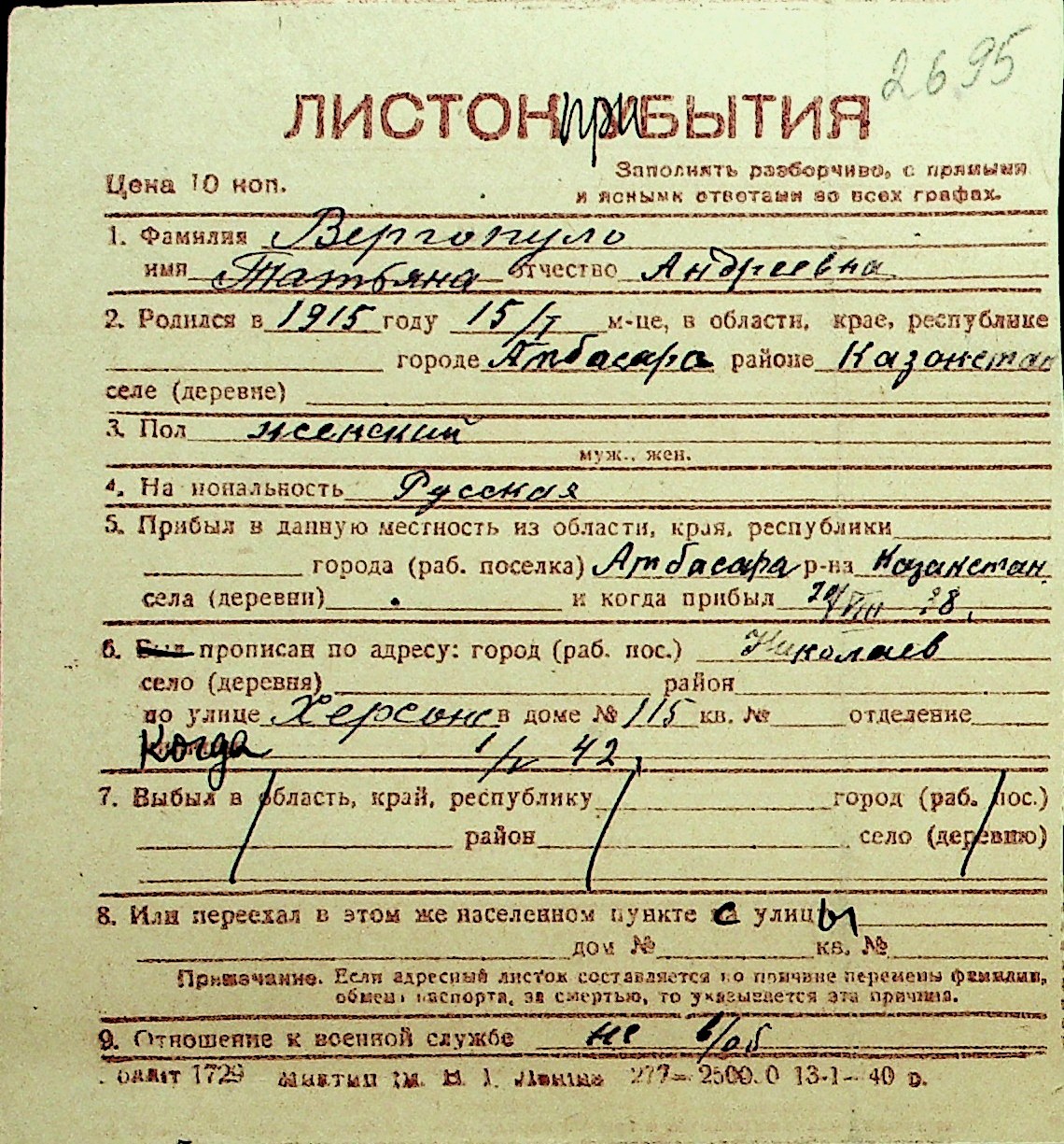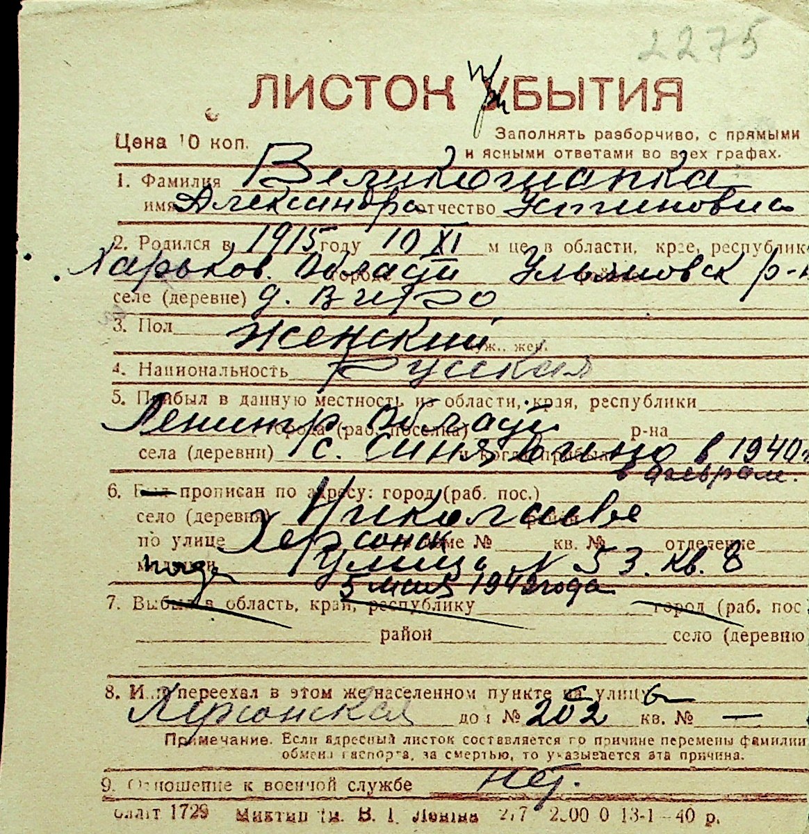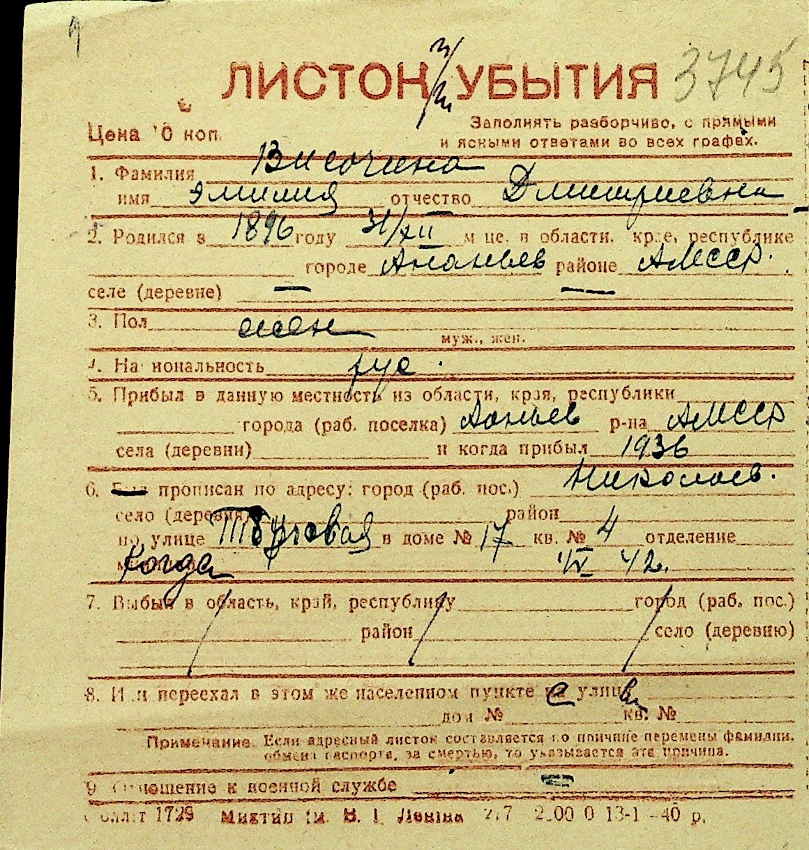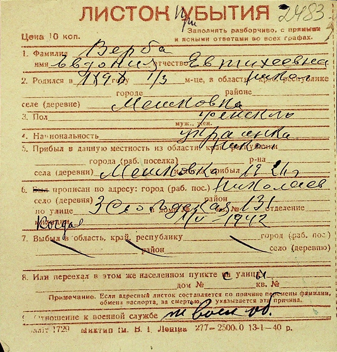 • • Перелік карток до фонду № Н-1016