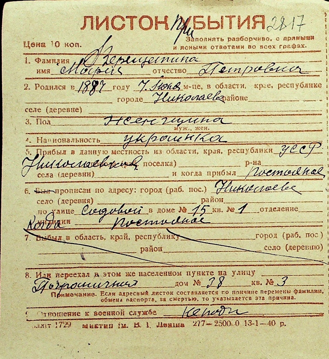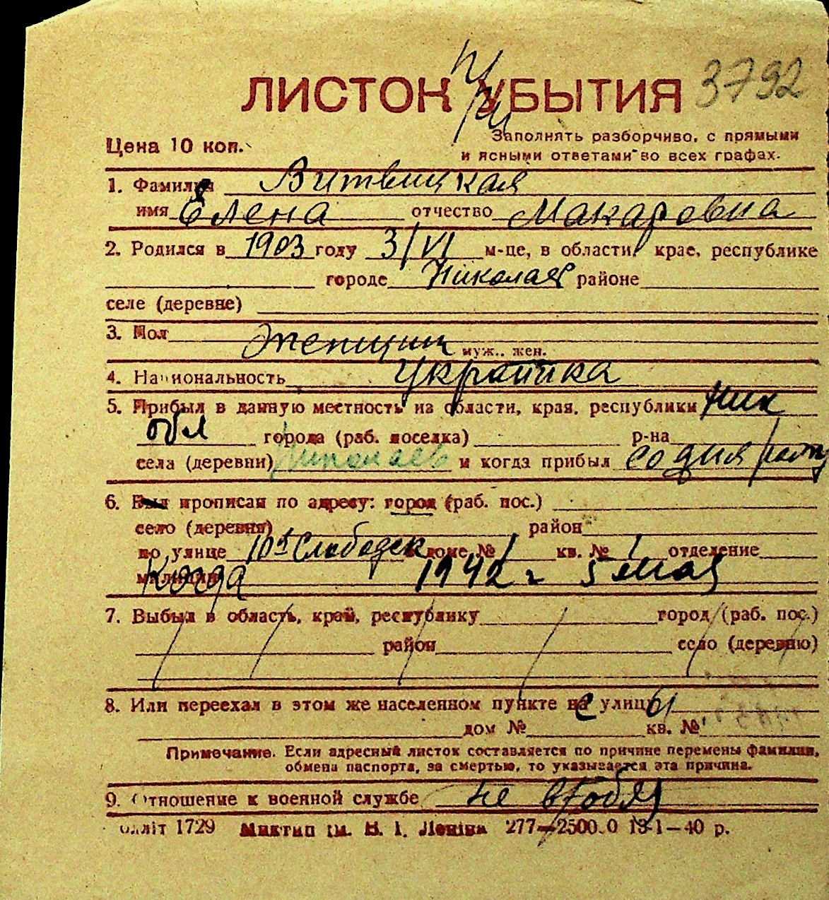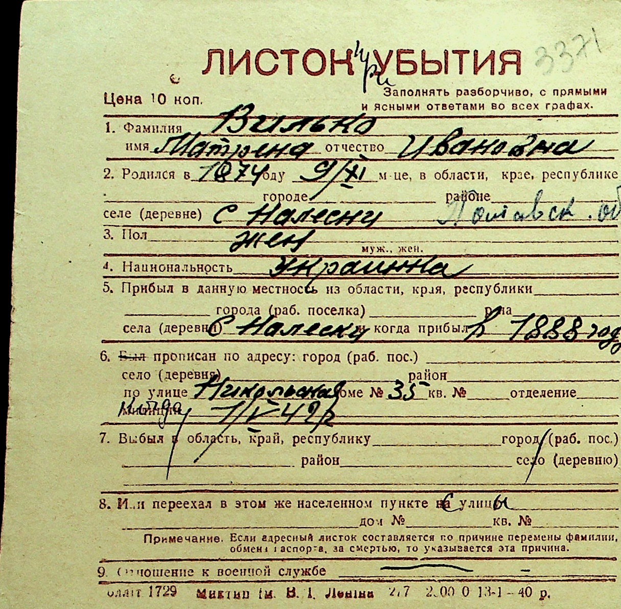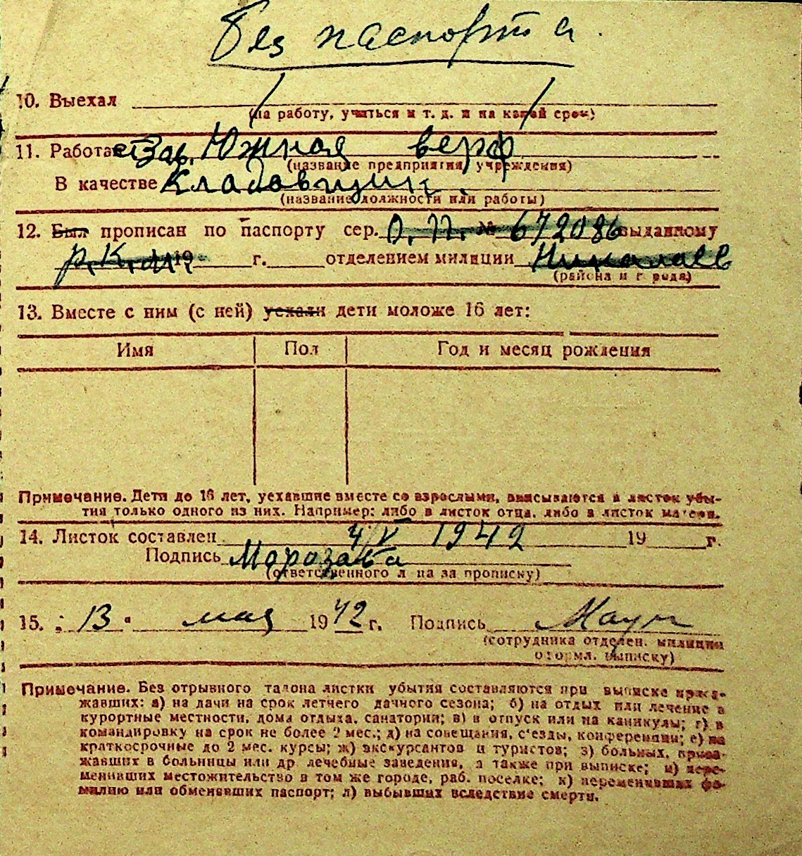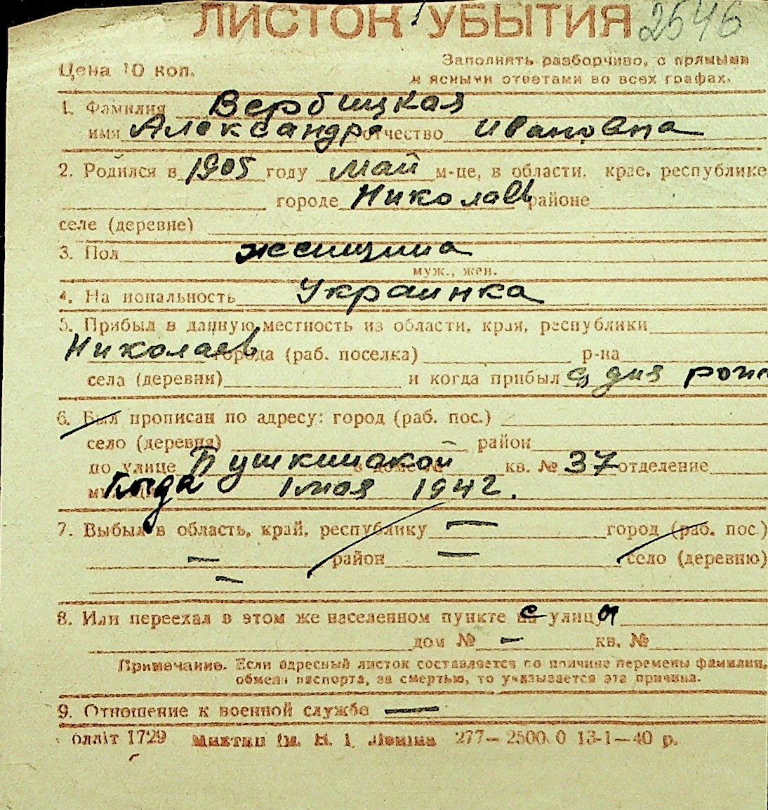 • • Перелік карток до фонду № Н-1016