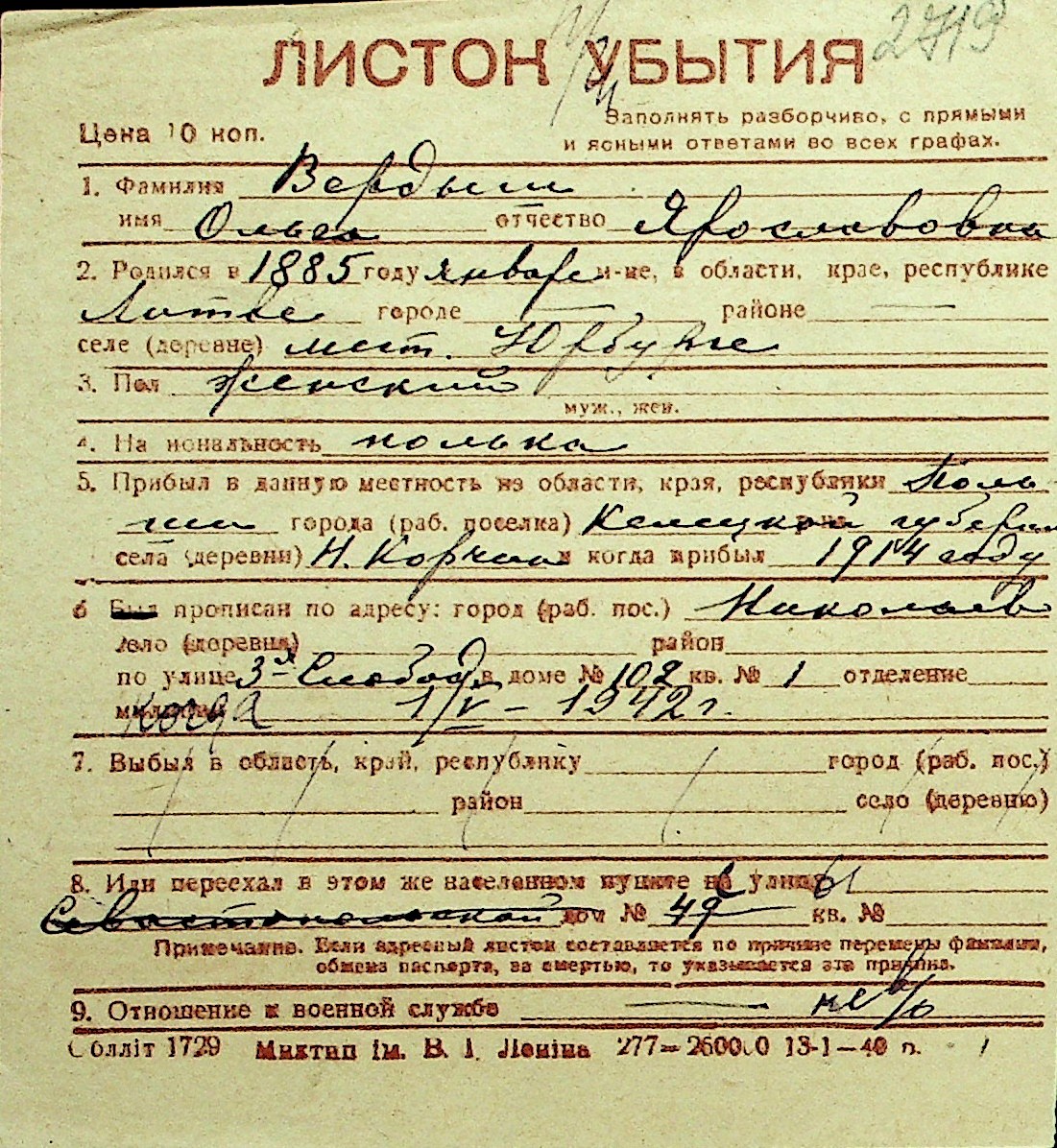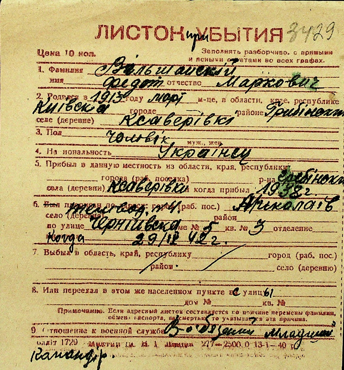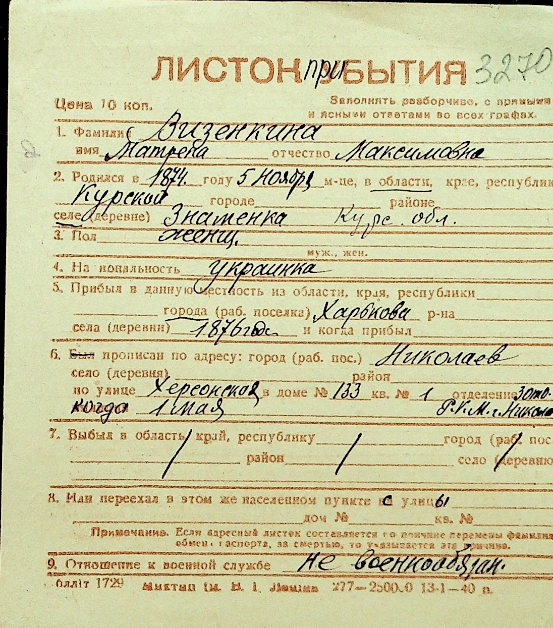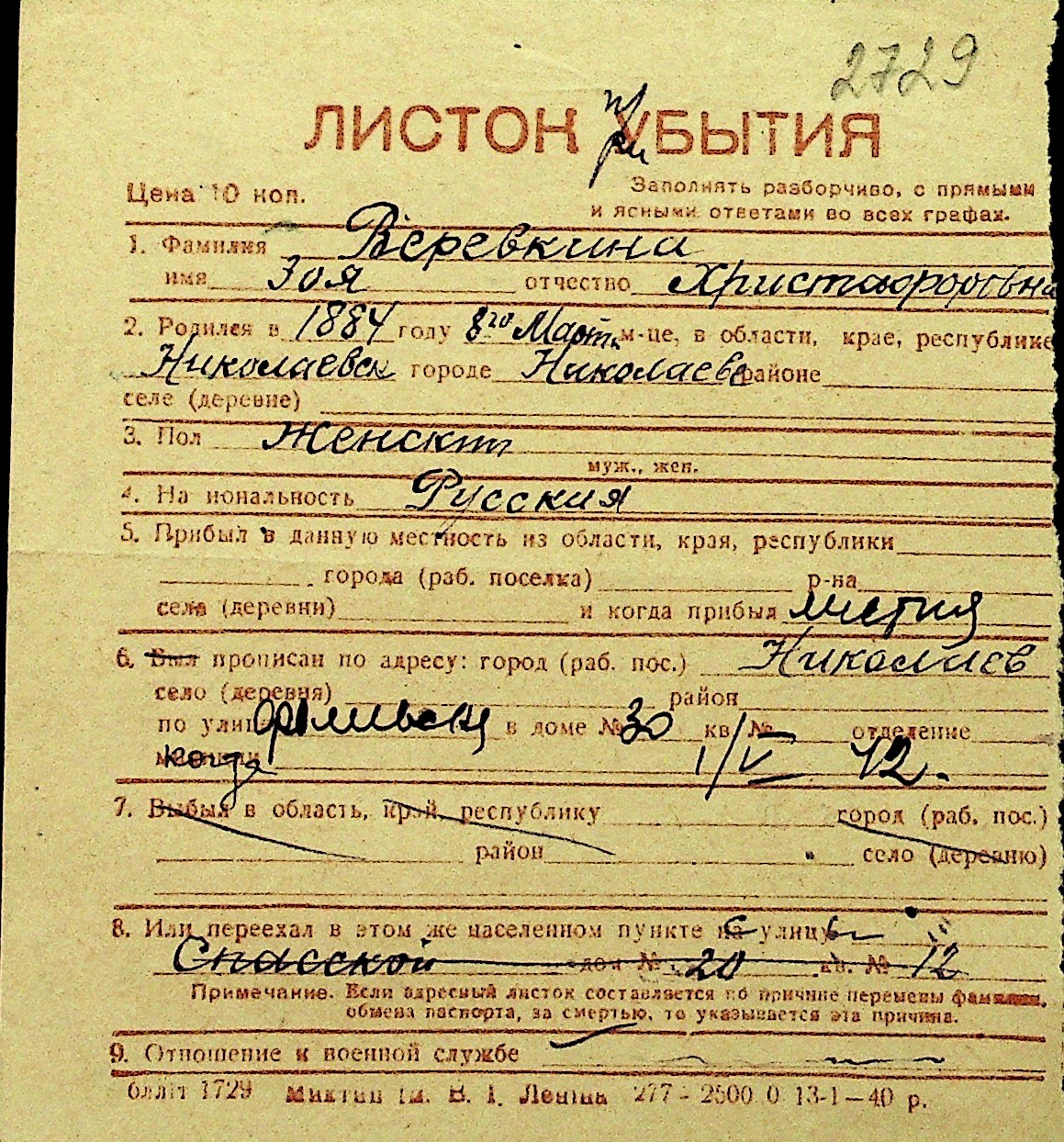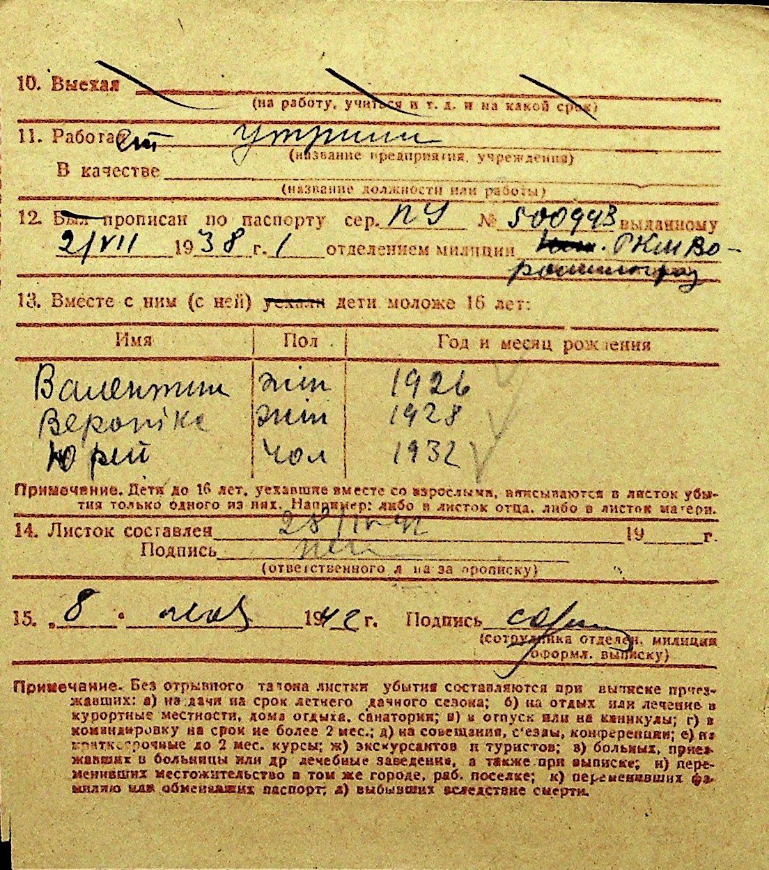 • • Перелік карток до фонду № Н-1016