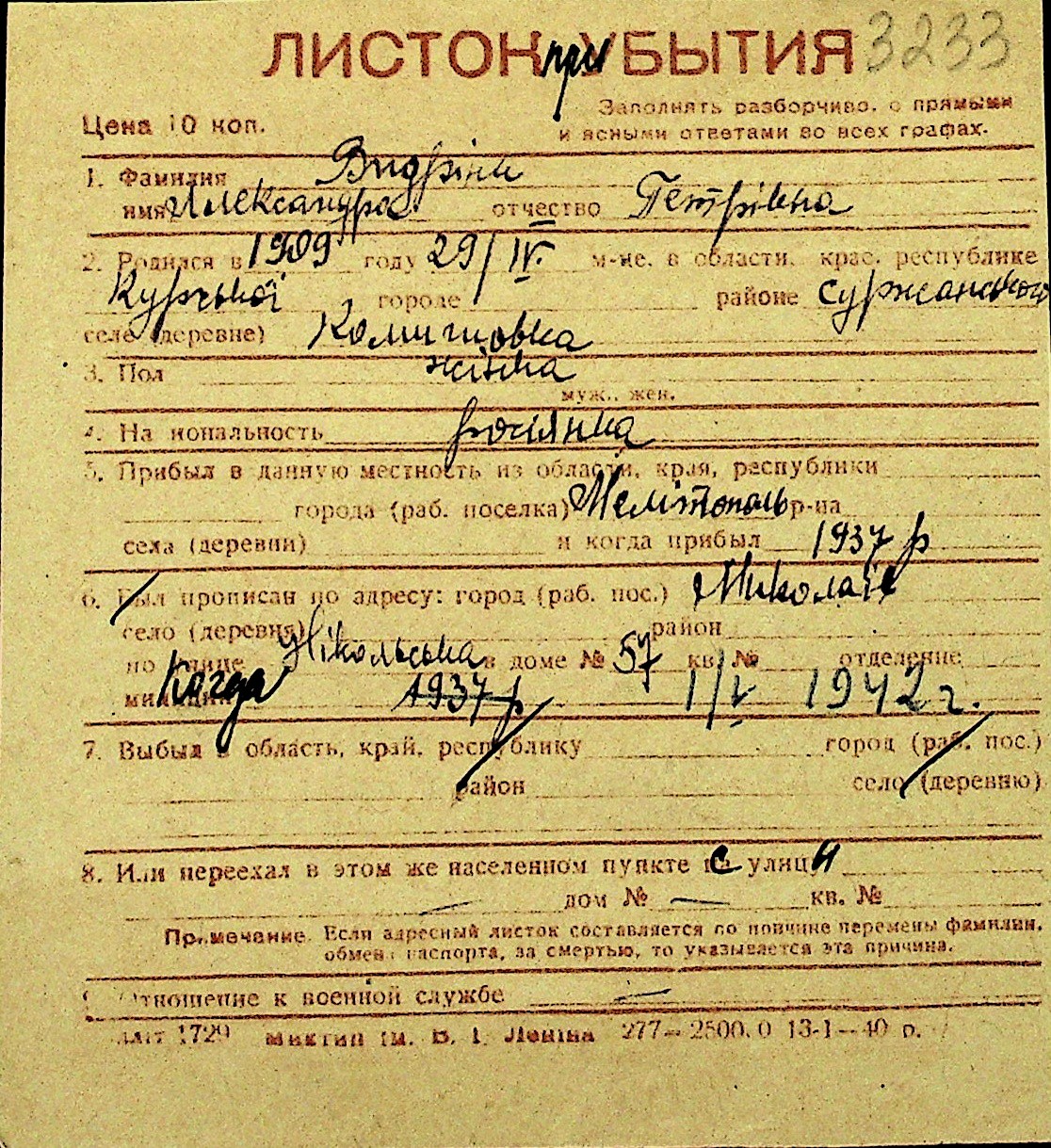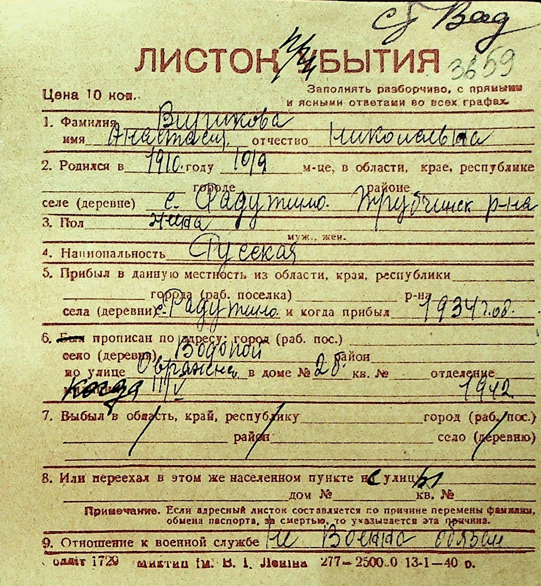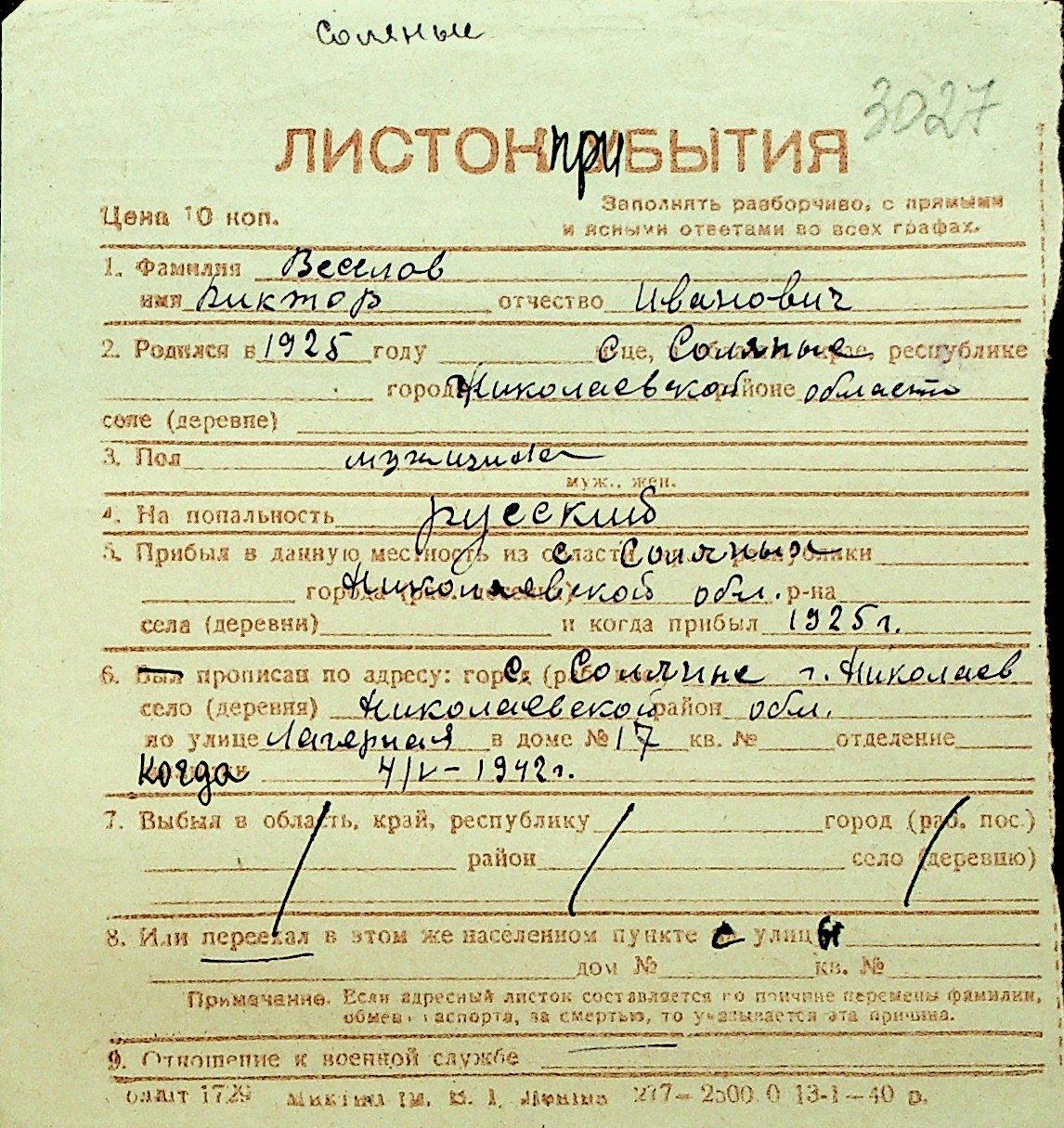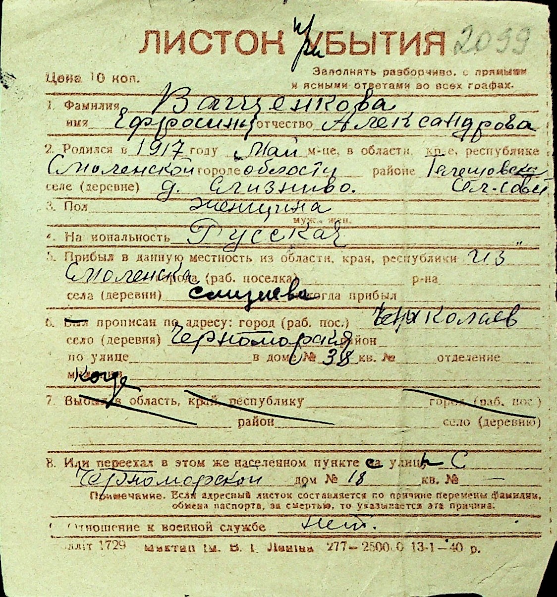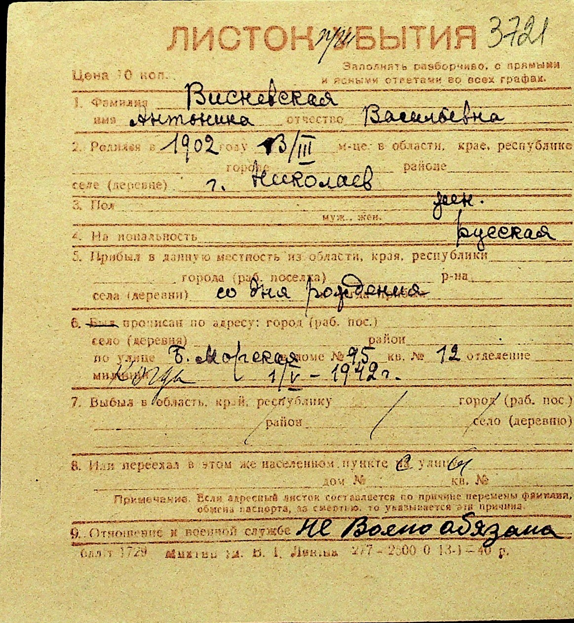 • • Перелік карток до фонду № Н-1016