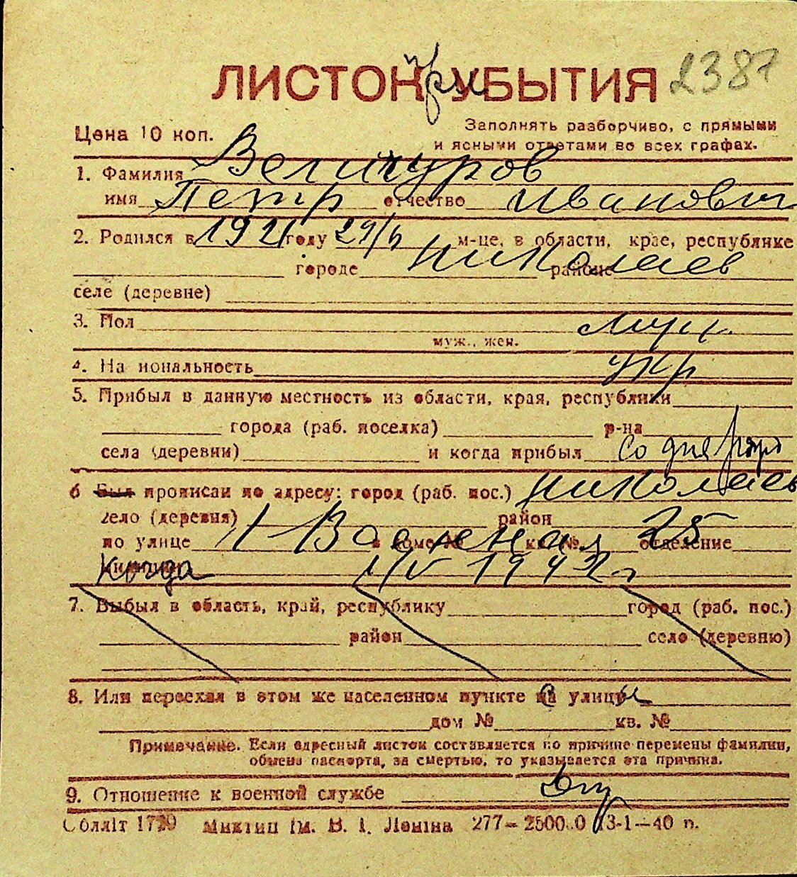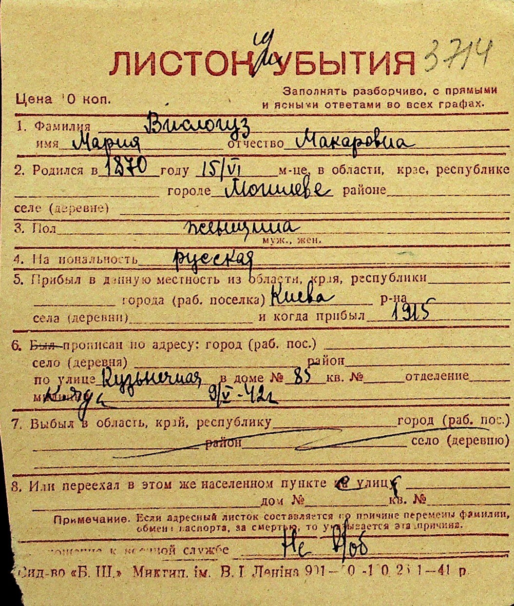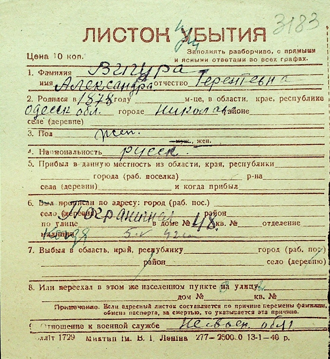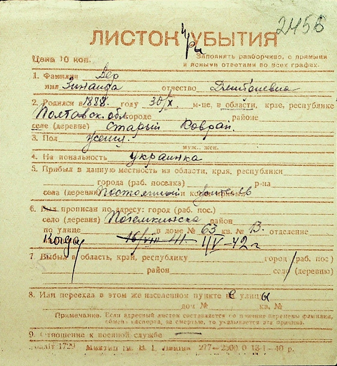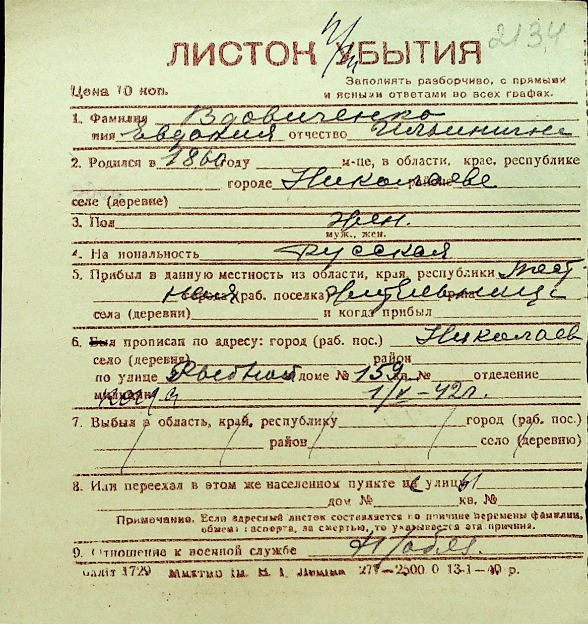 • • Перелік карток до фонду № Н-1016