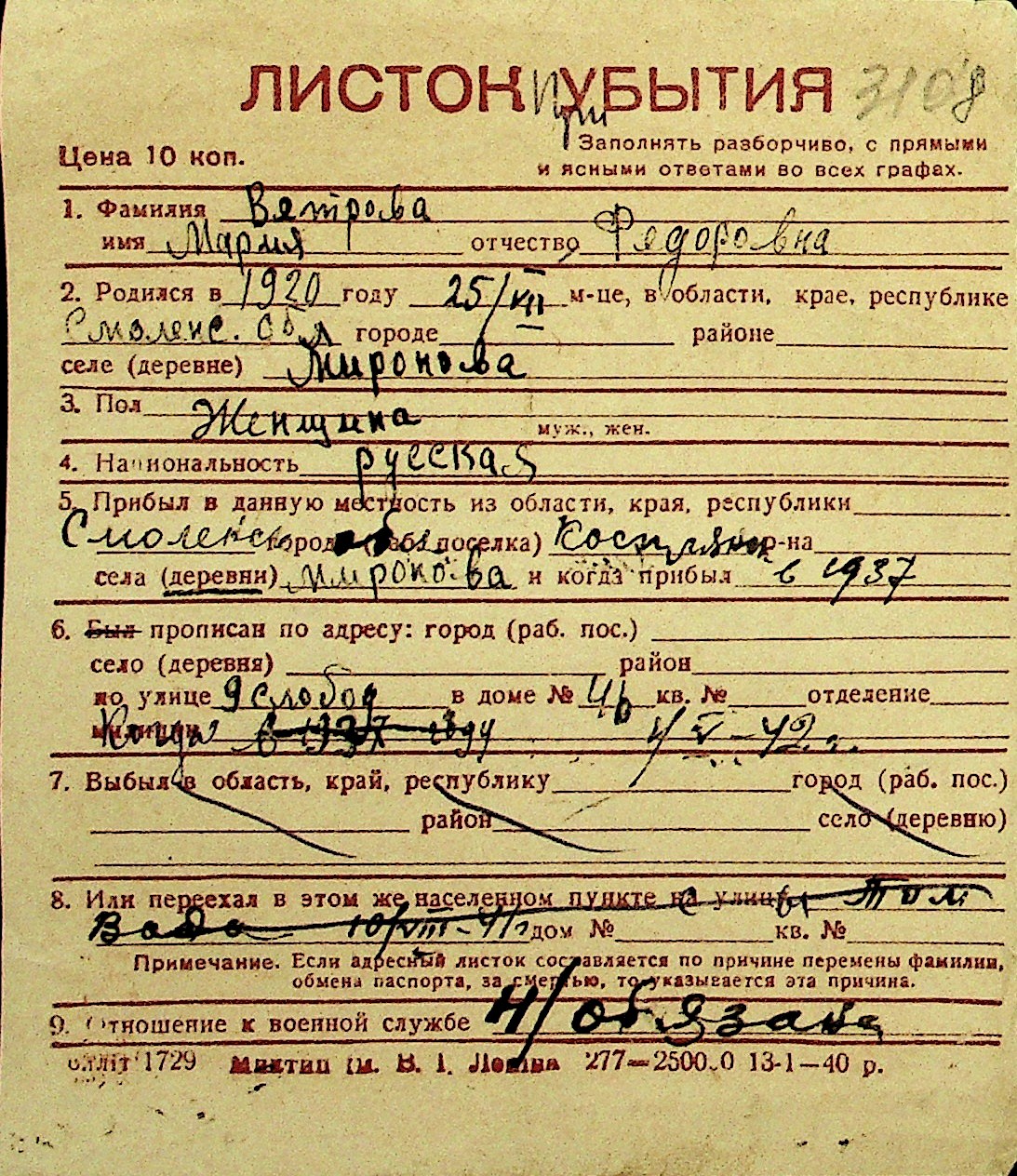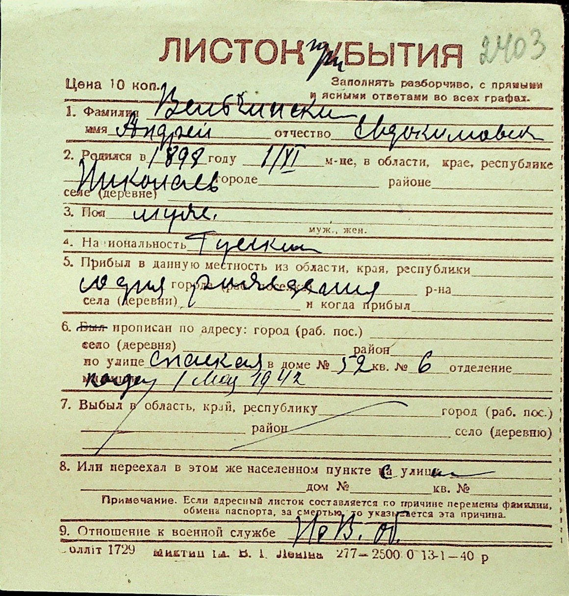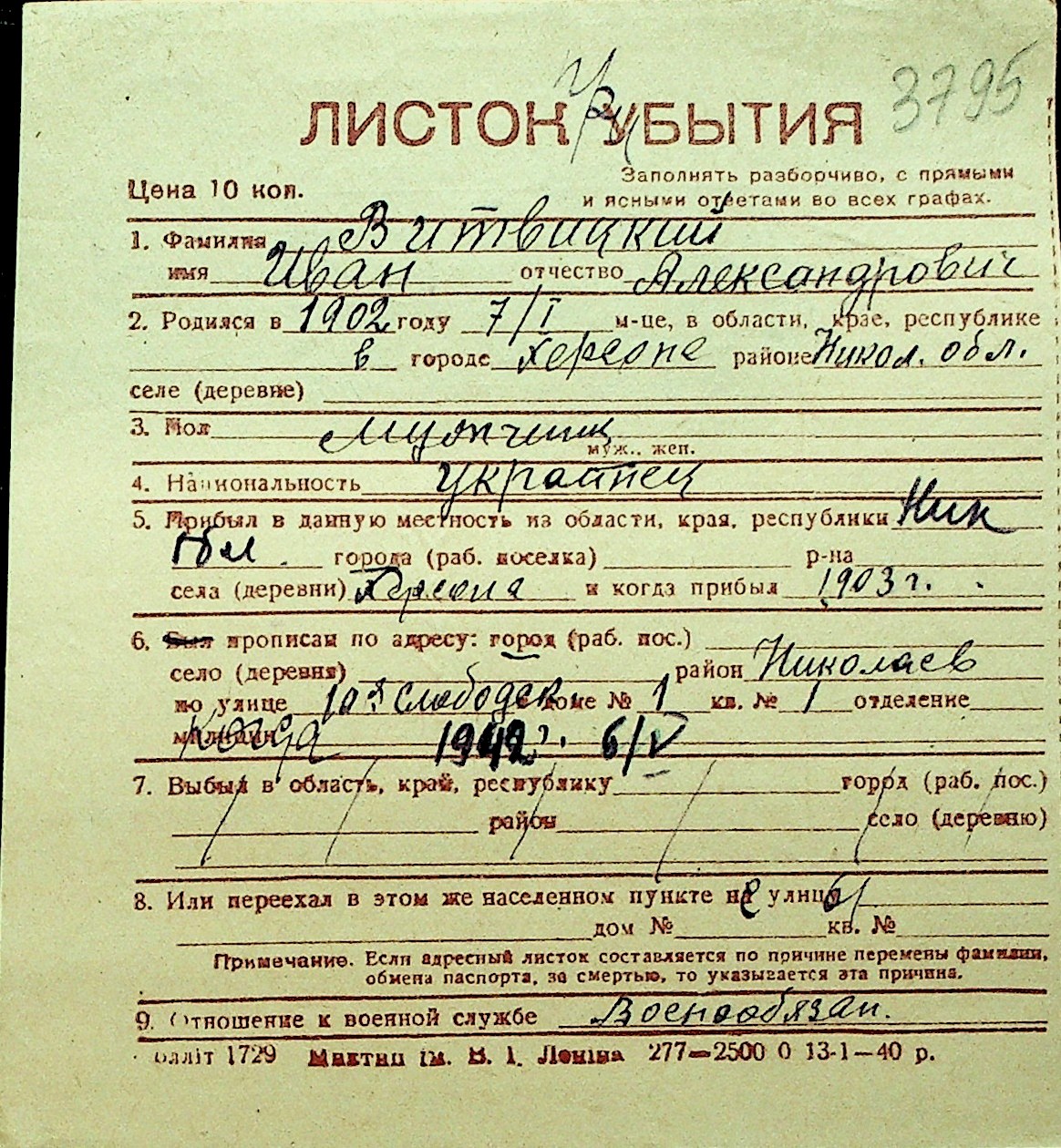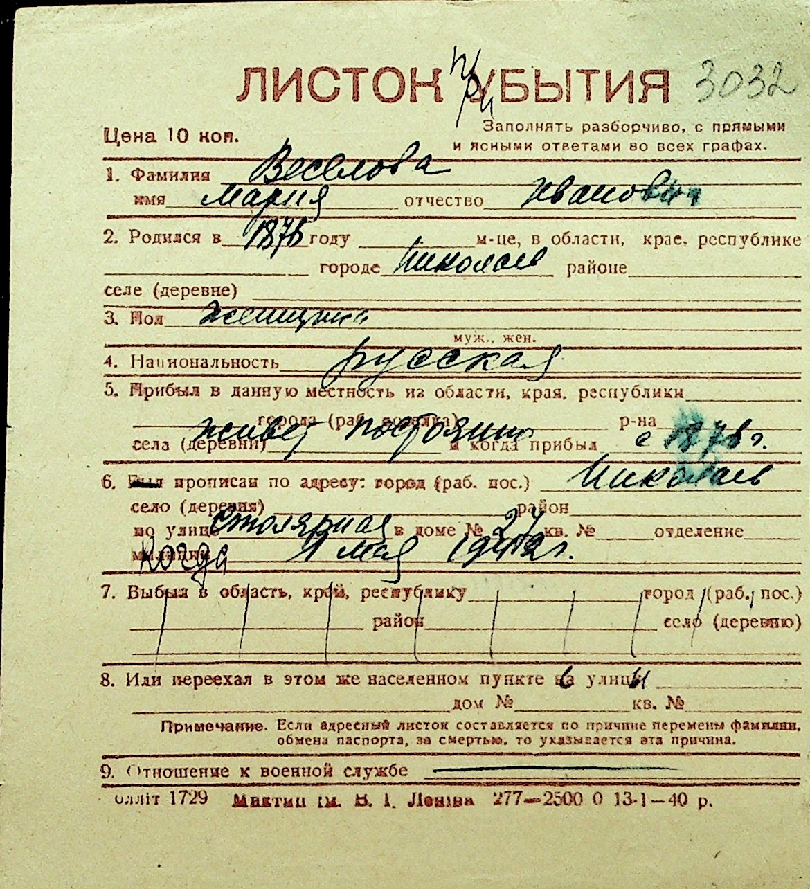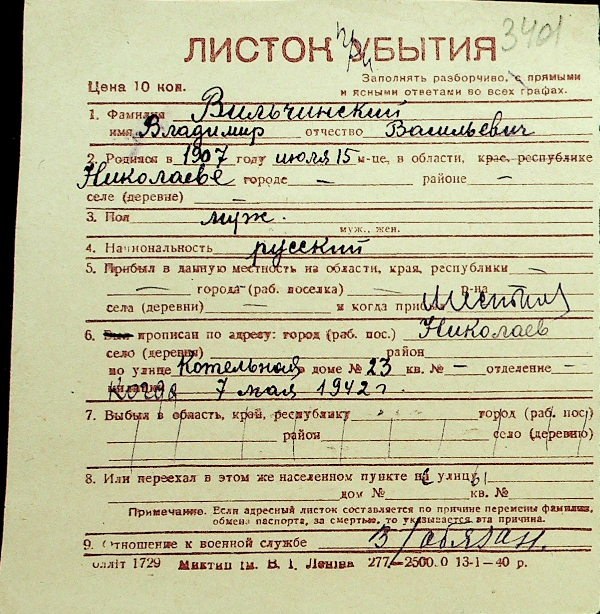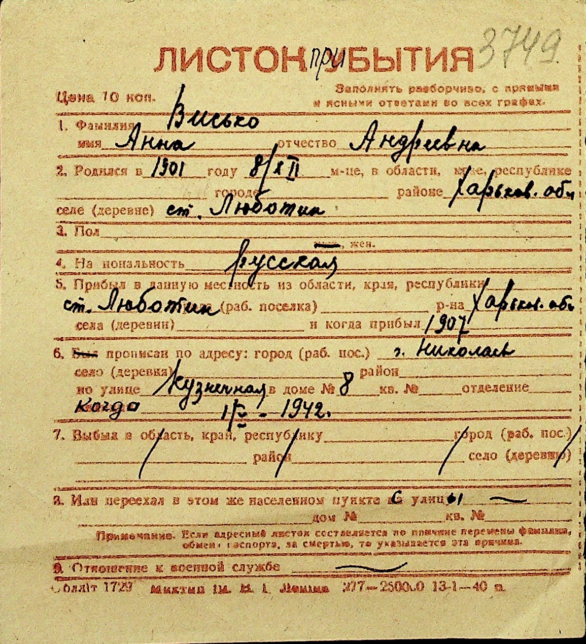 • • Перелік карток до фонду № Н-1016