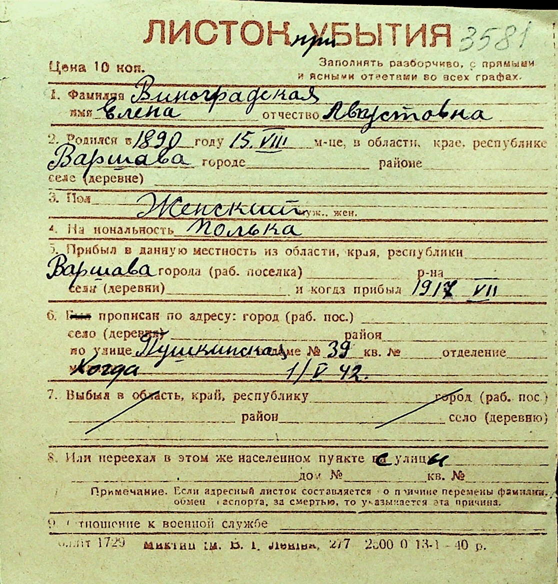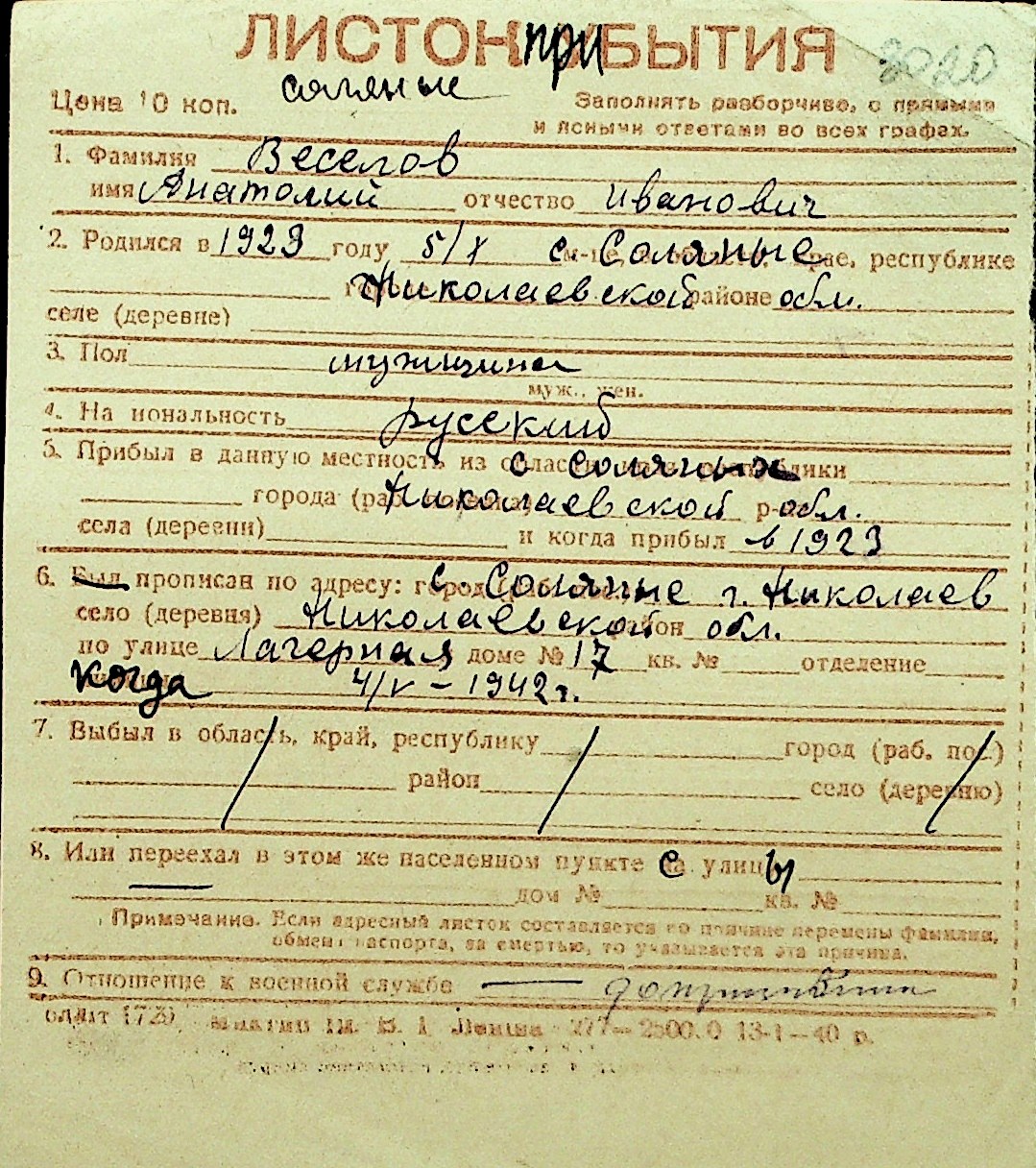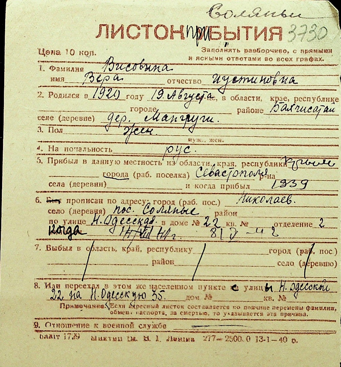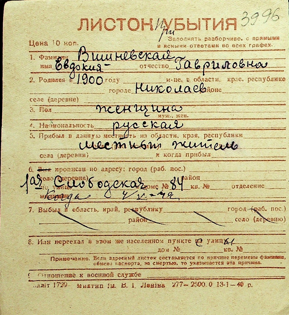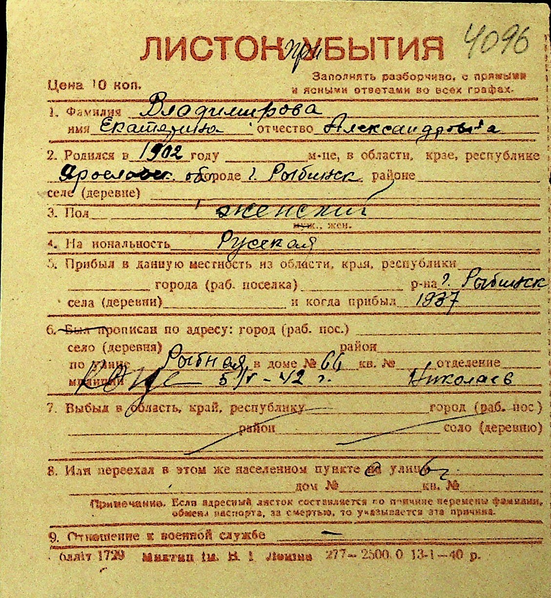 • • Перелік карток до фонду № Н-1016