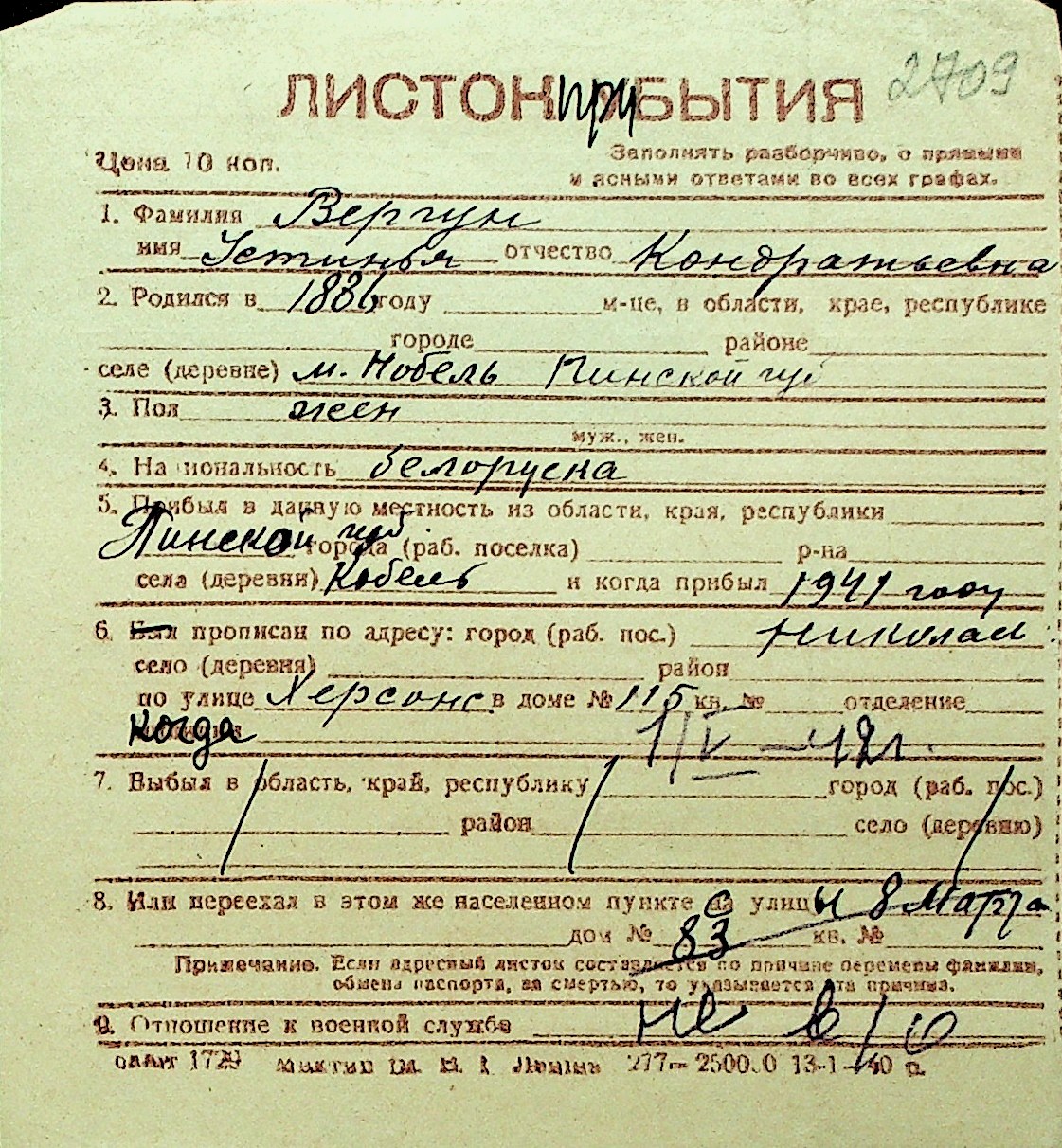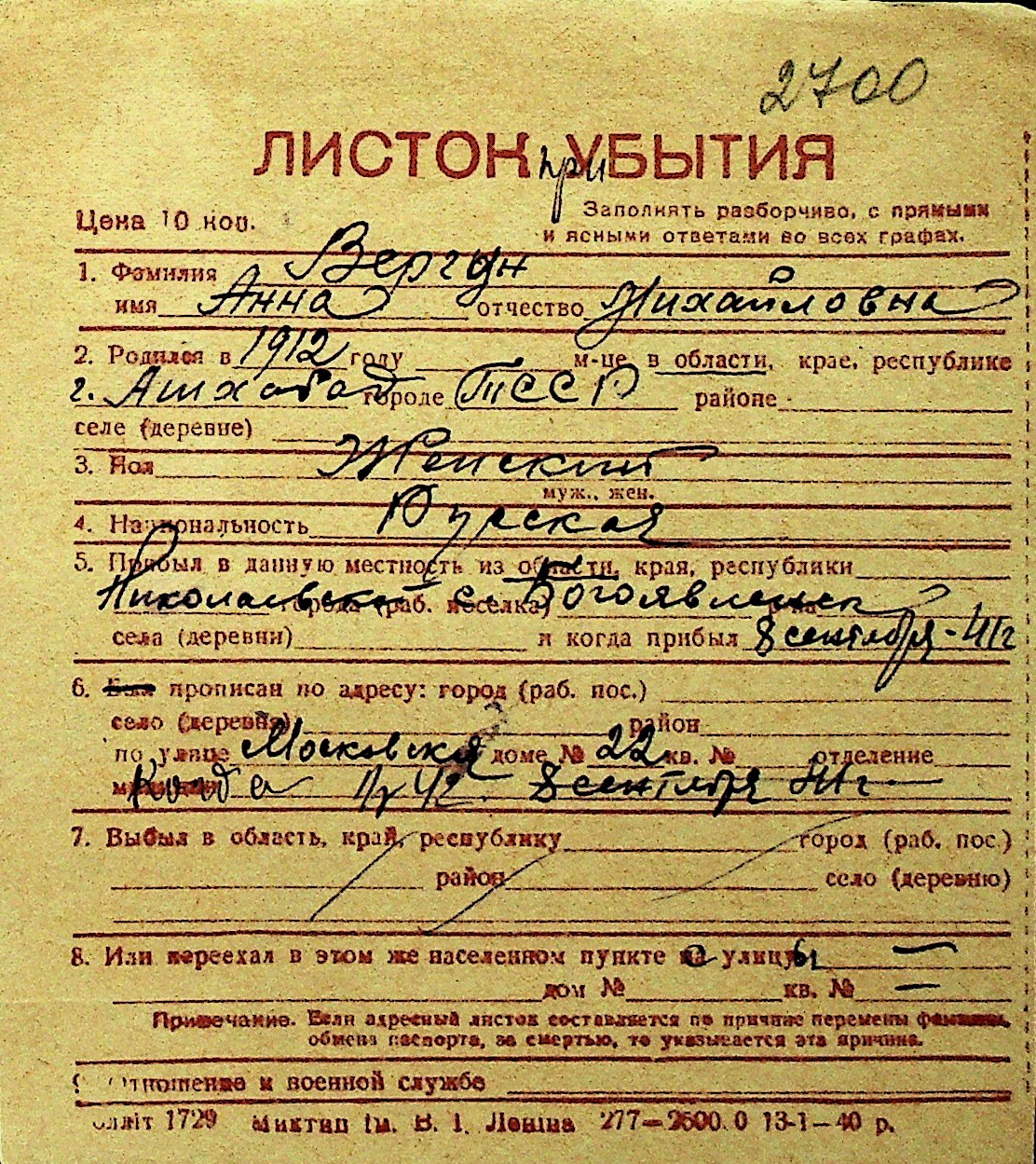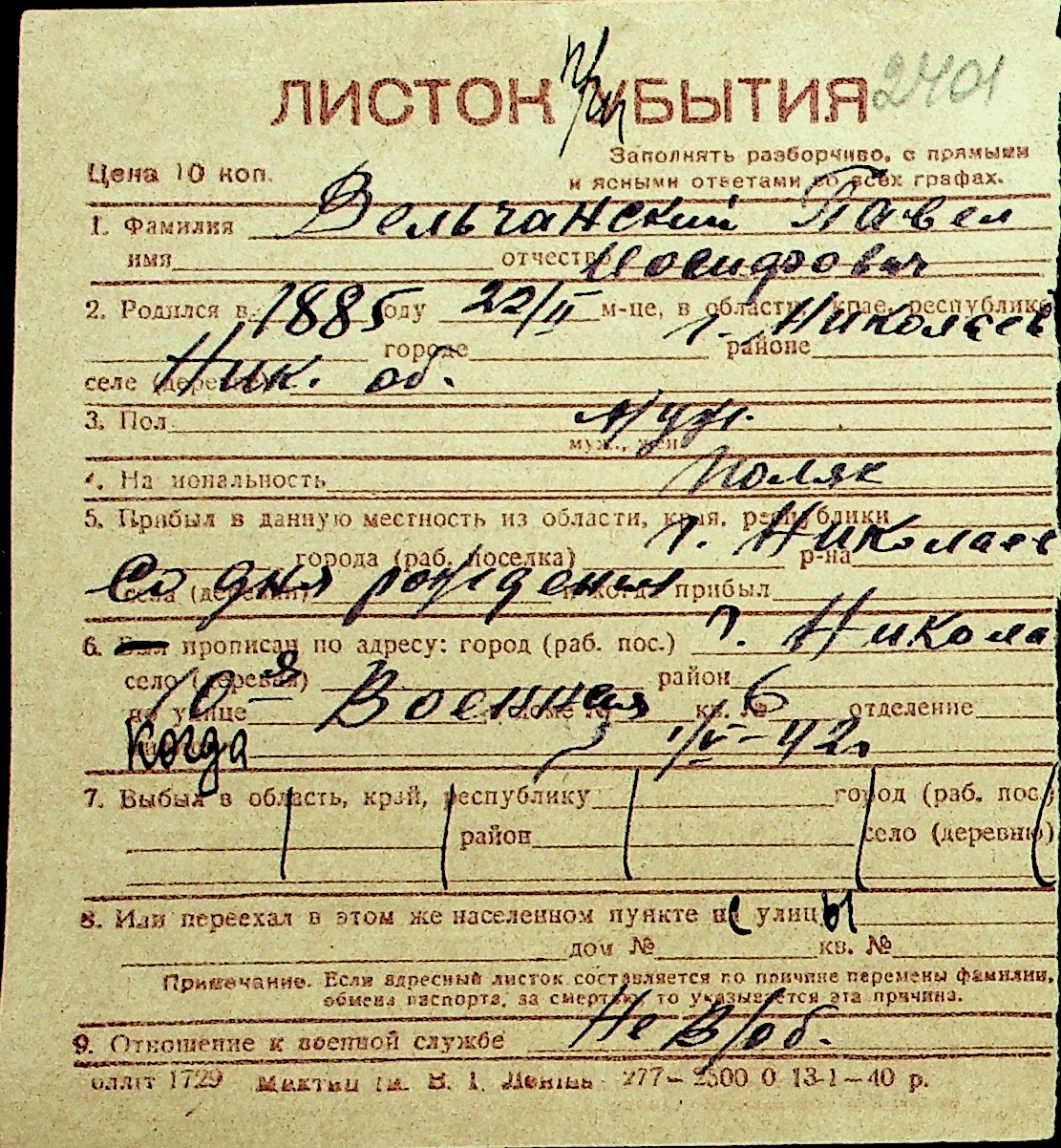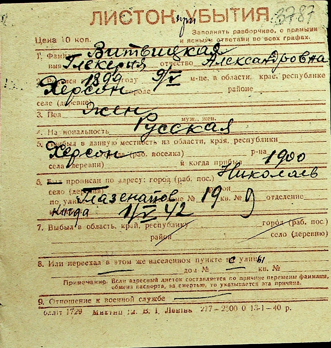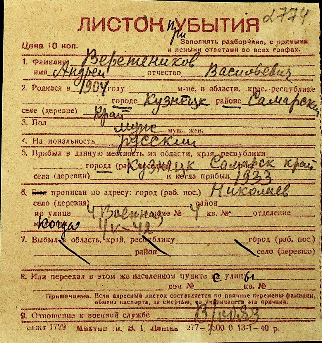 • • Перелік карток до фонду № Н-1016