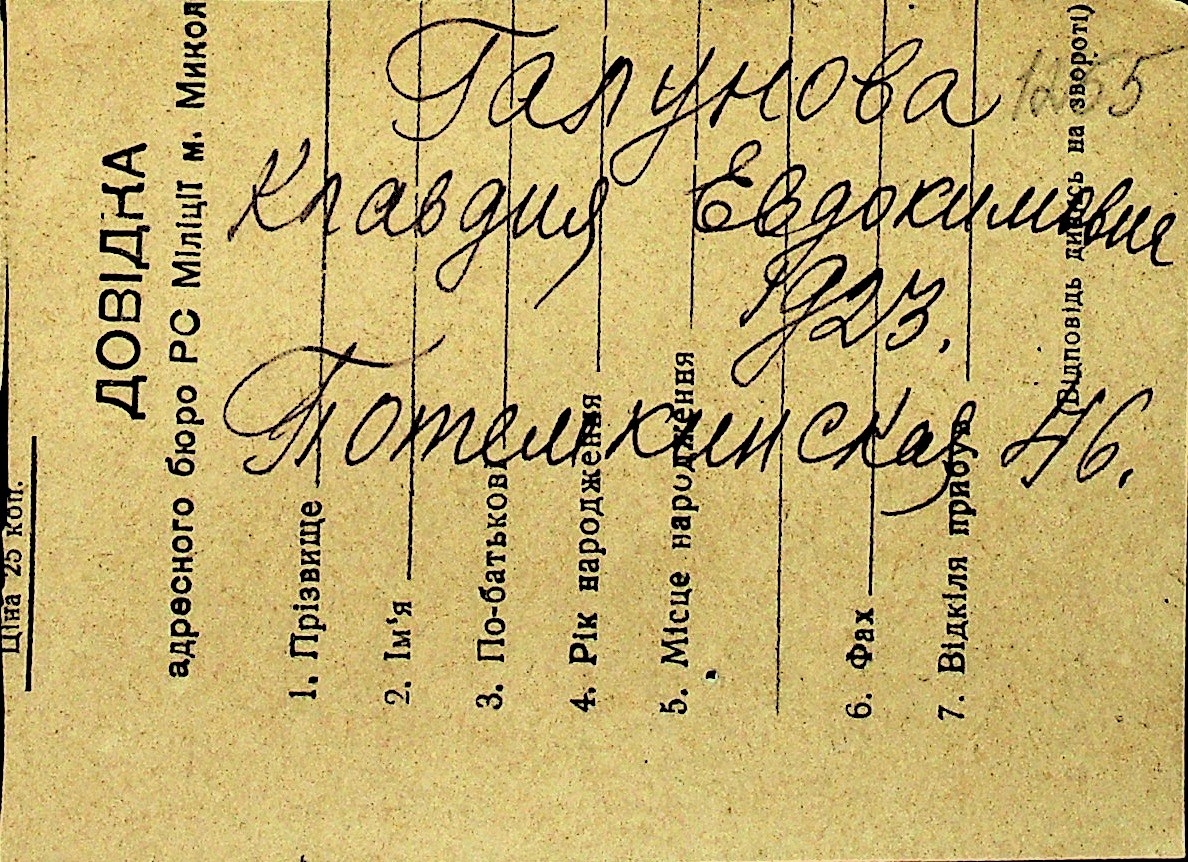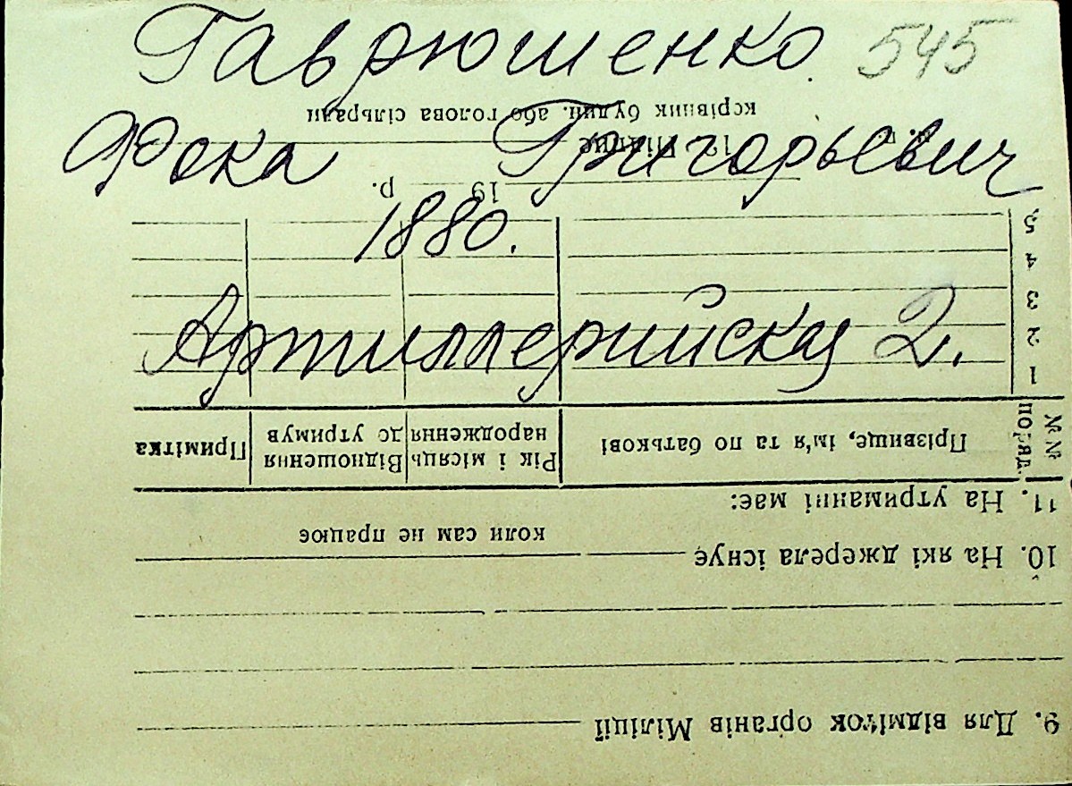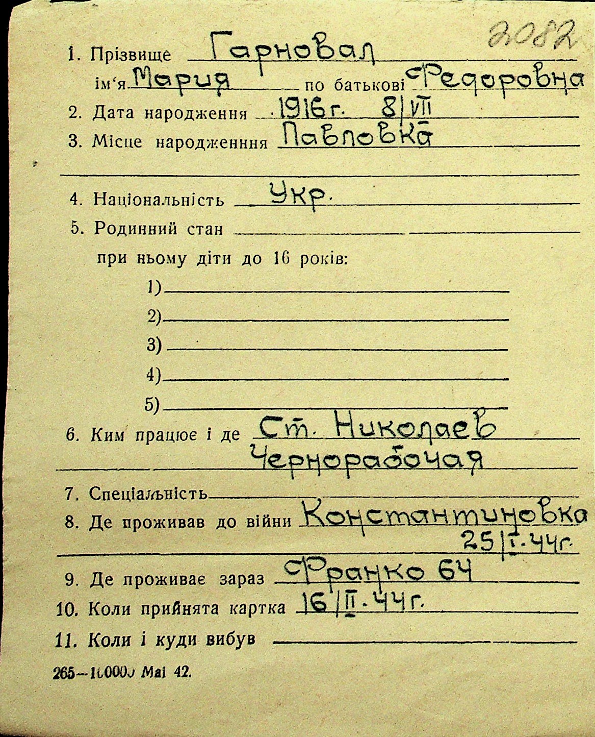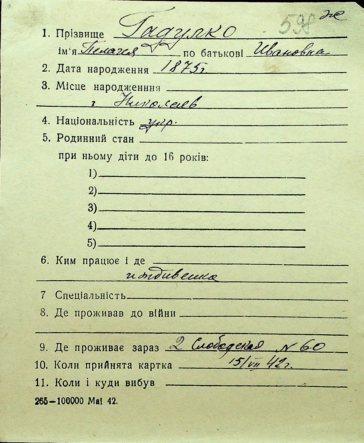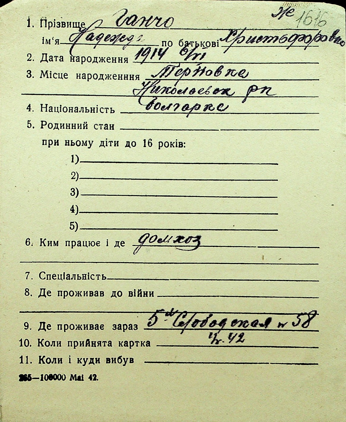 • • Перелік карток до фонду № Н-1016
