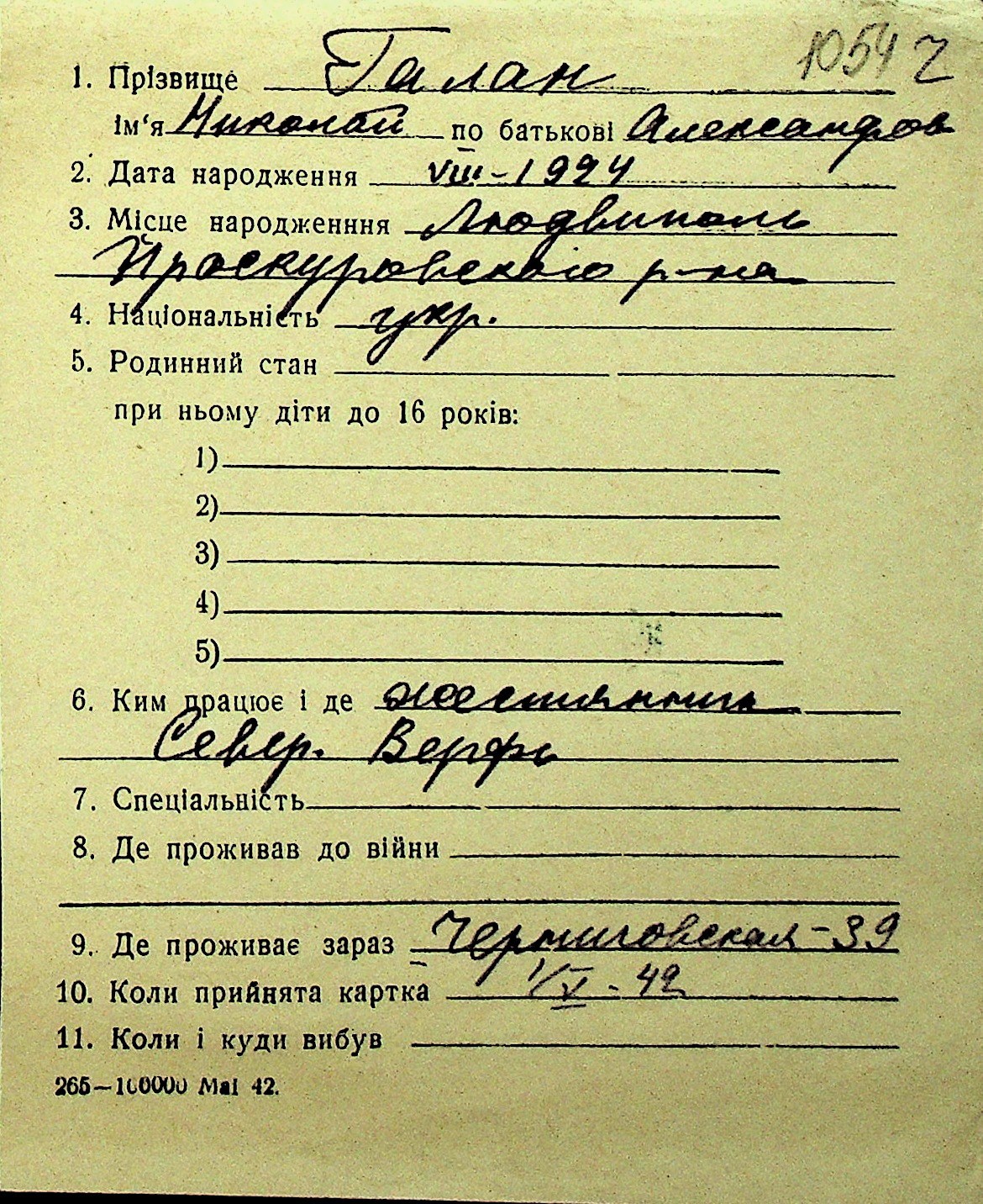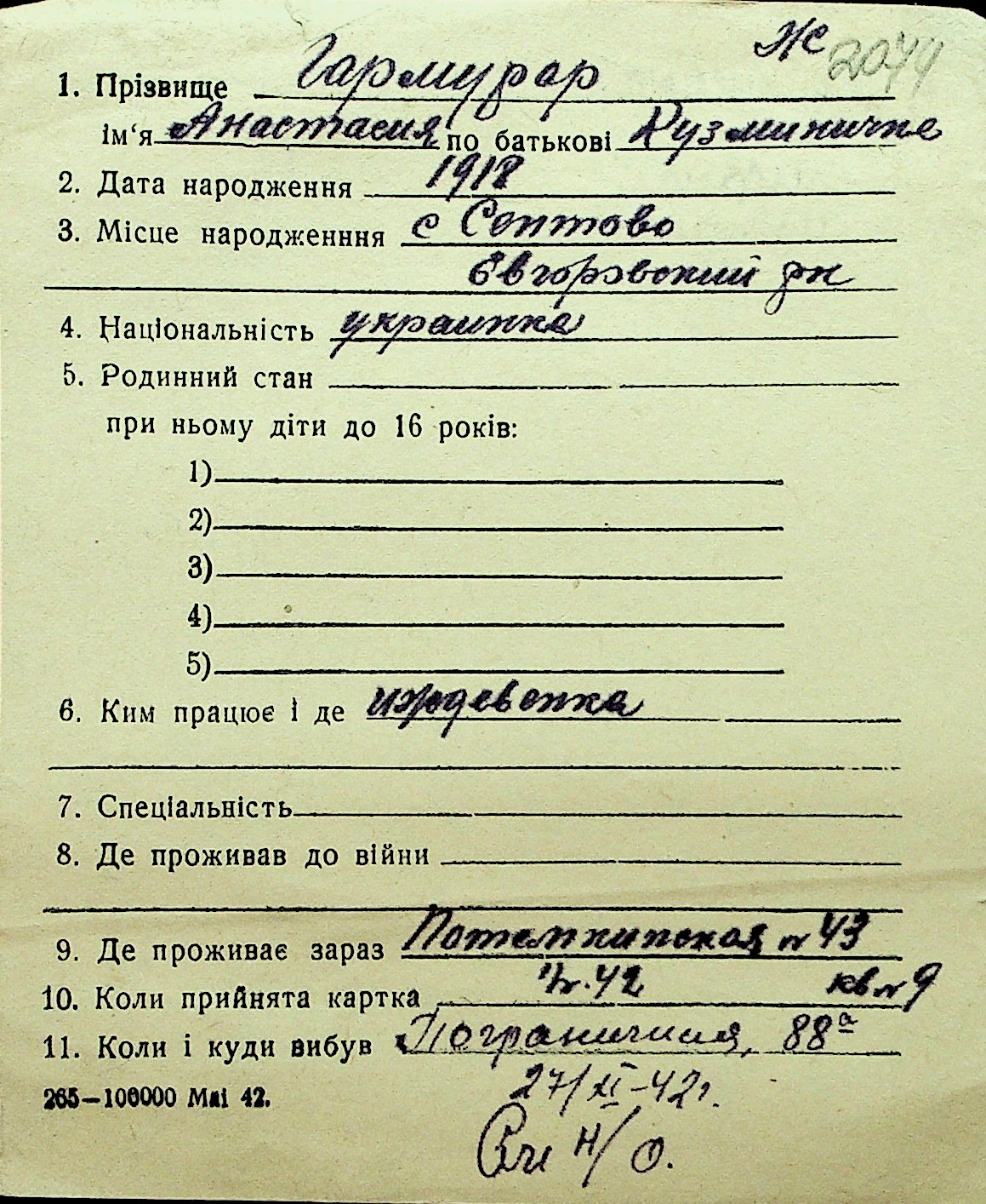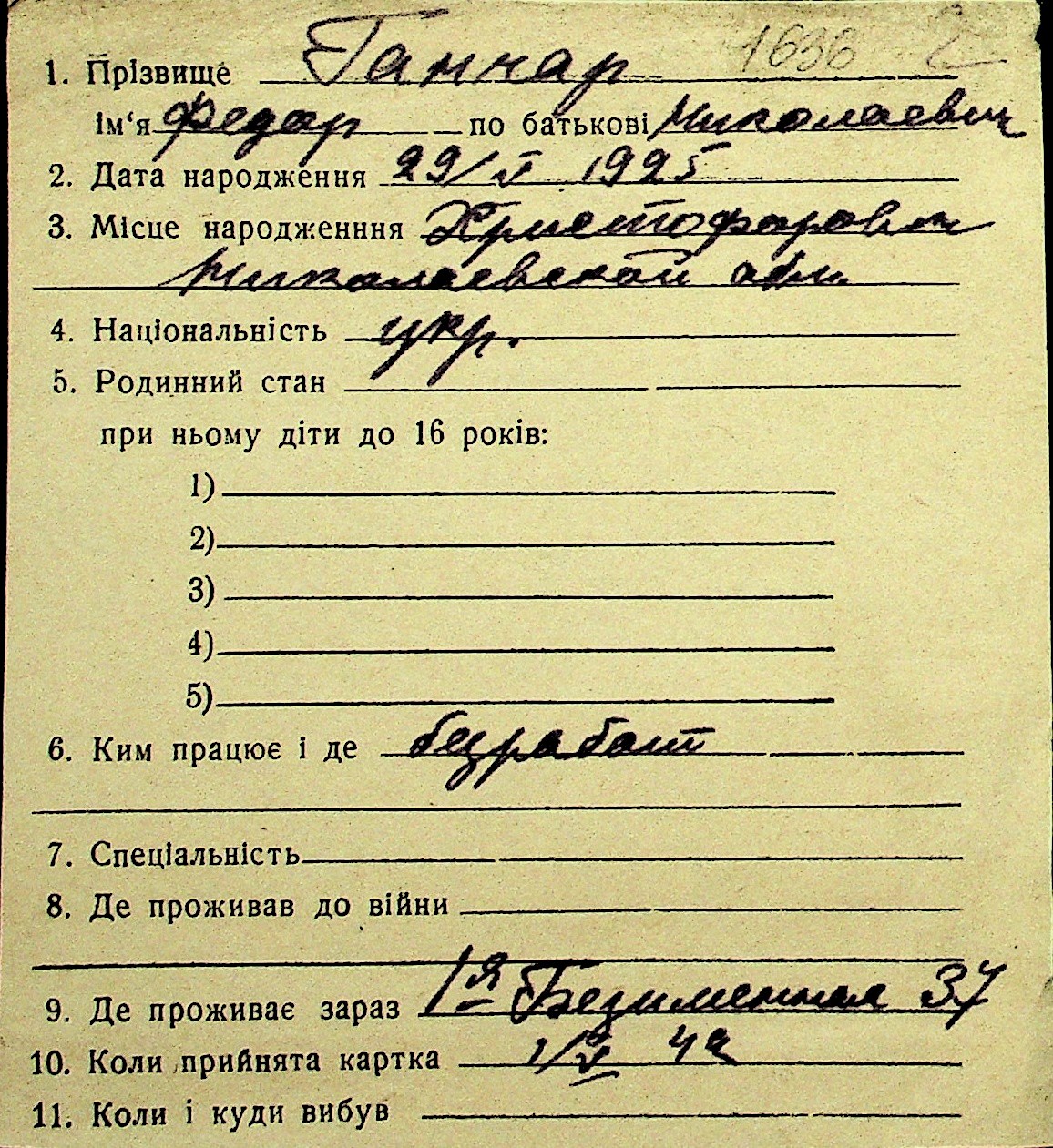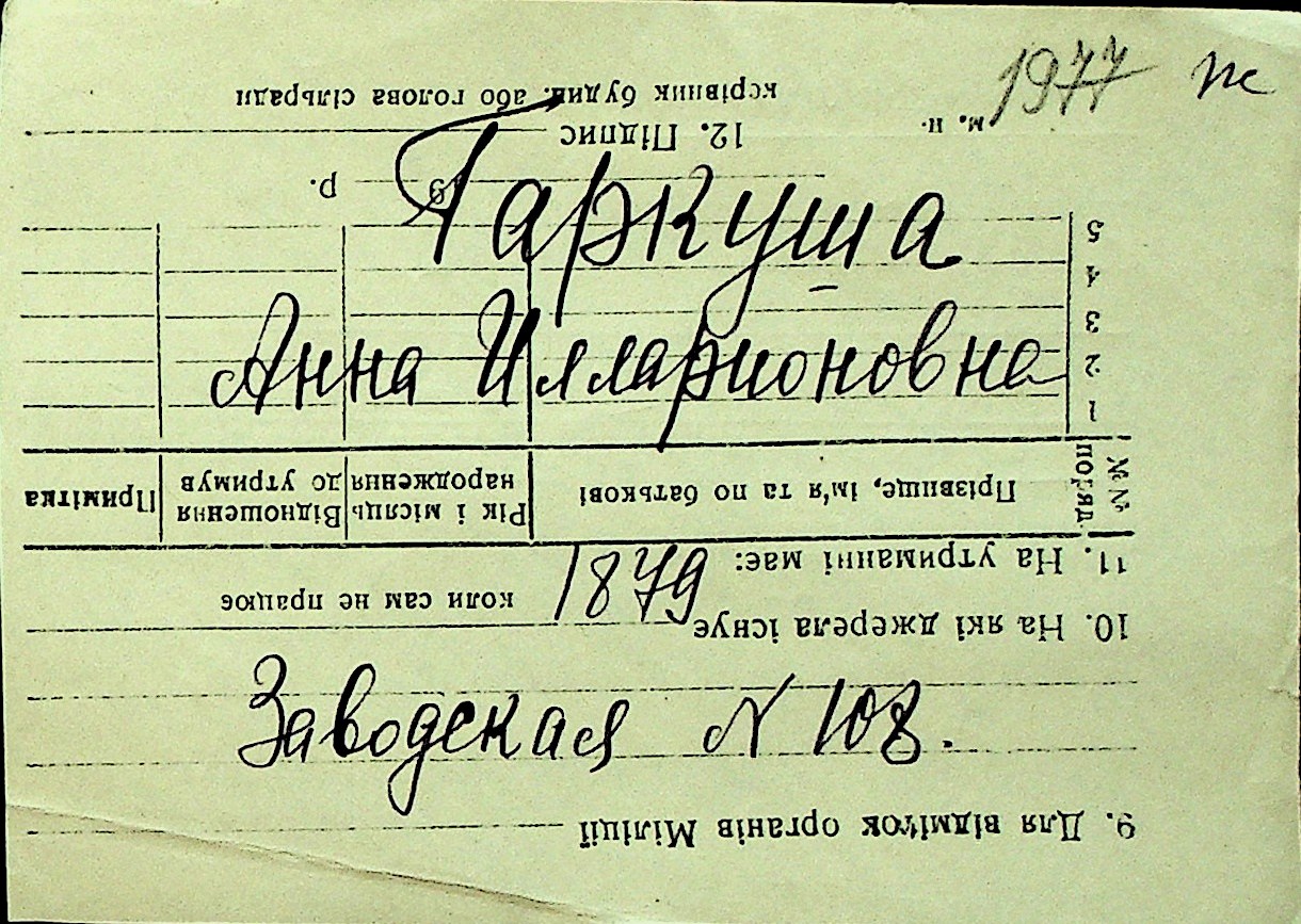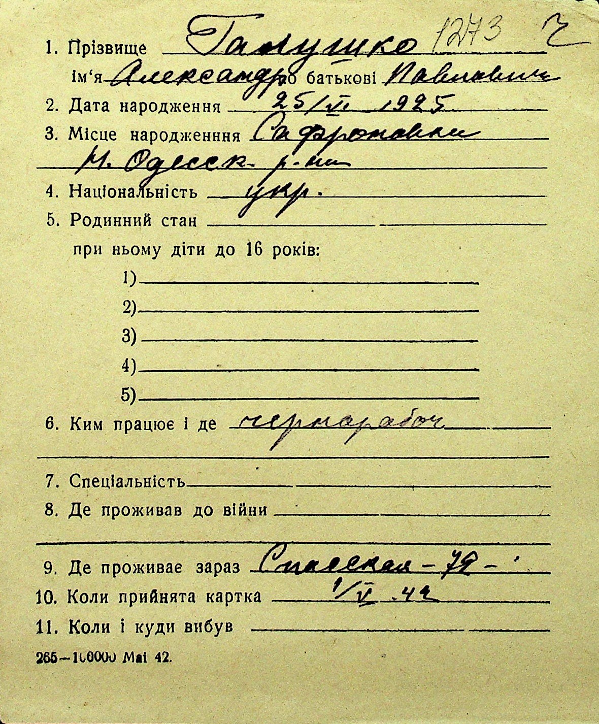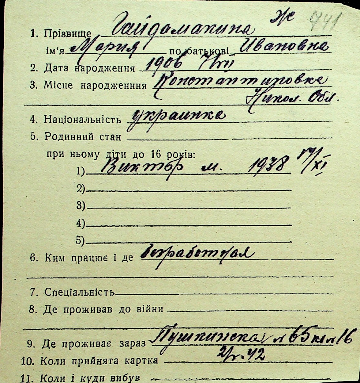 • • Перелік карток до фонду № Н-1016