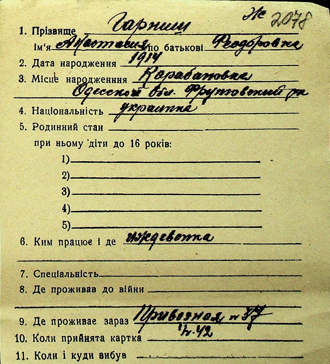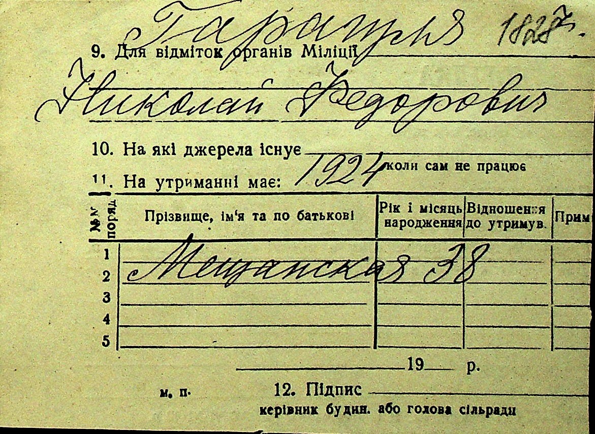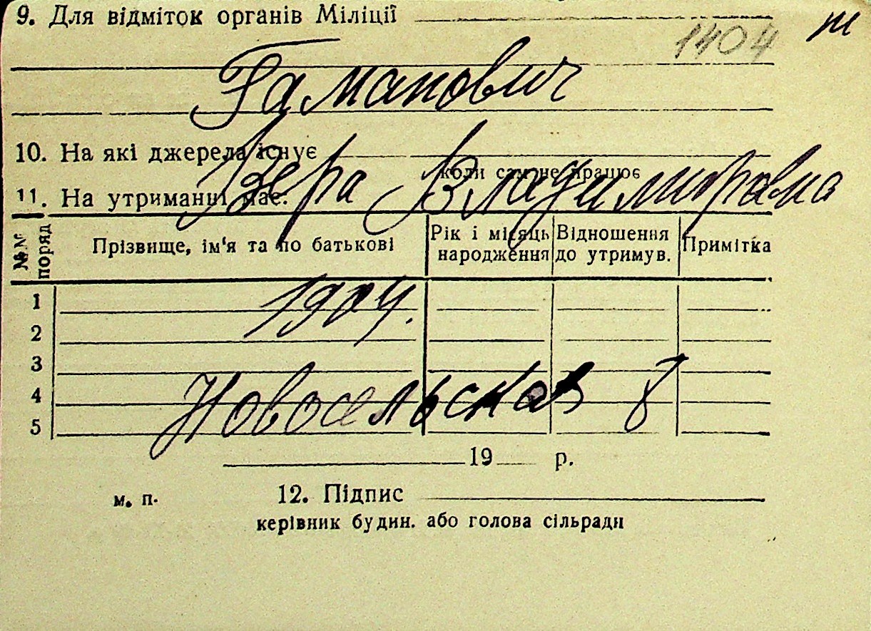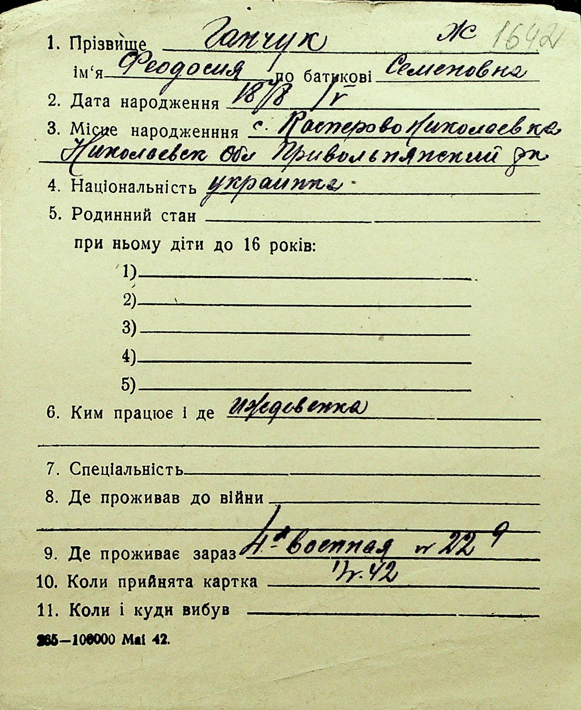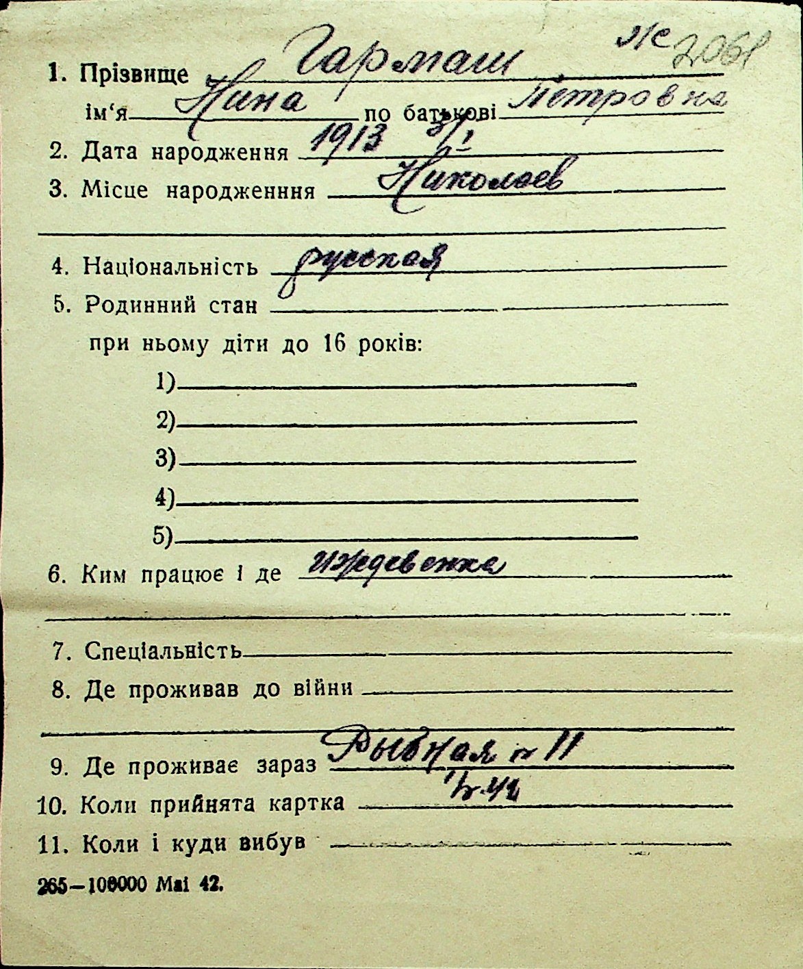 • • Перелік карток до фонду № Н-1016
