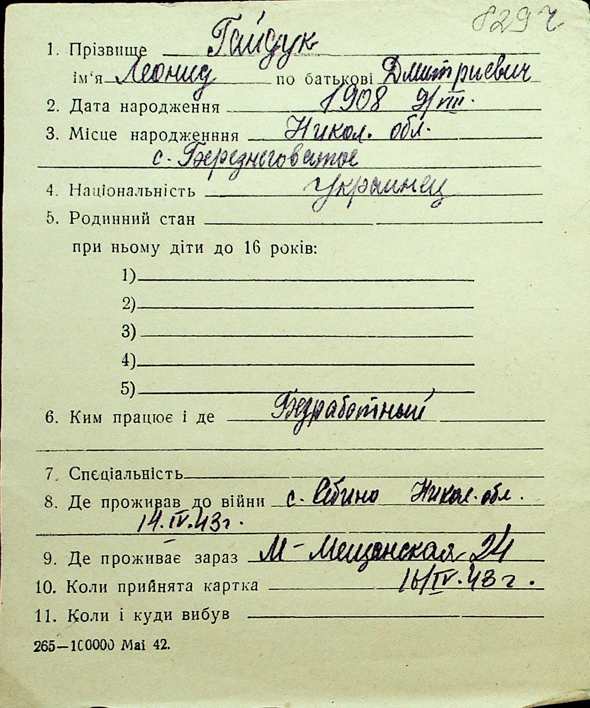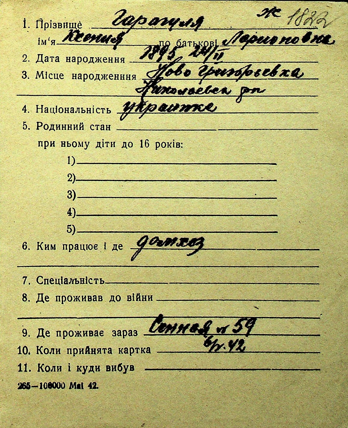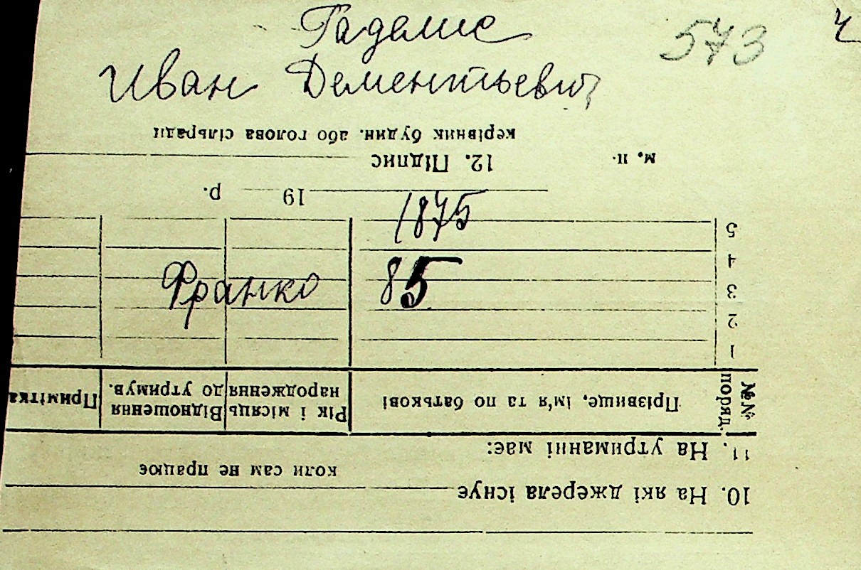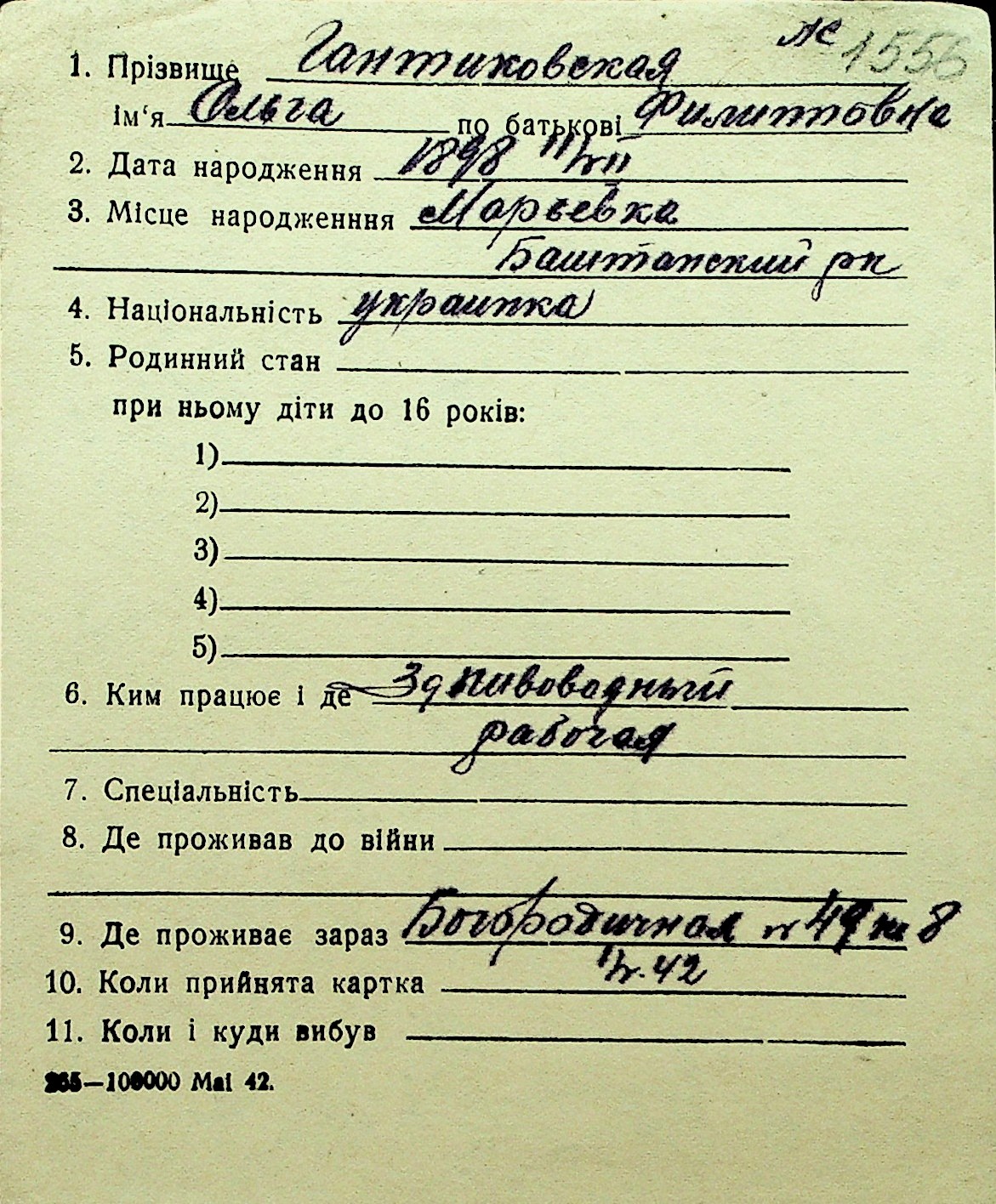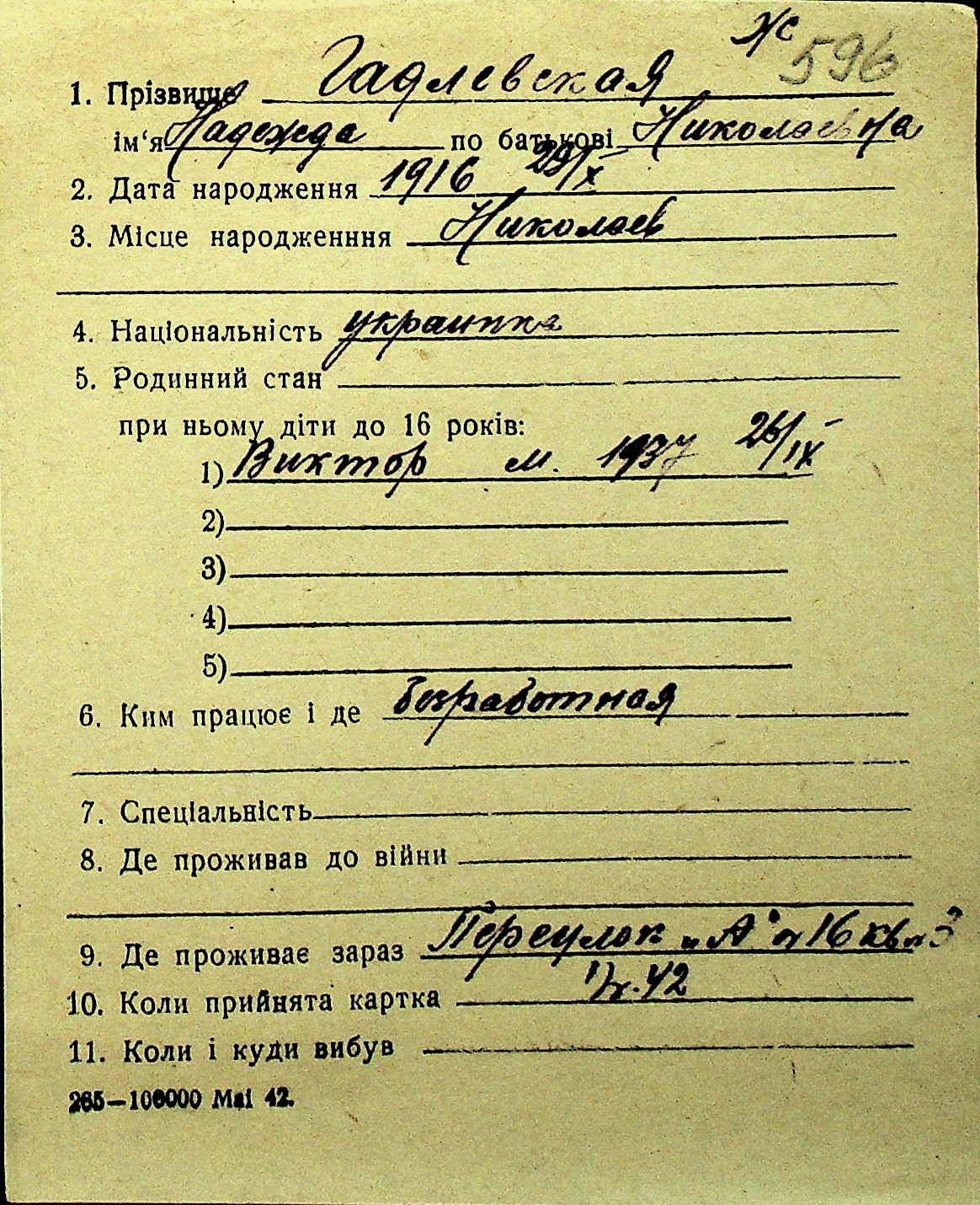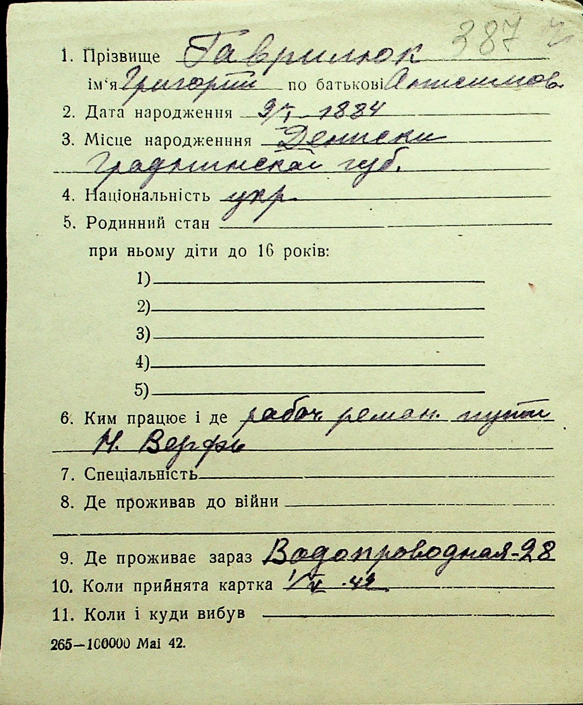 • • Перелік карток до фонду № Н-1016