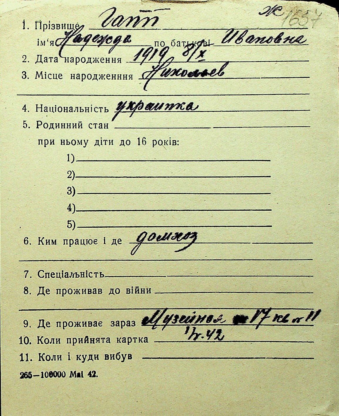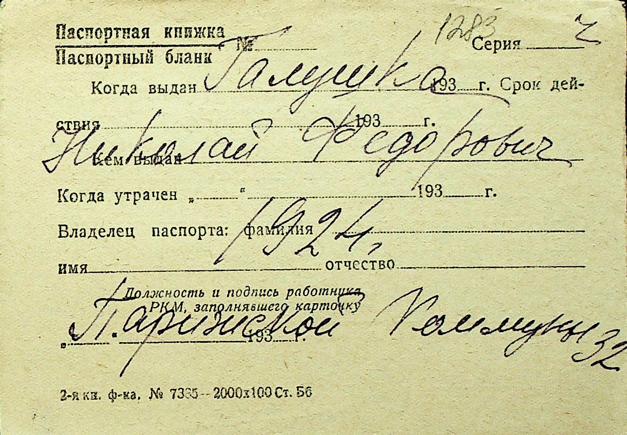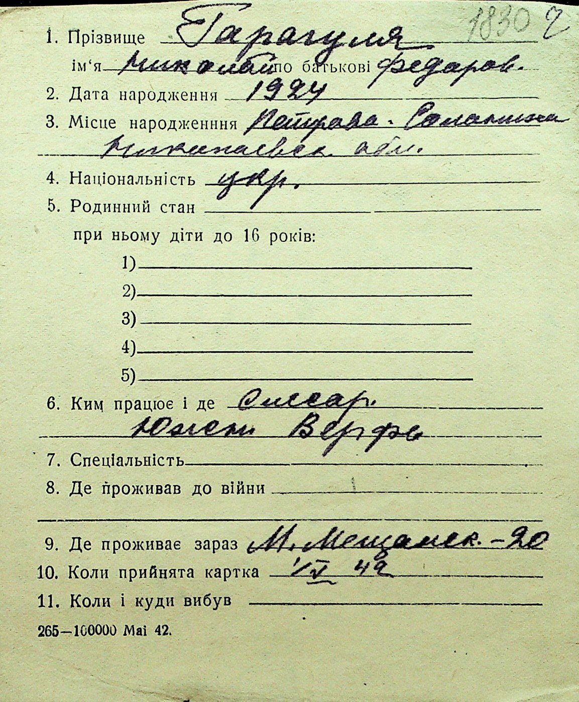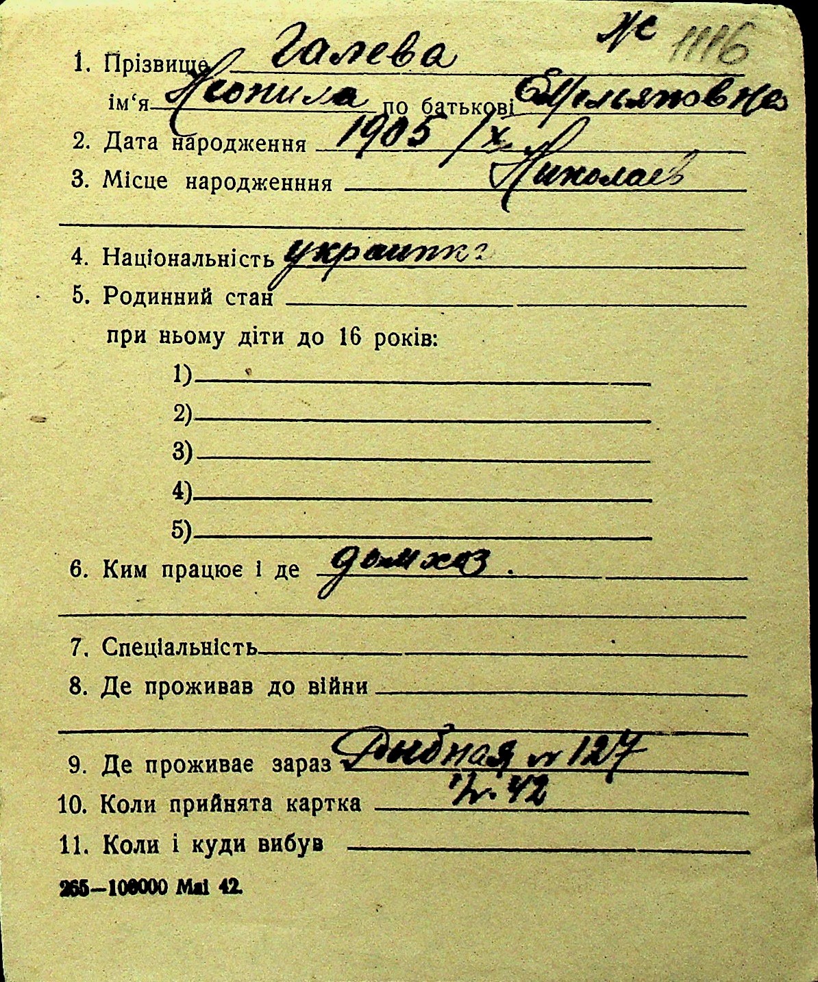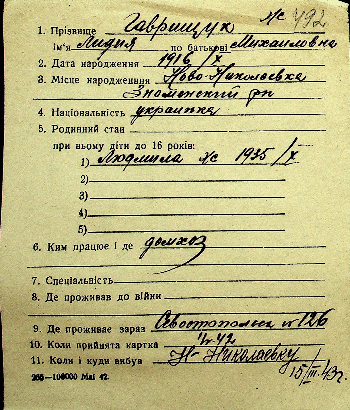 • • Перелік карток до фонду № Н-1016