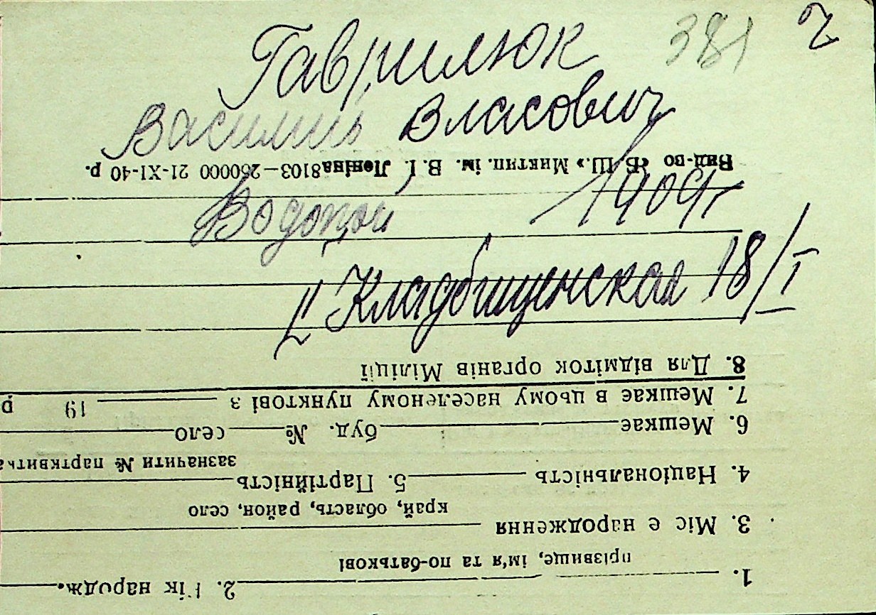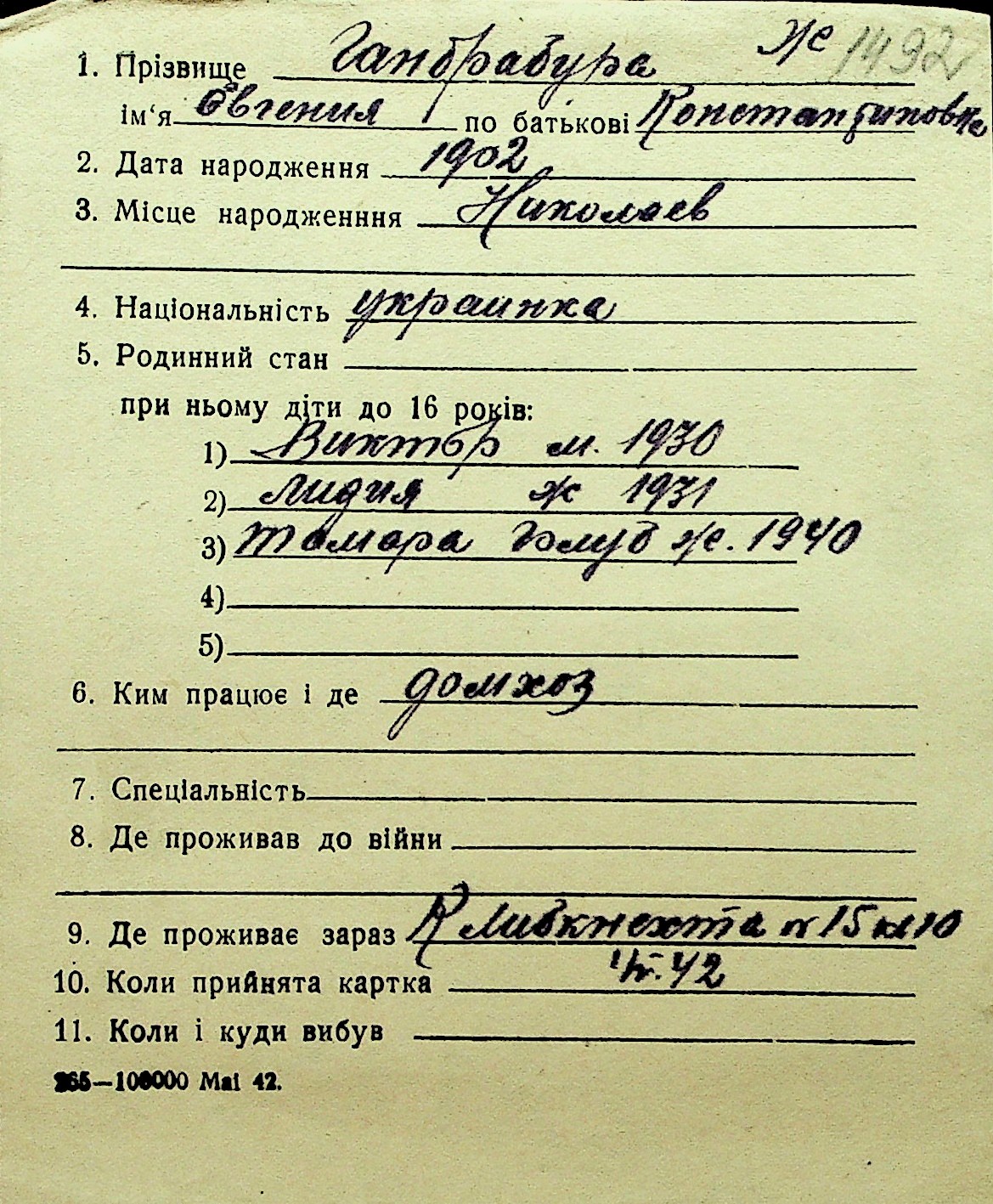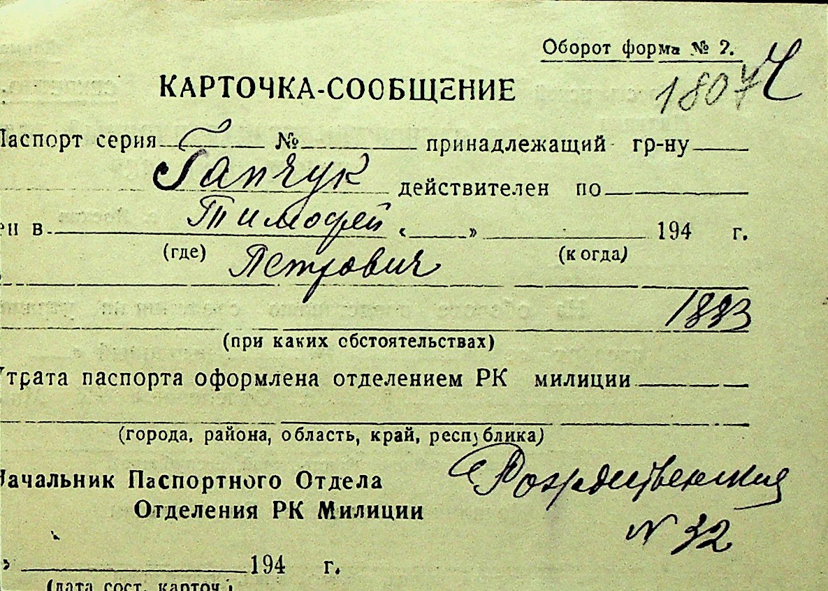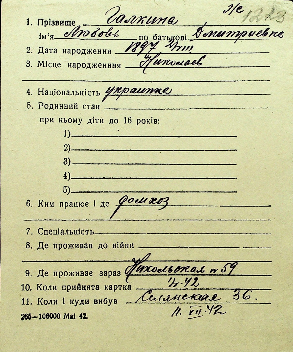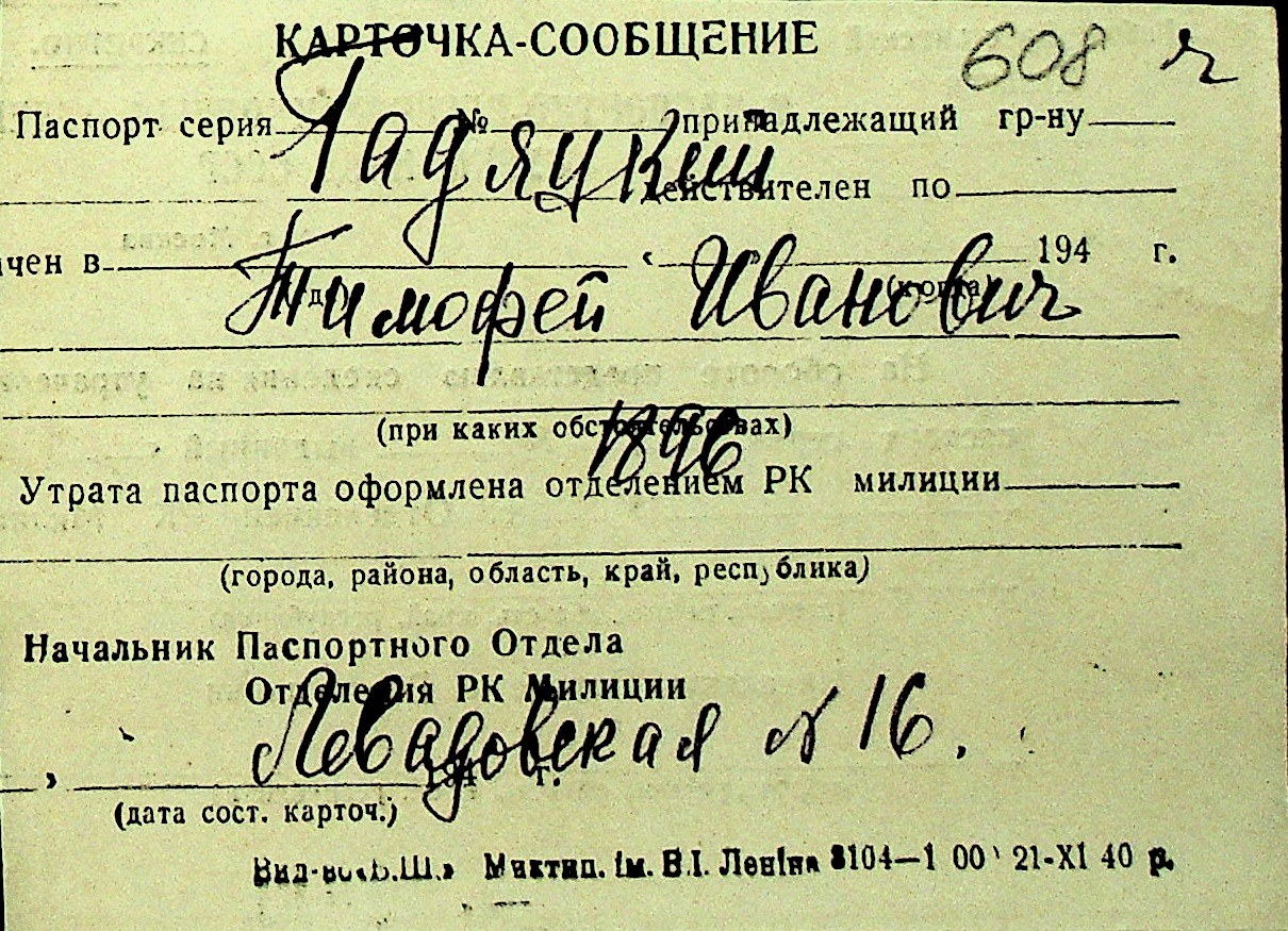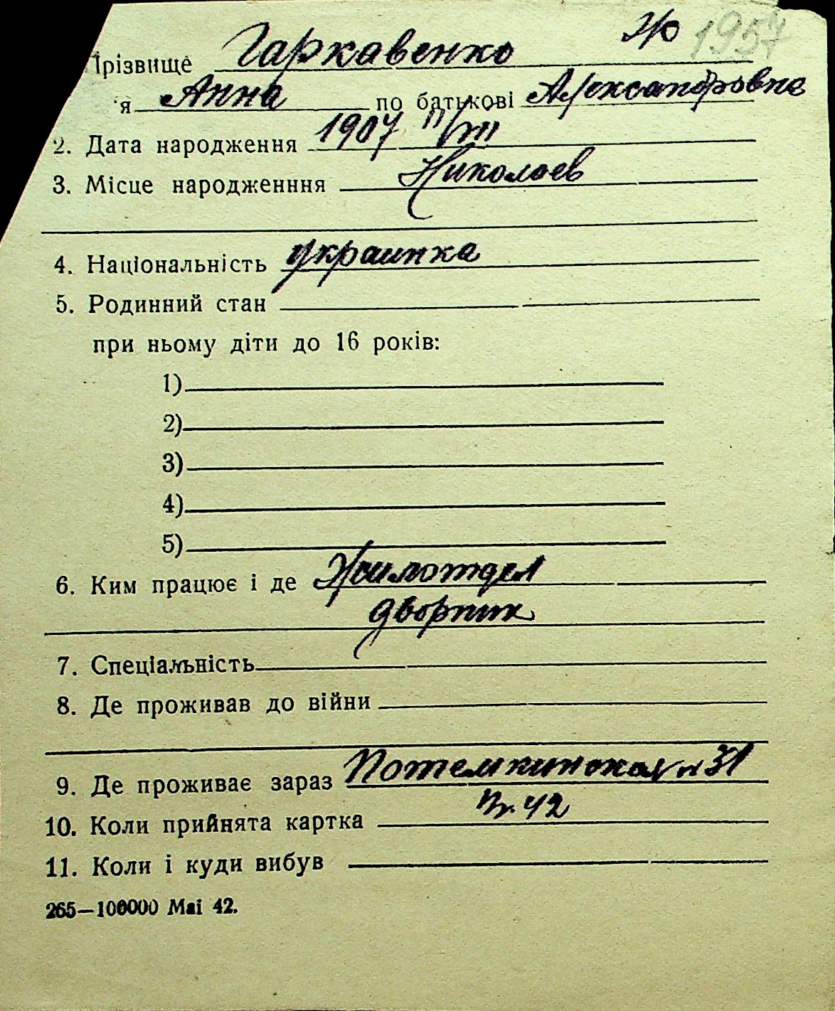 • • Перелік карток до фонду № Н-1016