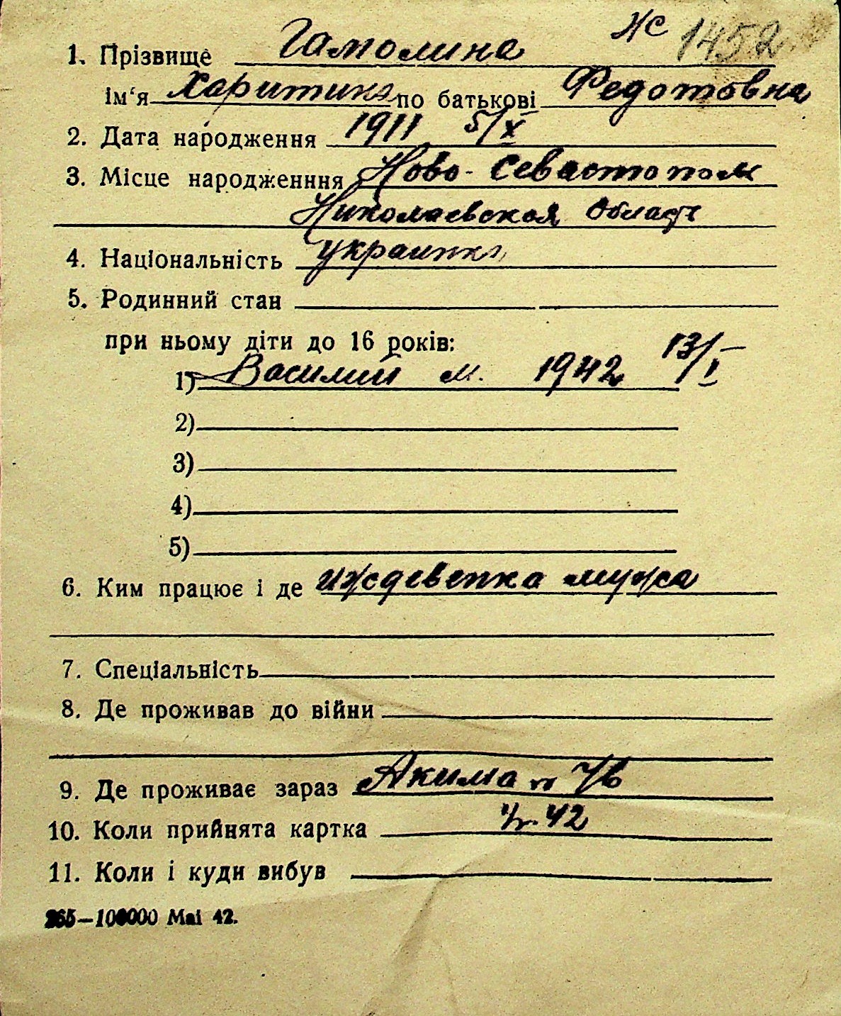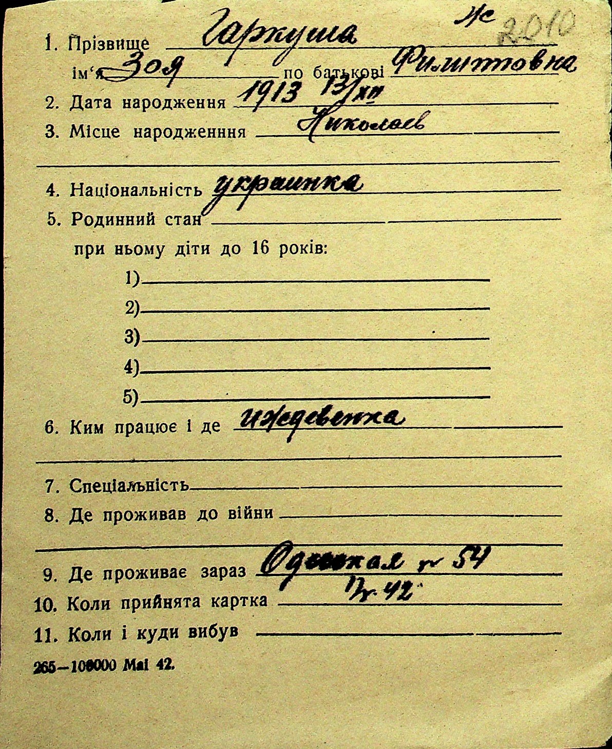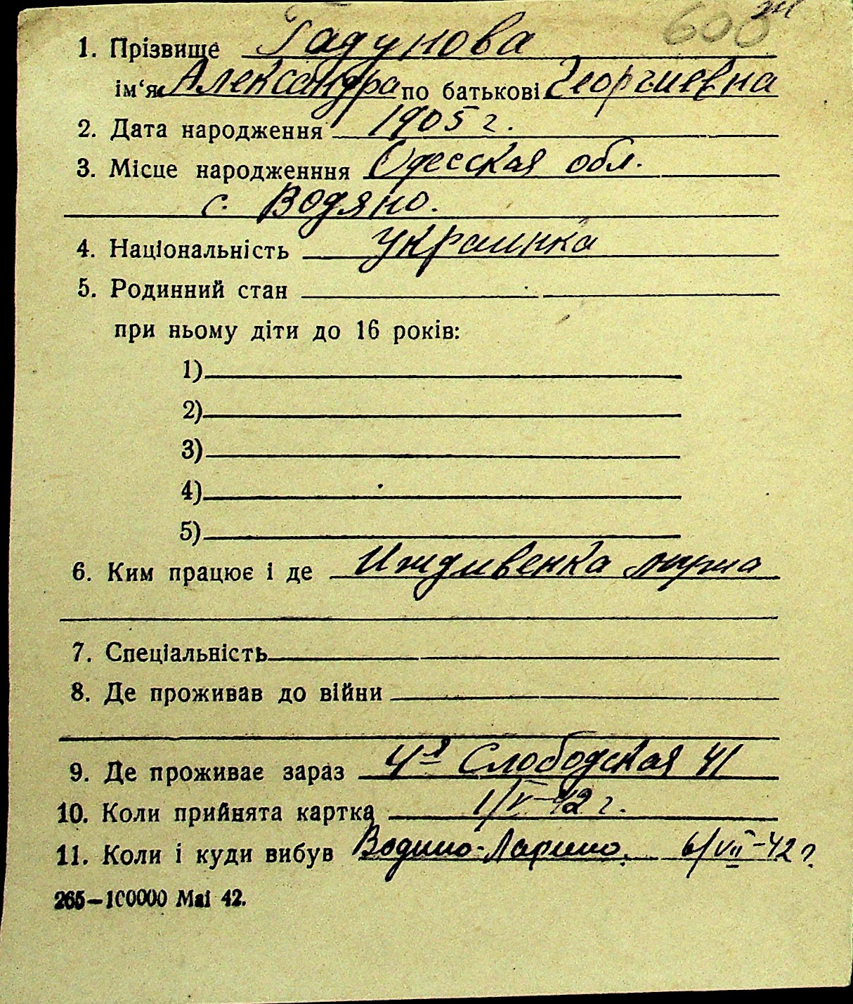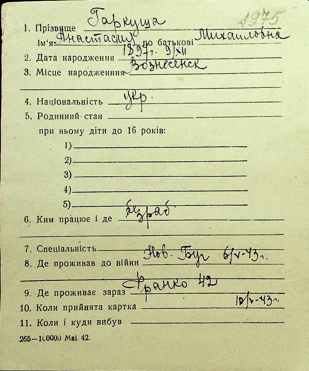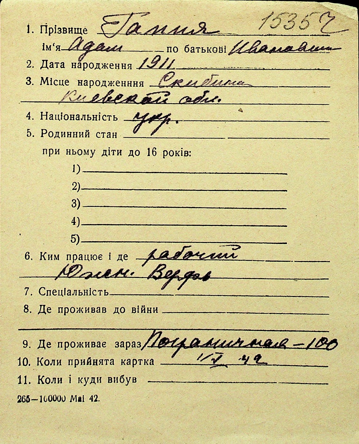 • • Перелік карток до фонду № Н-1016