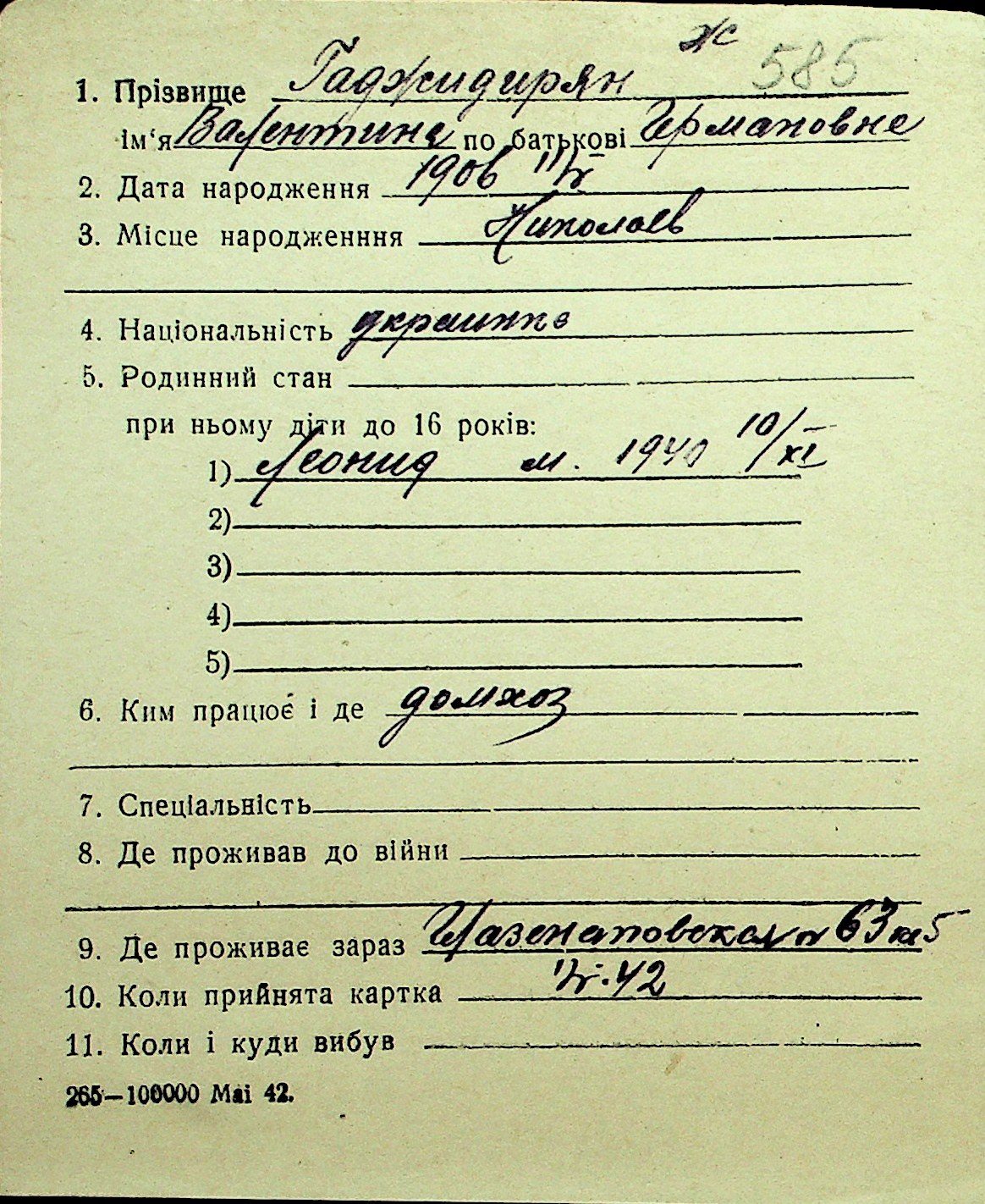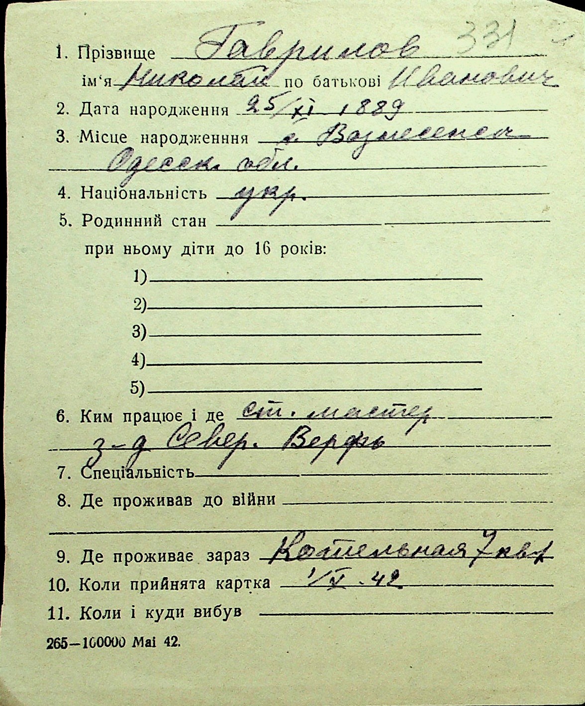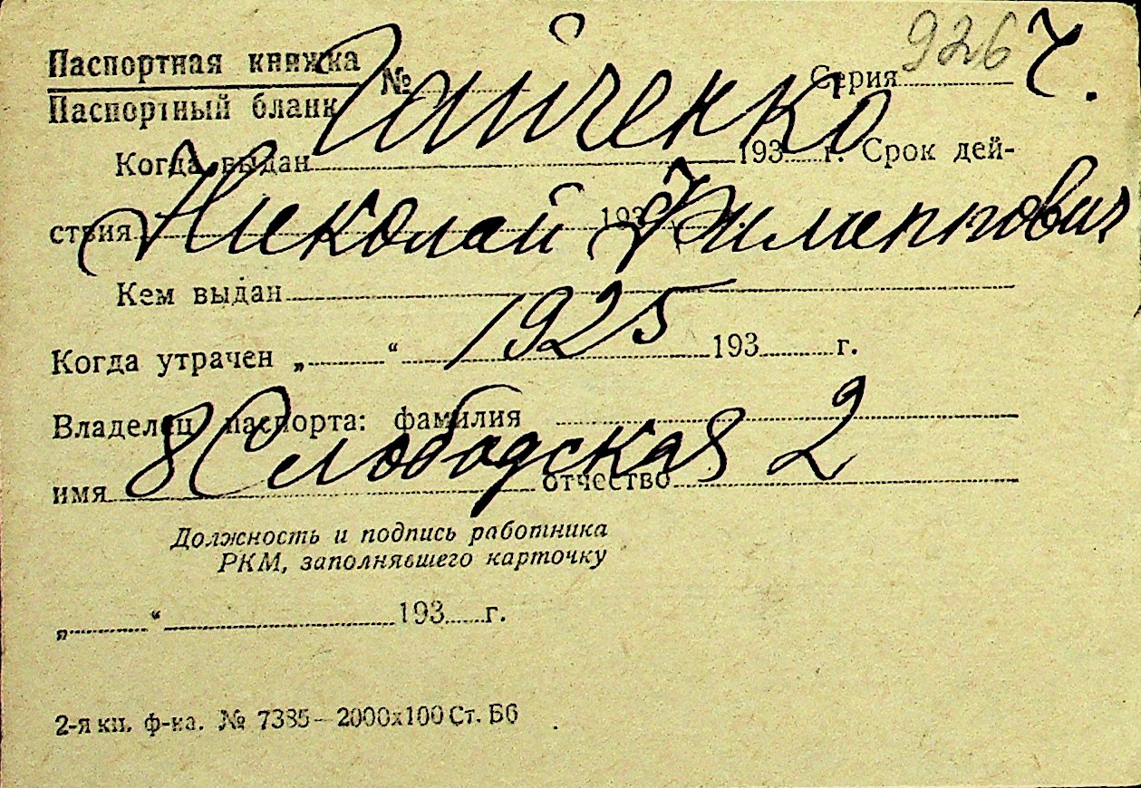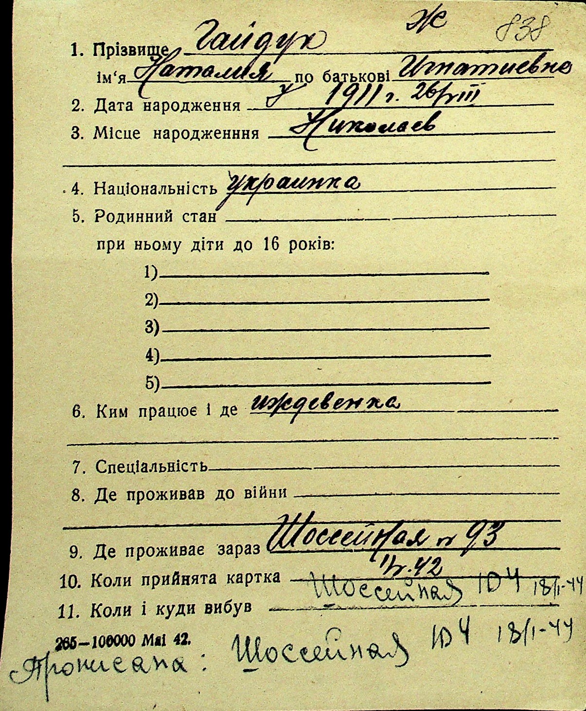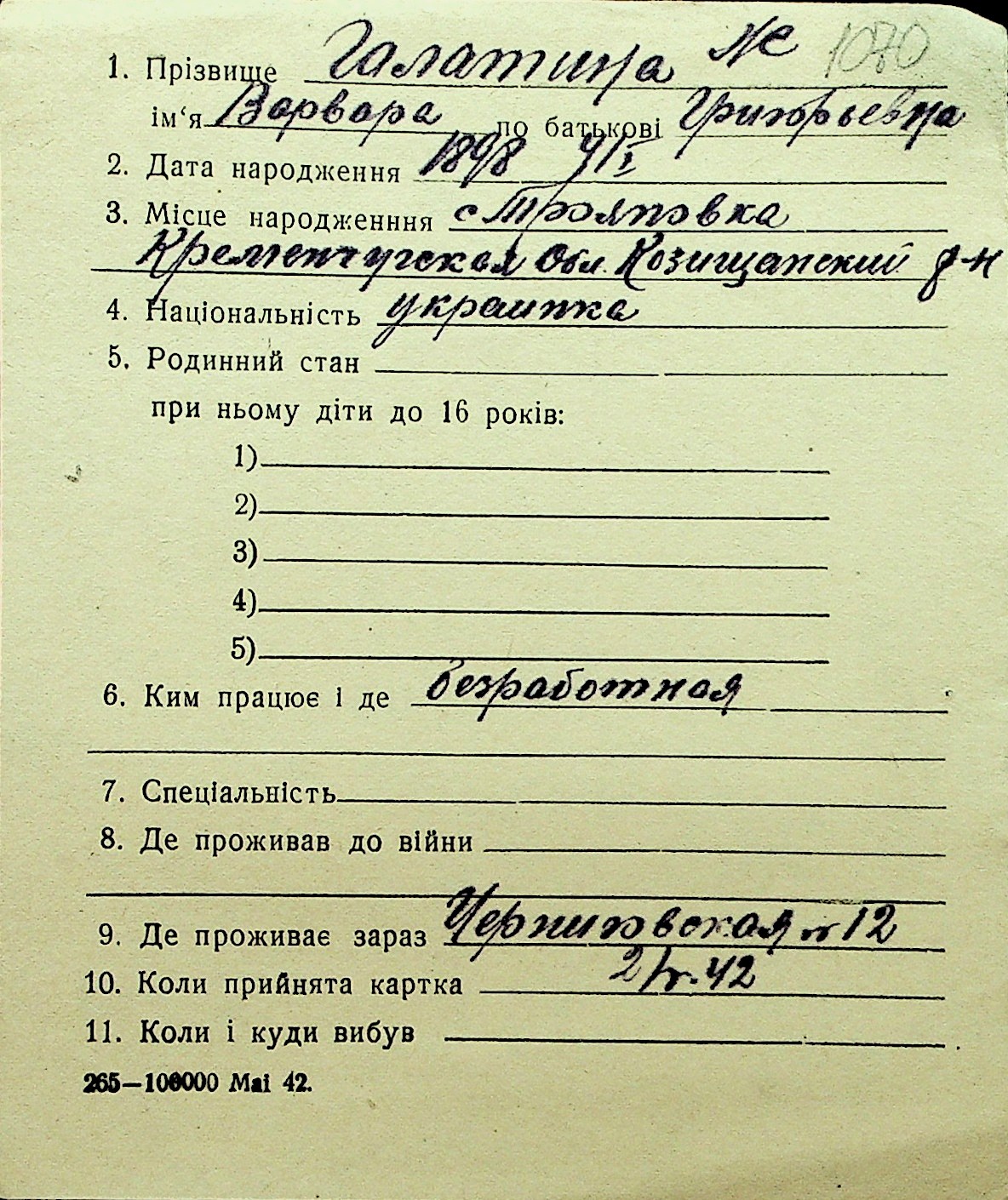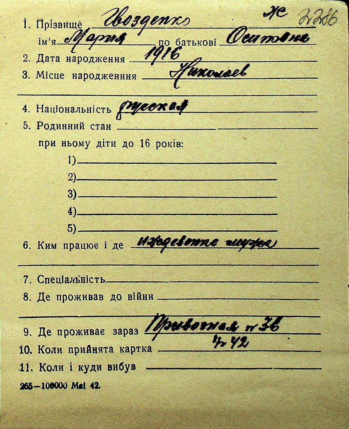 • • Перелік карток до фонду № Н-1016