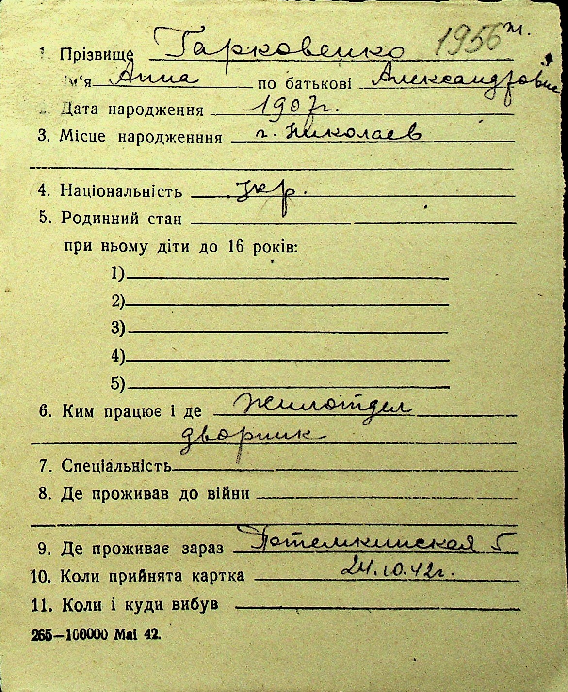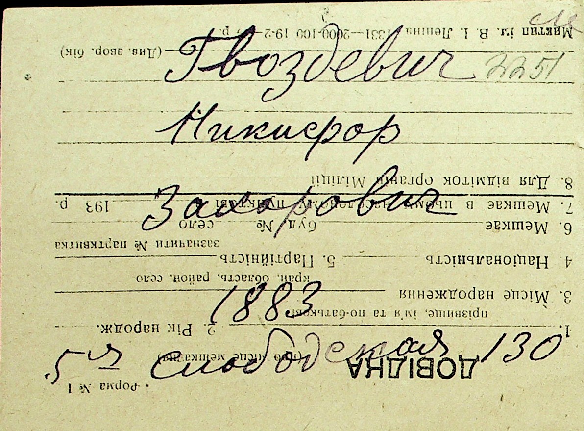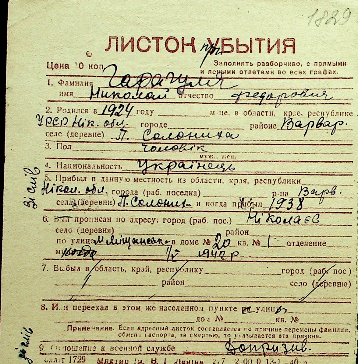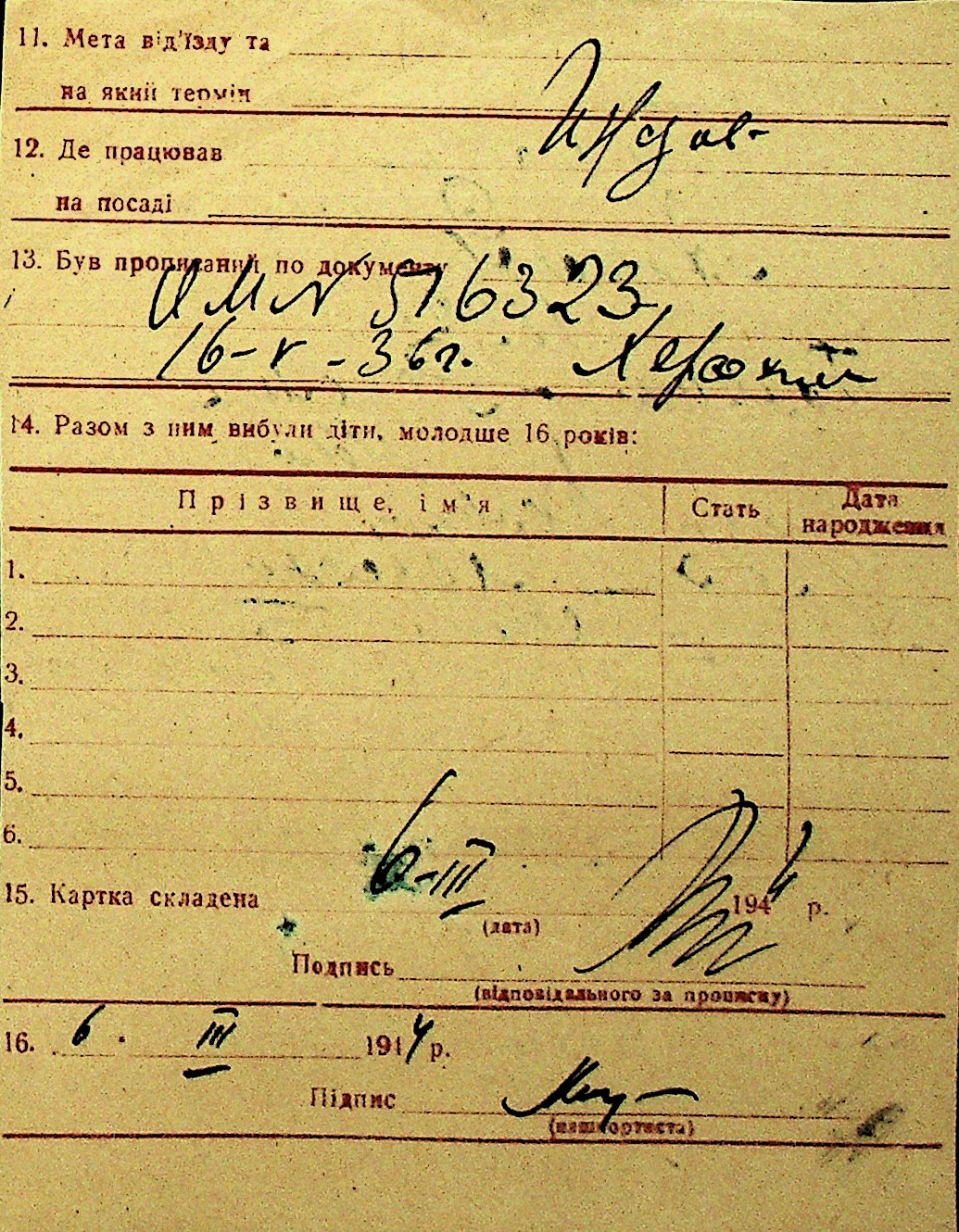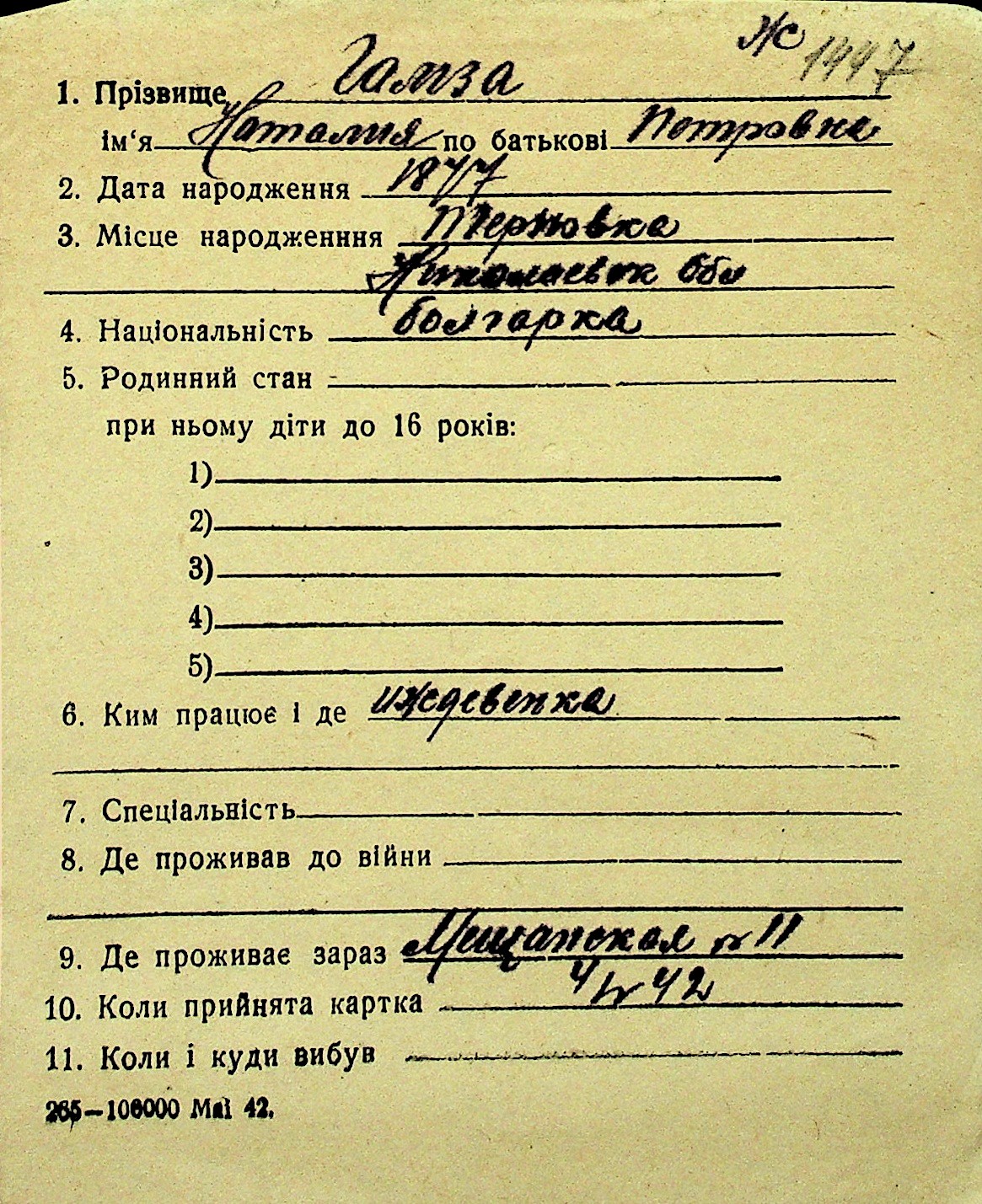 • • Перелік карток до фонду № Н-1016