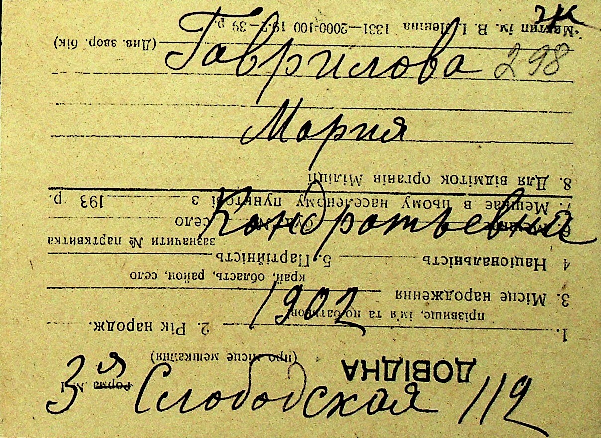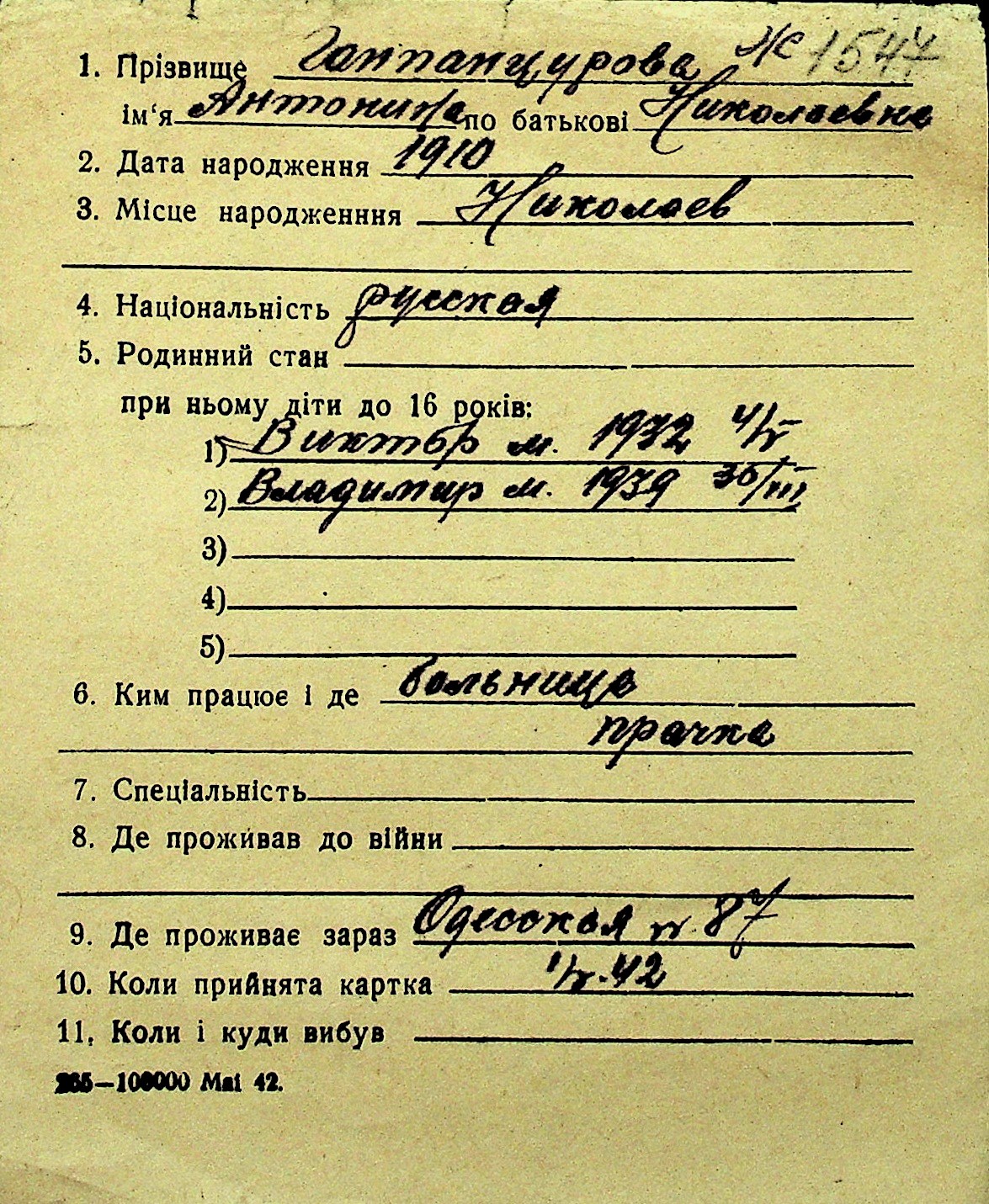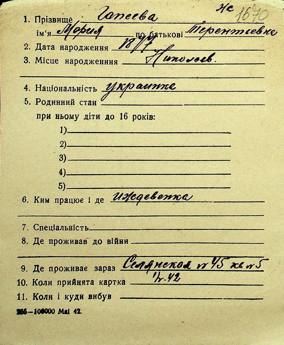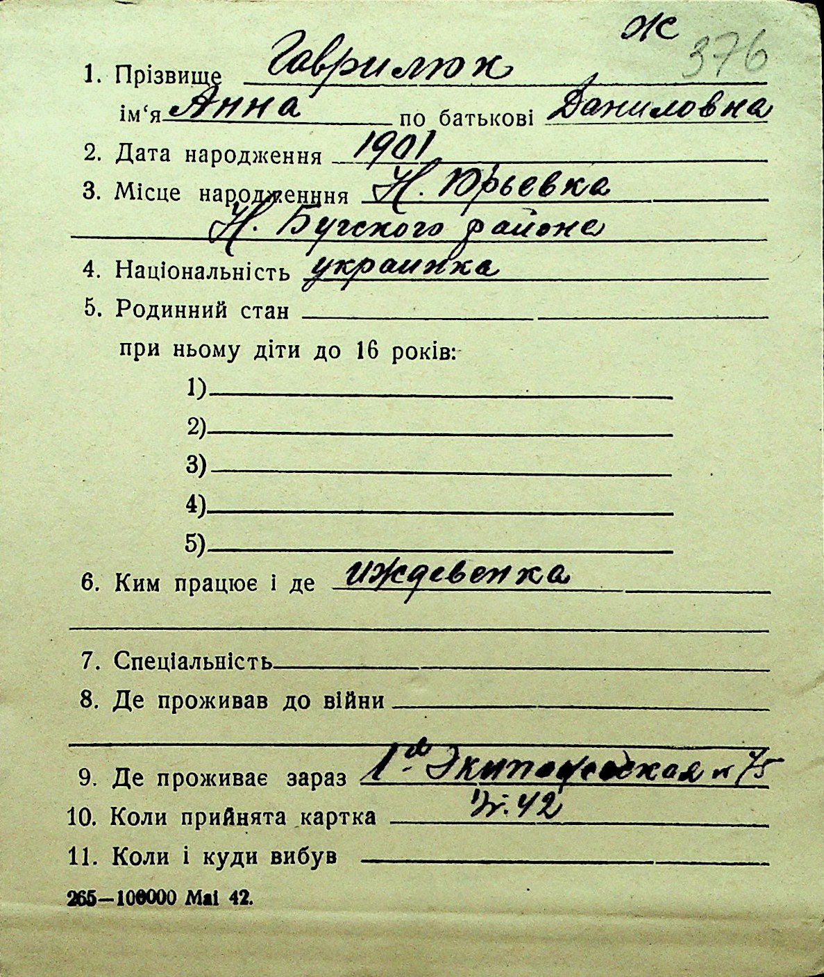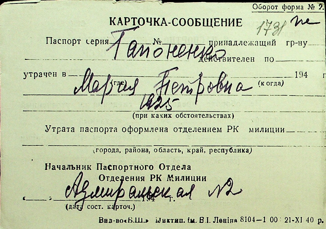 • • Перелік карток до фонду № Н-1016