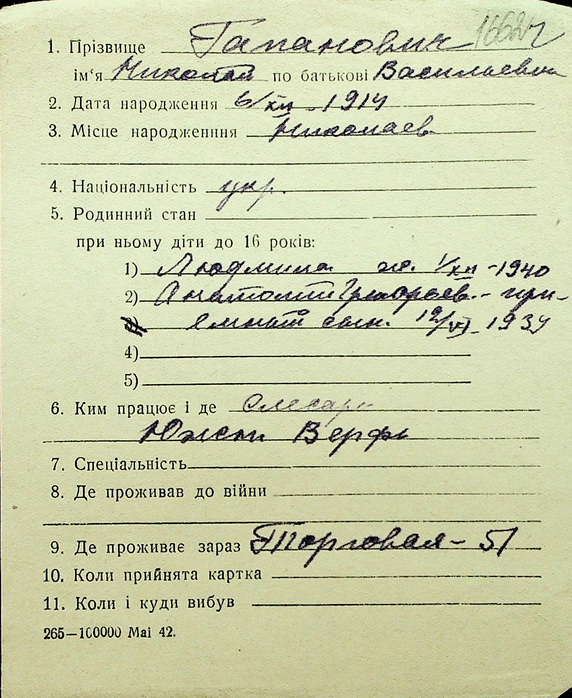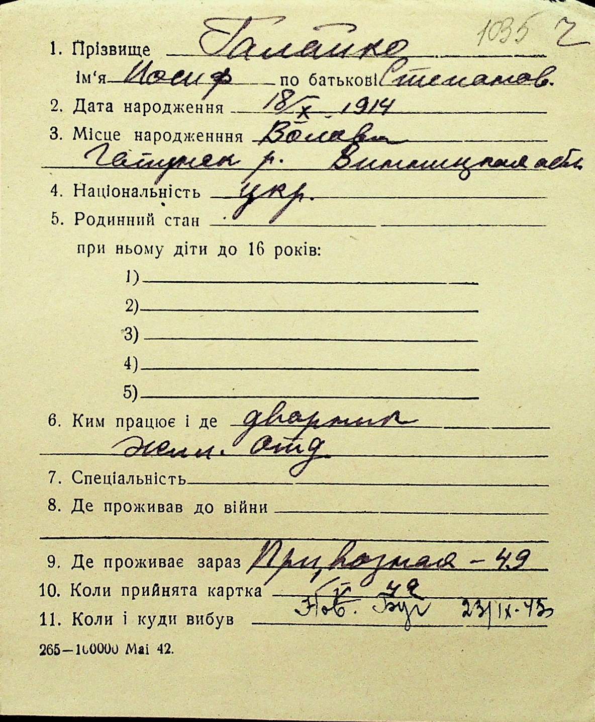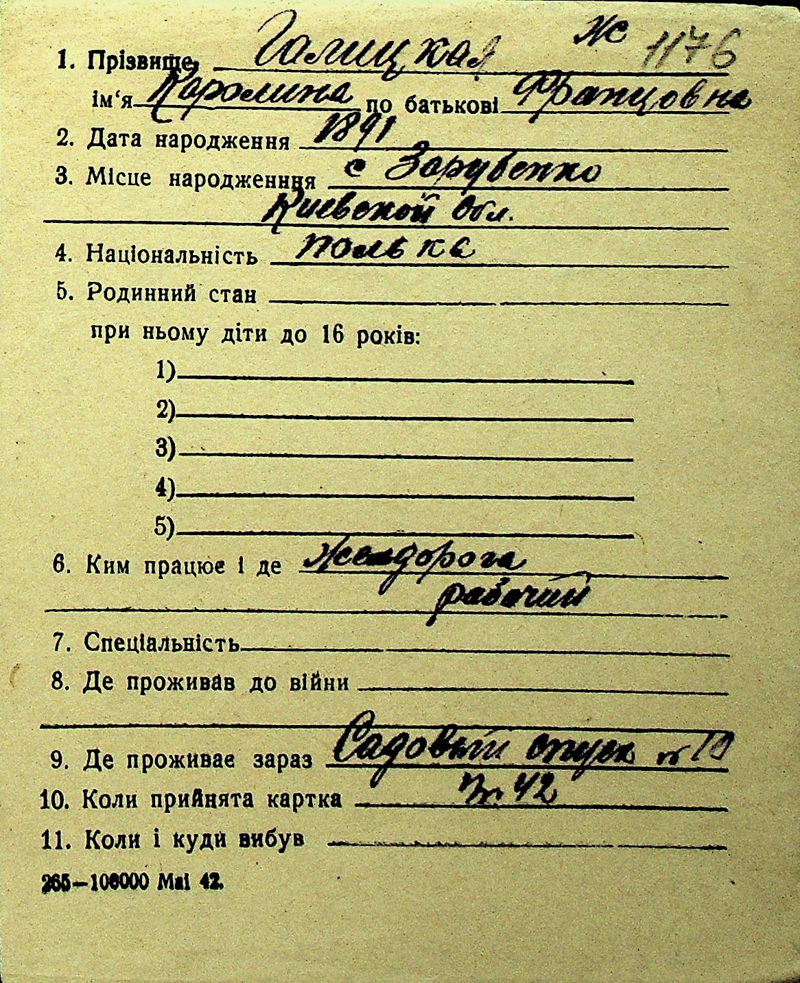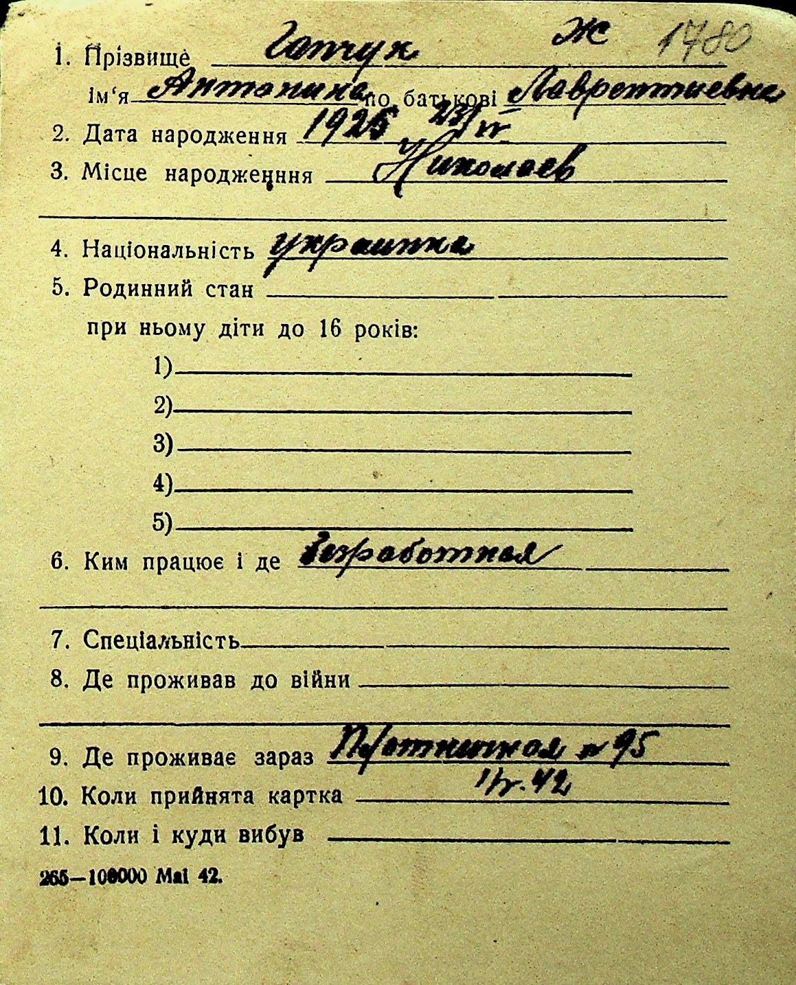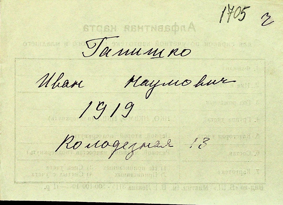 • • Перелік карток до фонду № Н-1016