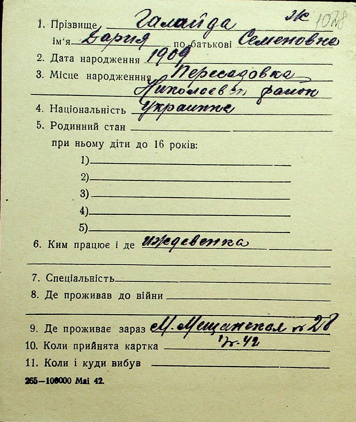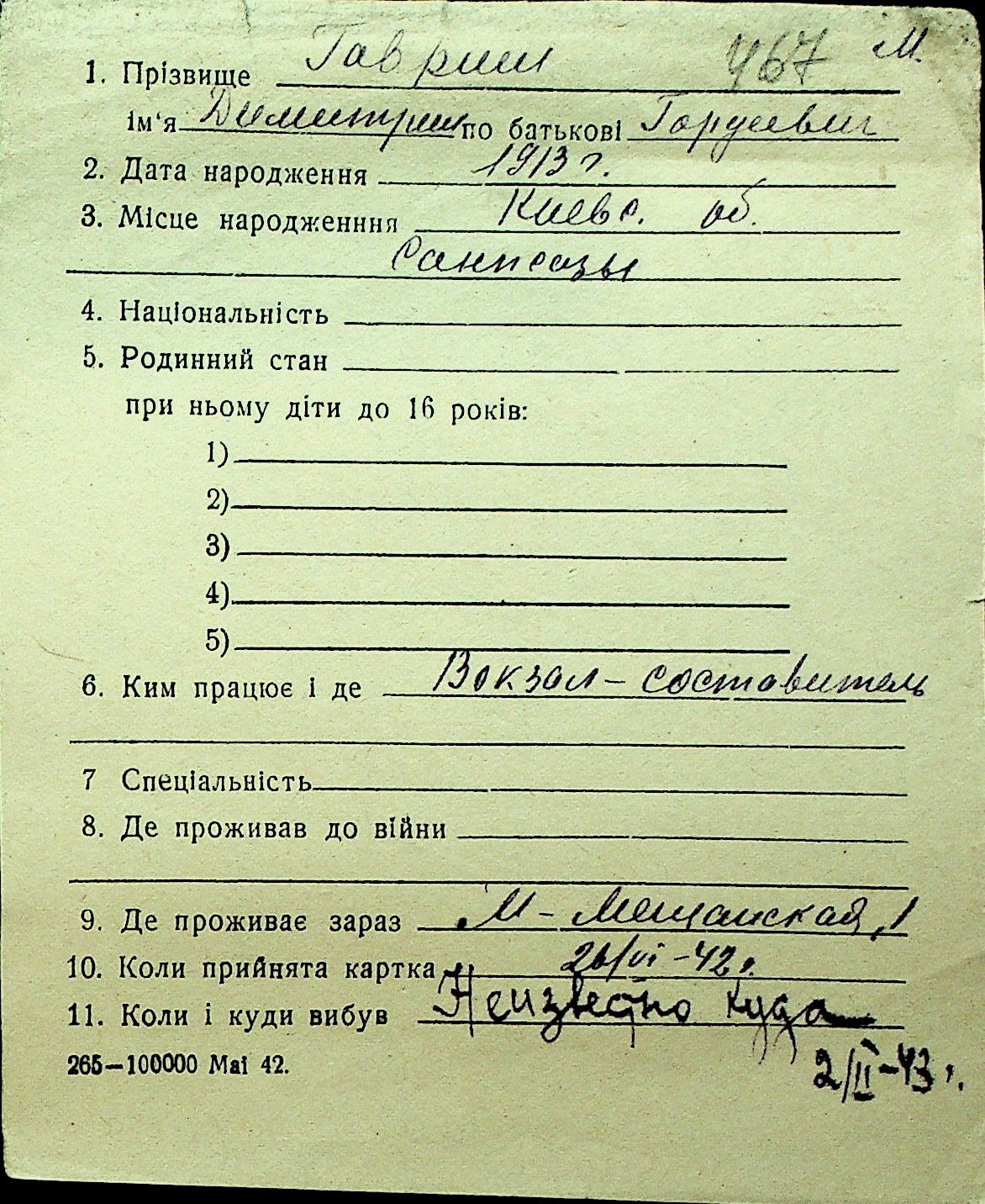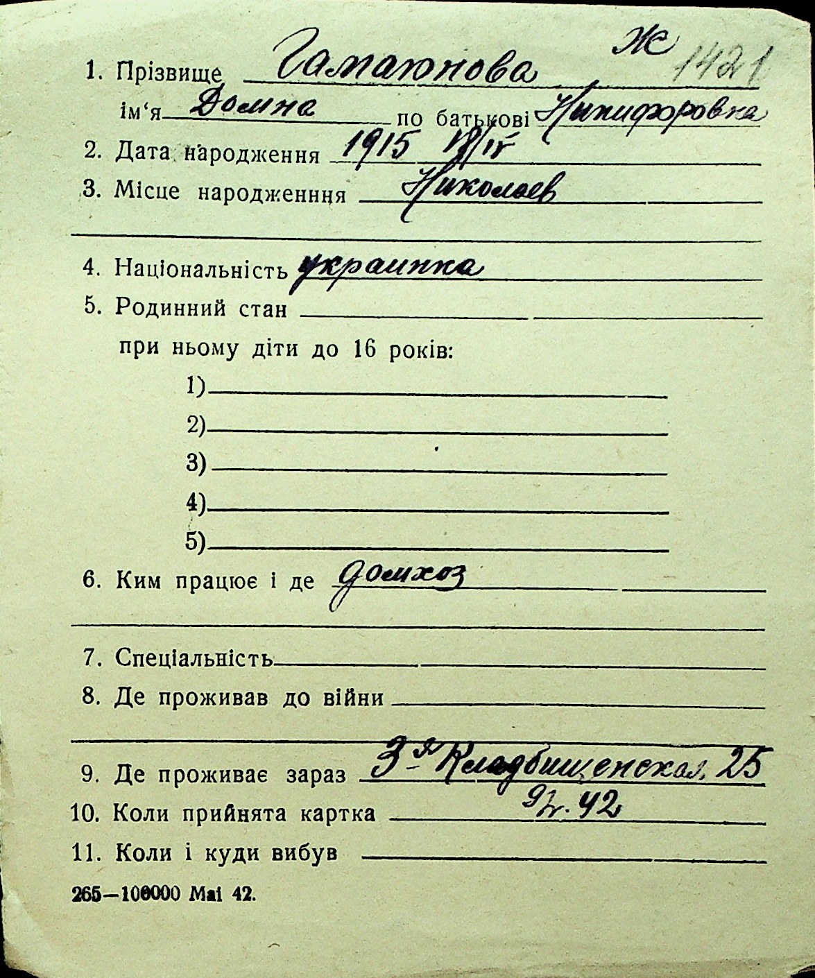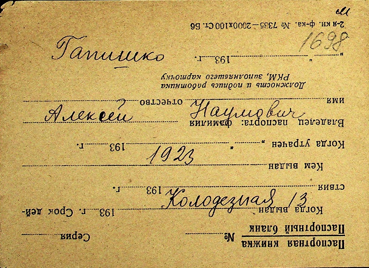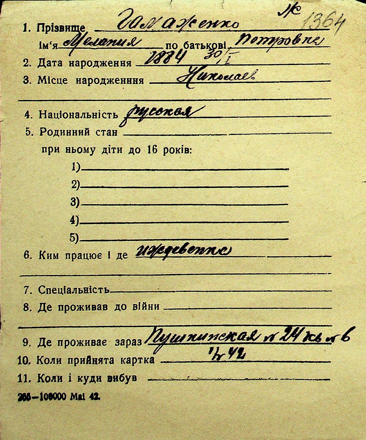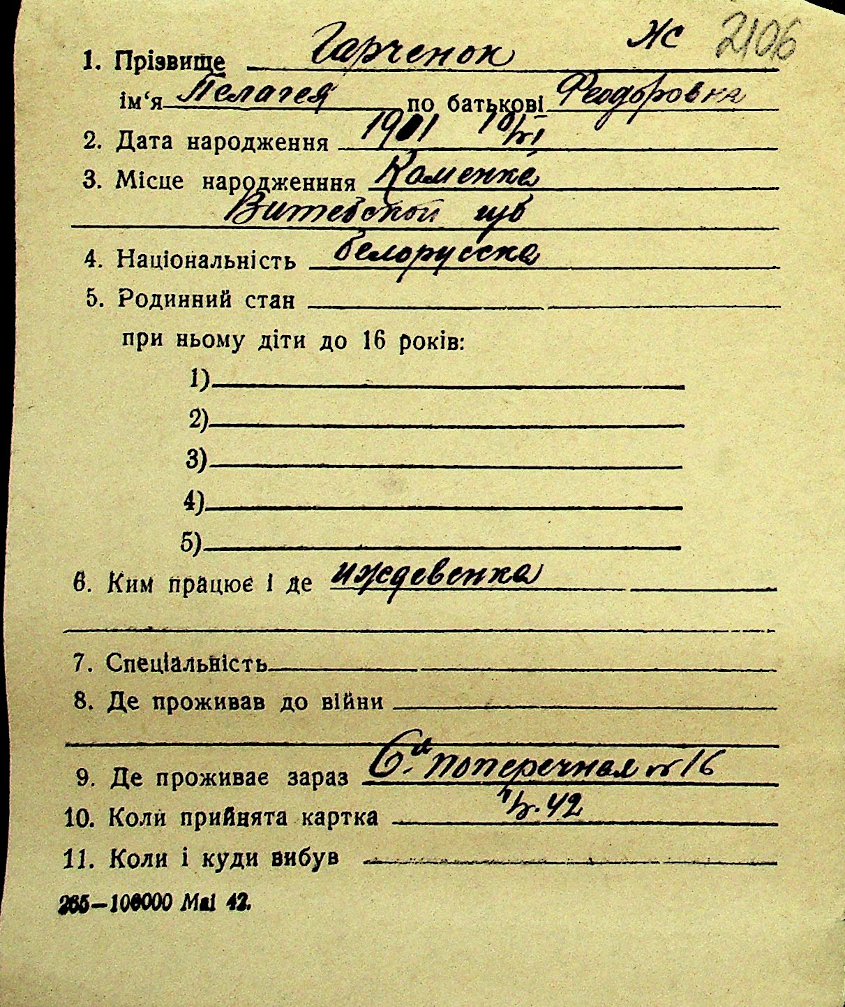 • • Перелік карток до фонду № Н-1016