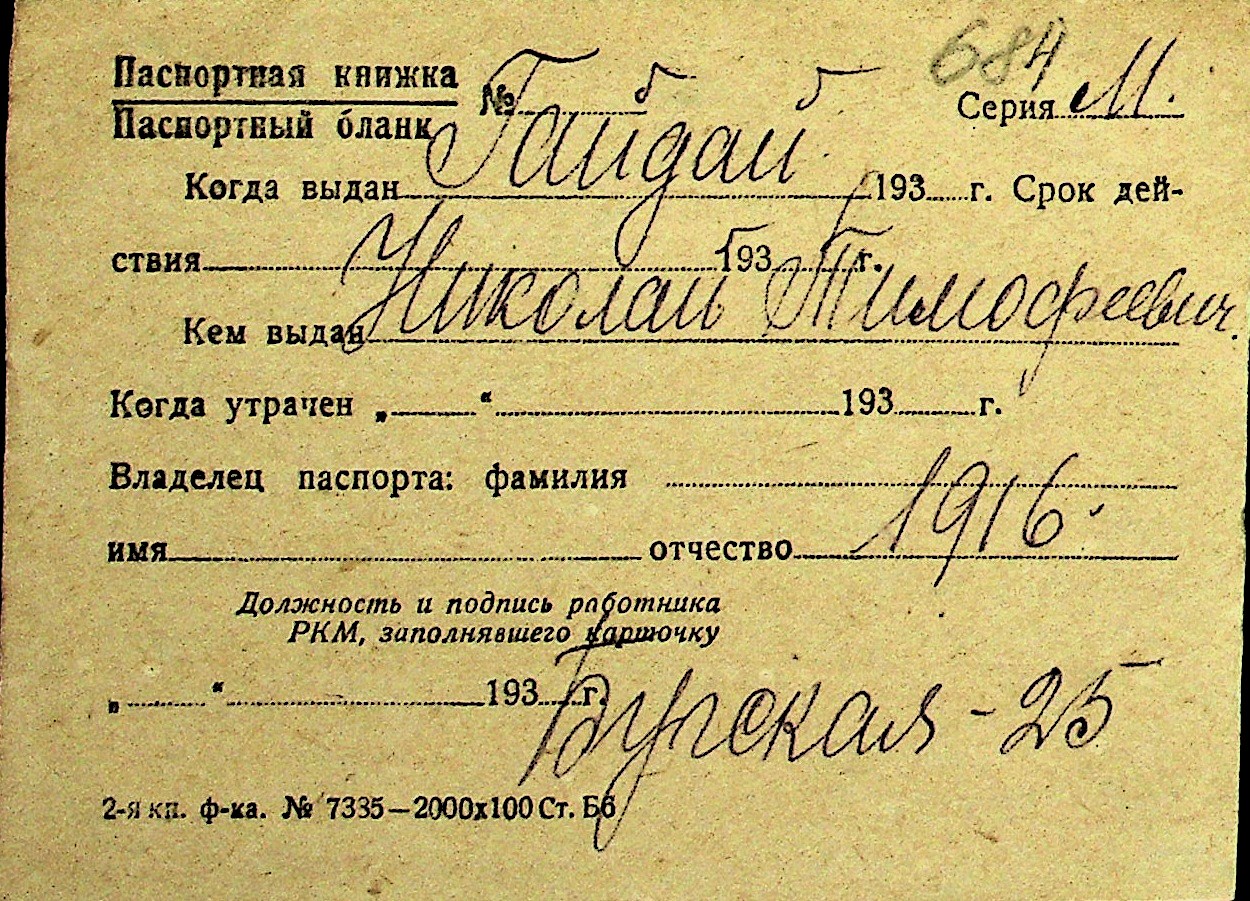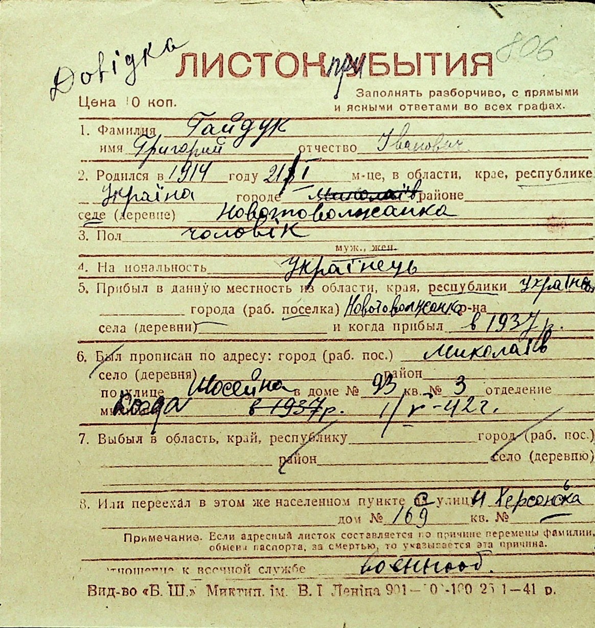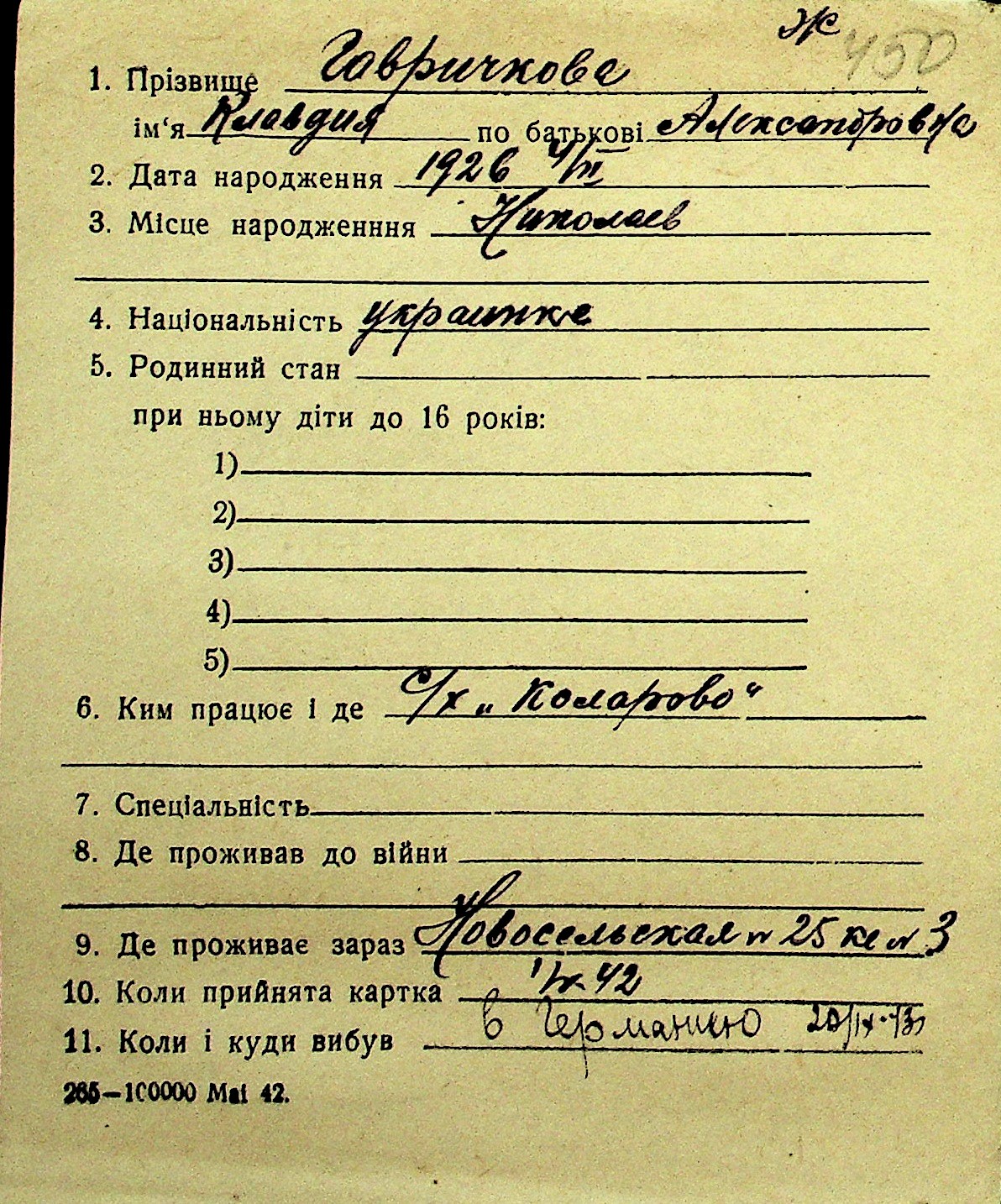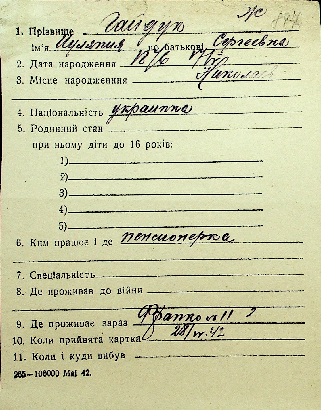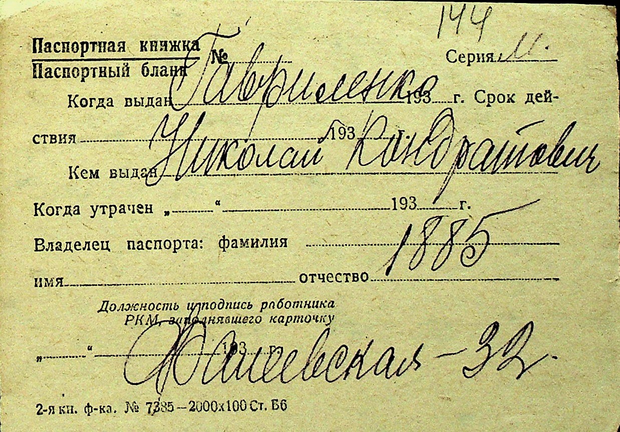• • Перелік карток до фонду № Н-1016