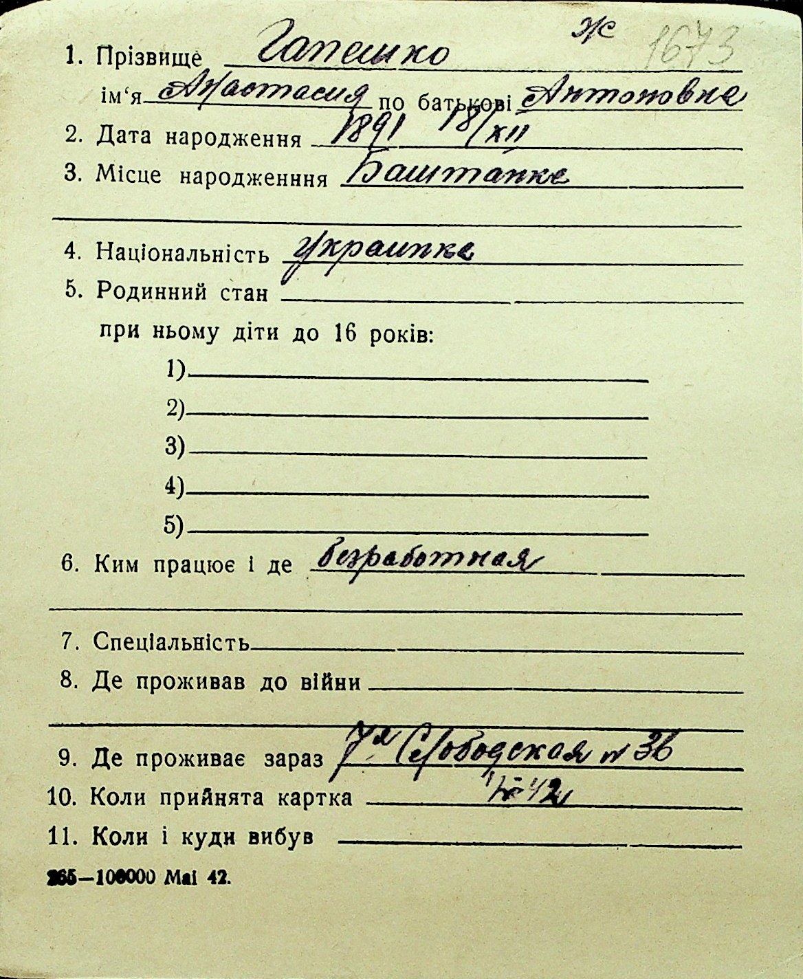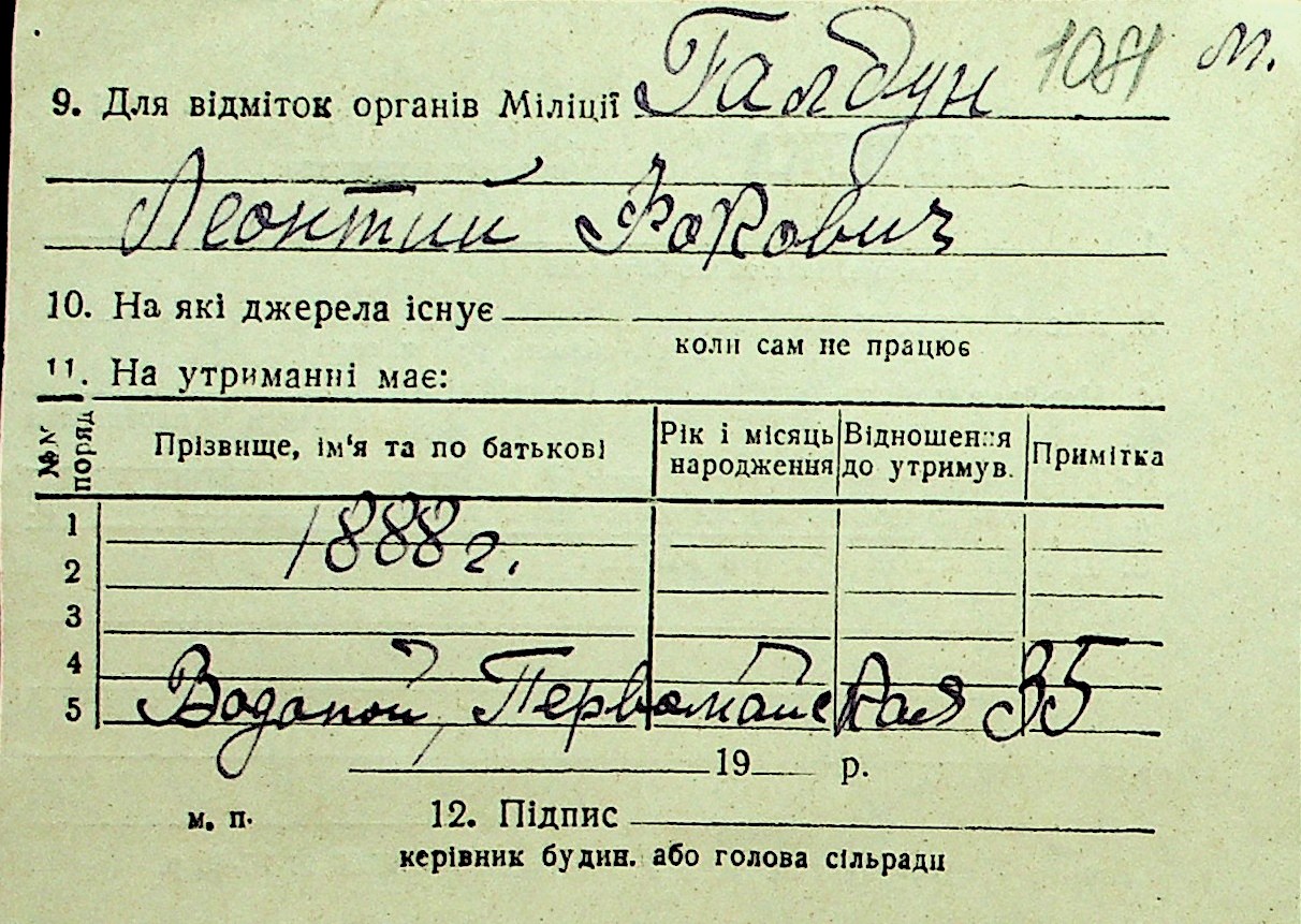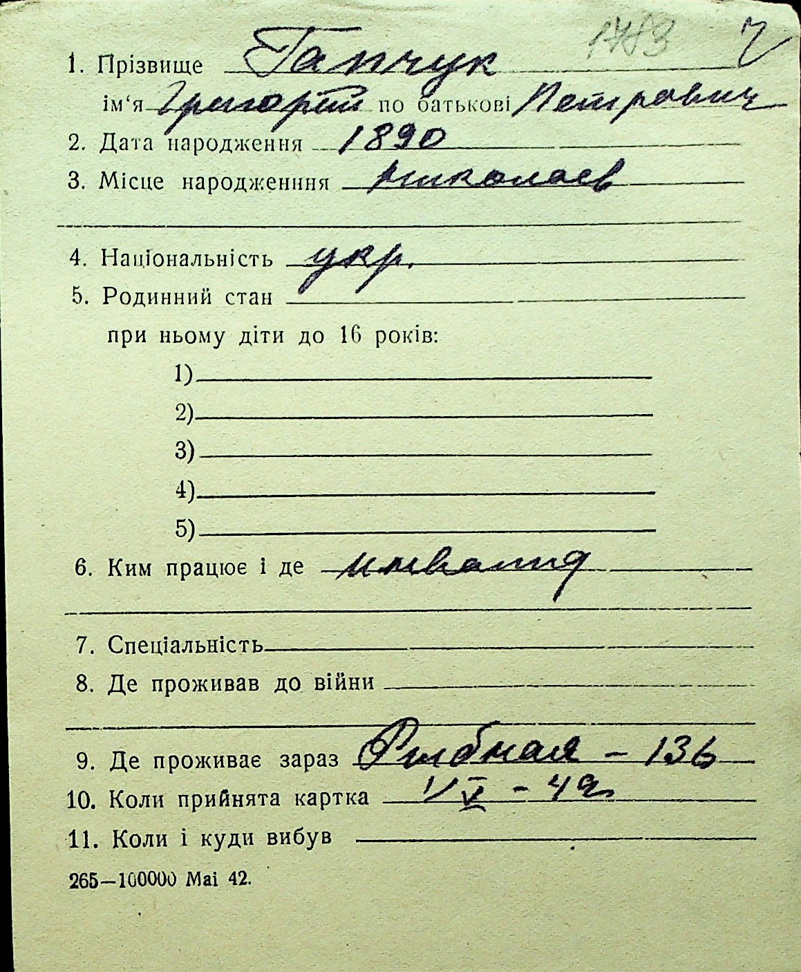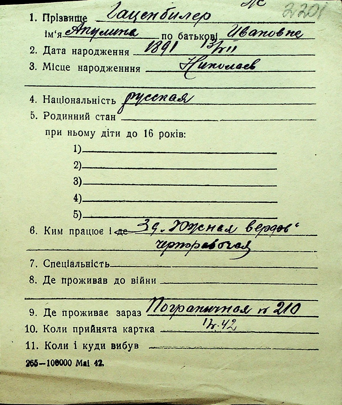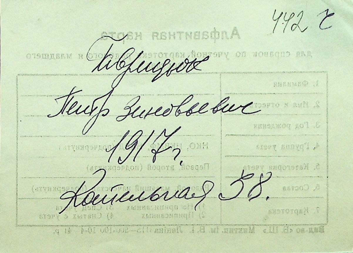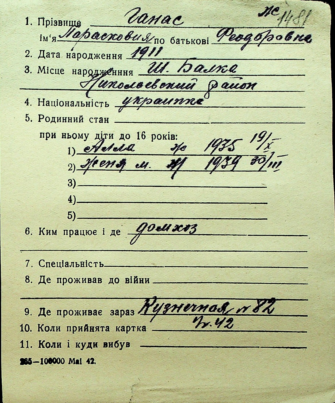 • • Перелік карток до фонду № Н-1016