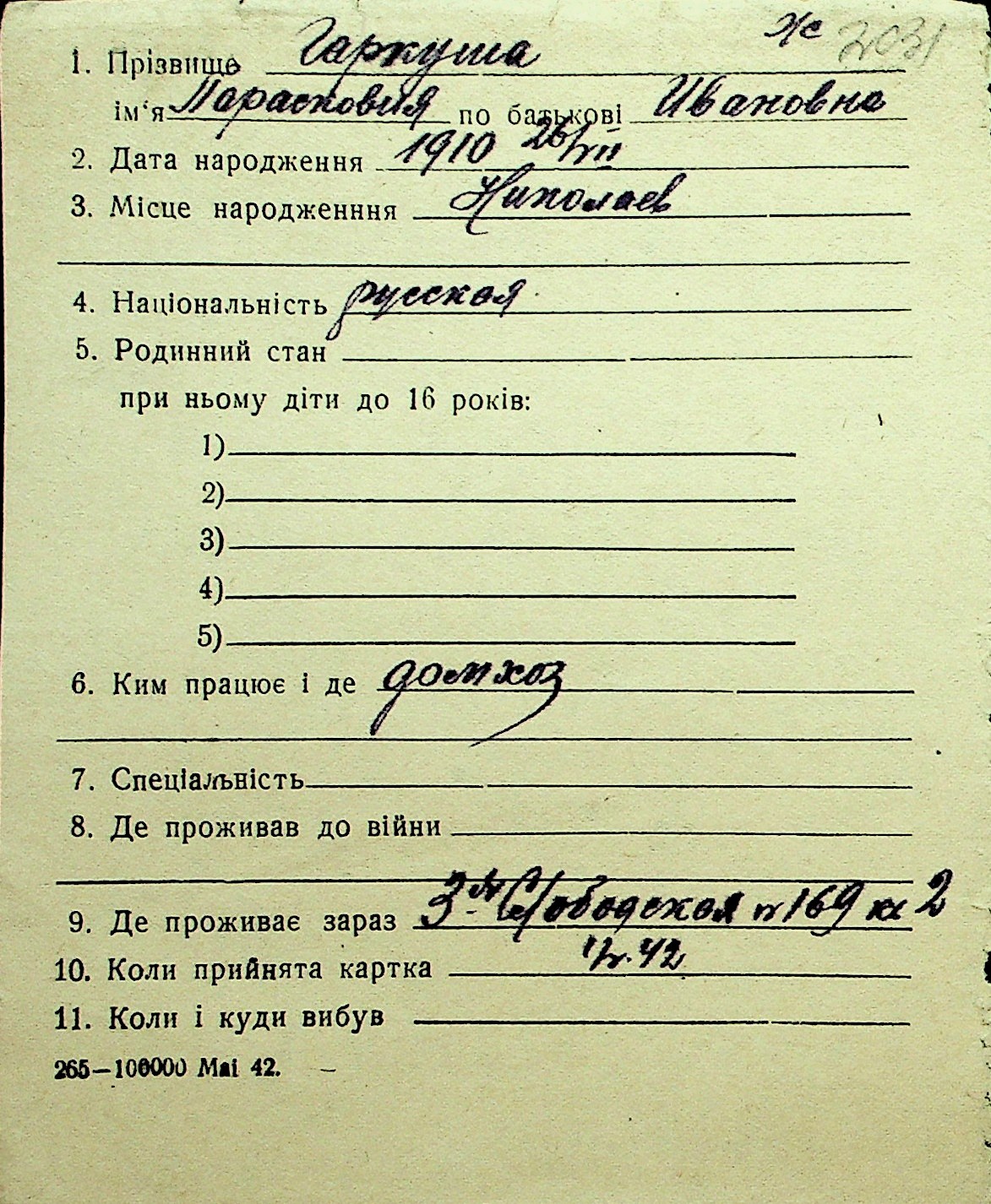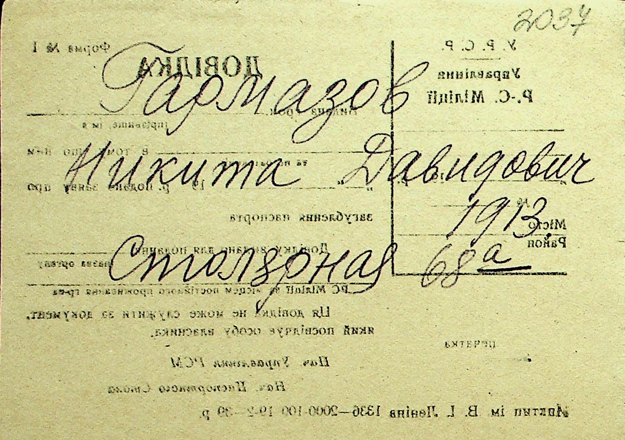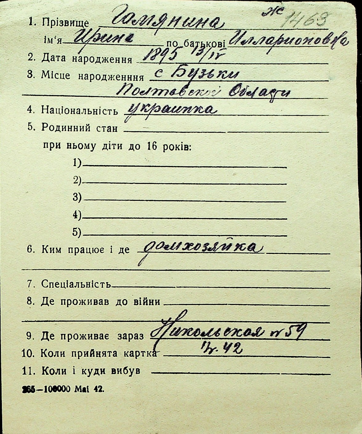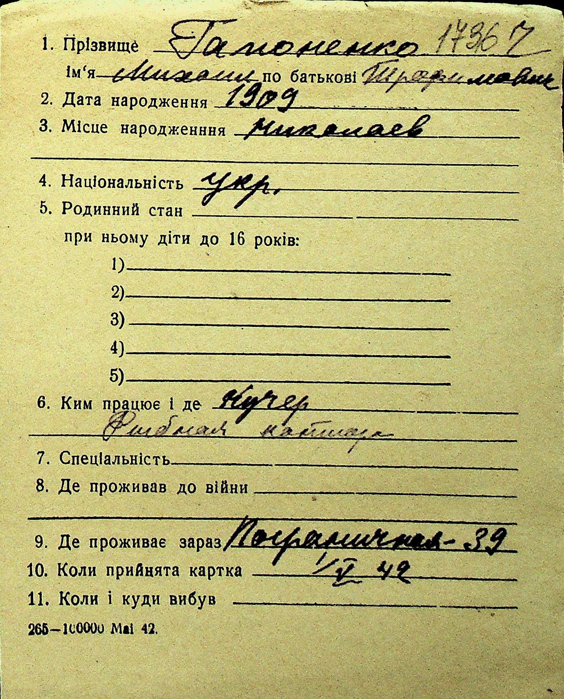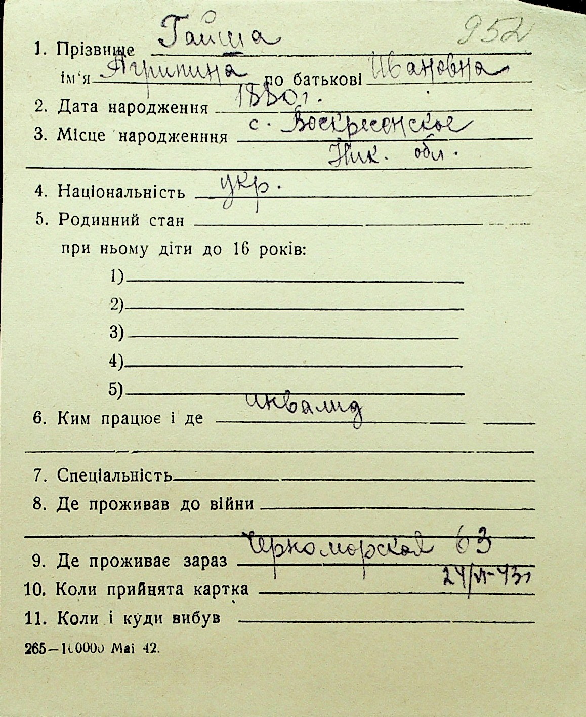 • • Перелік карток до фонду № Н-1016
